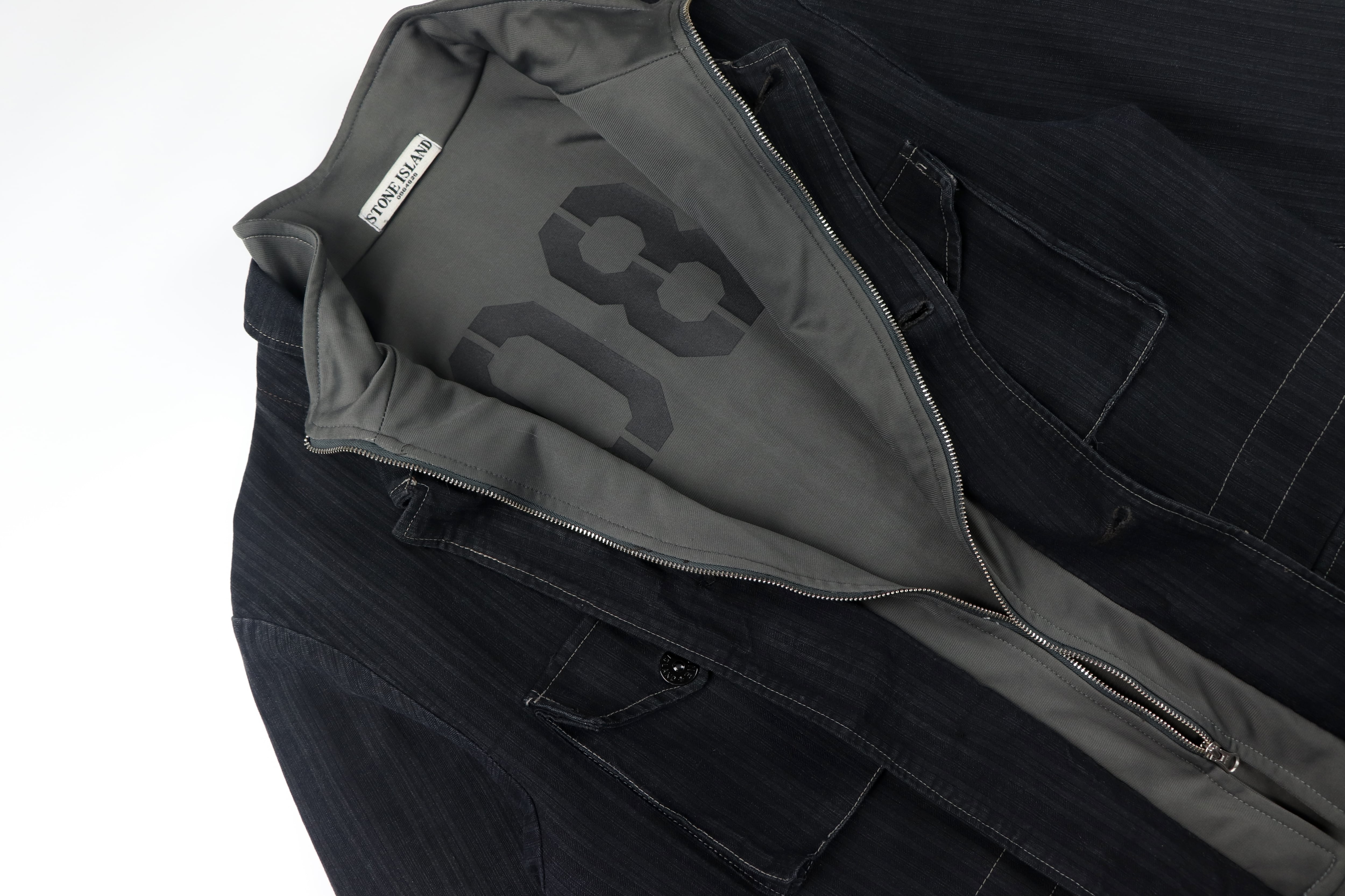 デニム生地のようなジャケットにジャージをドッキングしたデザイン。1つのアイテムでコーディネートが完成します。目立ったダメージや汚れもございません。