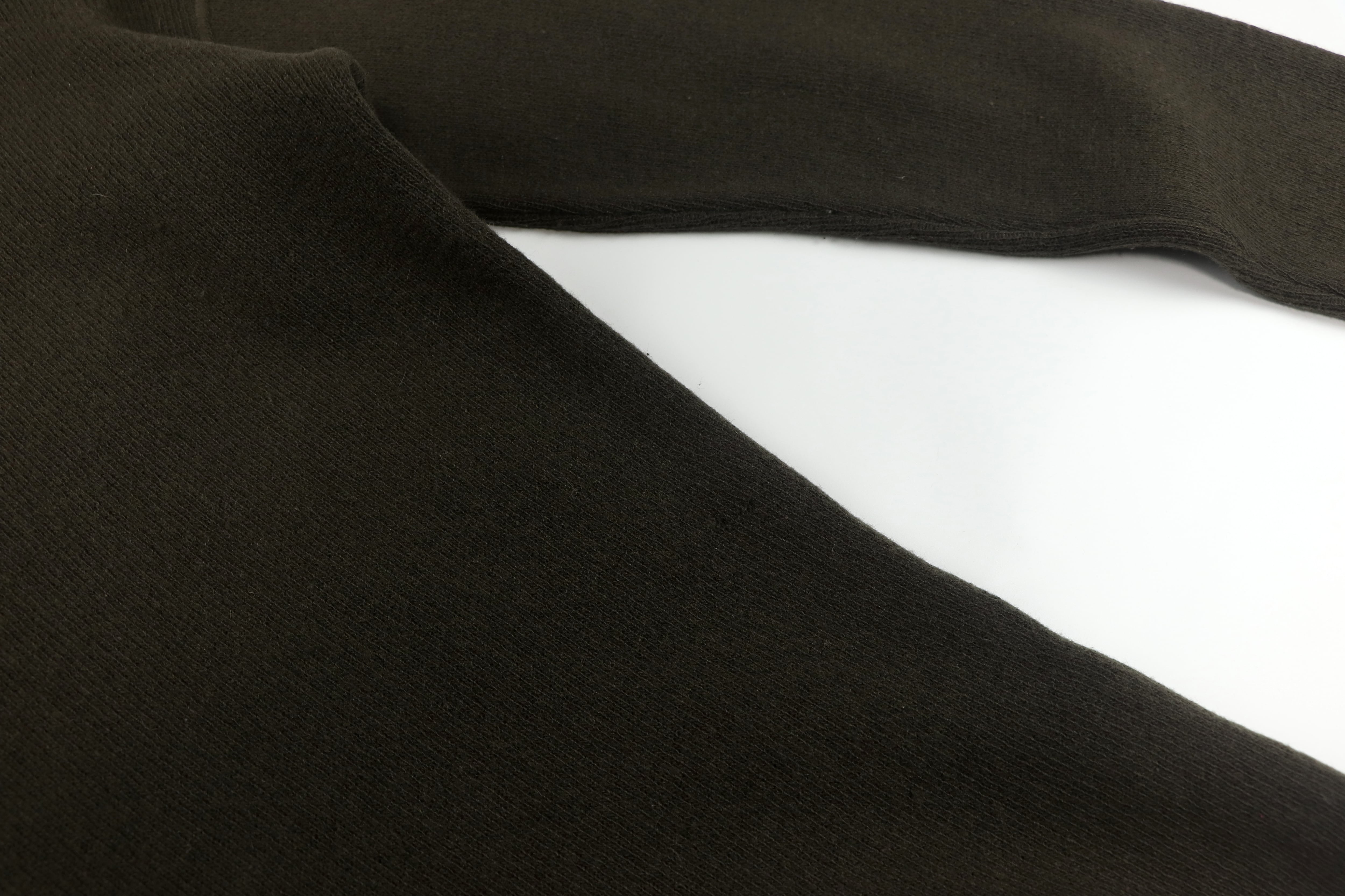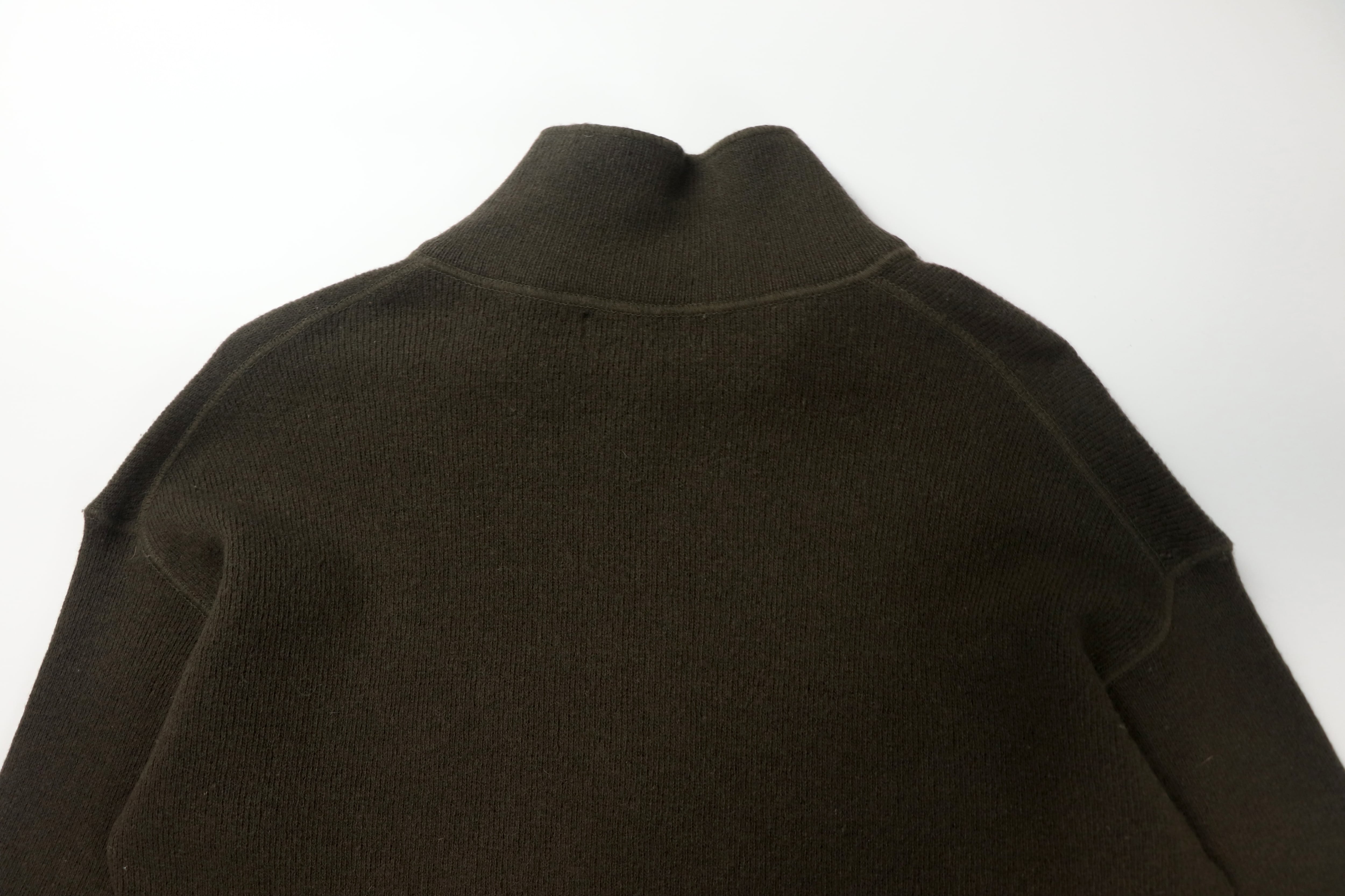 袖先にコンパスロゴをあしらったジップニット。主張は激し過ぎず、素材感とシルエットはブランドらしさ全開の1着。