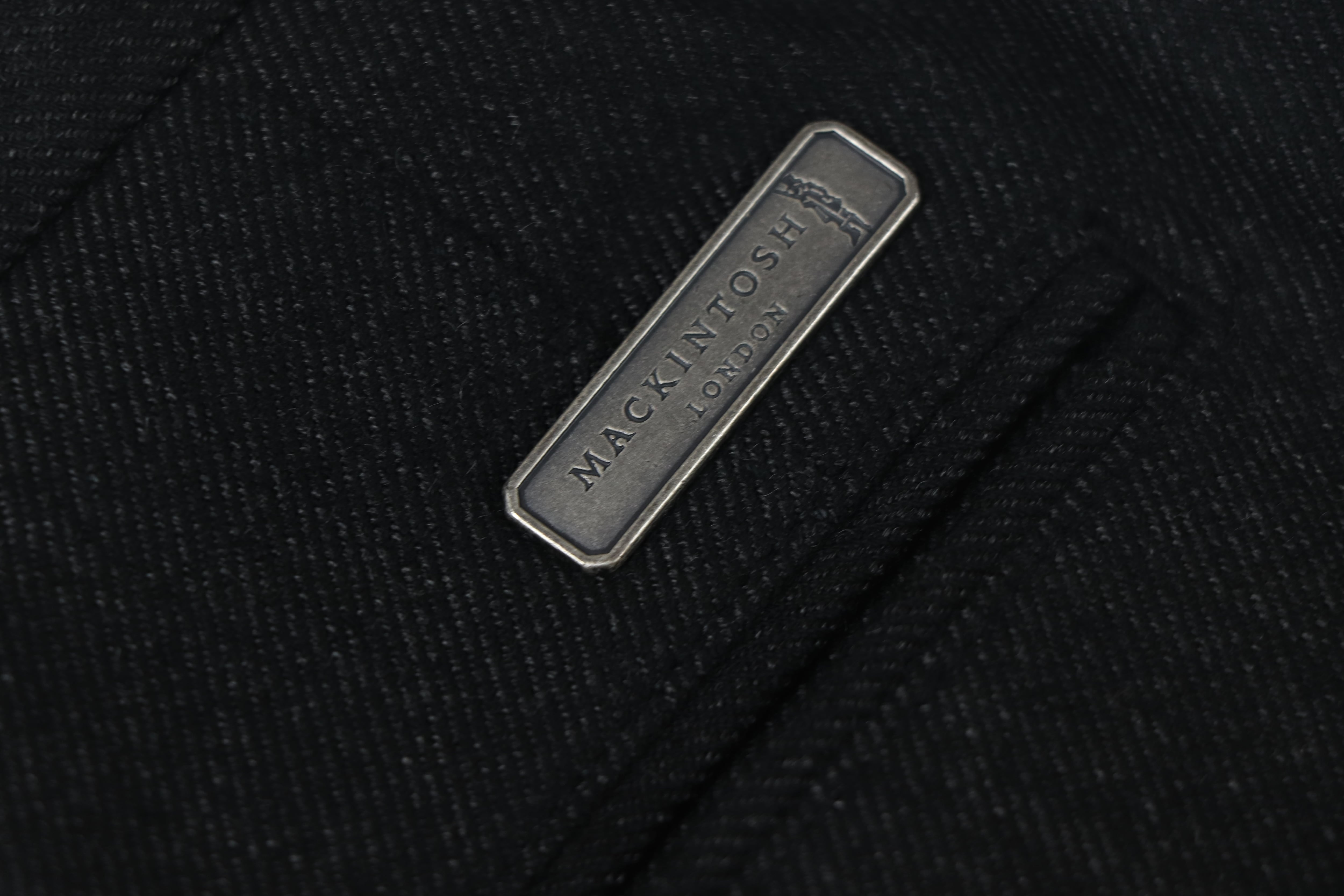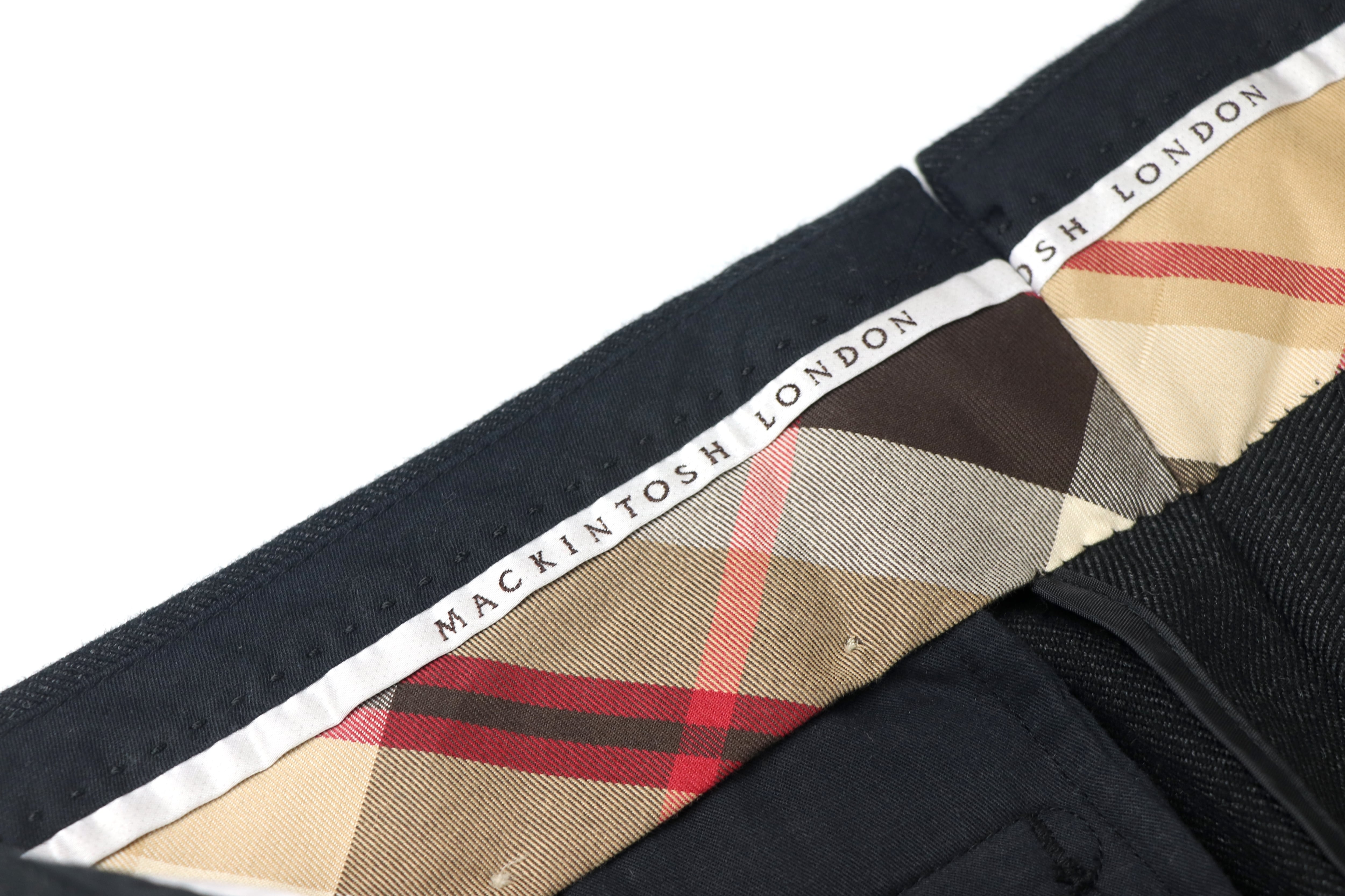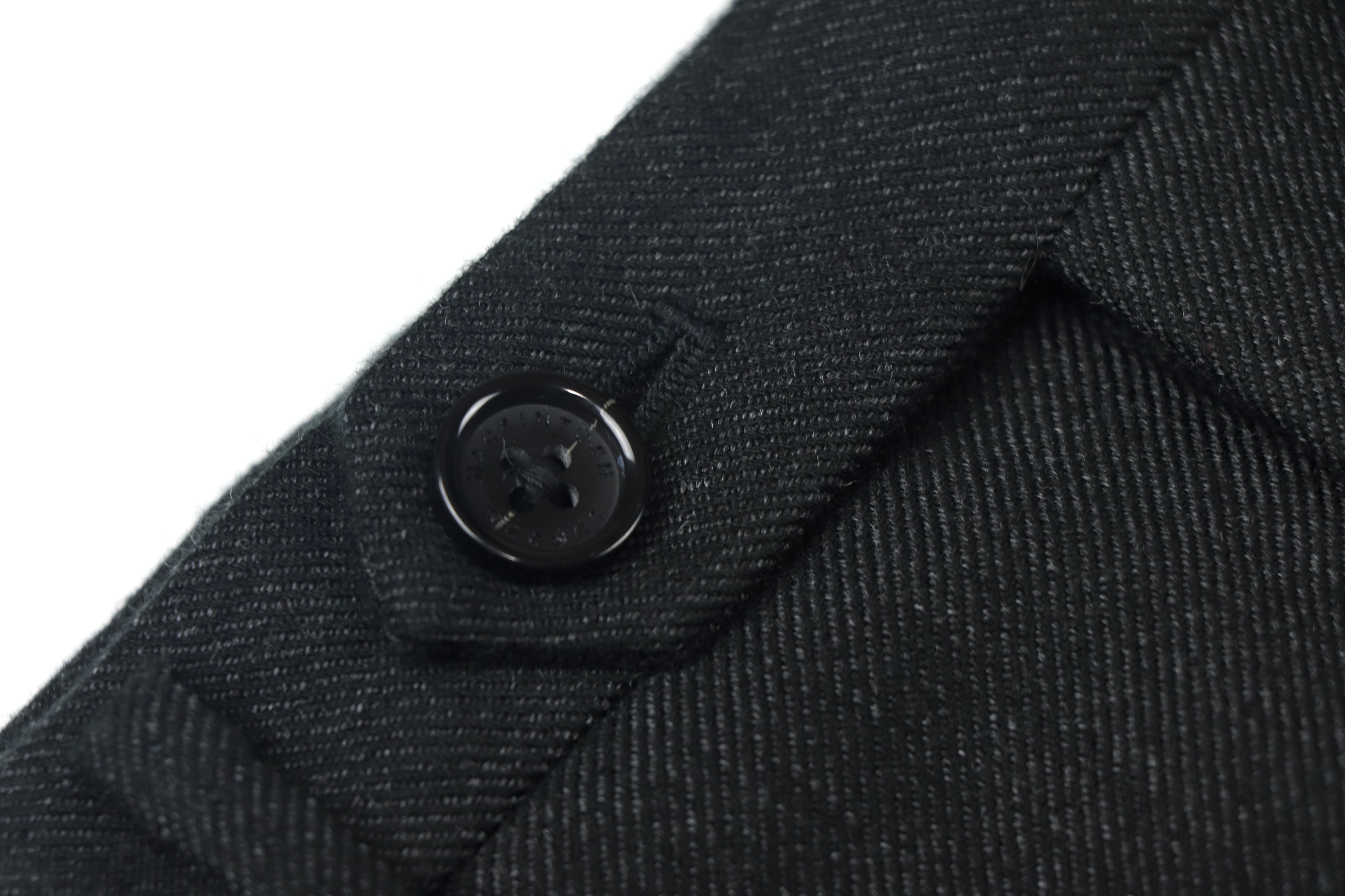 三者混の上質なスラックスパンツ。表情がかなり素敵です。バックポケットにはメタルプレートがあしらわれています。