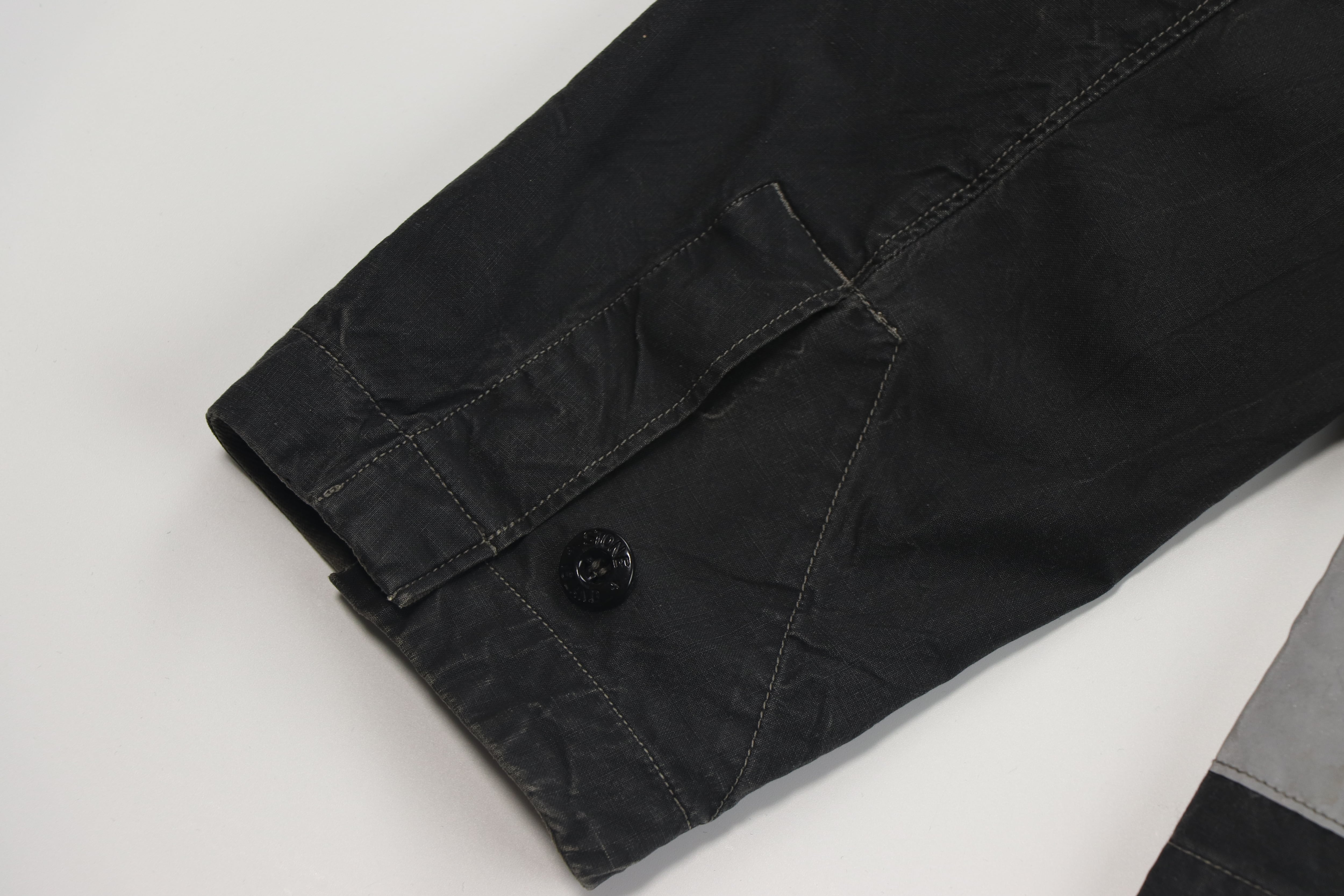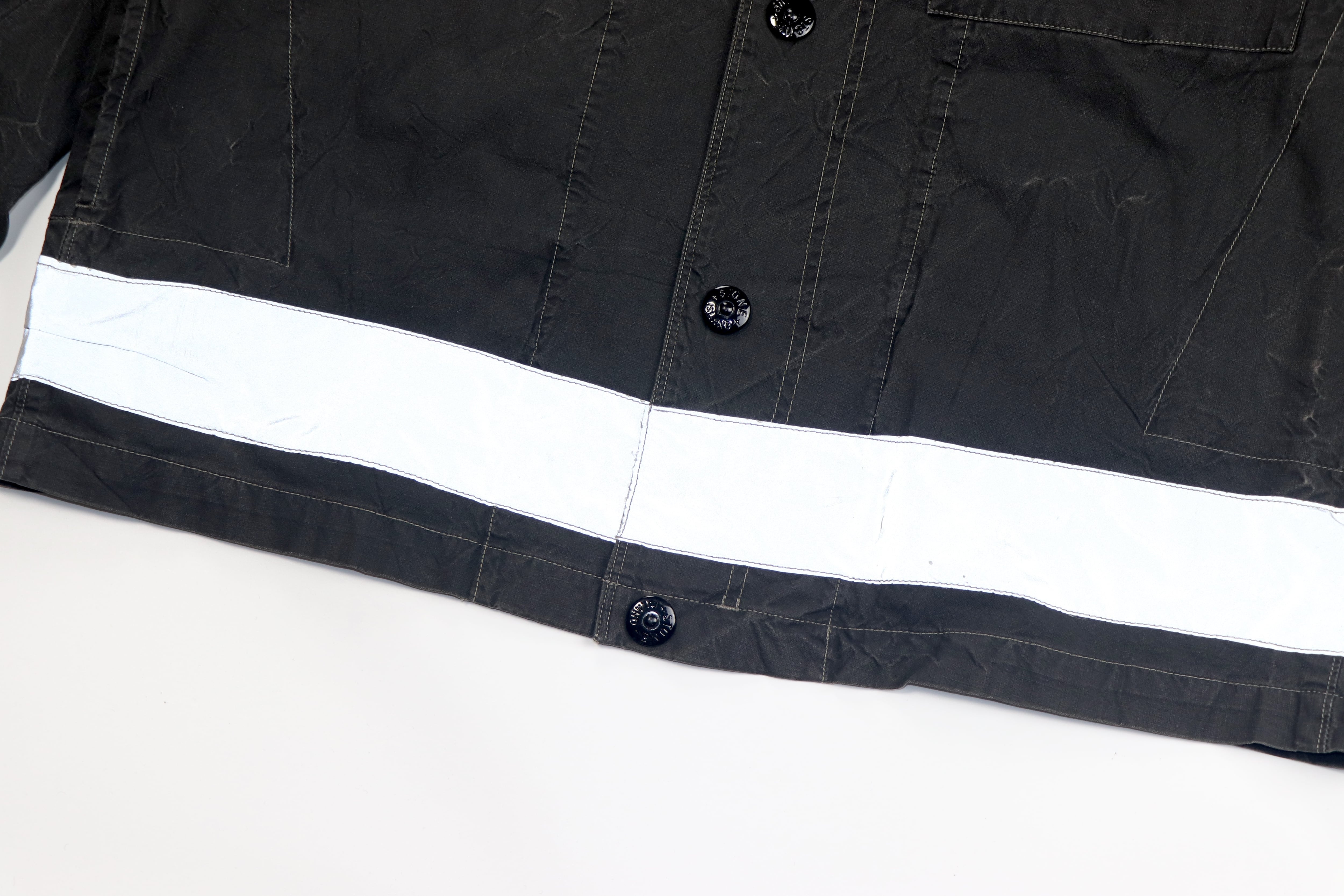 リフレクティブ素材をドッキングしたシャツジャケット。光が当たるととても綺麗な光沢が出ます。(2枚目、9枚目)ヴィンテージデニムのようなアタリや風合いがたまりません。