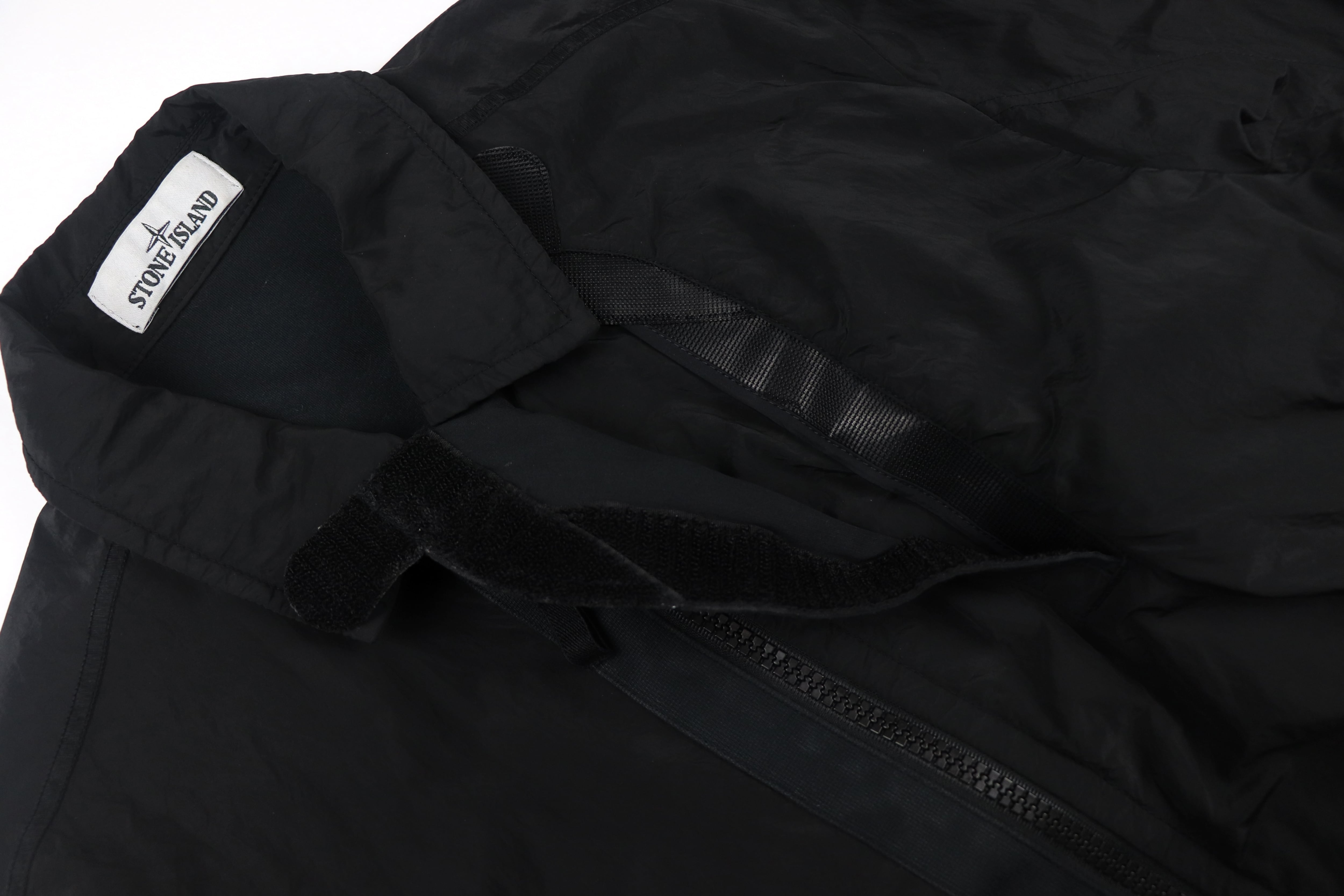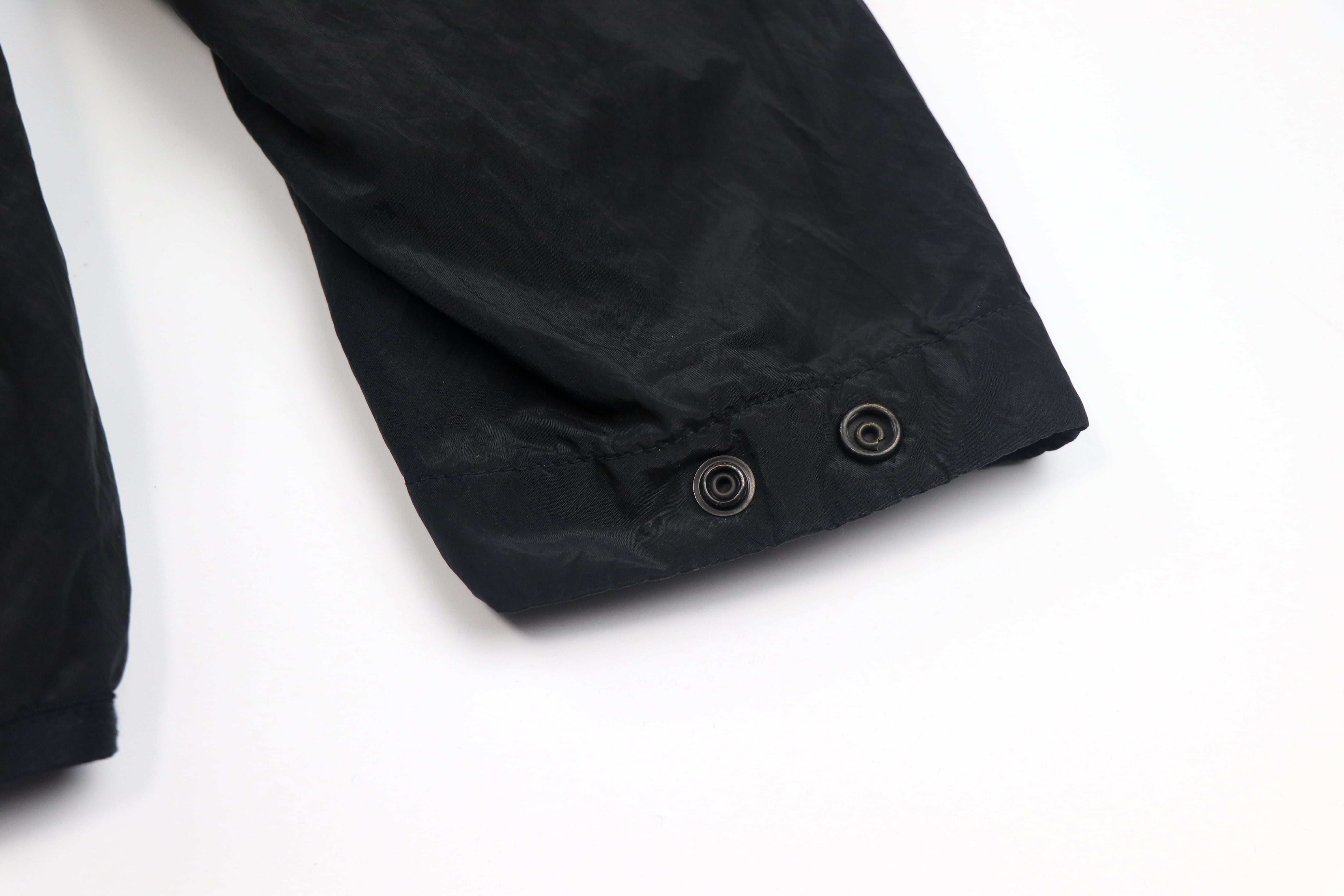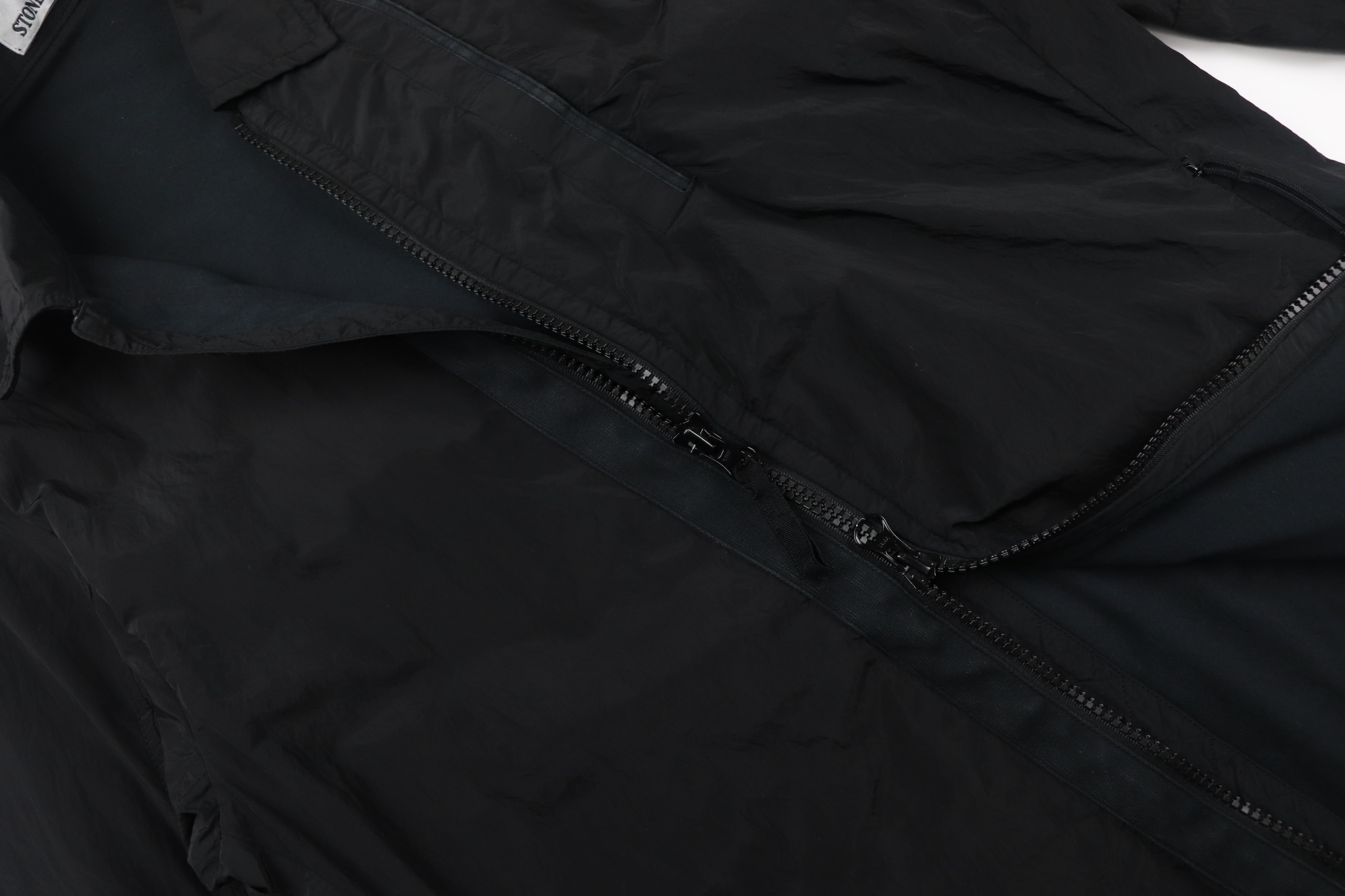光、角度で光沢感の変わるナイロンメタル。襟元に収納機能付き。裏地が柔らかいコットンなので肌触りと保温性もございます。