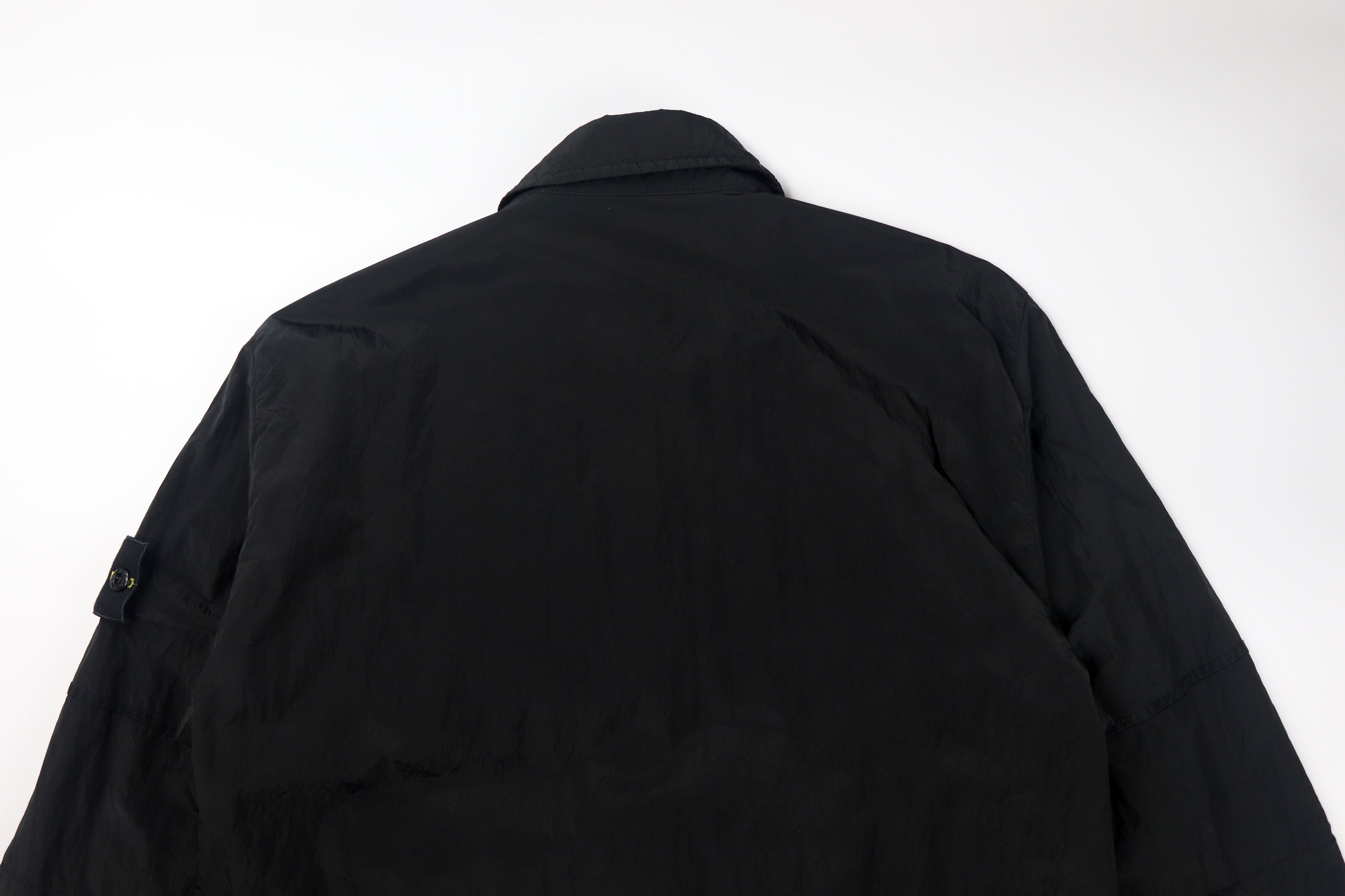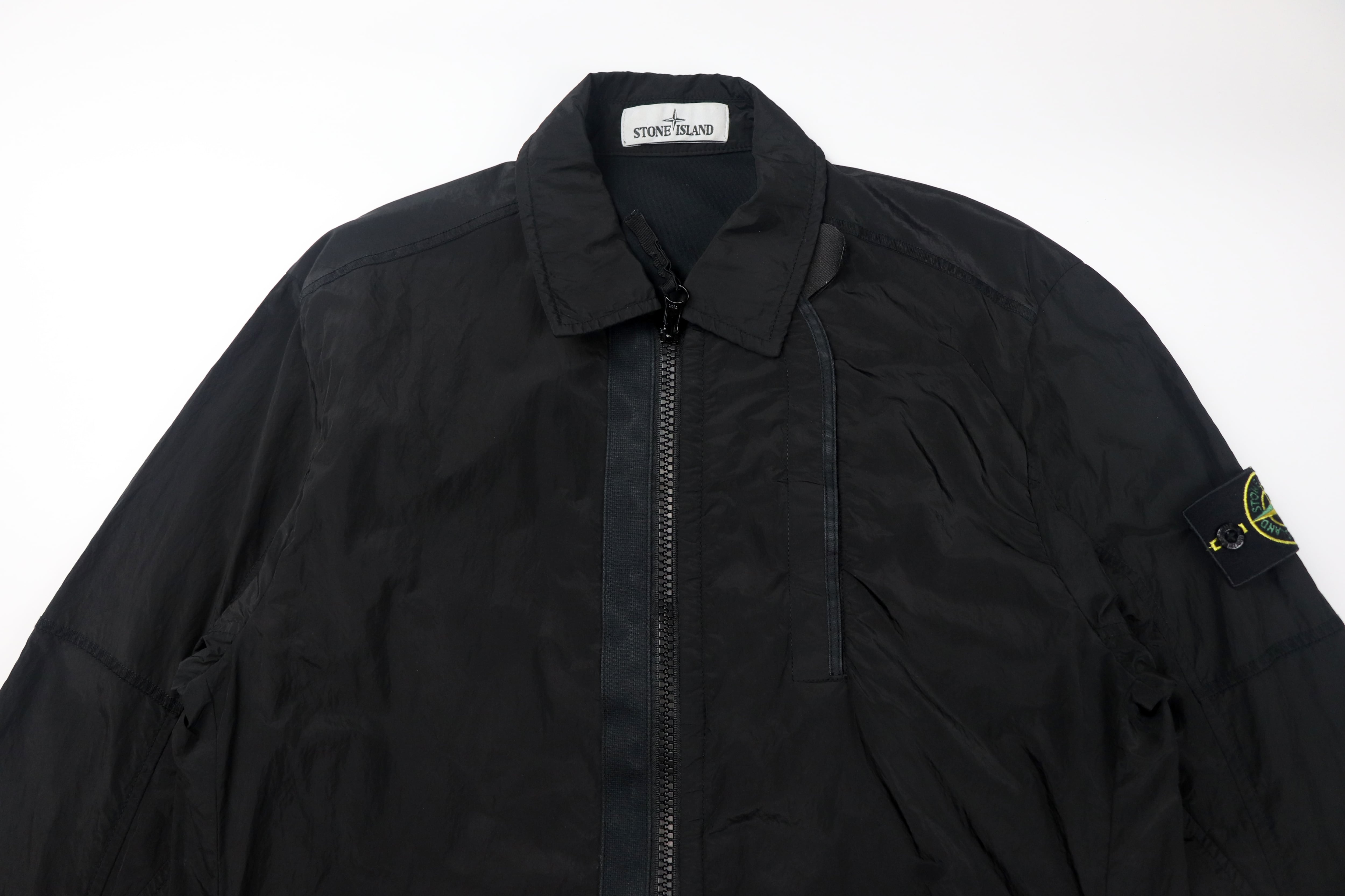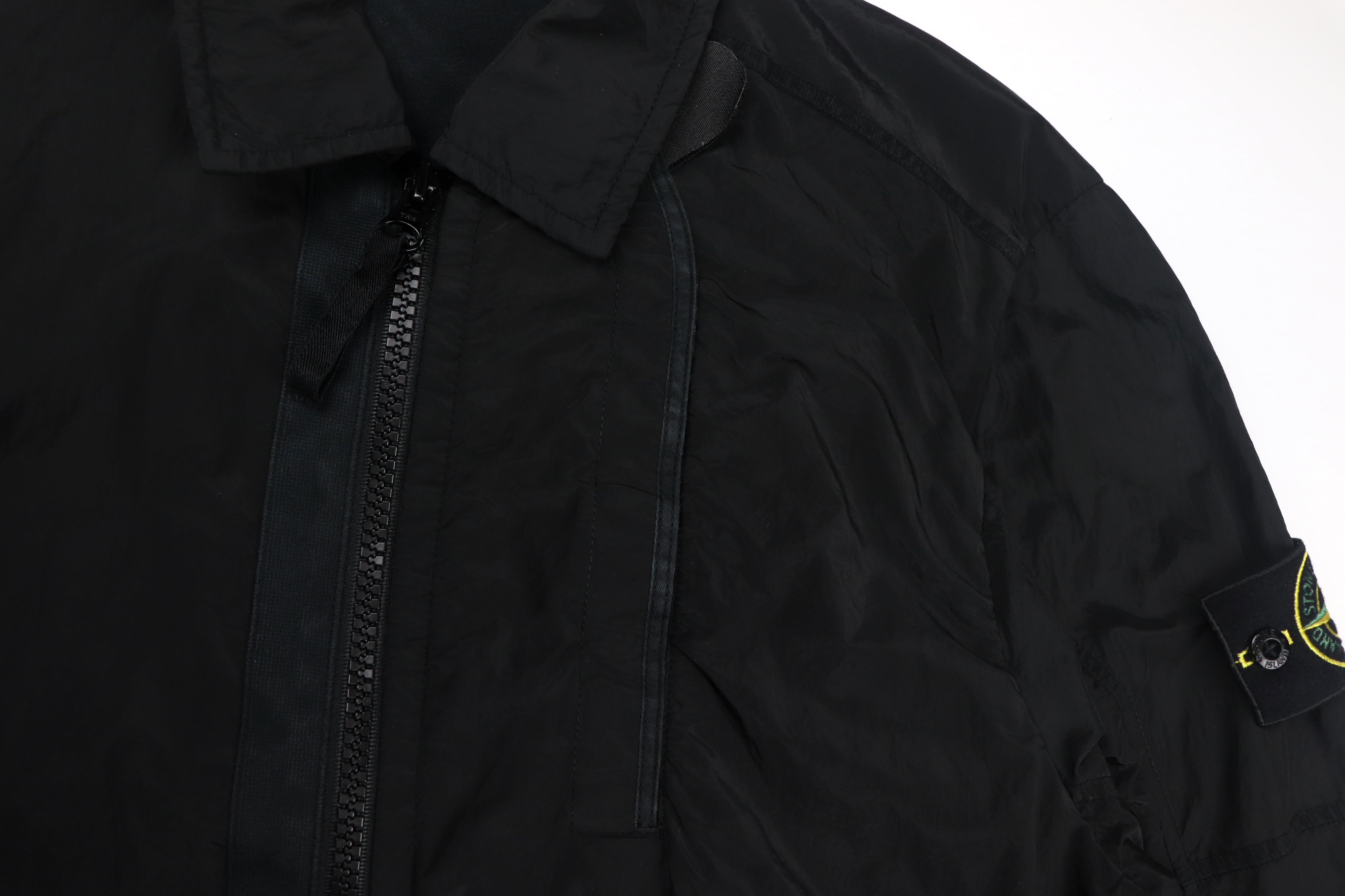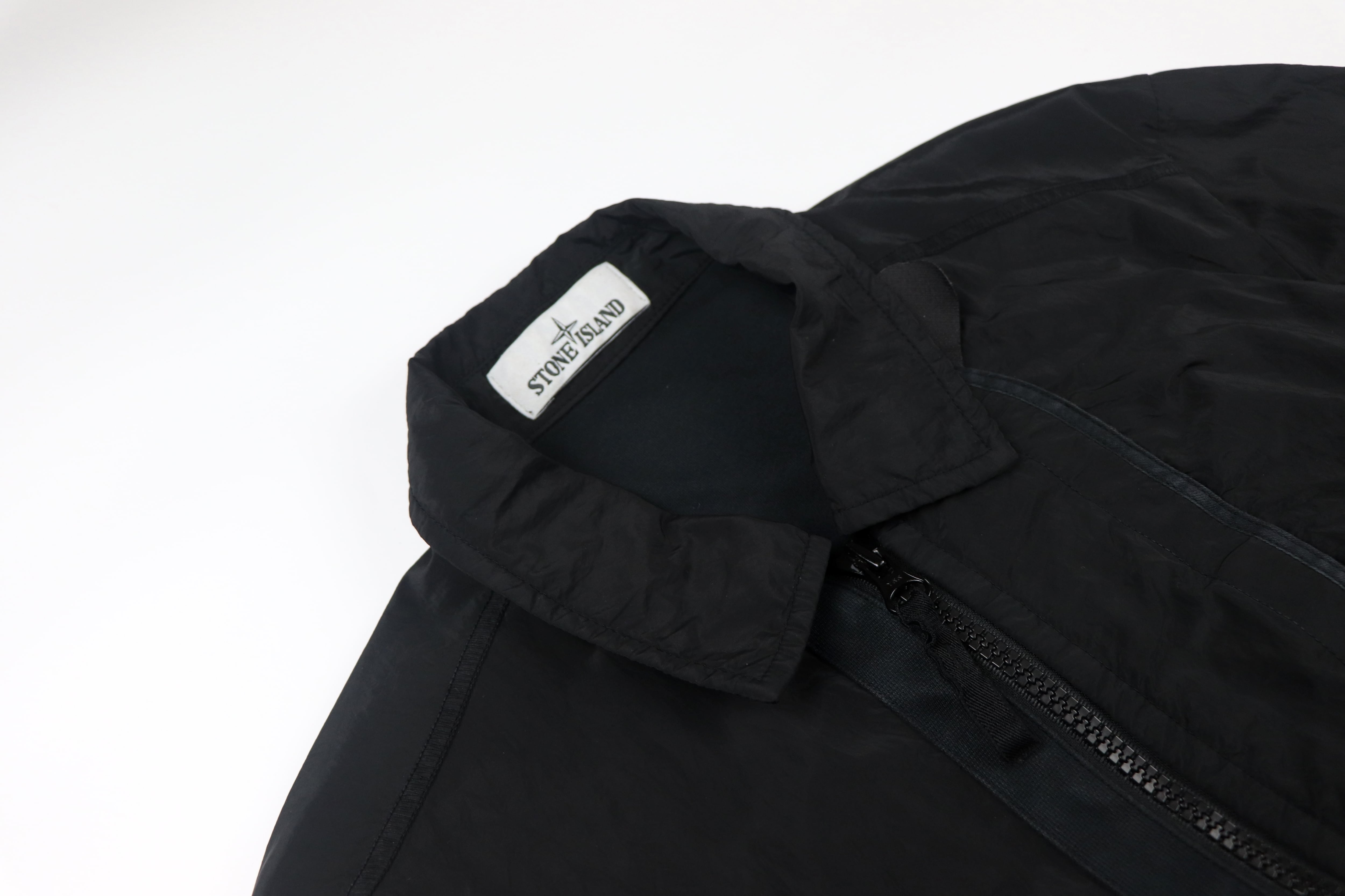光、角度で光沢感の変わるナイロンメタル。襟元に収納機能付き。裏地が柔らかいコットンなので肌触りと保温性もございます。