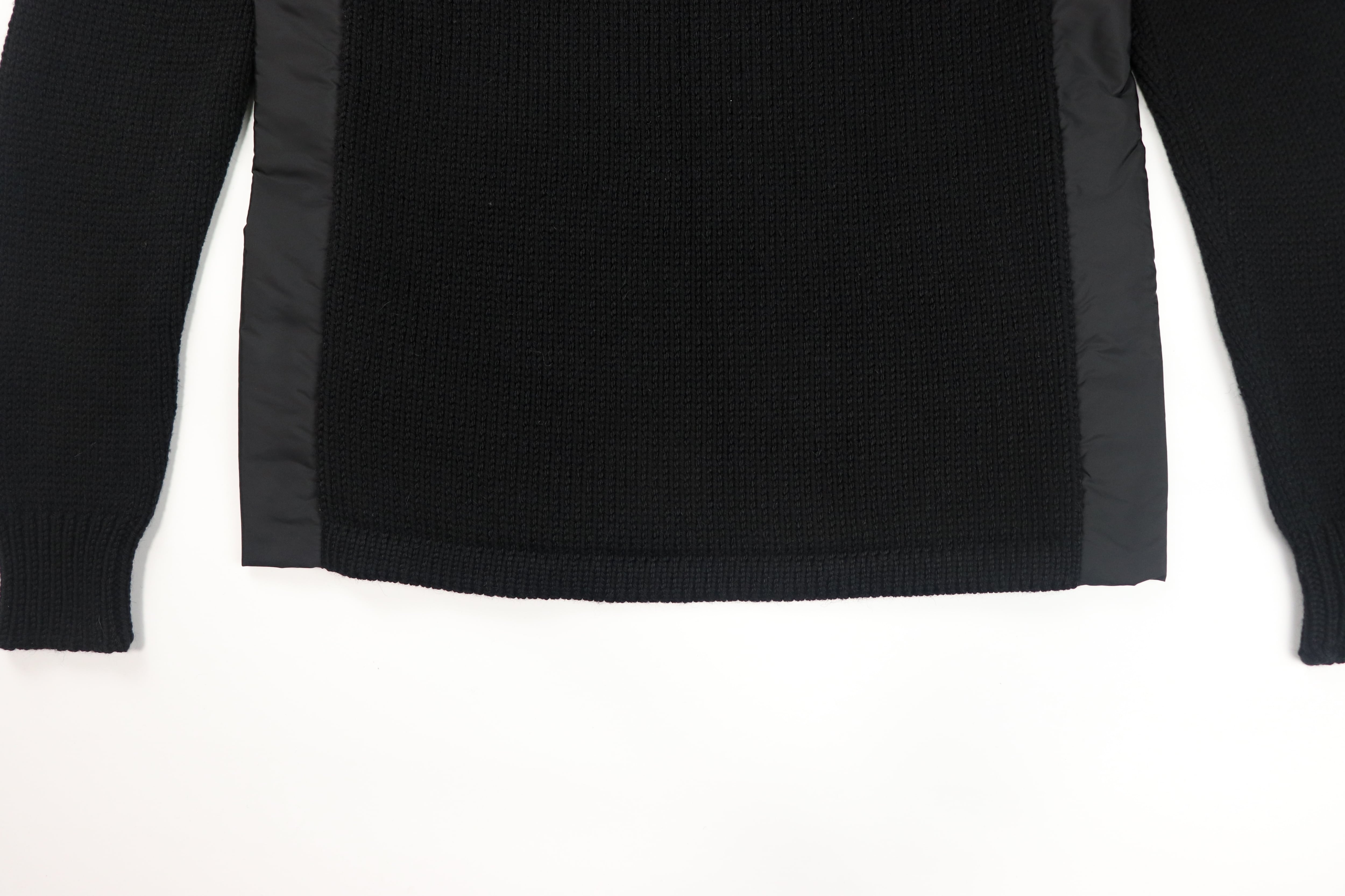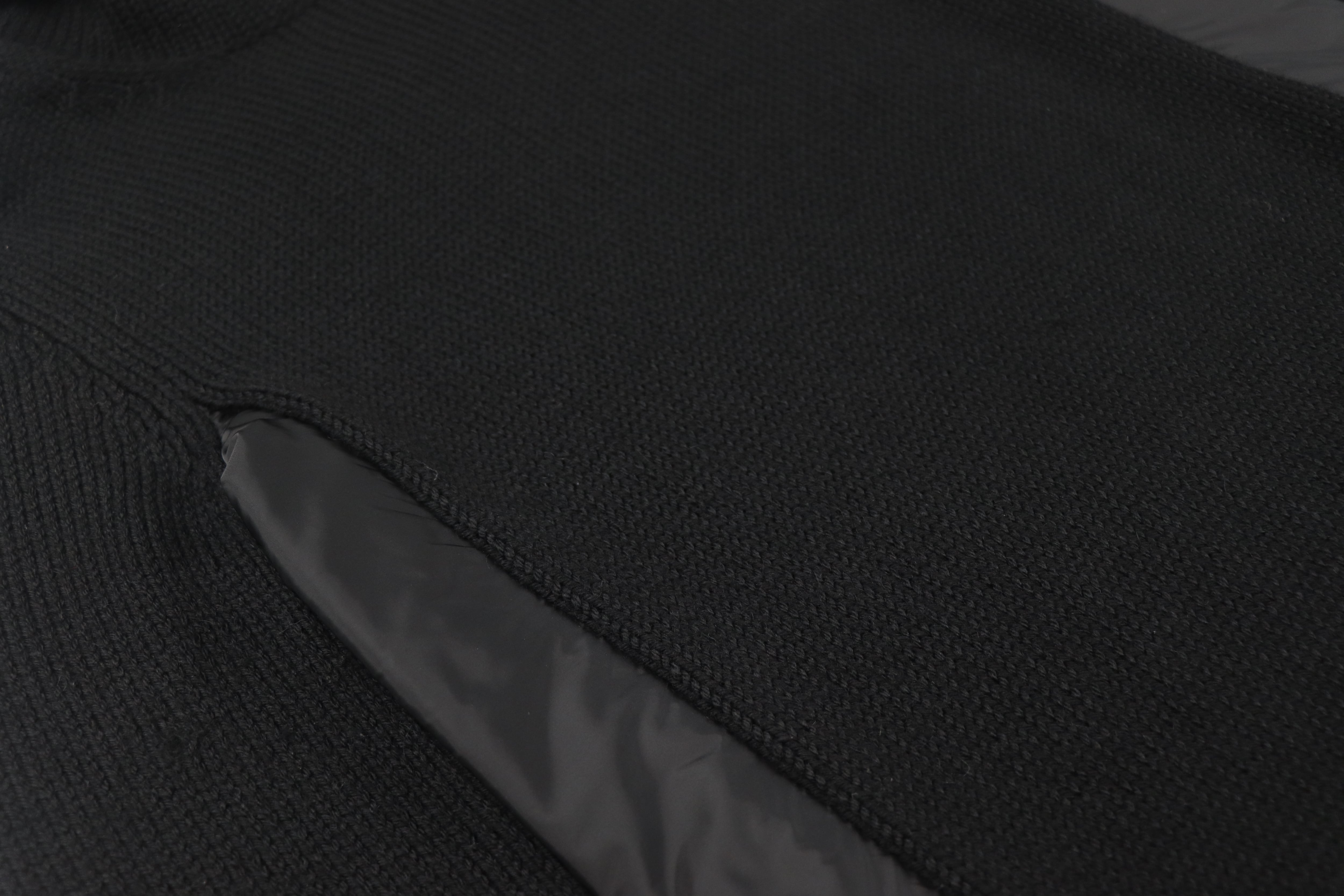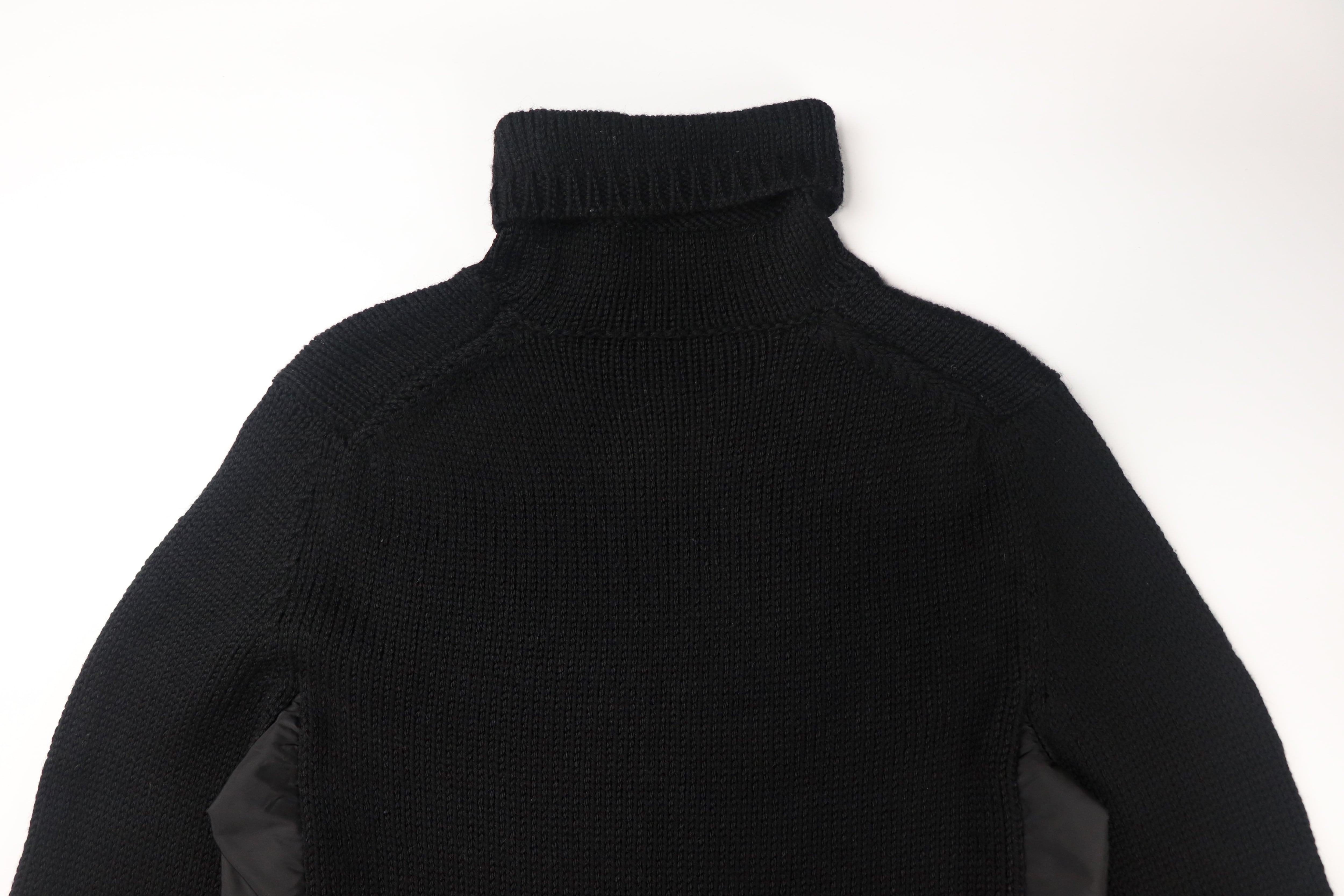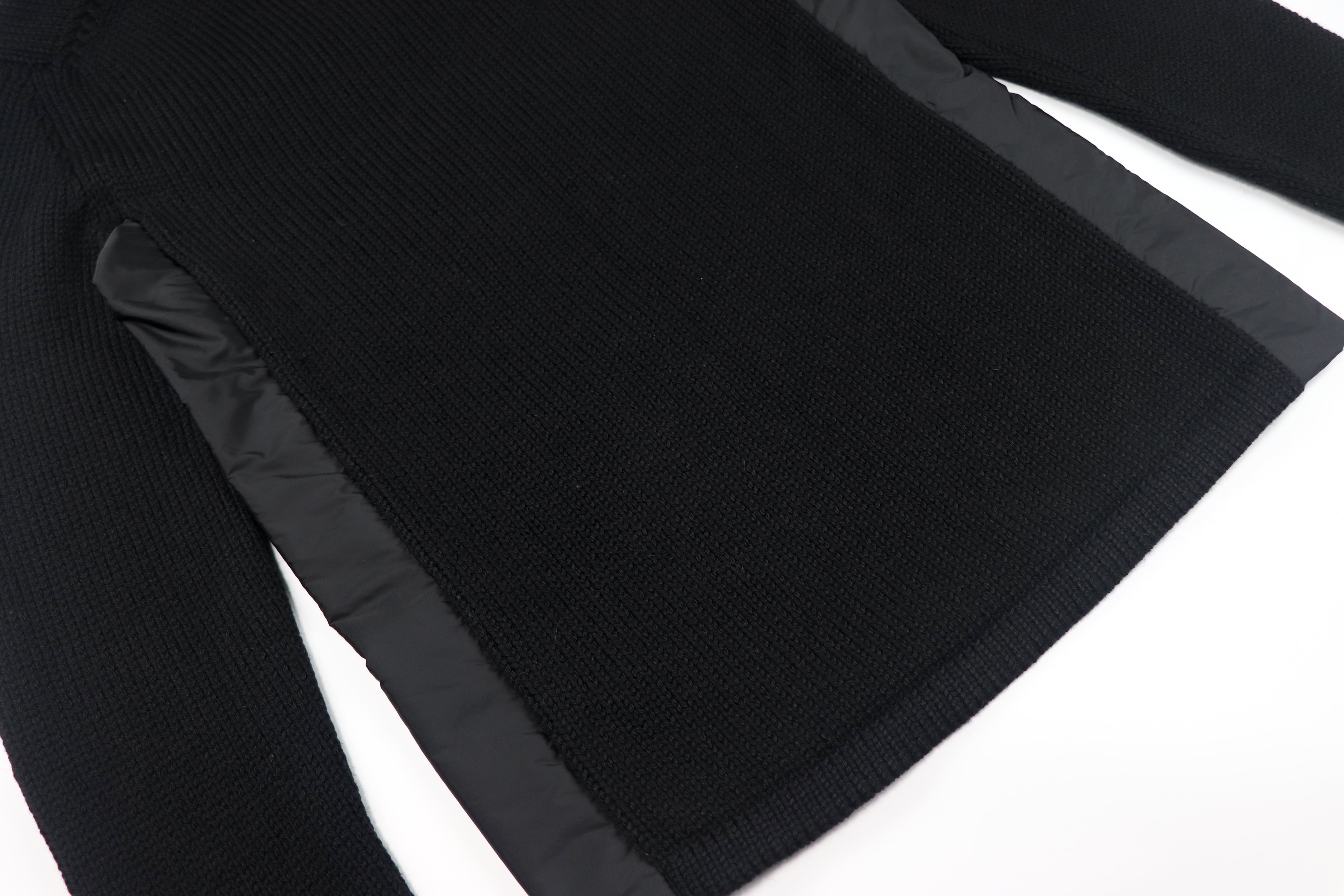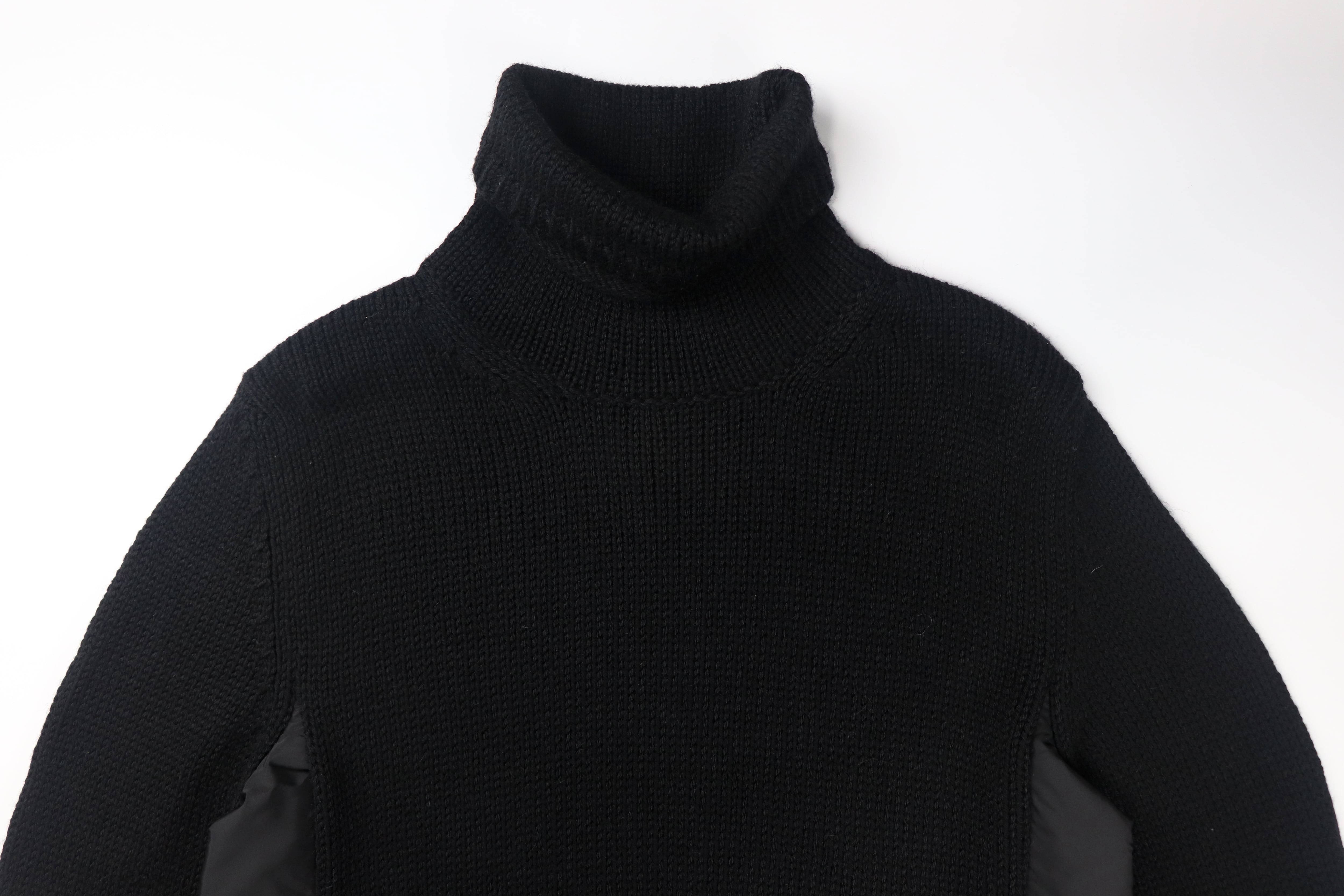 厚めのウールニットにサイドに中綿入りのナイロン素材を施した1着。