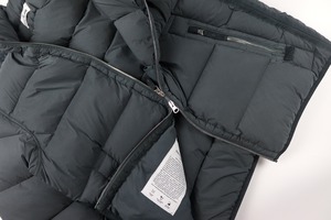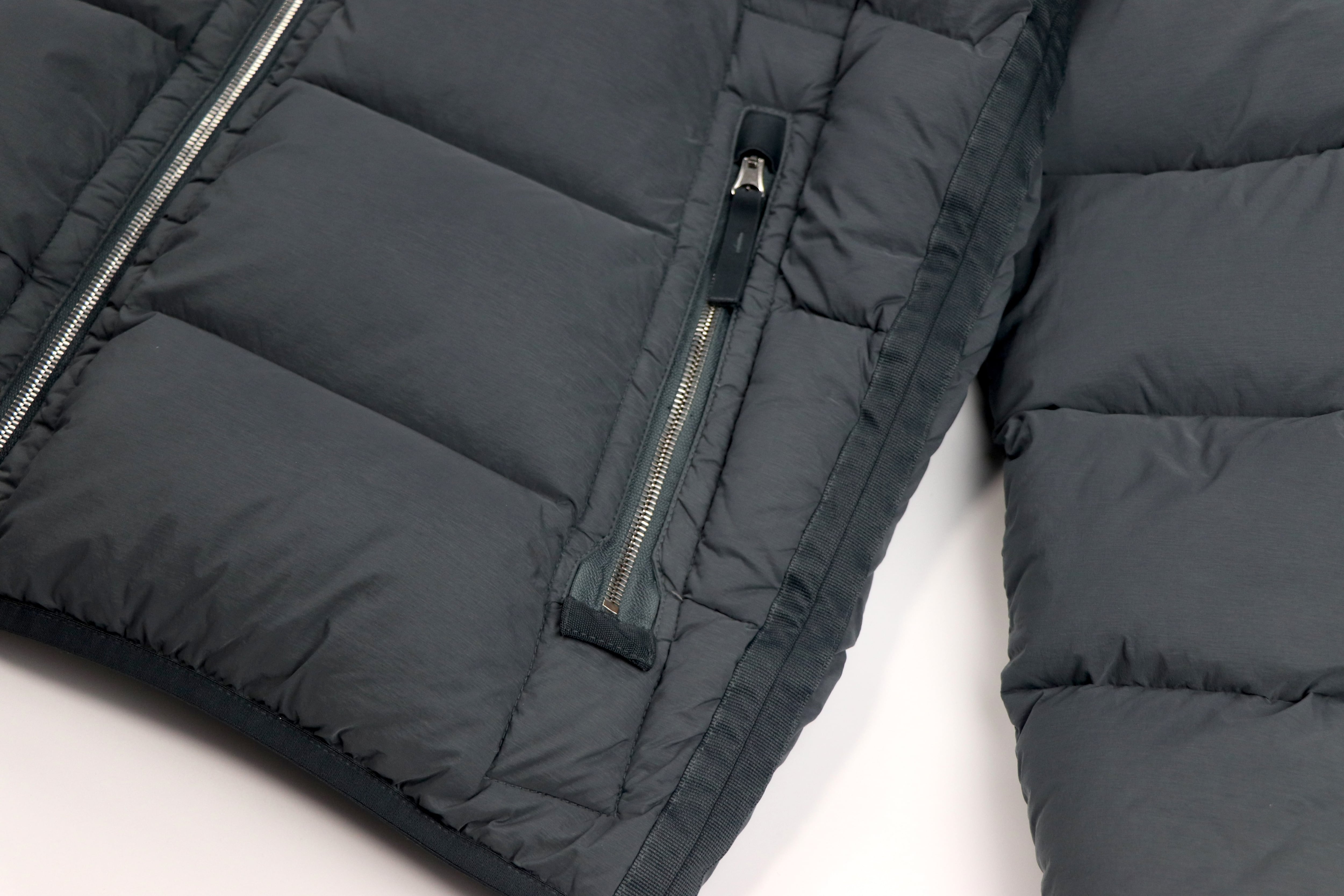 縫い目のない縫製によりミニマルなデザインを実現しつつ、Lampo製のシルバージップにを使用することでラグジュアリーさスポーティーさのミックス感が生まれています。。機能面でも防水性や保温性があり、暖かくて軽いダウンジャケットとなっています。