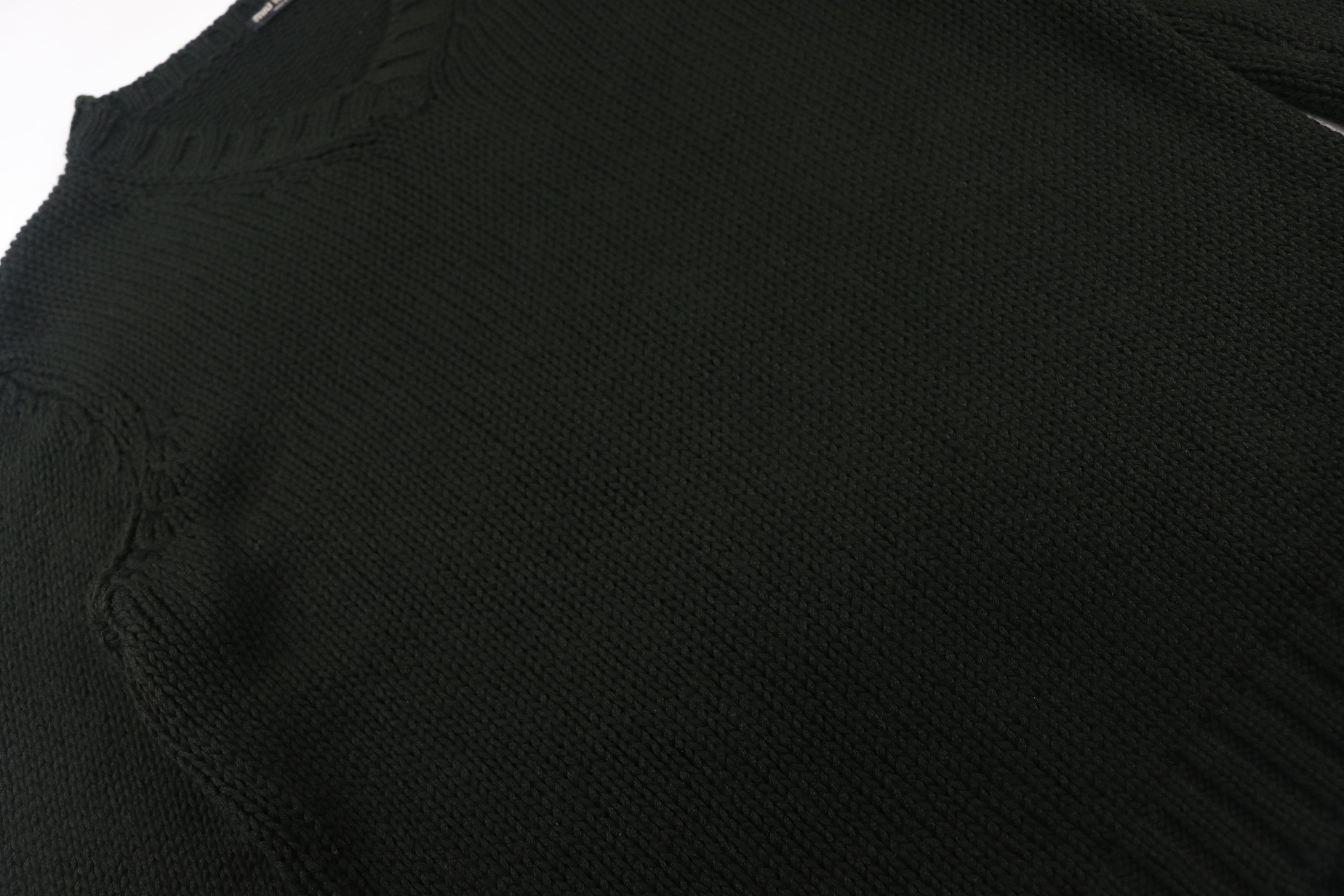 深みのあるグリーンニット。程よい厚みもあり冬時期かなり重宝します。