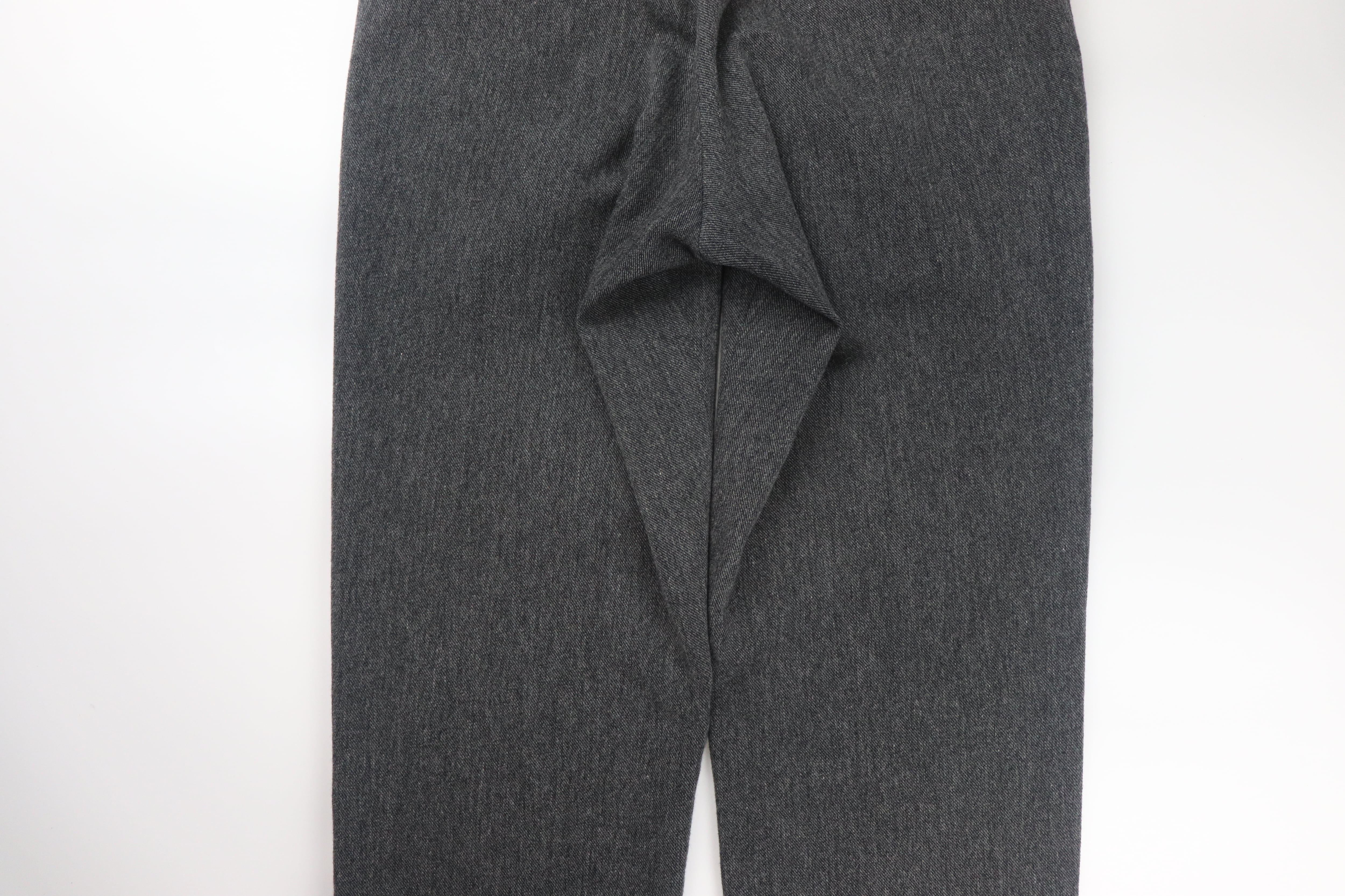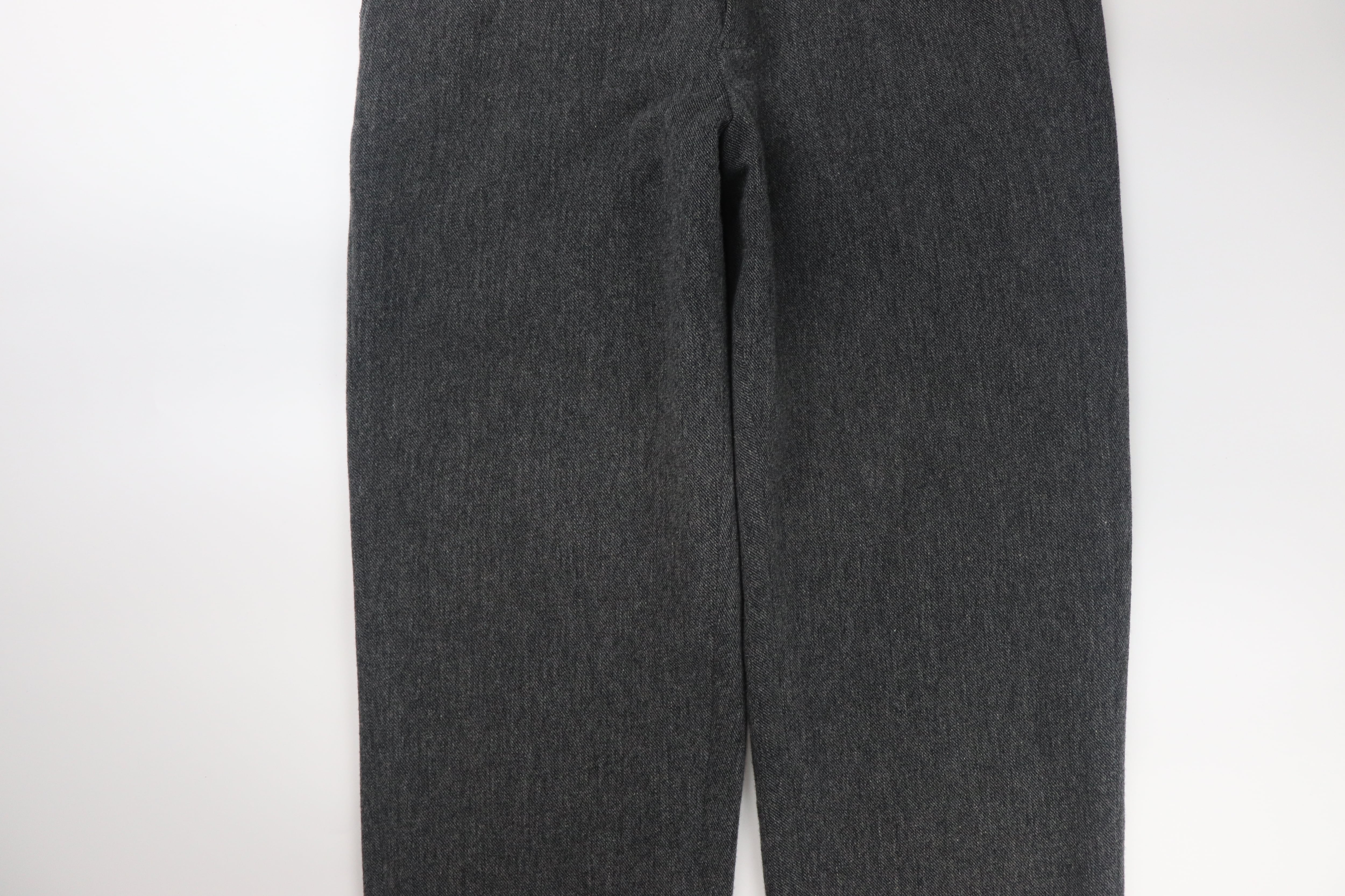 3種類の素材により深みのある色味と厚み・軽さを実現した1着。ウエストはゴムになっていますがベルトループも実用的かつフォーマルな印象を与えます。