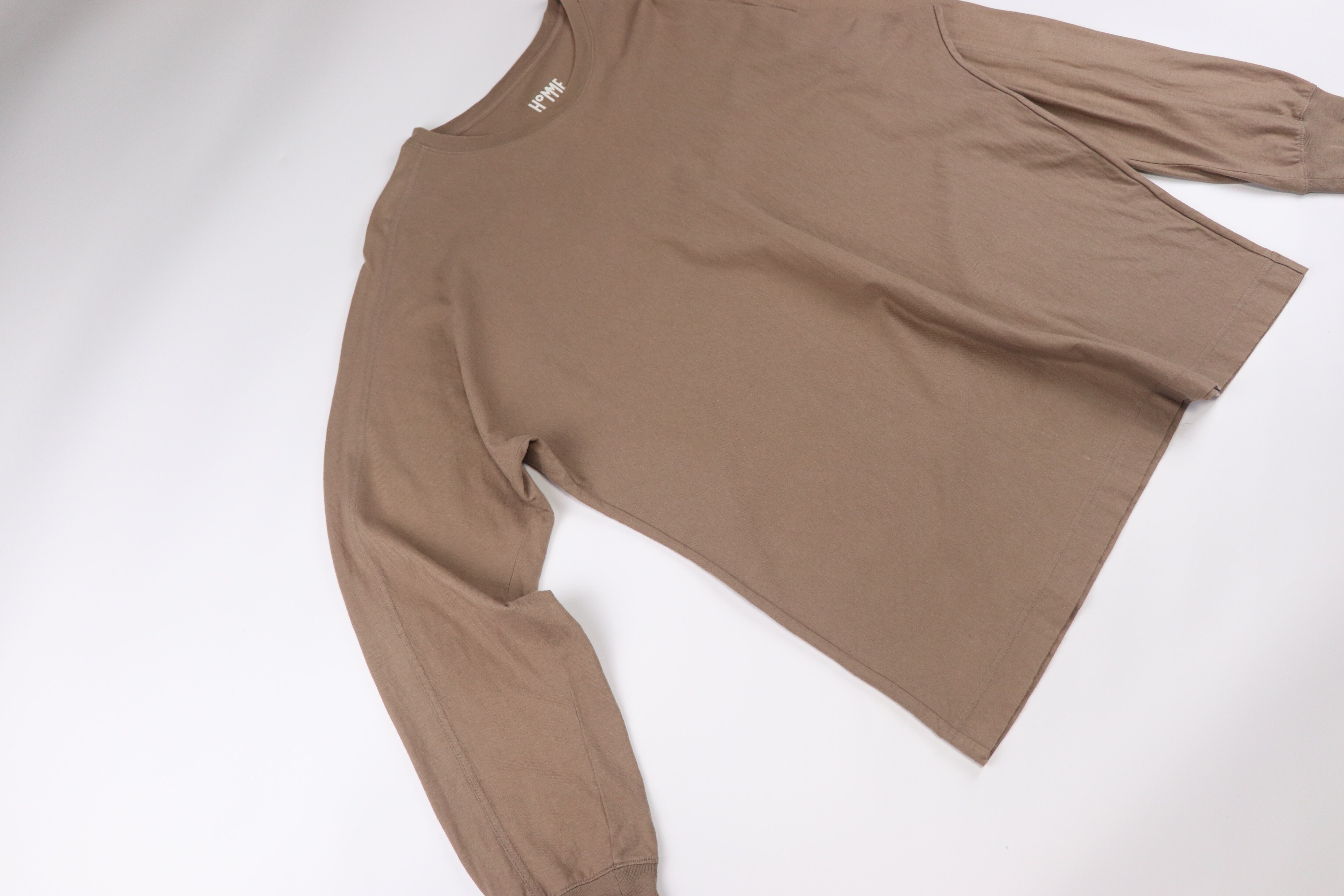 身幅がたっぷりと取られ袖のシームレスな繋ぎ合わせ方はゆったりと着られ、ブランドらしい1着かと。