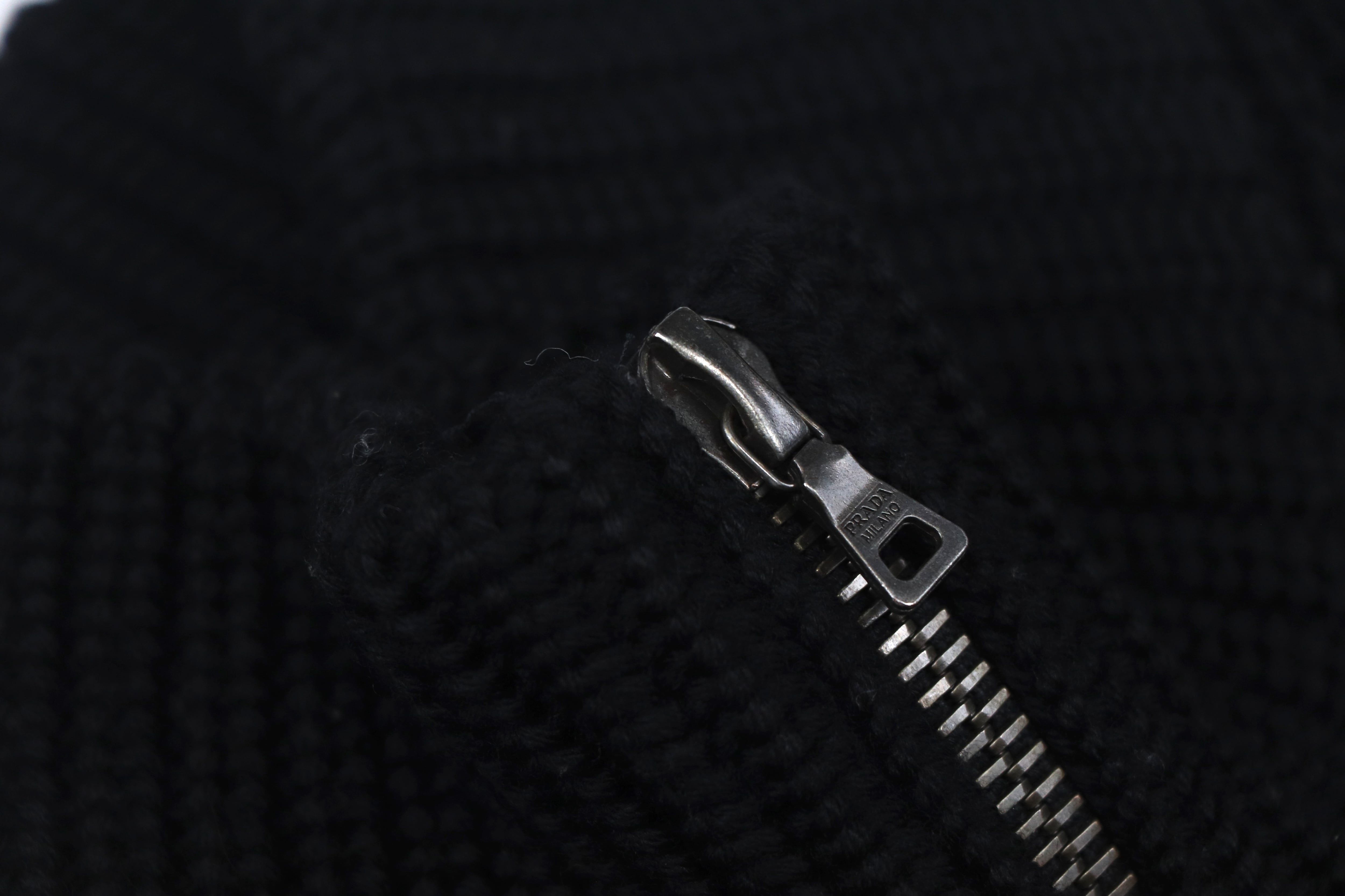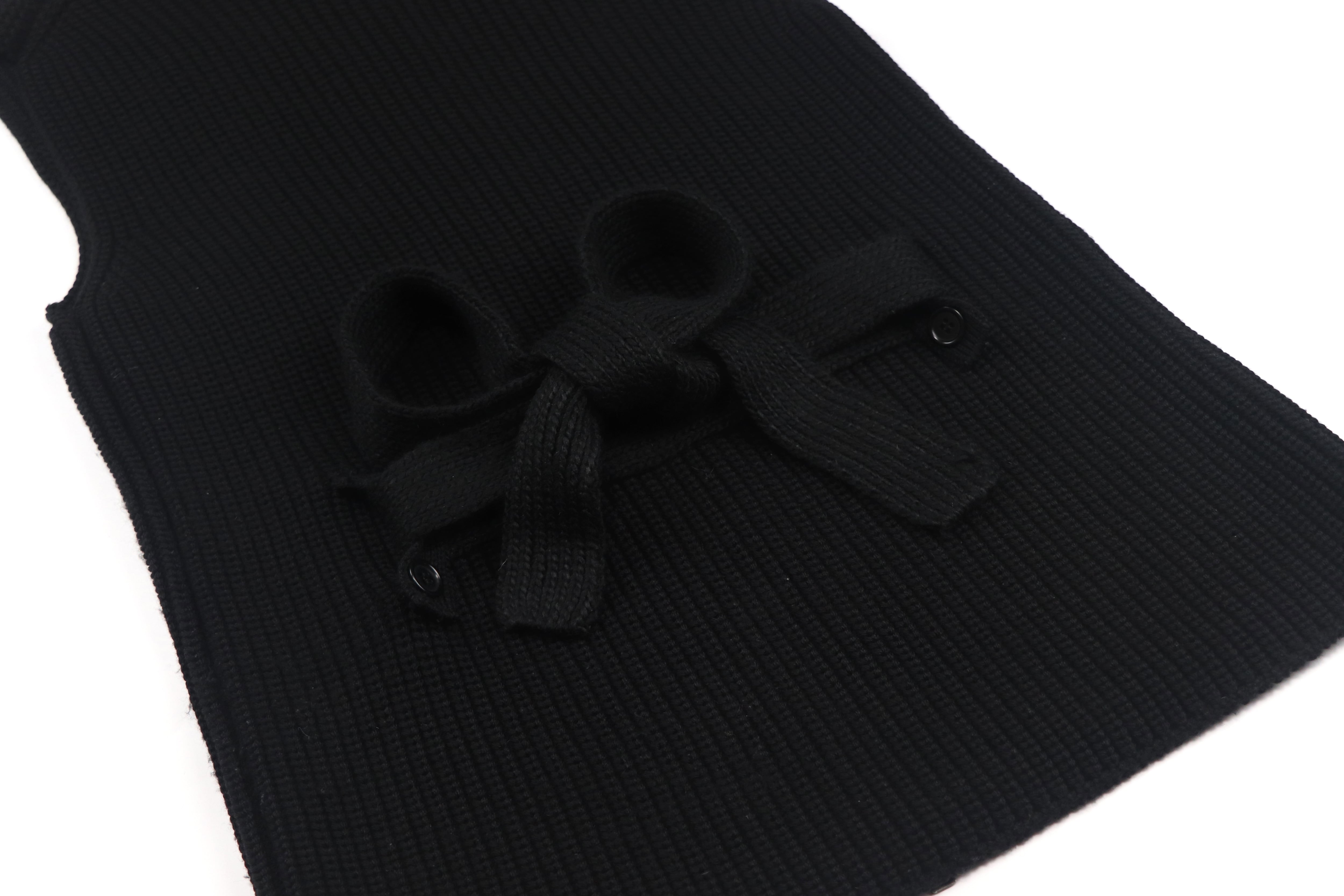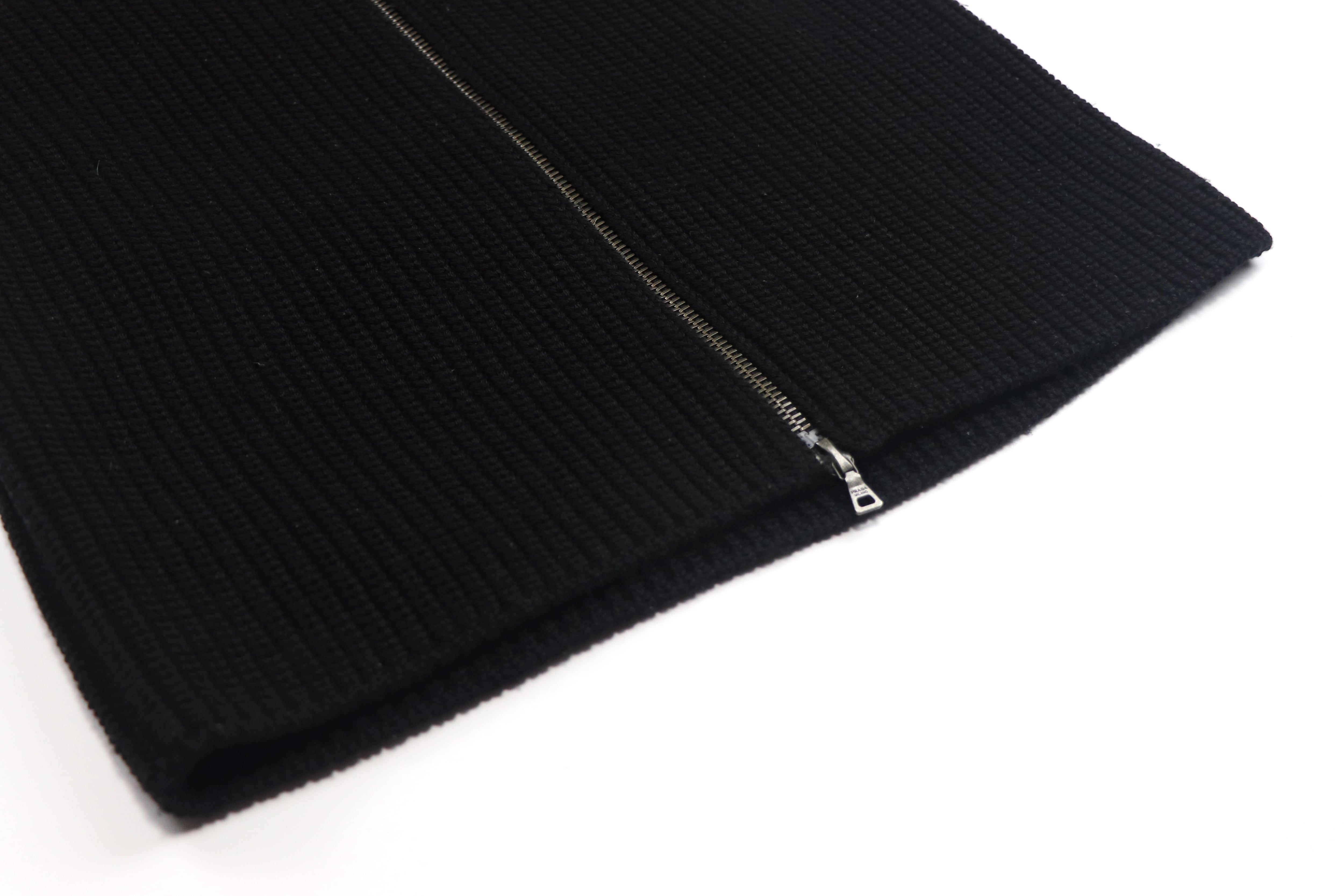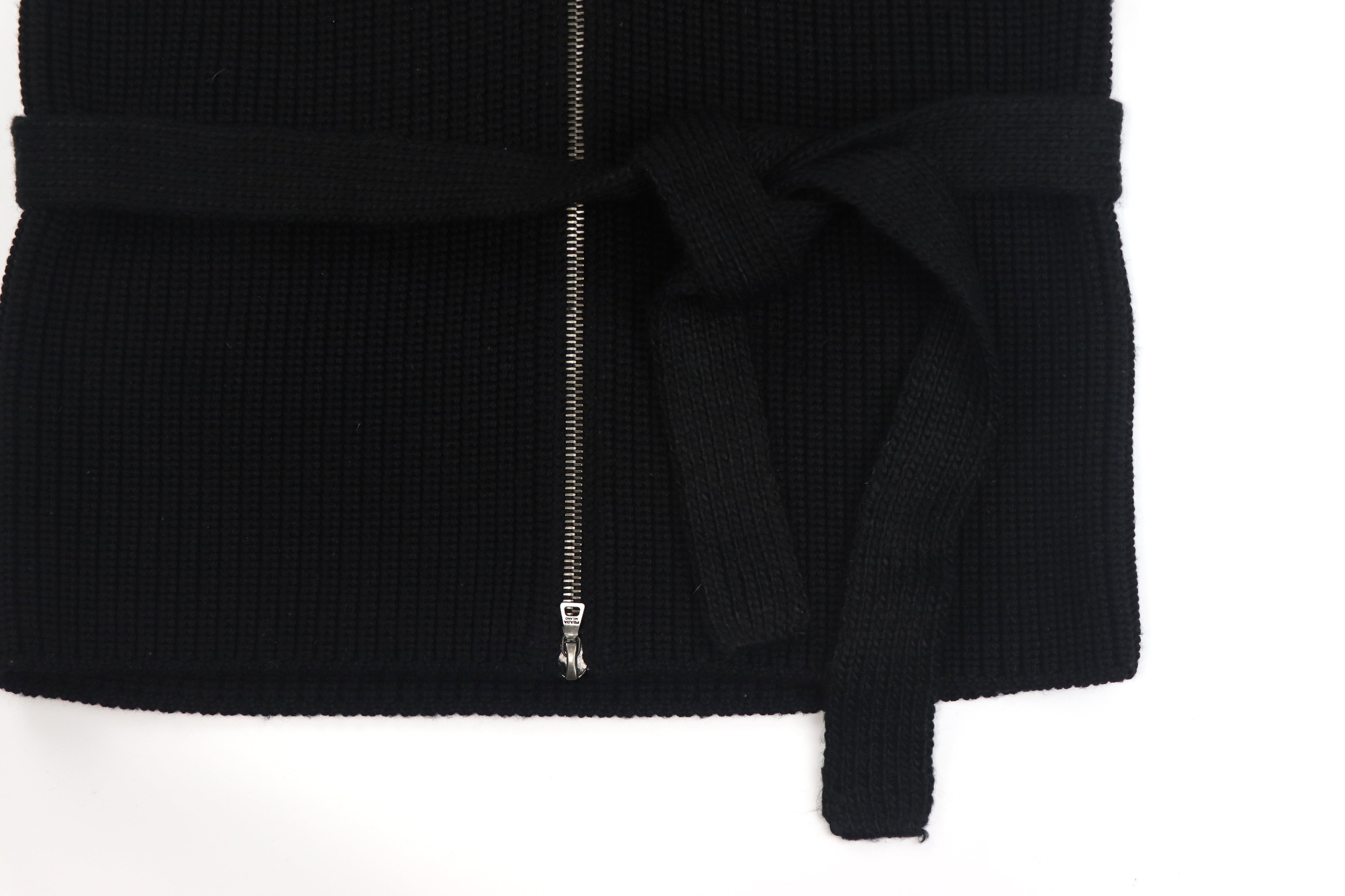 厚めのウールニットにメタルダブルジップを採用したラグジュアリーな1着。バックには取り外し可能な同素材のベルトが付き、巻き方、縛り方で遊べるかと思います。