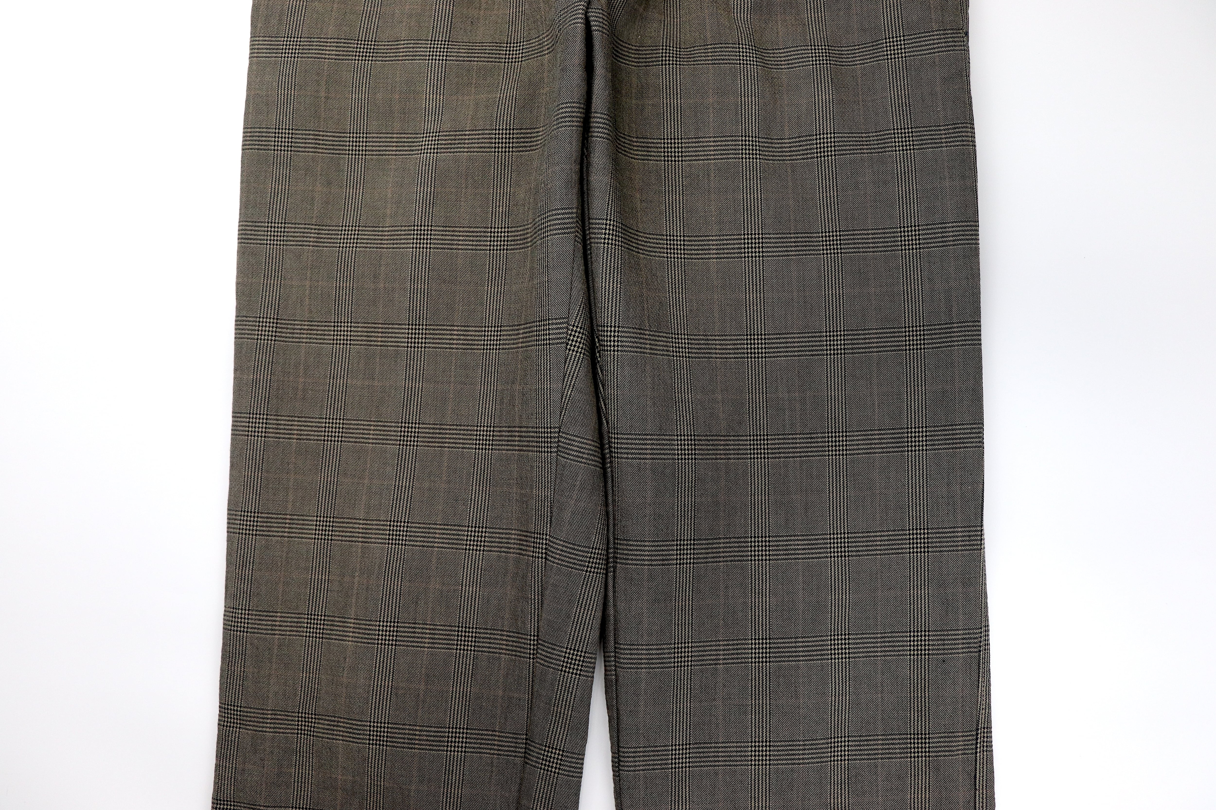 落ち着いた色味のチェックパターンのスラックス。