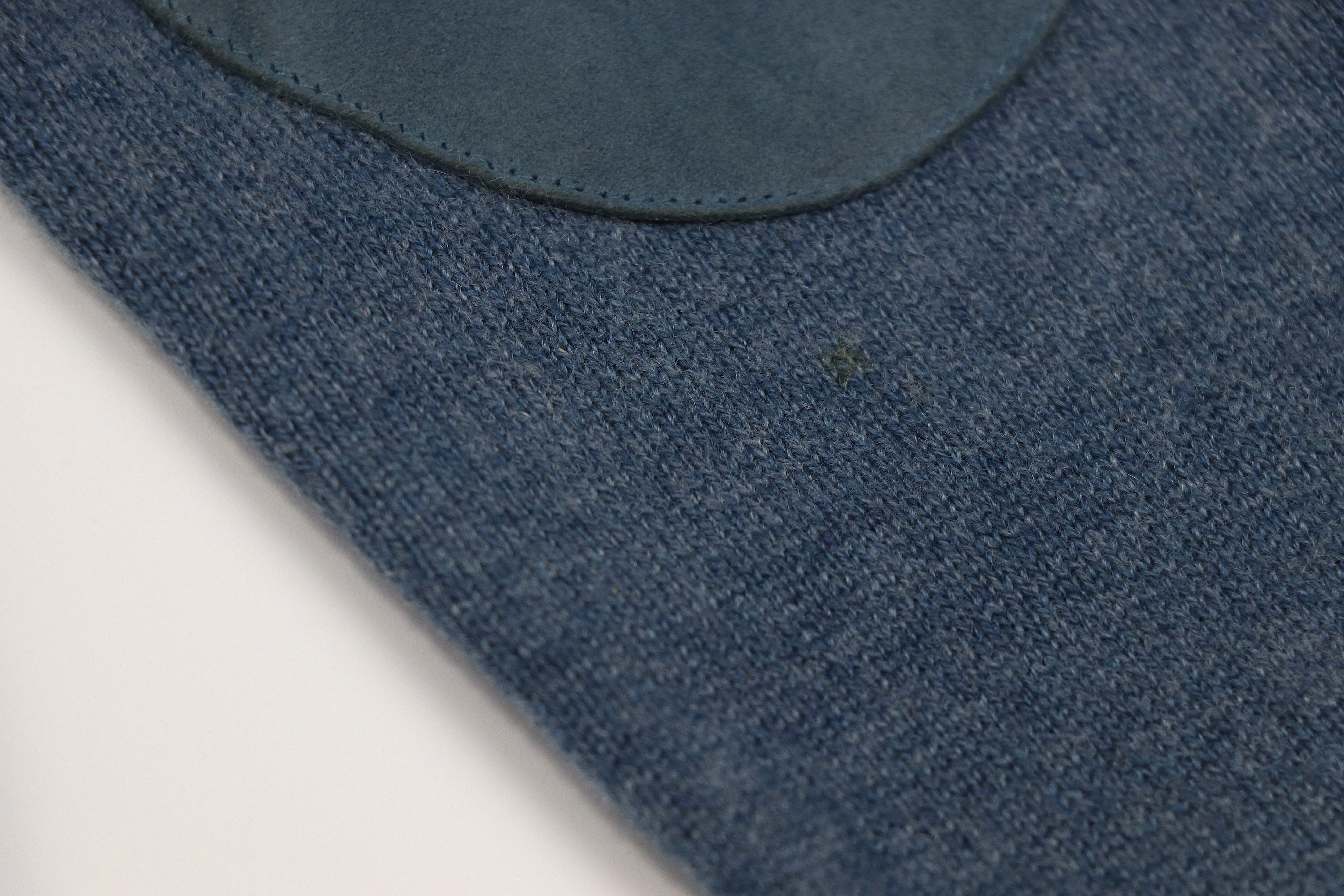 上質で柔らかなカシミヤウールの混合ニット。スエード素材のエルボーパッチが当てられ着るほどに味わいの出る1着になるかと思います。