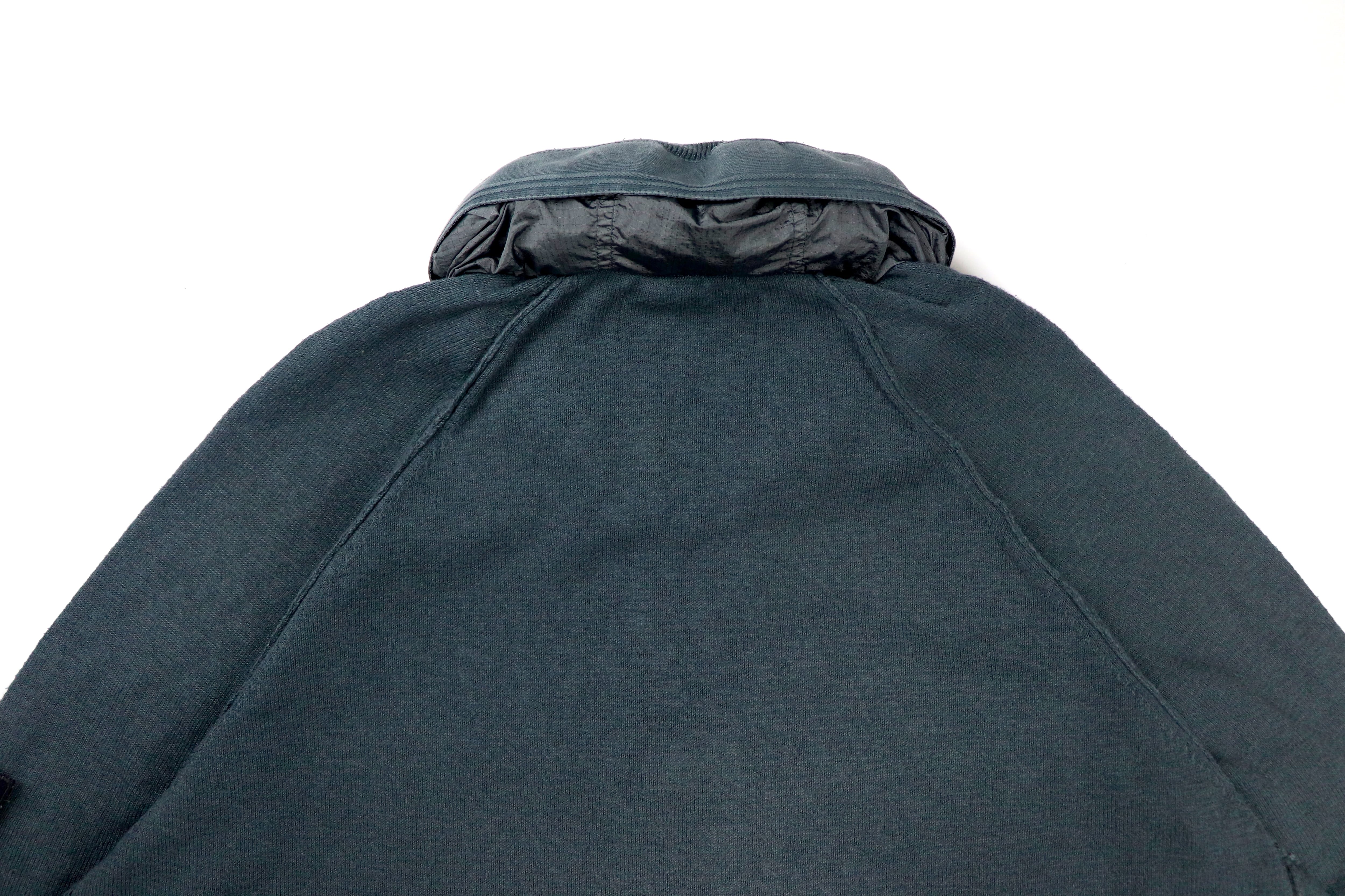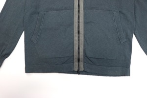 絶妙な色味のナイロンフードジップニットフーディー。もちろんフードは収納可能でしまった時の首元のボリューム感もたまりません。ダブルジップなのもgood.