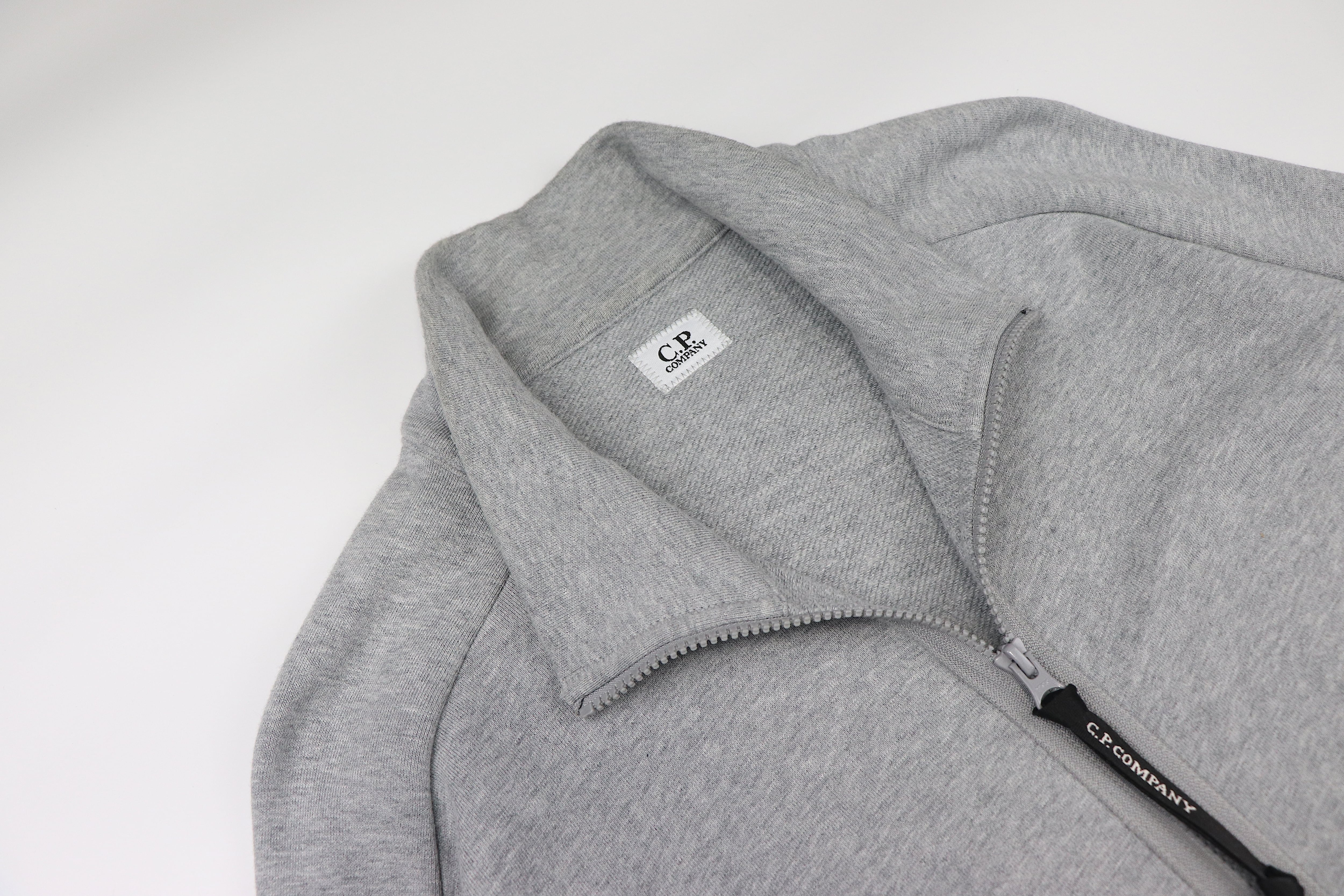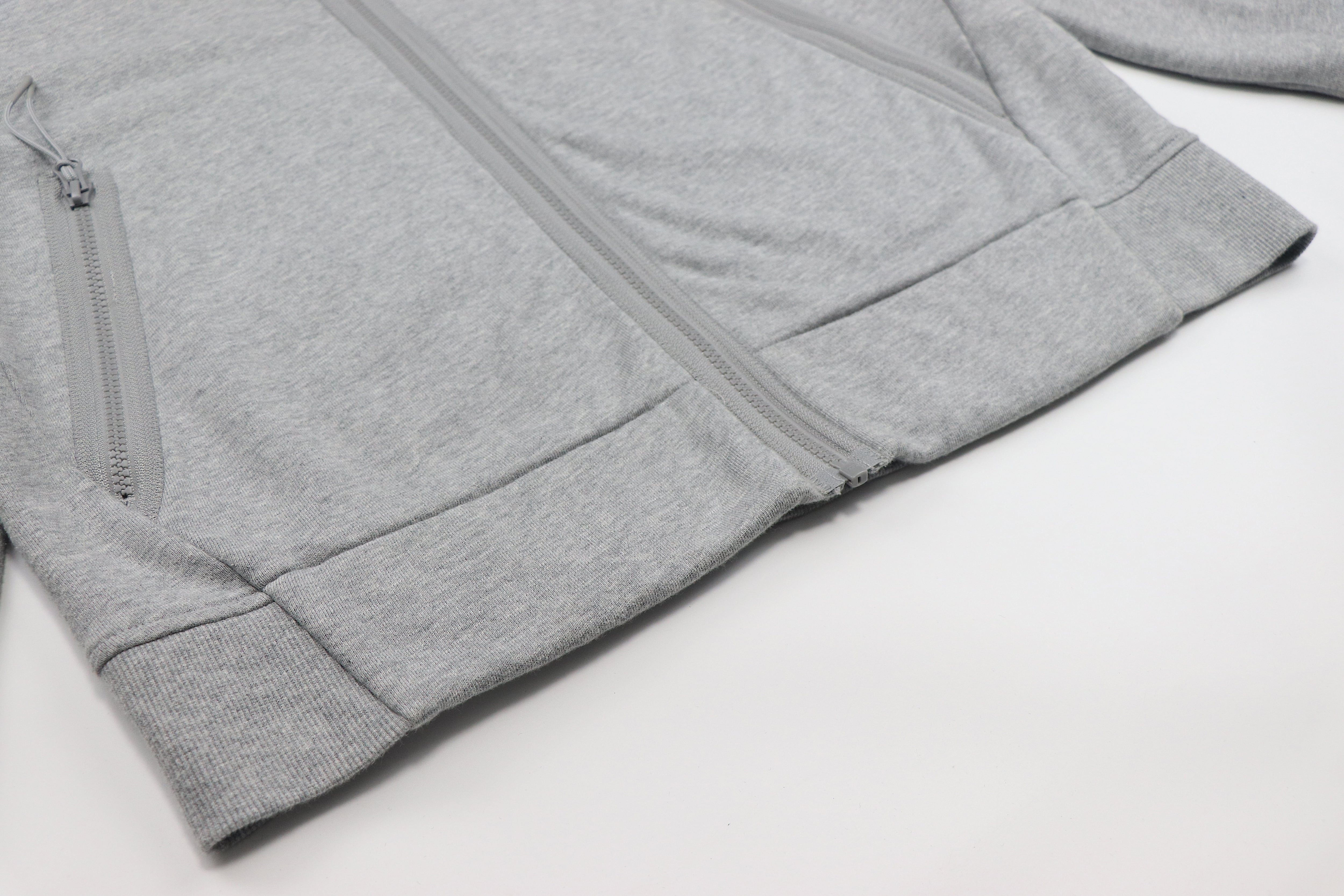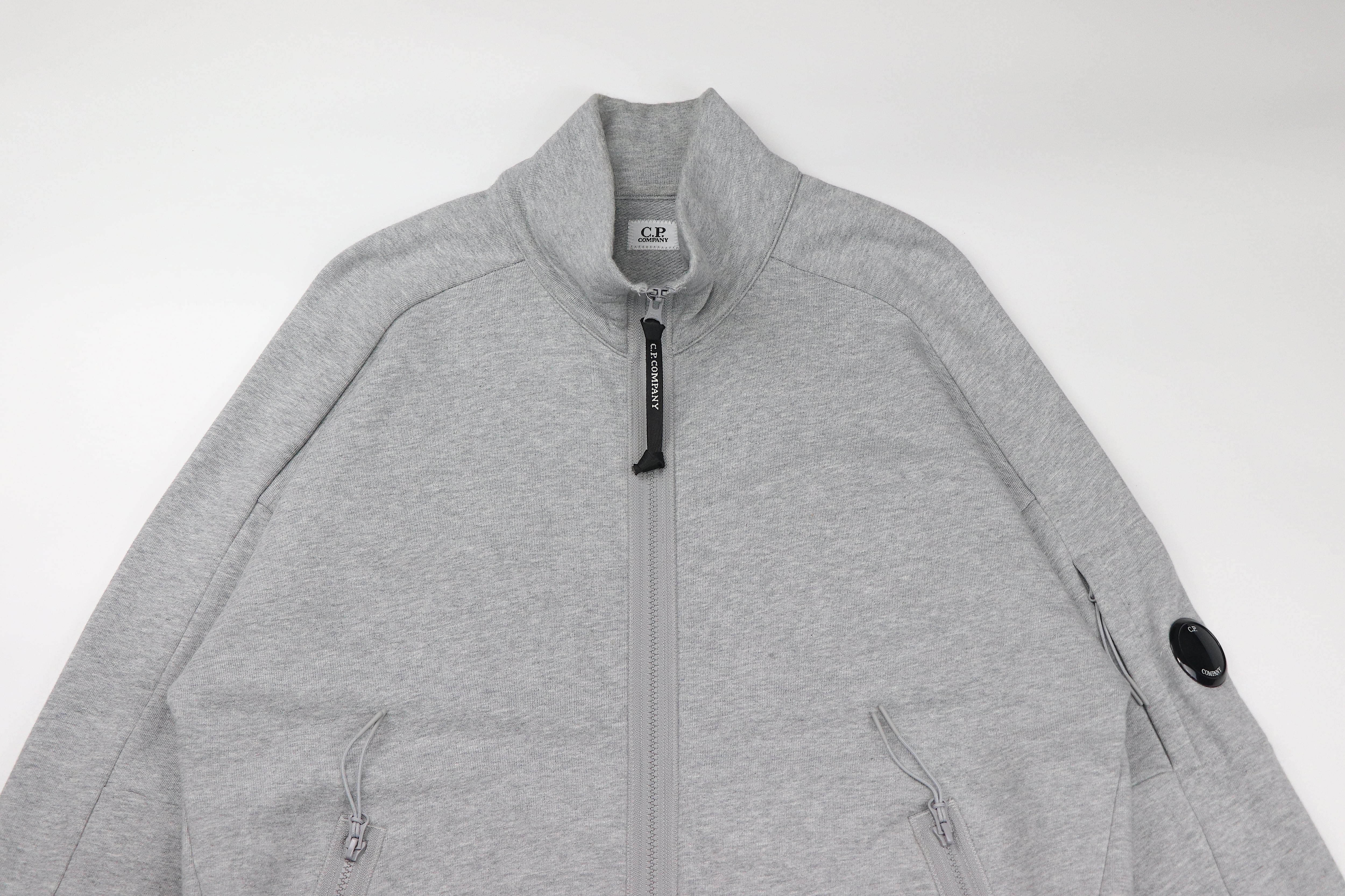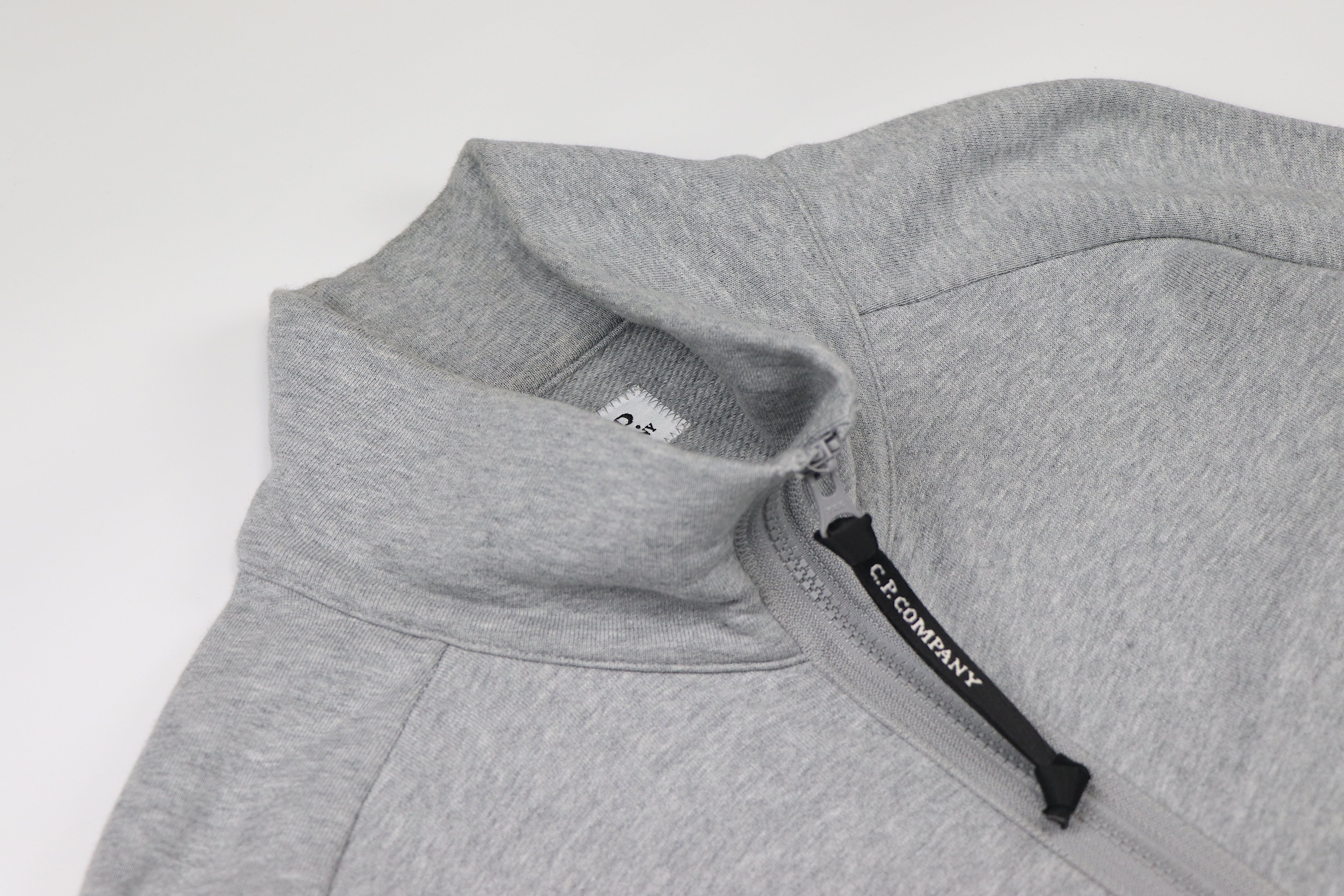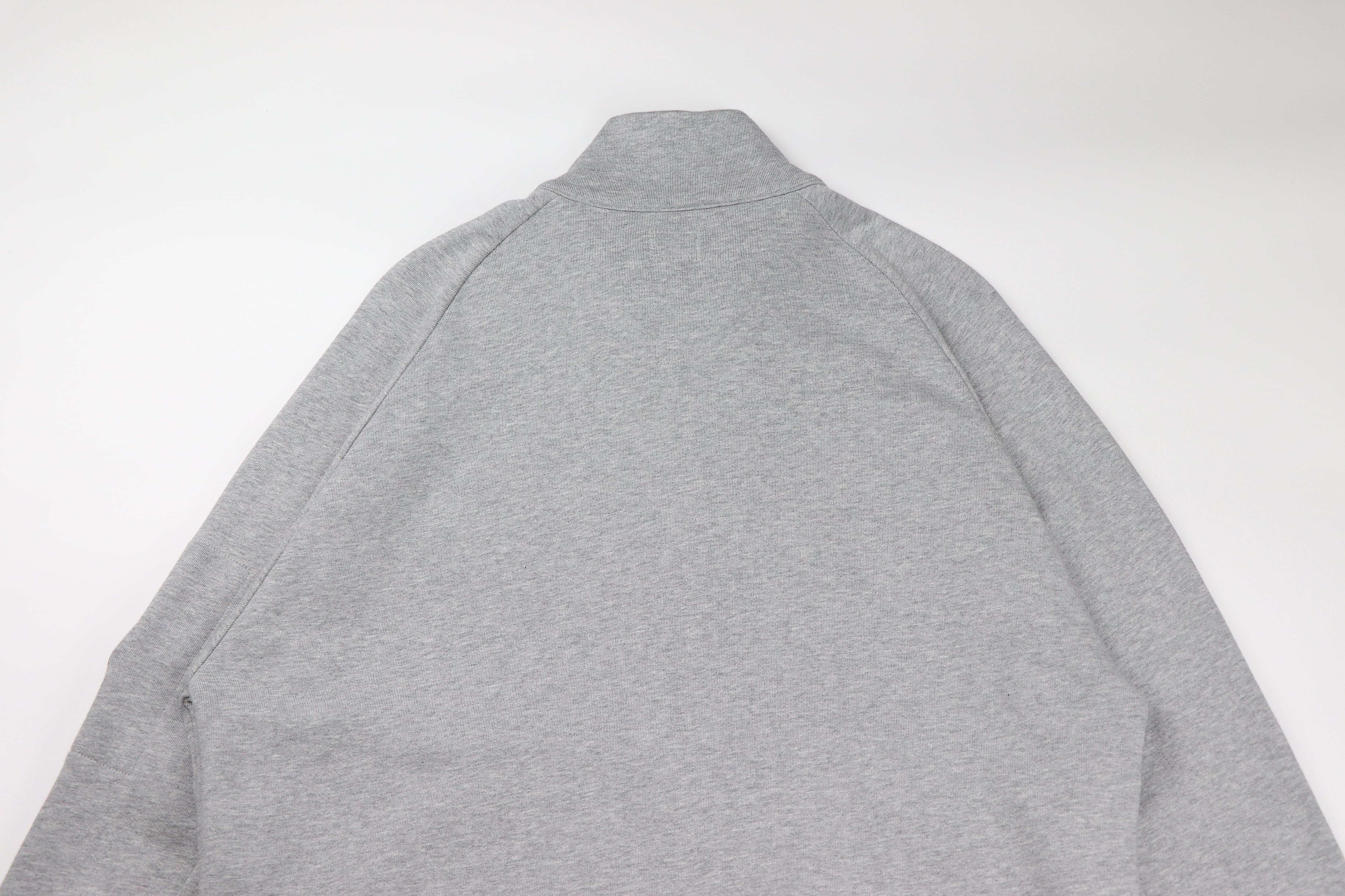 着やすい形のレンズジップスウェット。袖がしっかり立ってくれるので首元に立体感が生まれます。