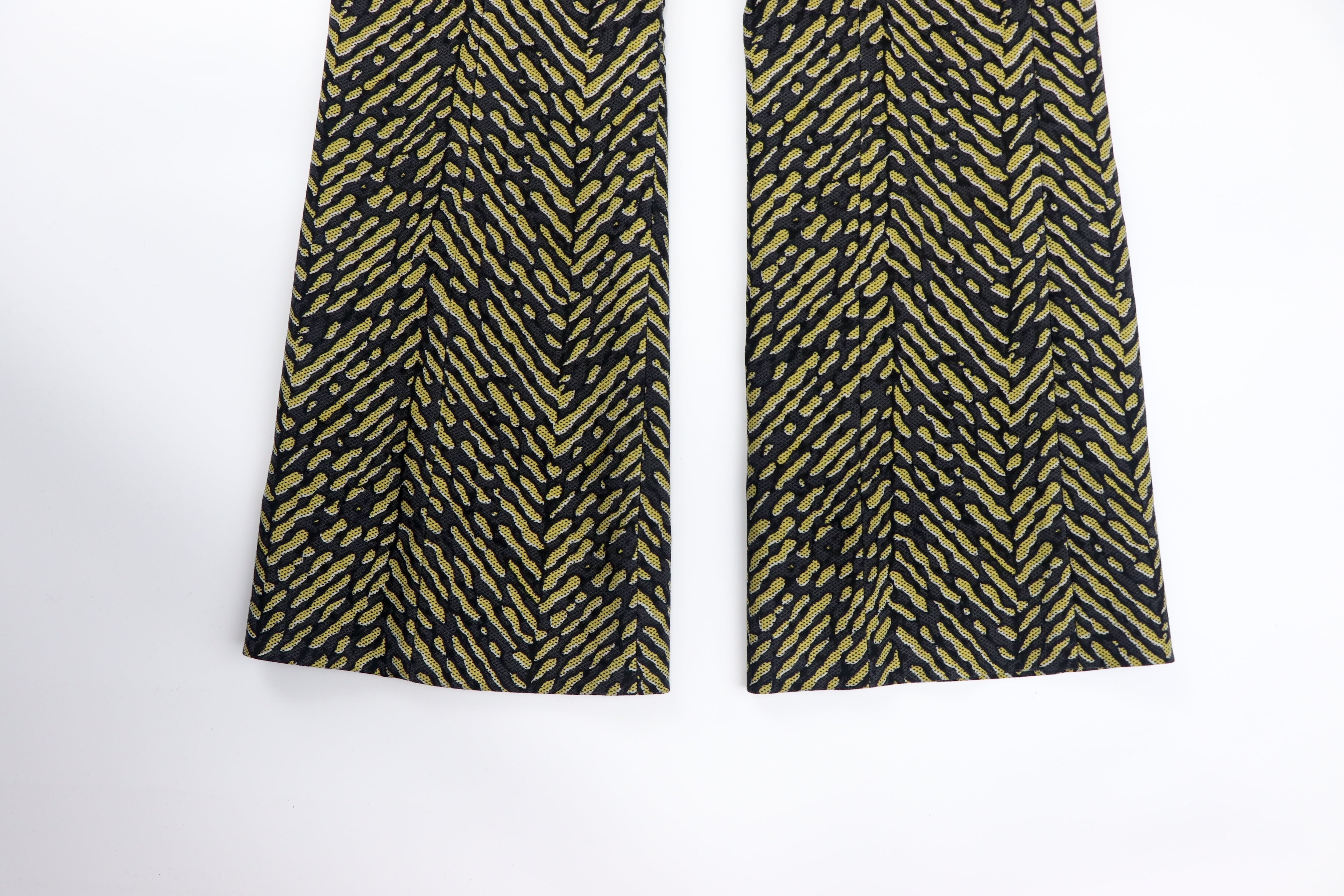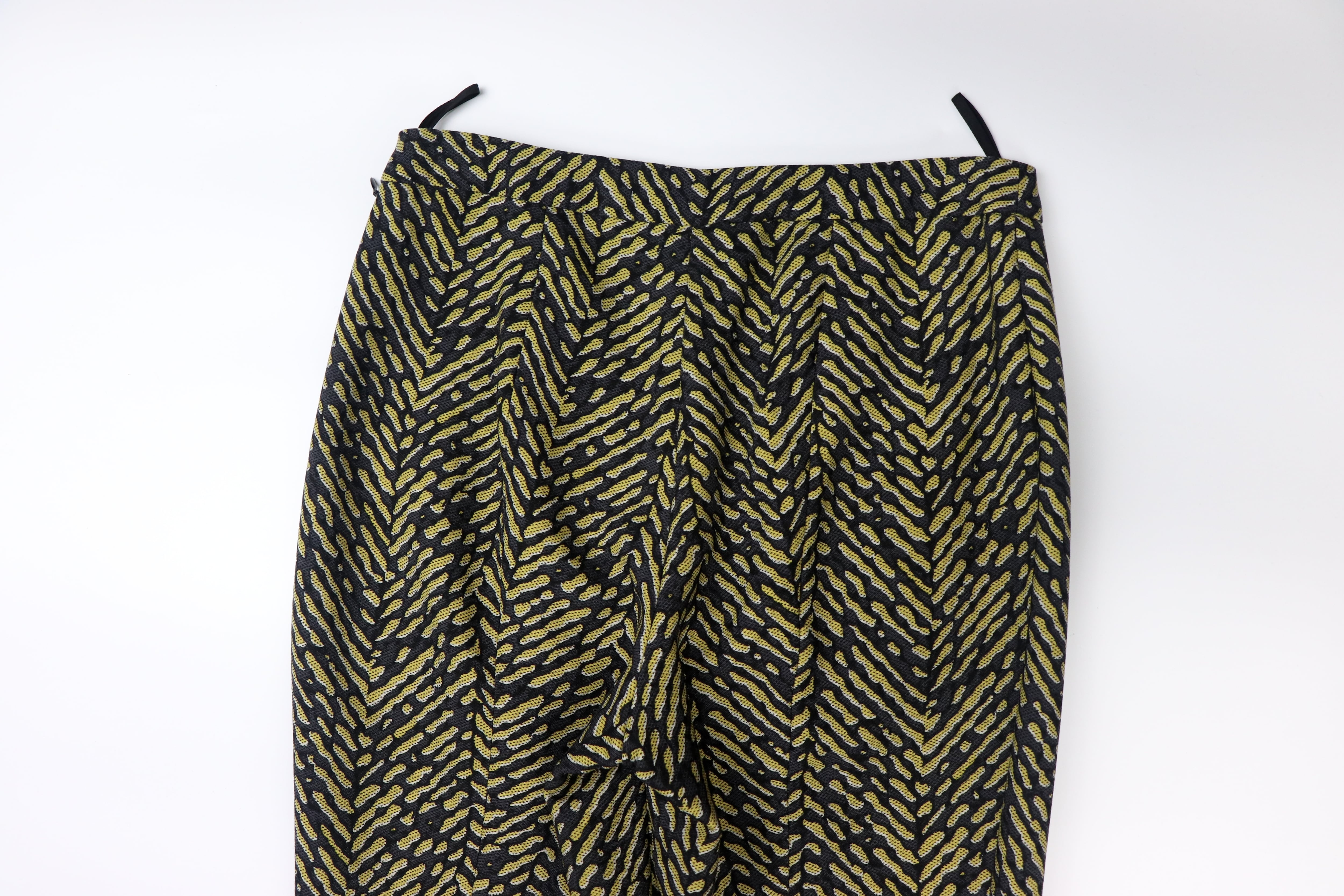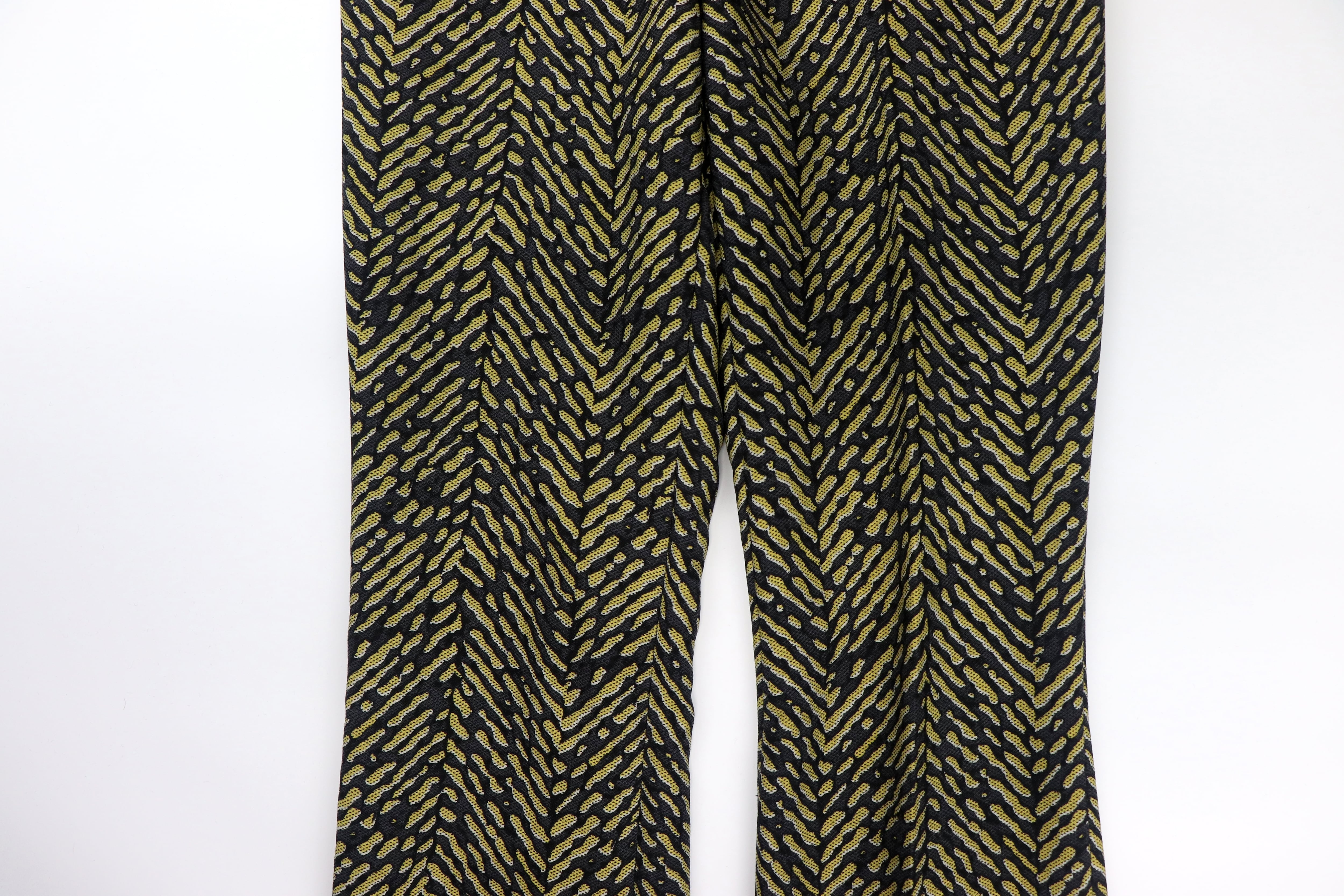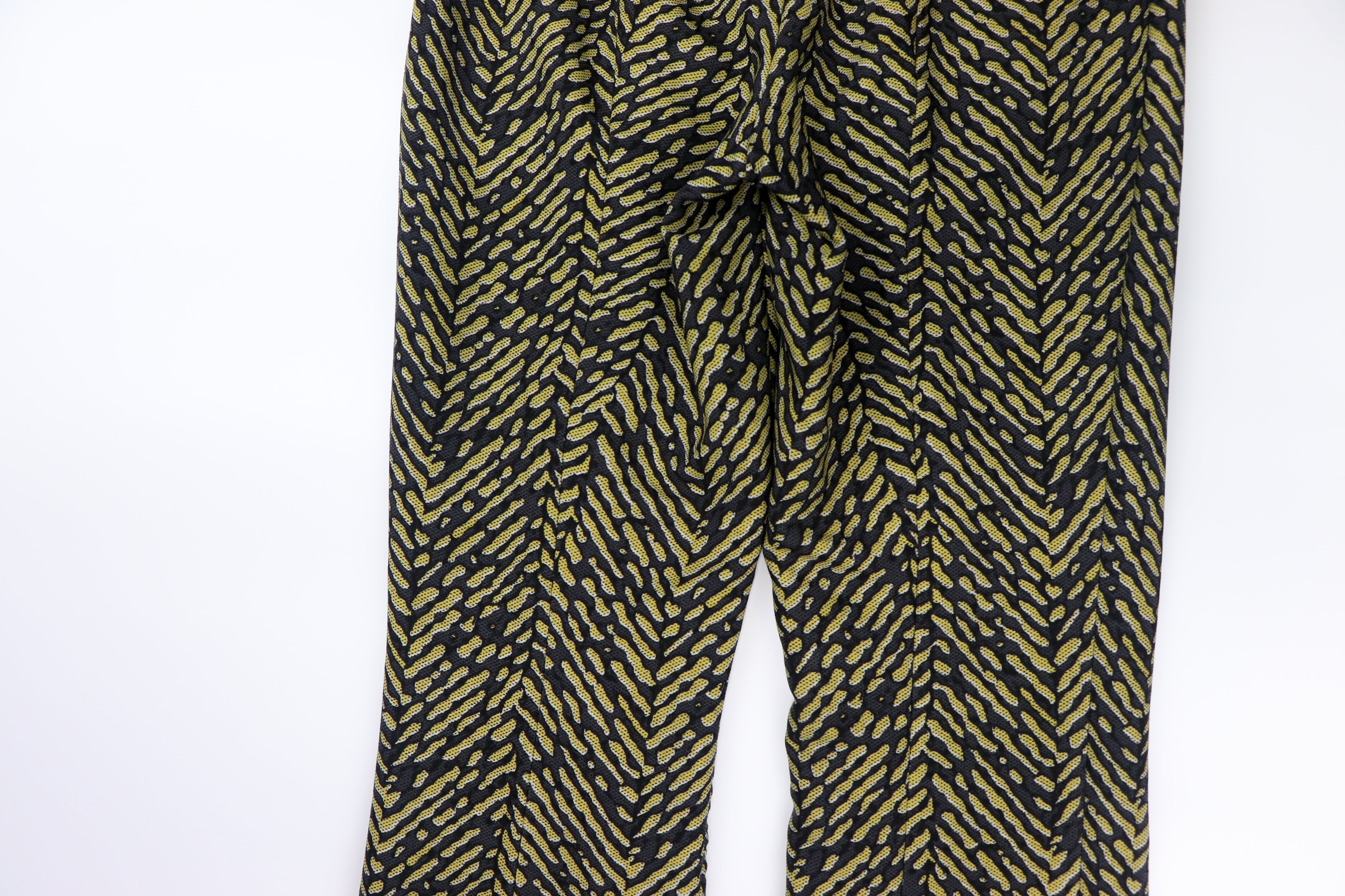 織りで表現されたかのような立体的な総柄プリントのスラックスパンツ。形も非常に綺麗です。