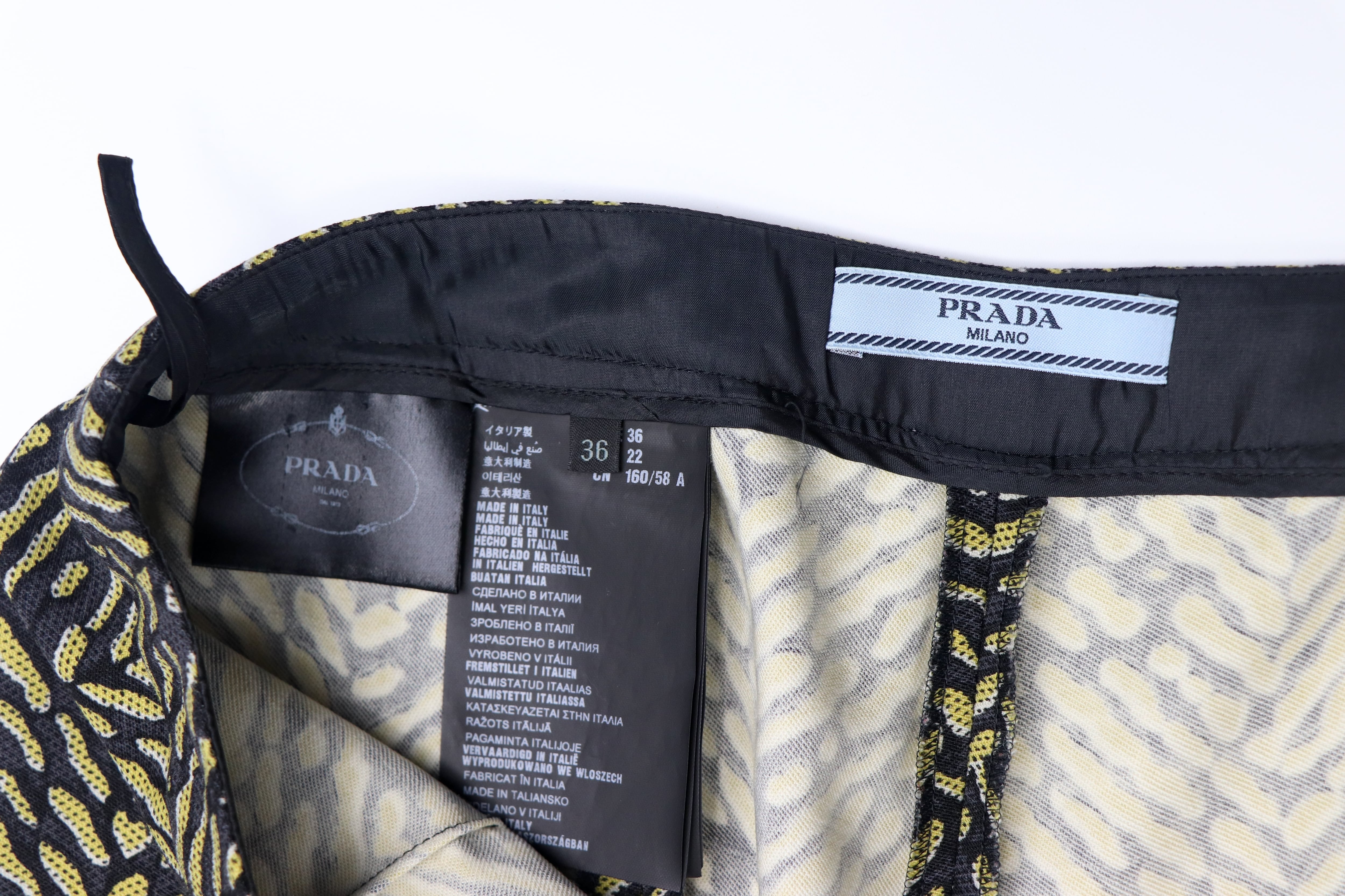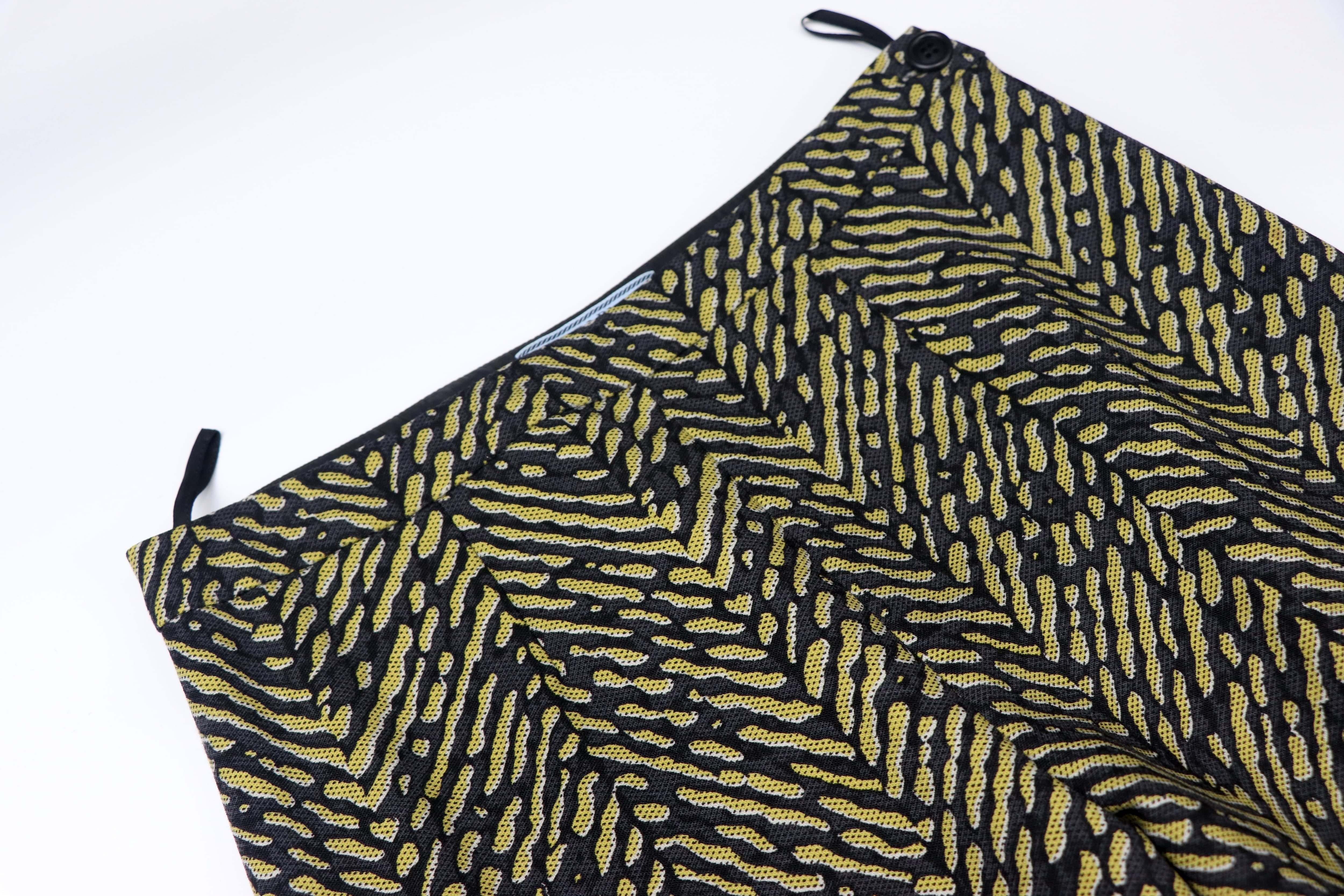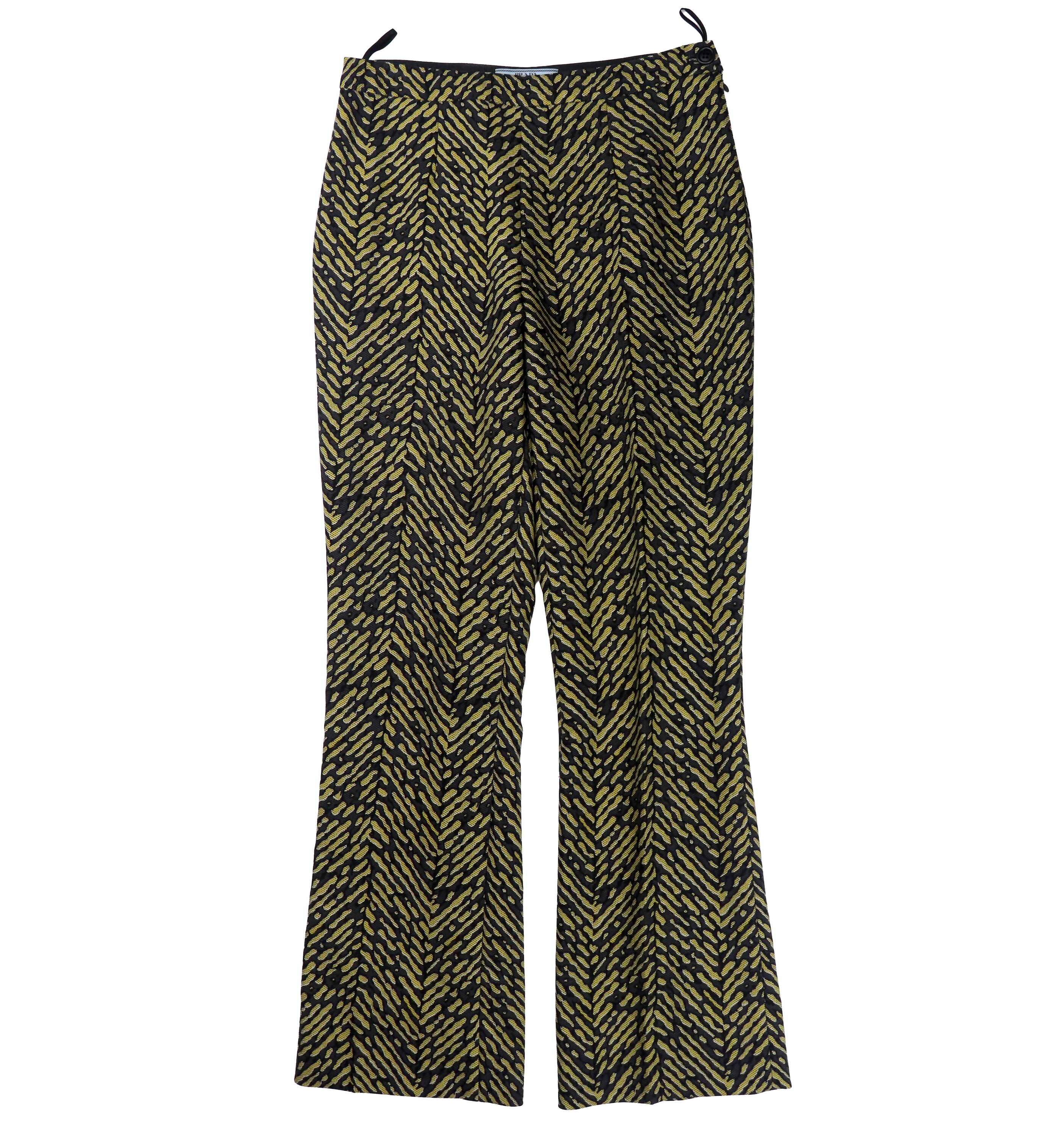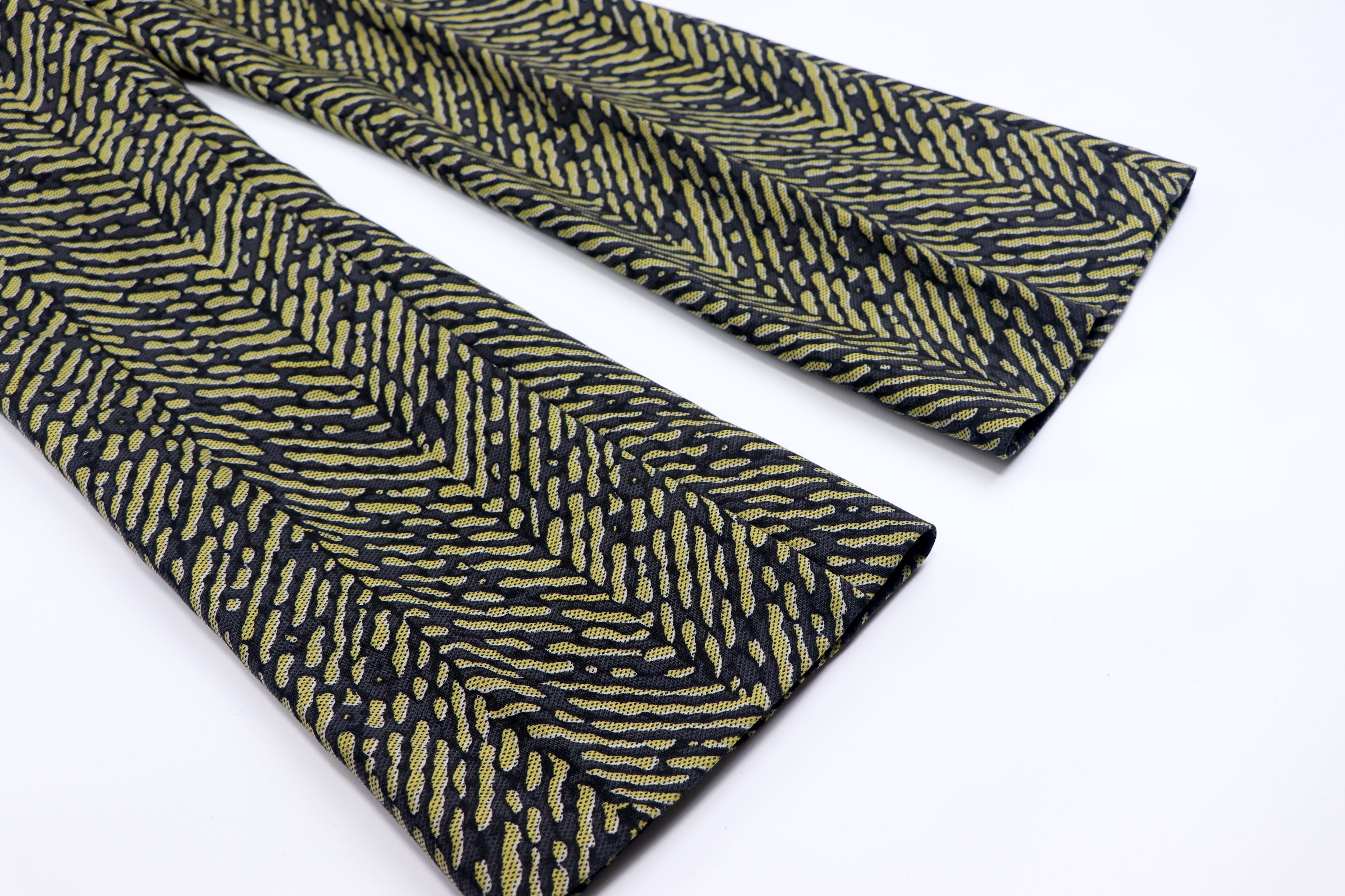 織りで表現されたかのような立体的な総柄プリントのスラックスパンツ。形も非常に綺麗です。