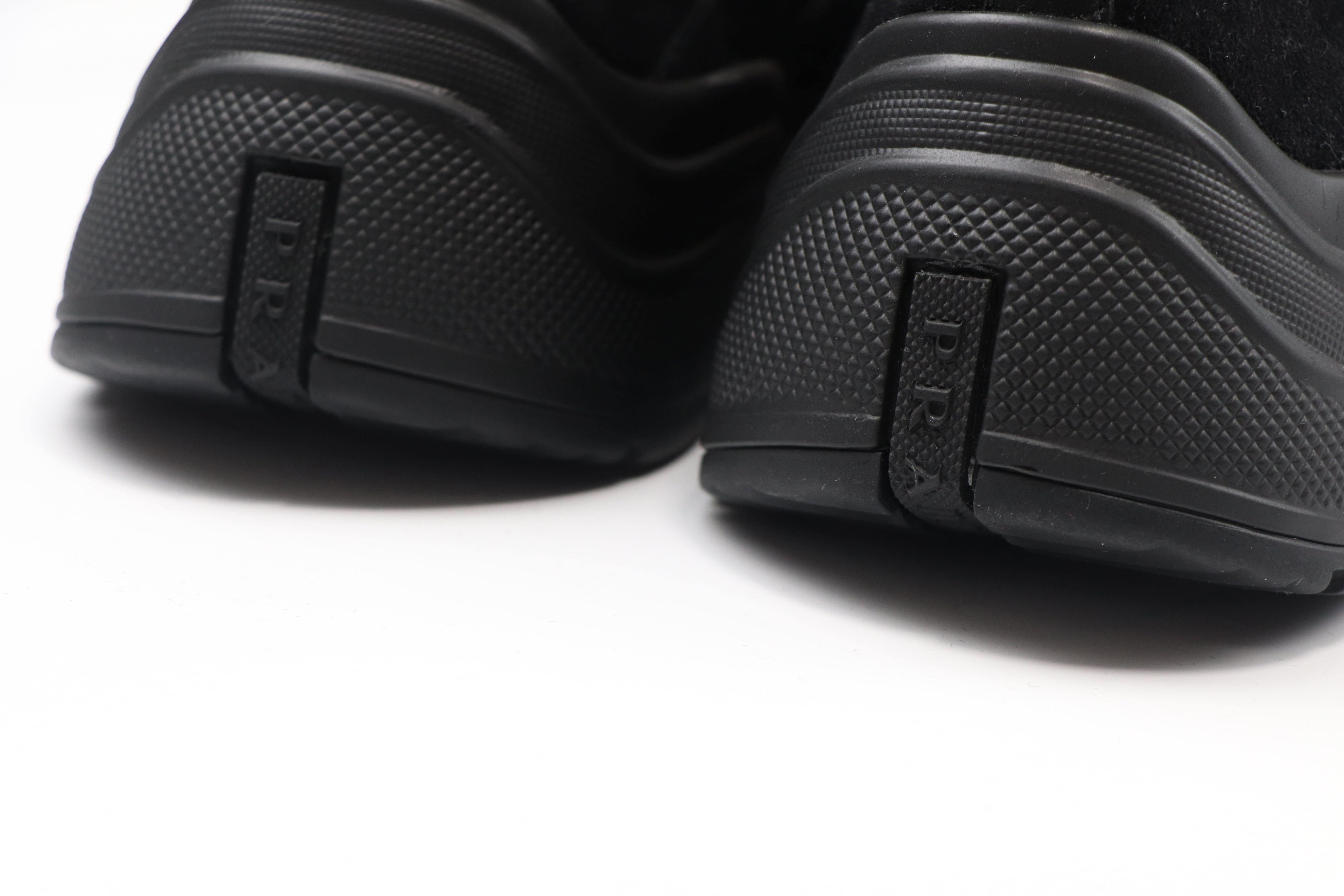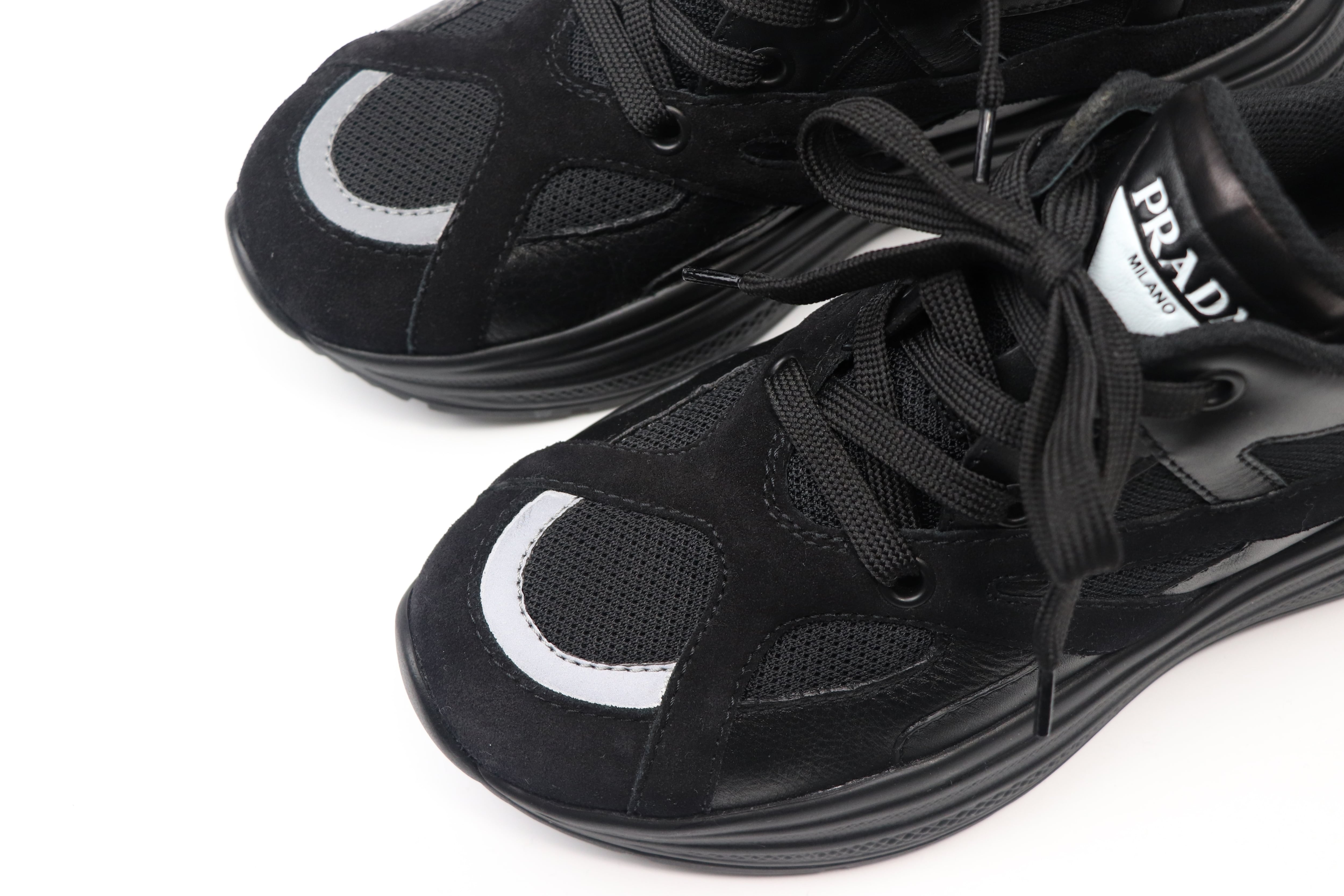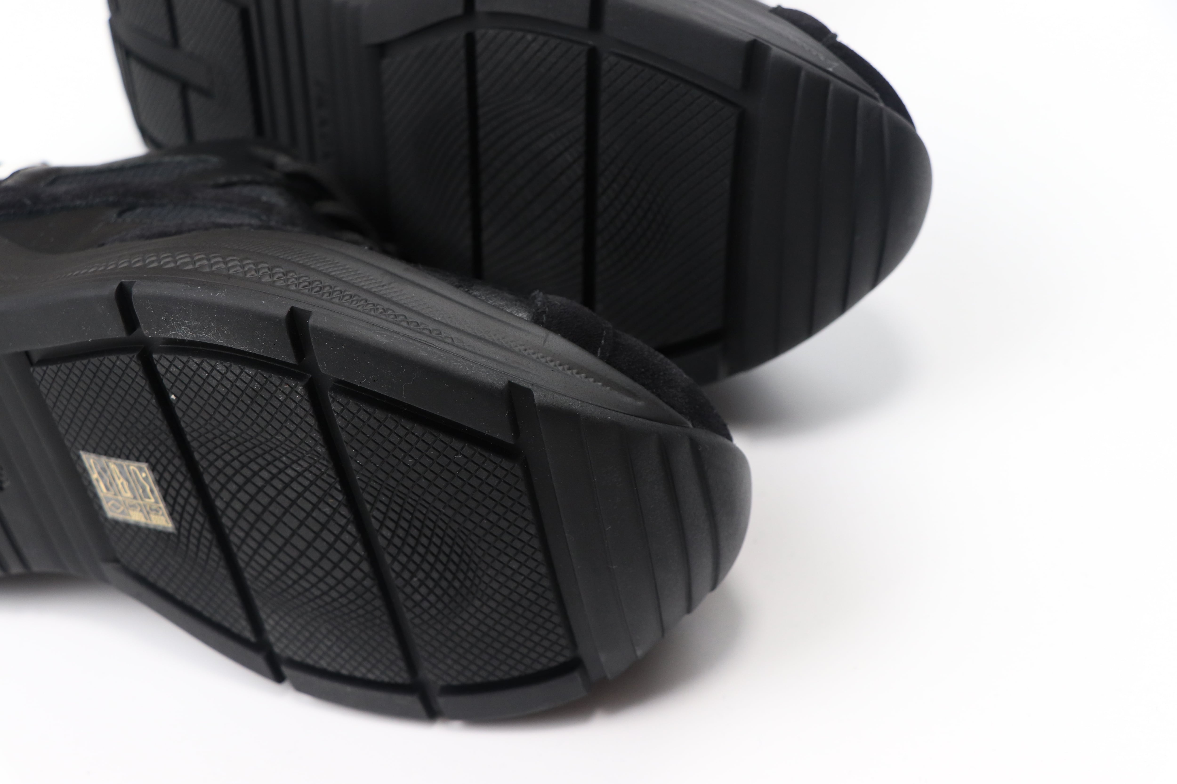 スエード生地にレザー、メッシュとボリュームのあるソールが印象的な一足。つま先部分にはリフレクティブパーツがついており昼夜で印象の変わるのもポイントです。