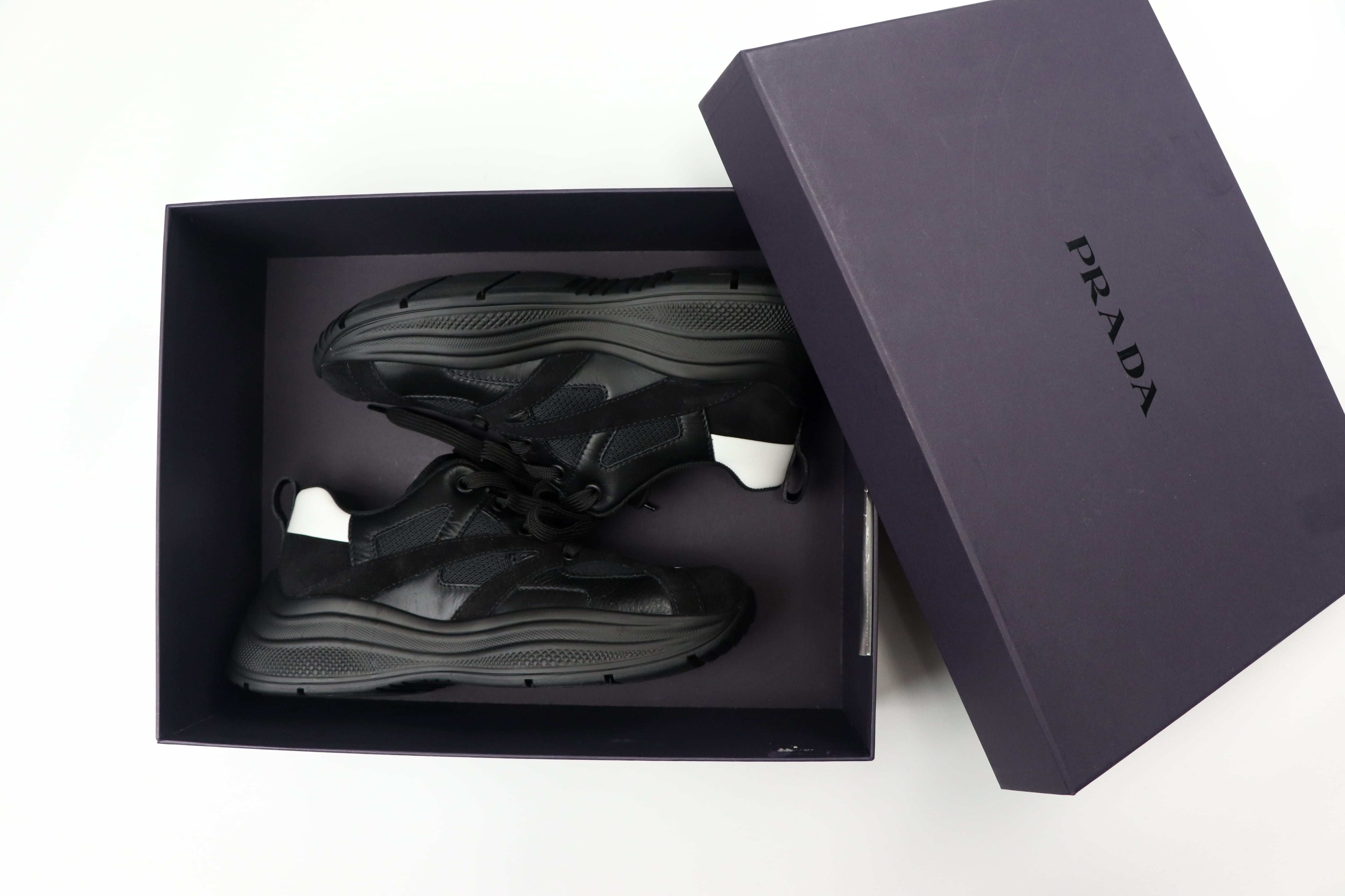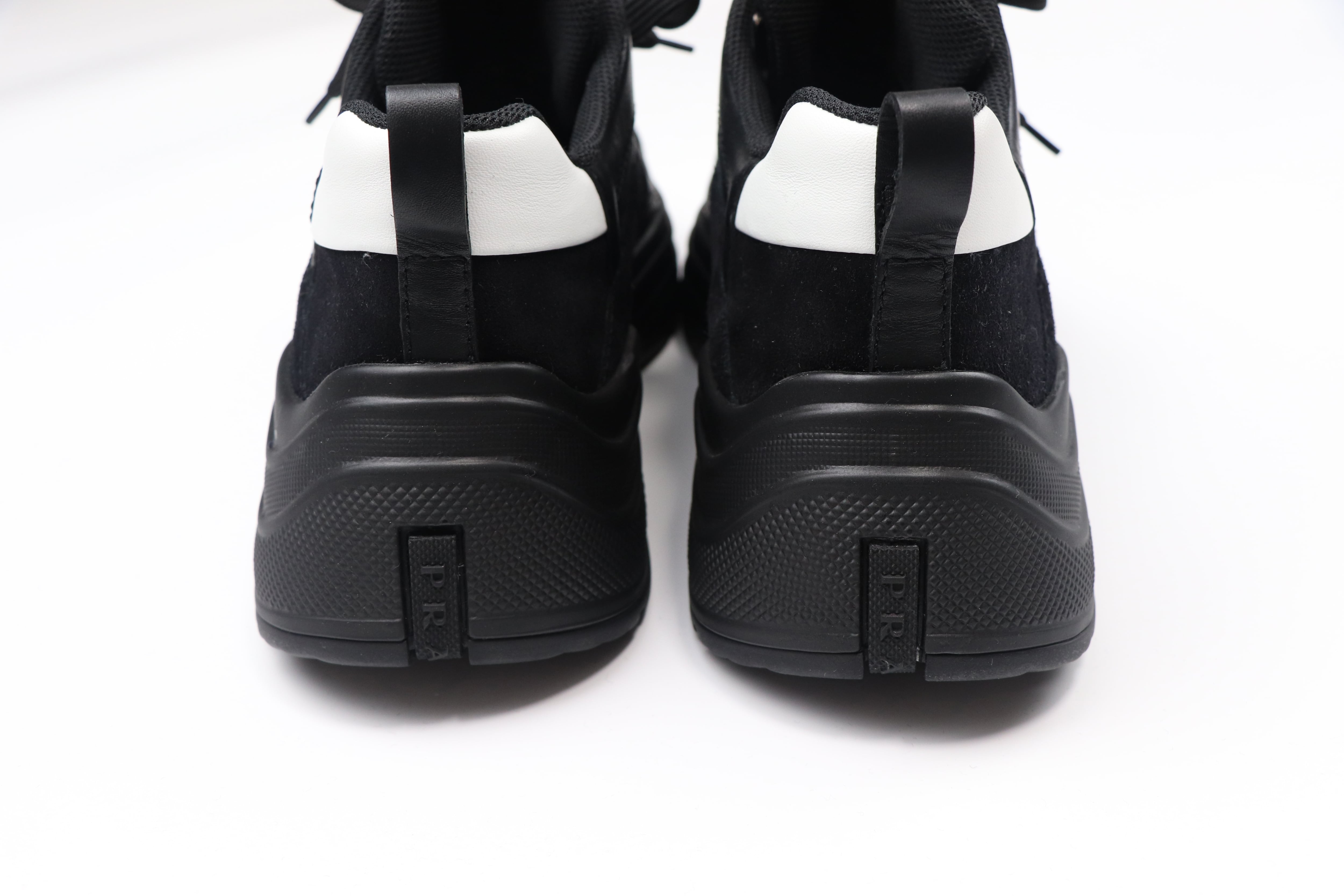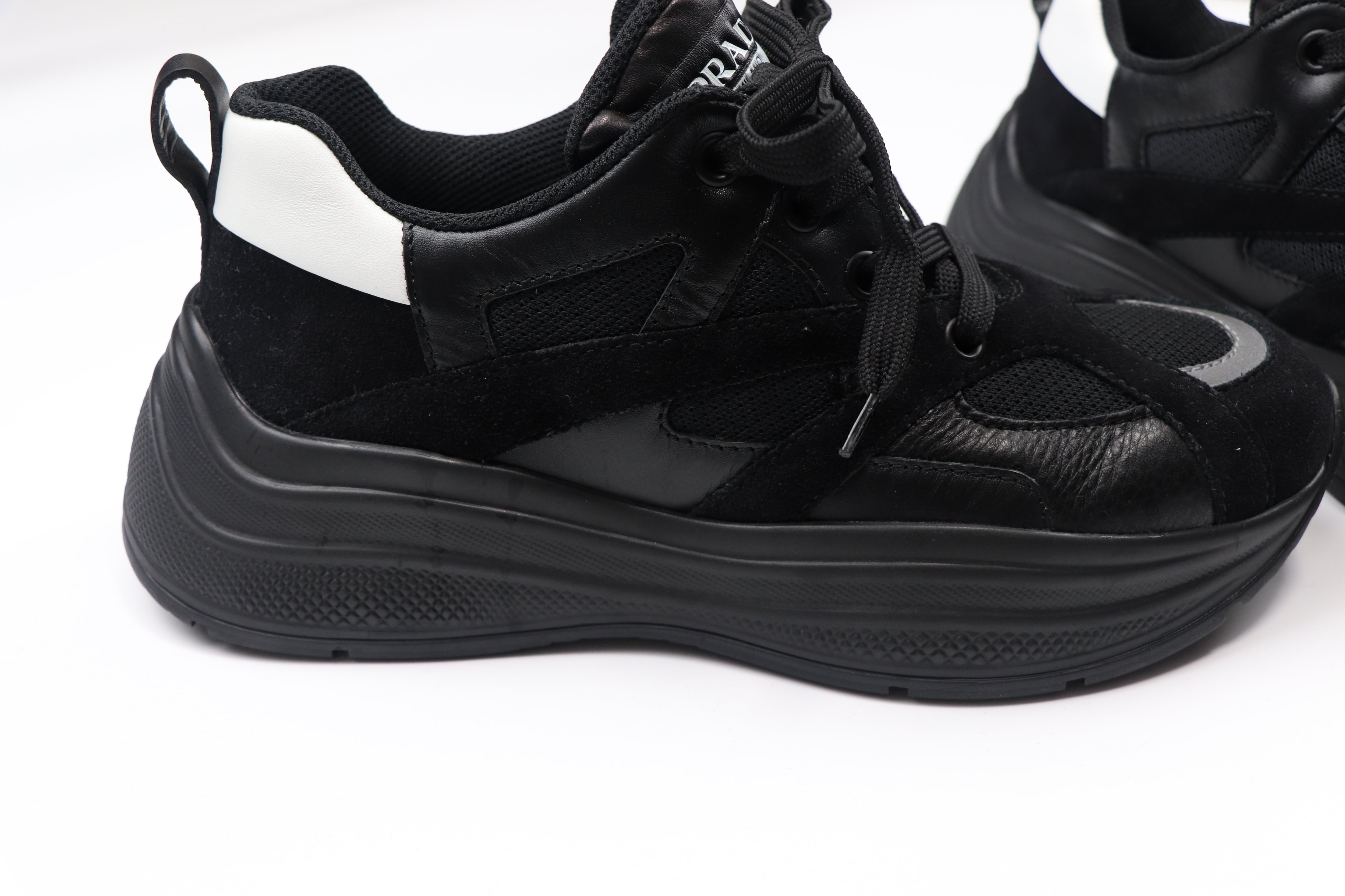 スエード生地にレザー、メッシュとボリュームのあるソールが印象的な一足。つま先部分にはリフレクティブパーツがついており昼夜で印象の変わるのもポイントです。
