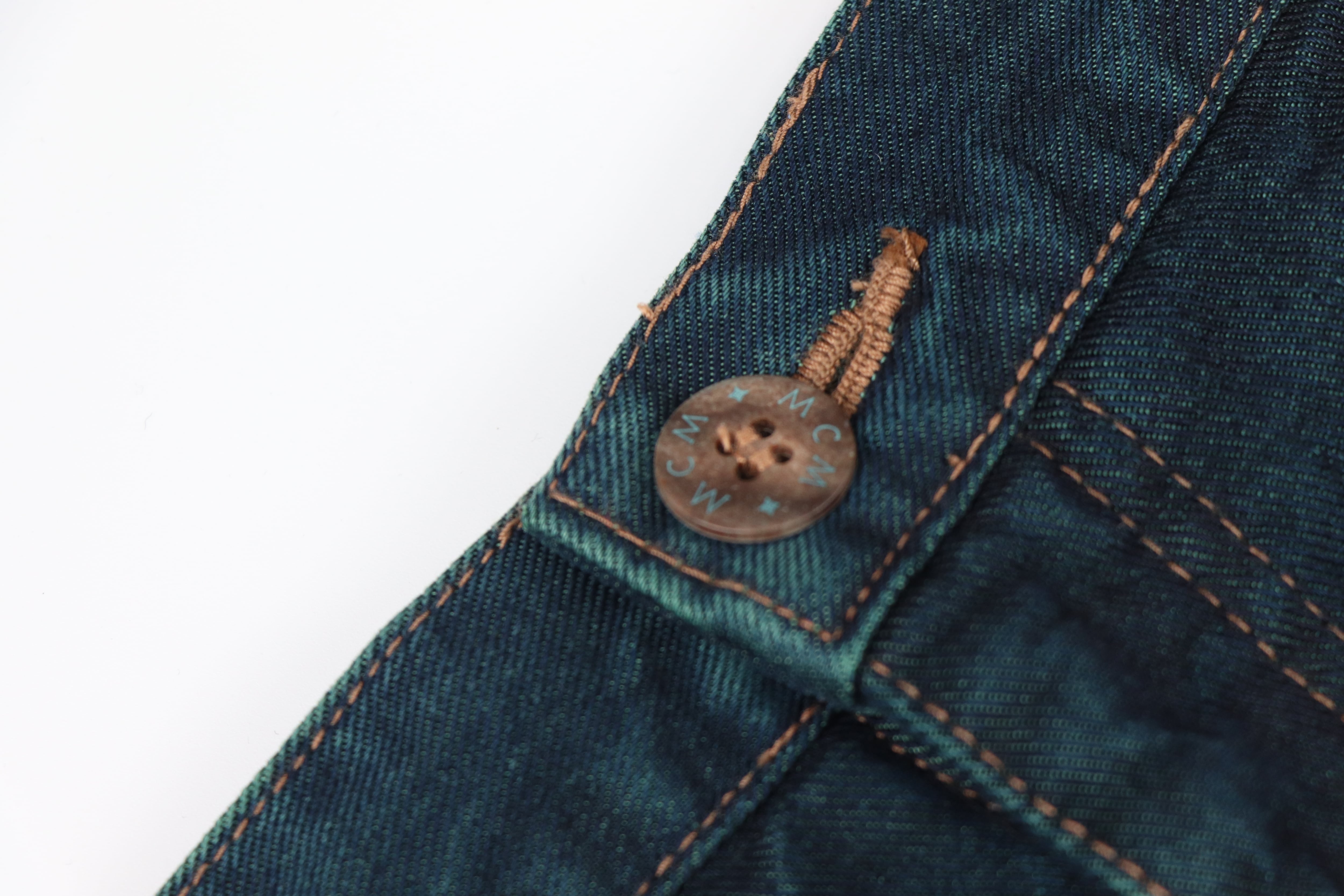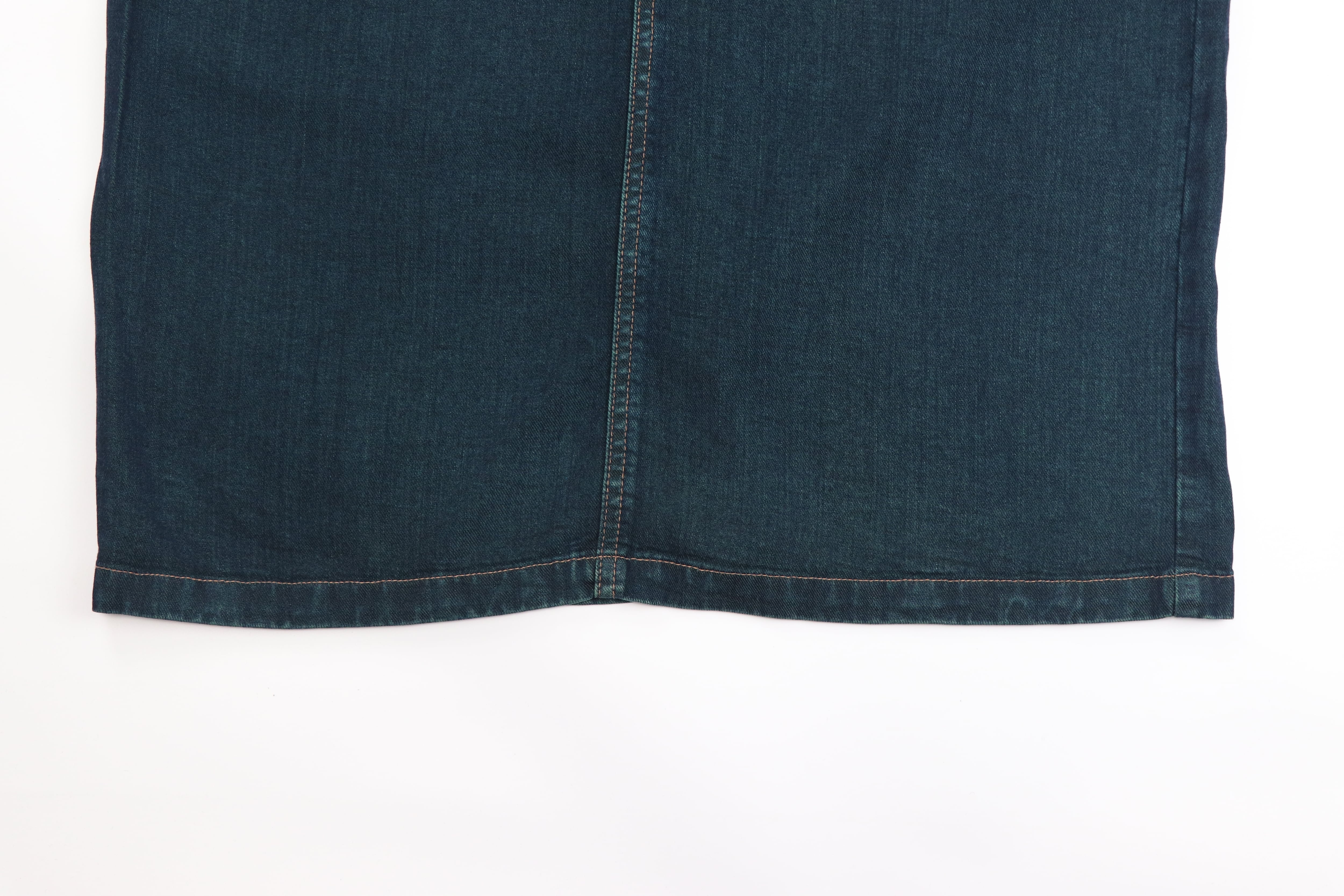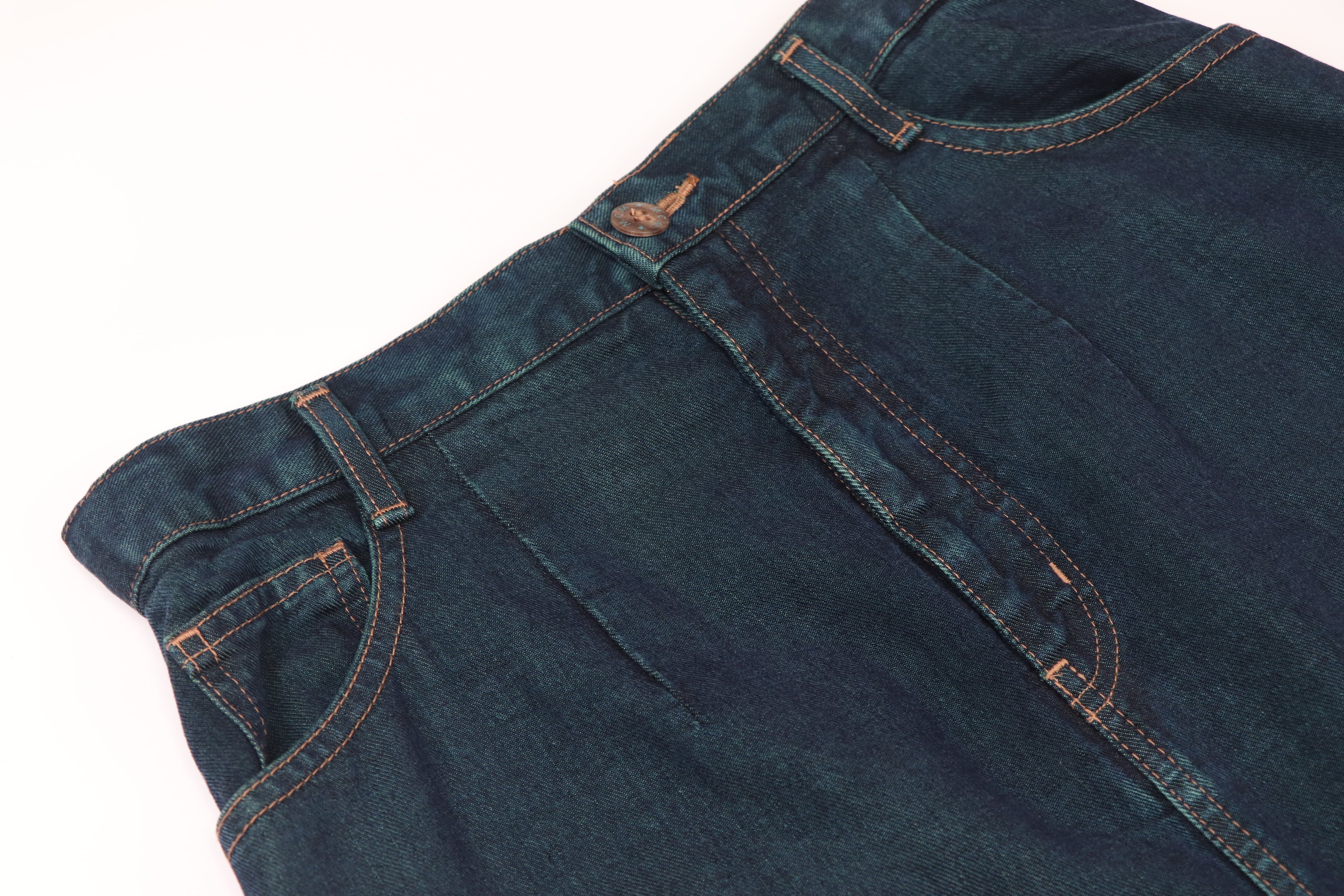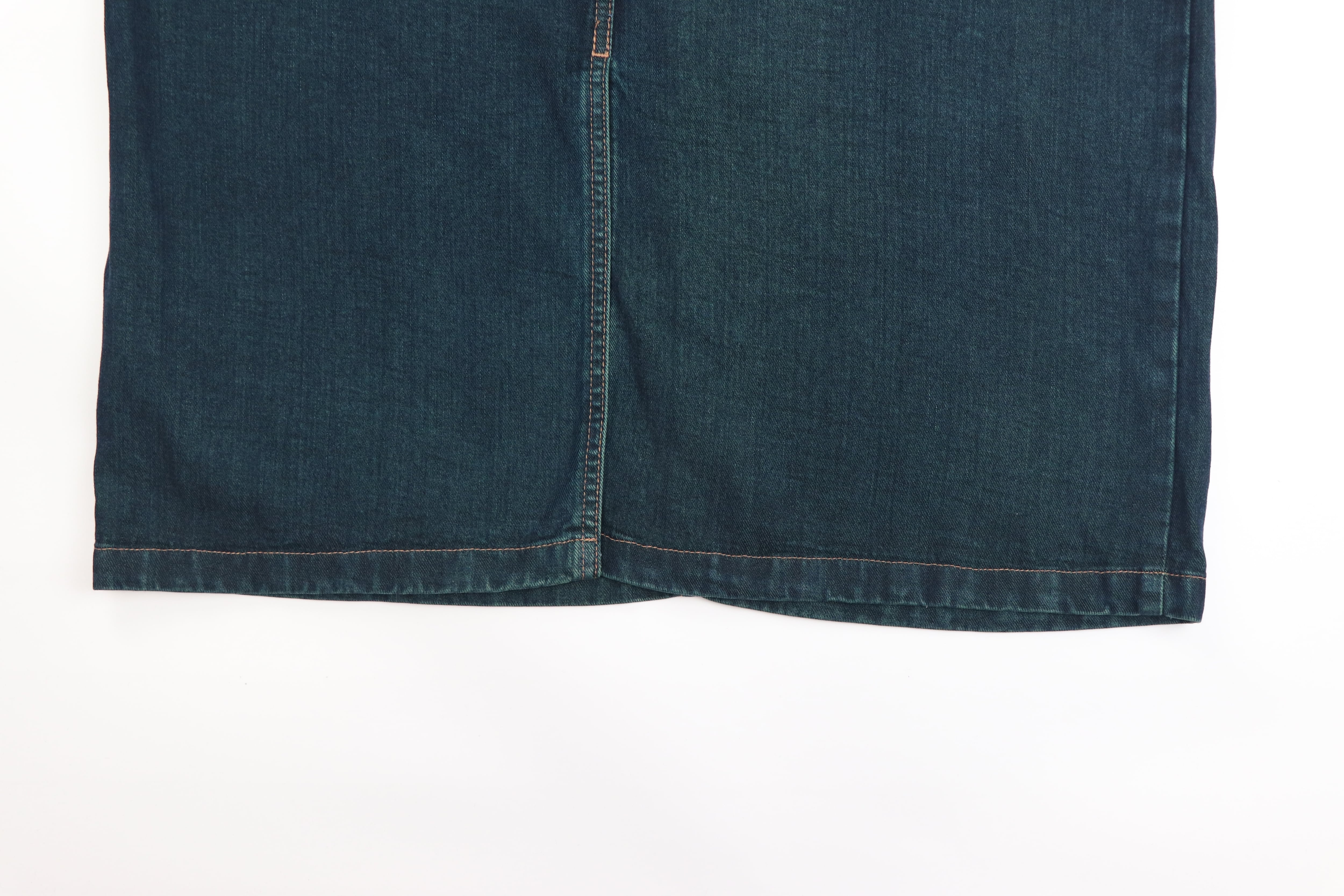 キュプラデニムは光沢感とドレープ感、柔らかく着心地の良い生地感です。ブルーとグリーンを混ぜたような色味でシンプルなアイテムでありながら素材と色味でインパクトのある1着です。