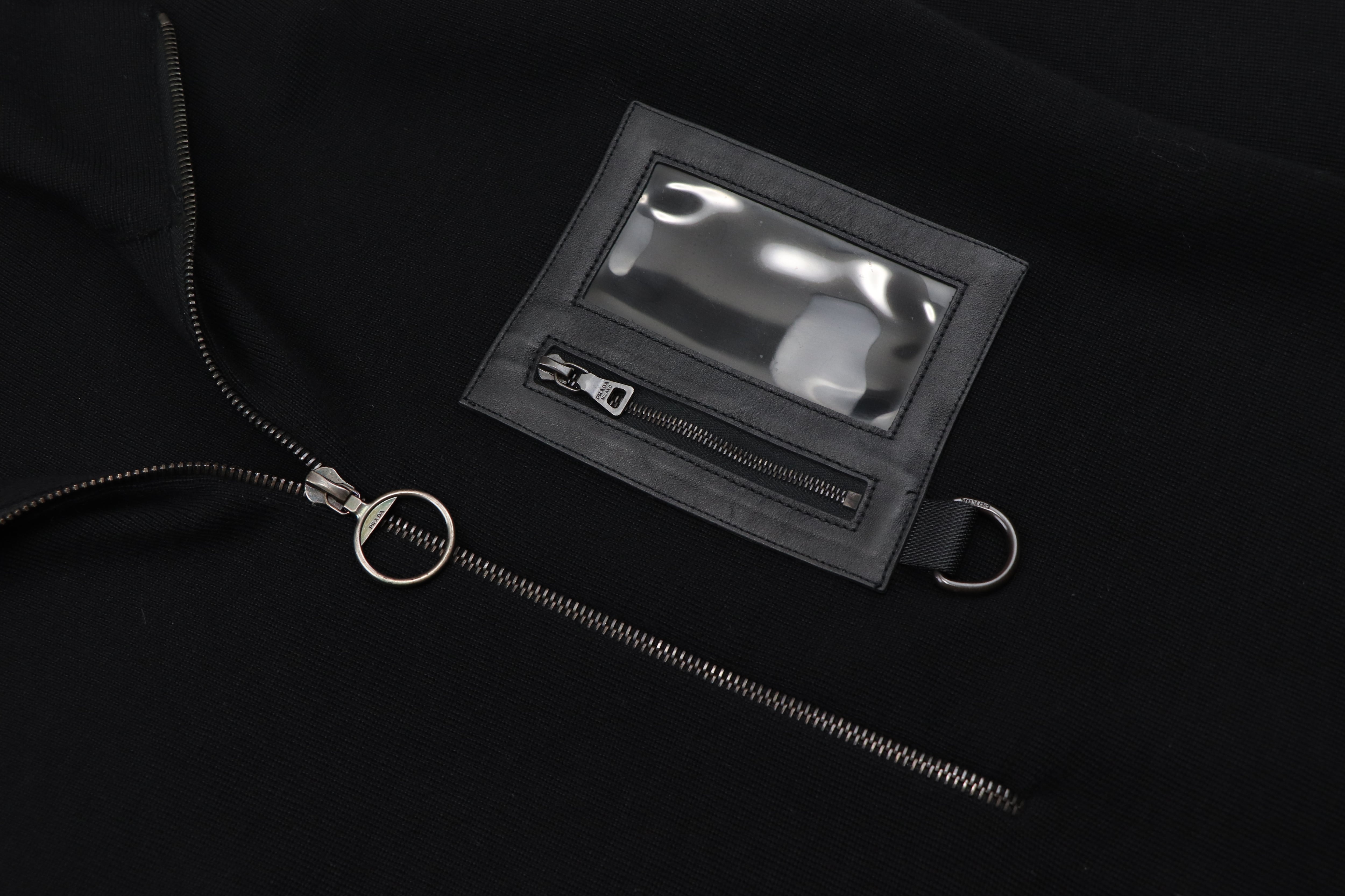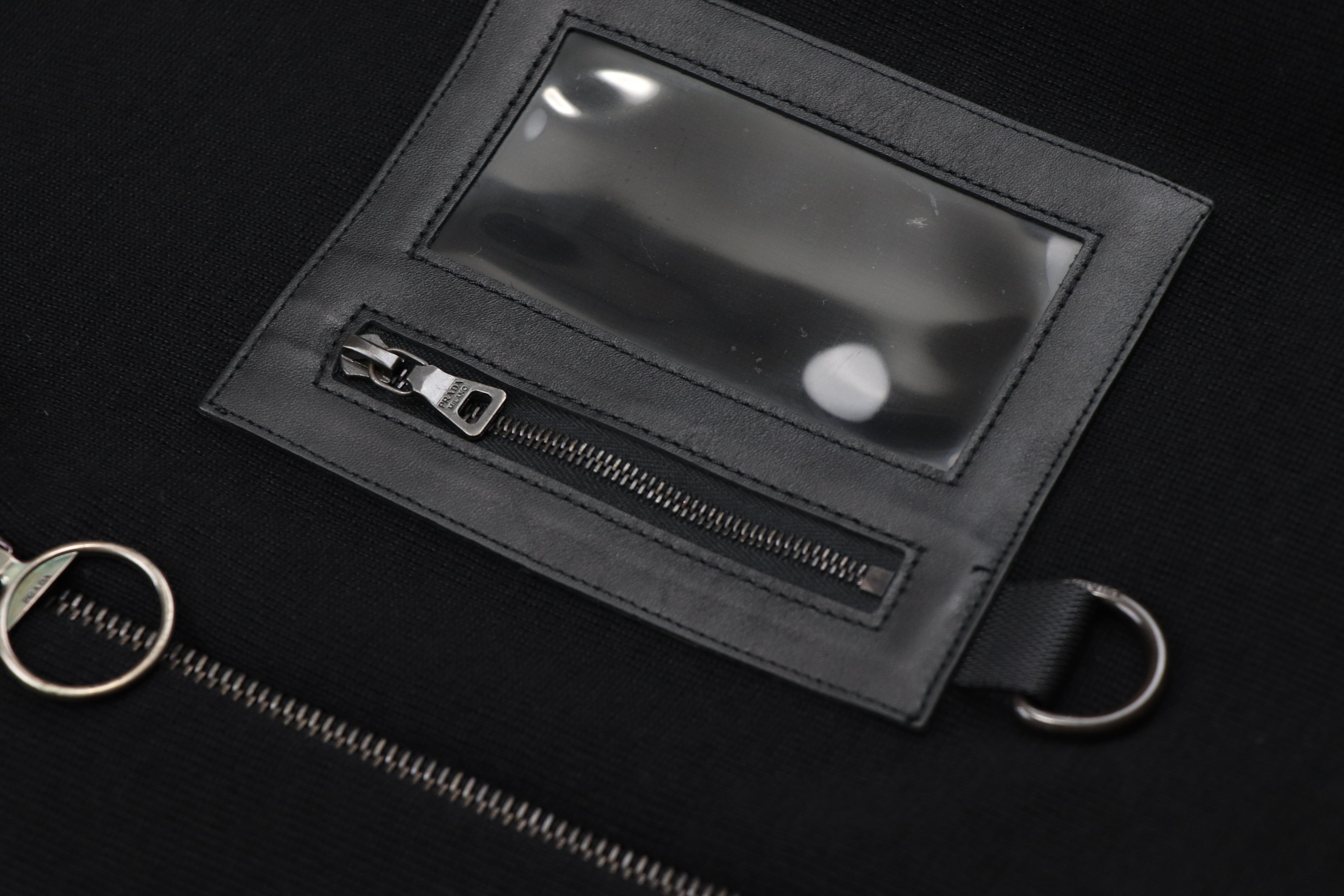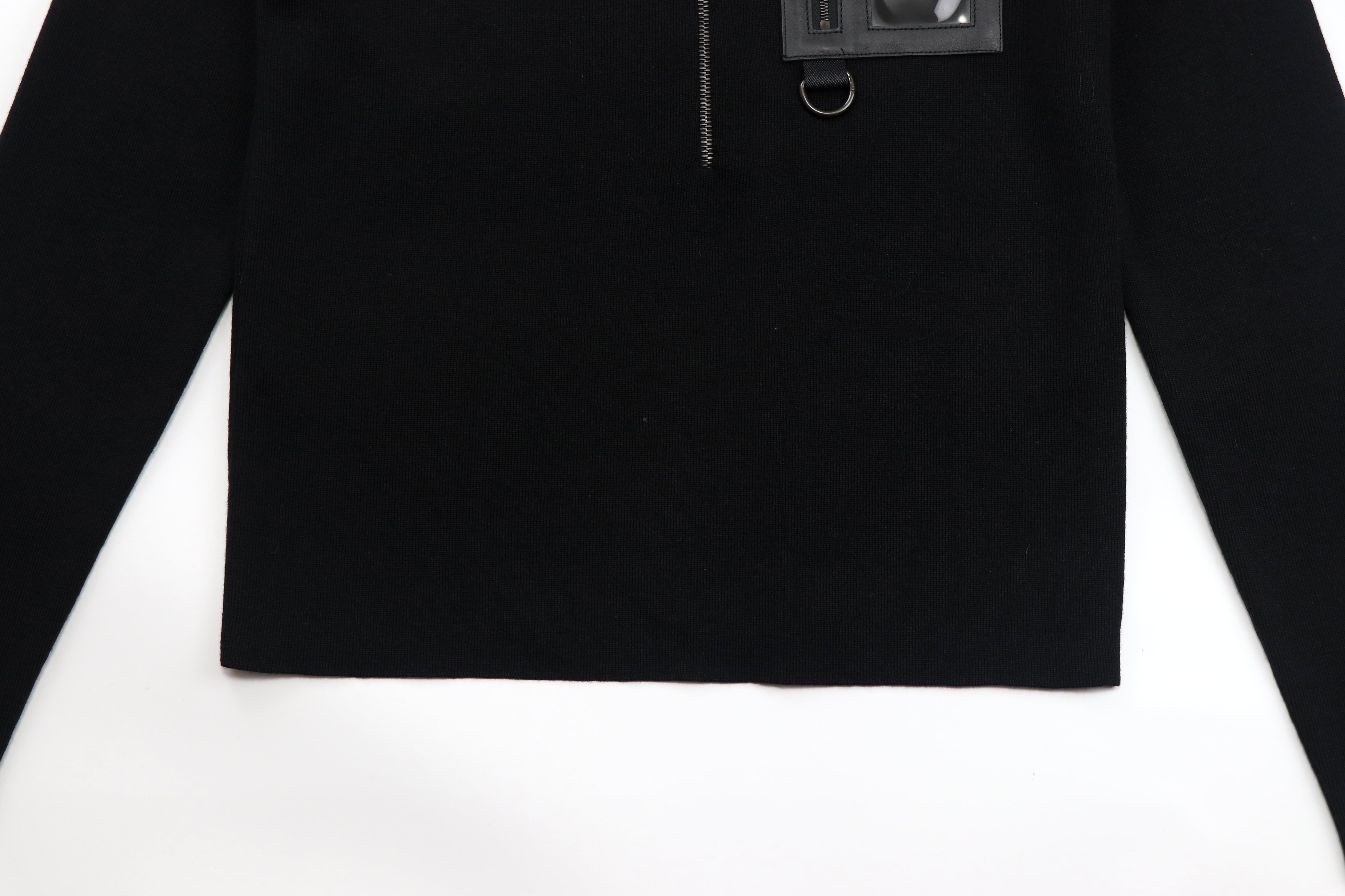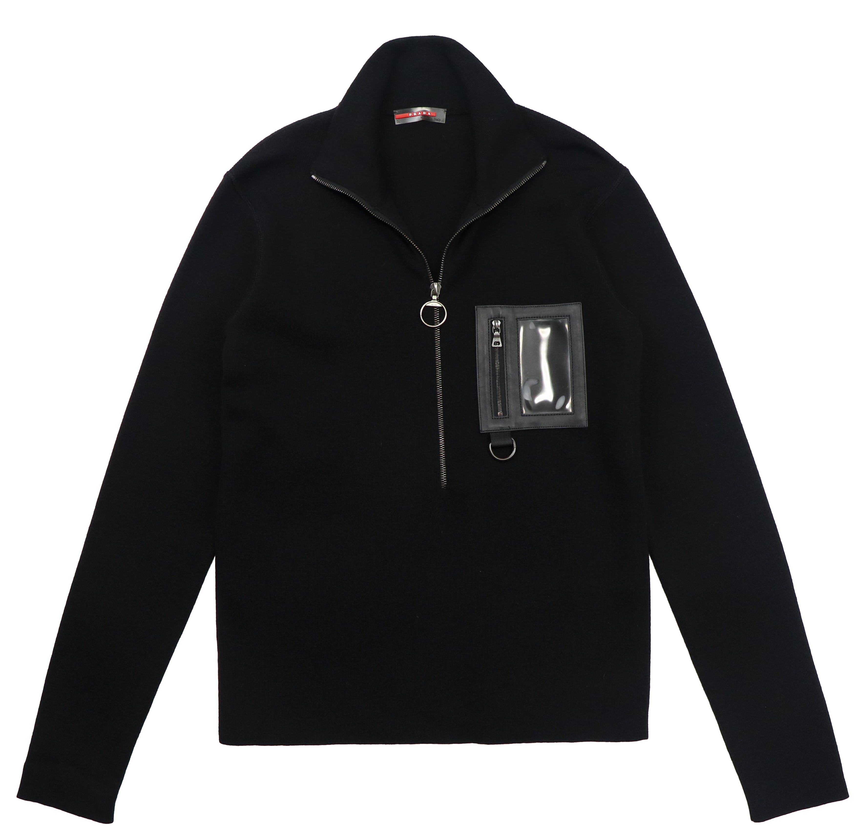 上質なハーフジップニットにレザーとビニールのアンバランスなポケットが遊び心のある雰囲気を醸し出します。