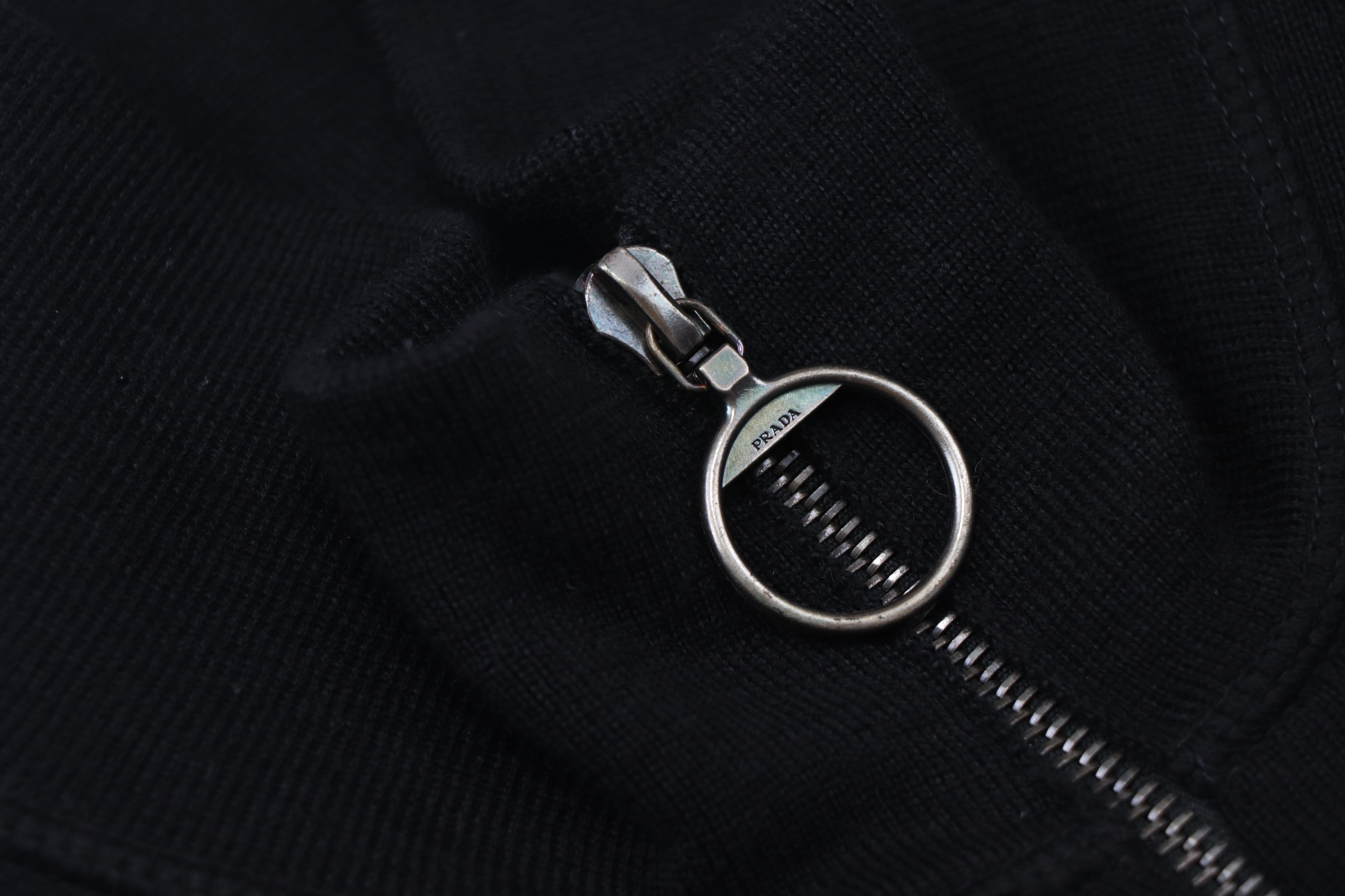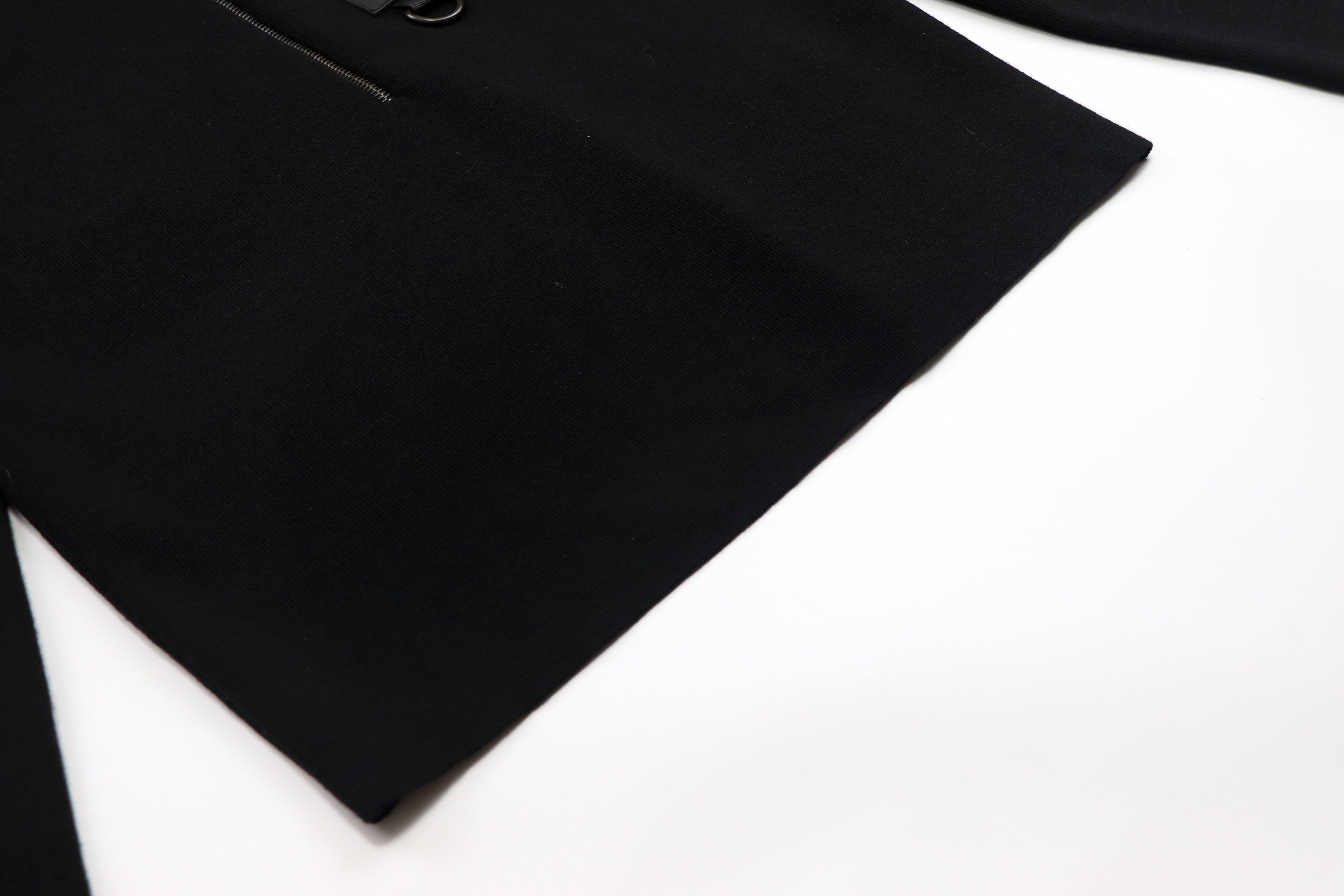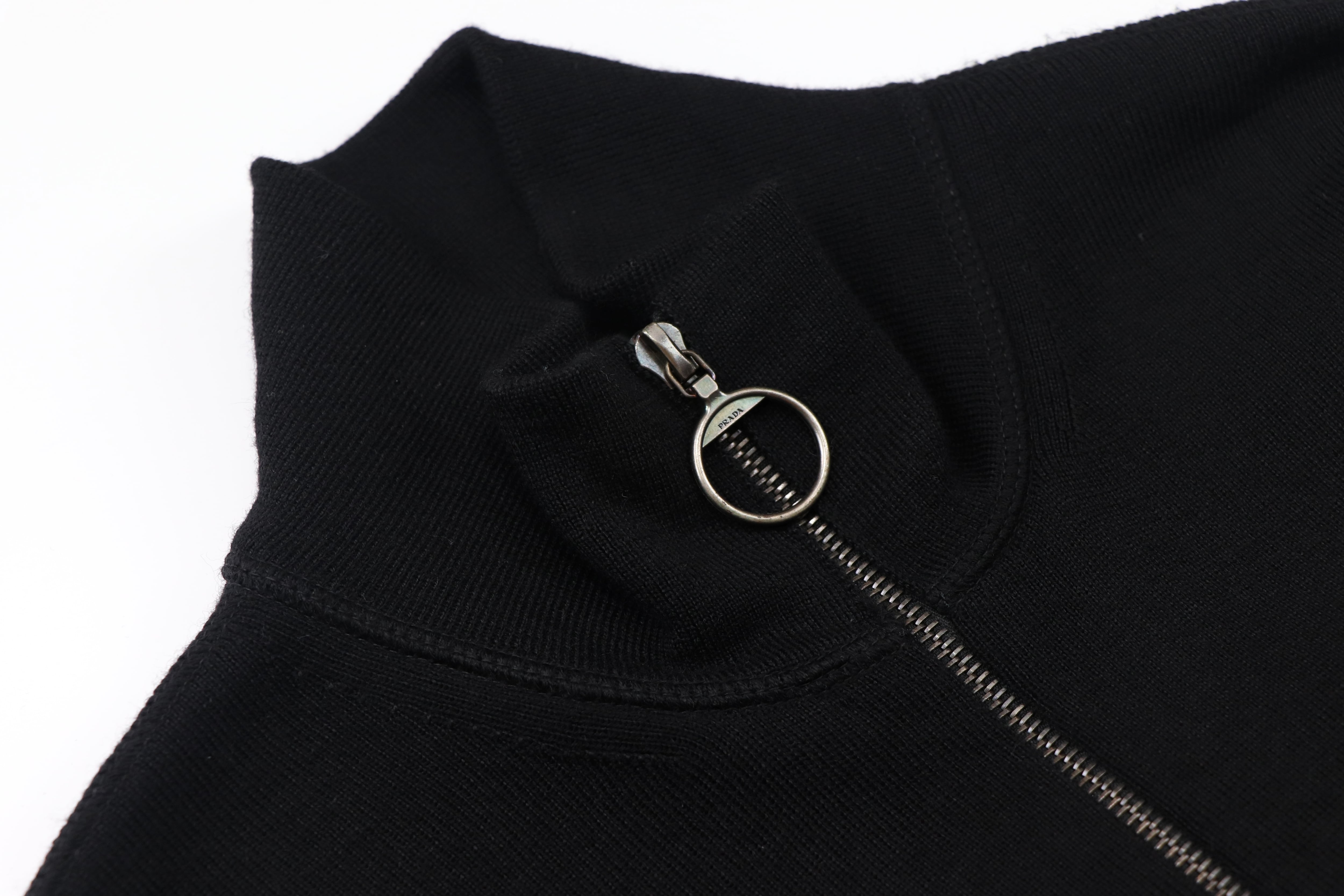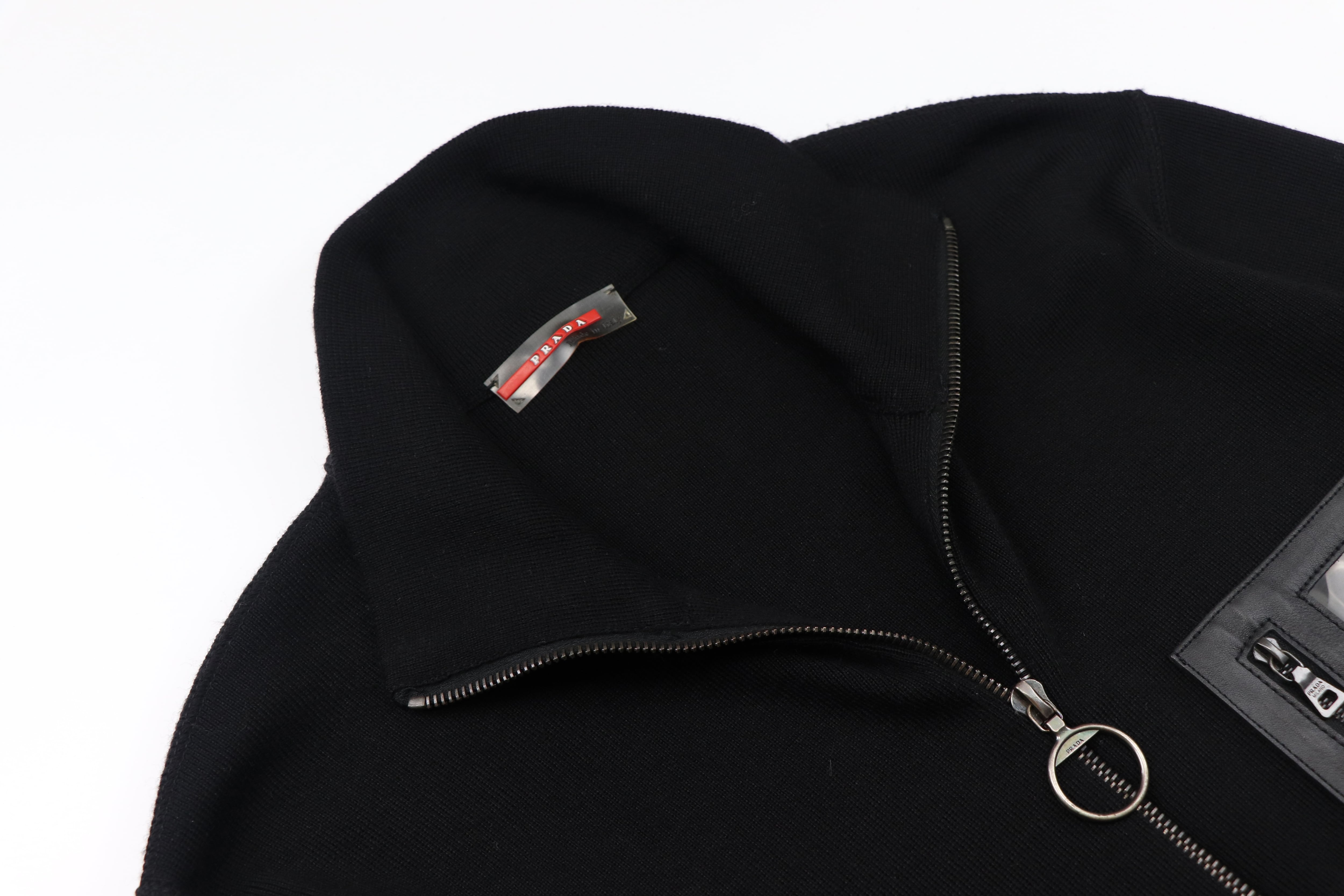 上質なハーフジップニットにレザーとビニールのアンバランスなポケットが遊び心のある雰囲気を醸し出します。