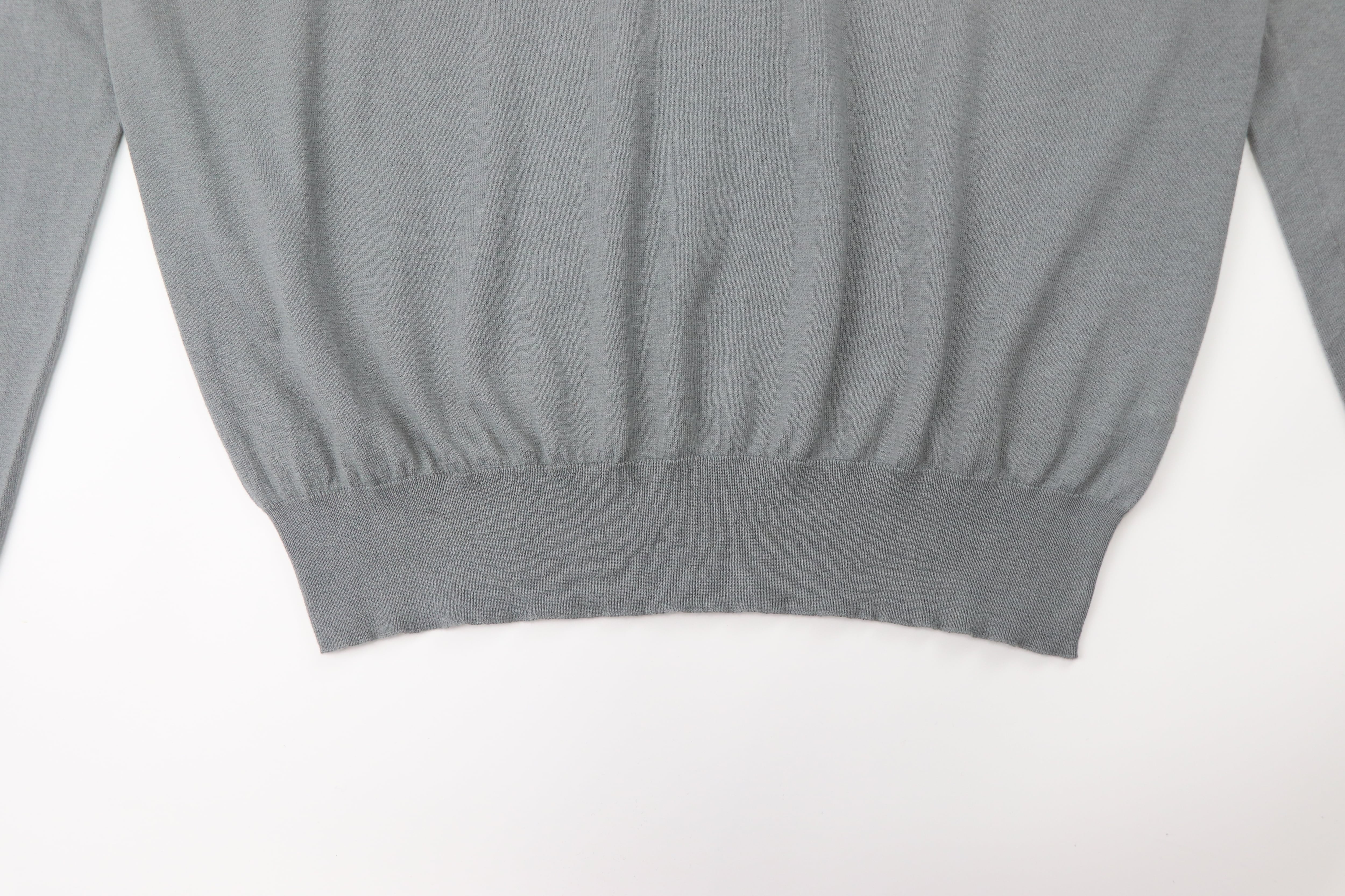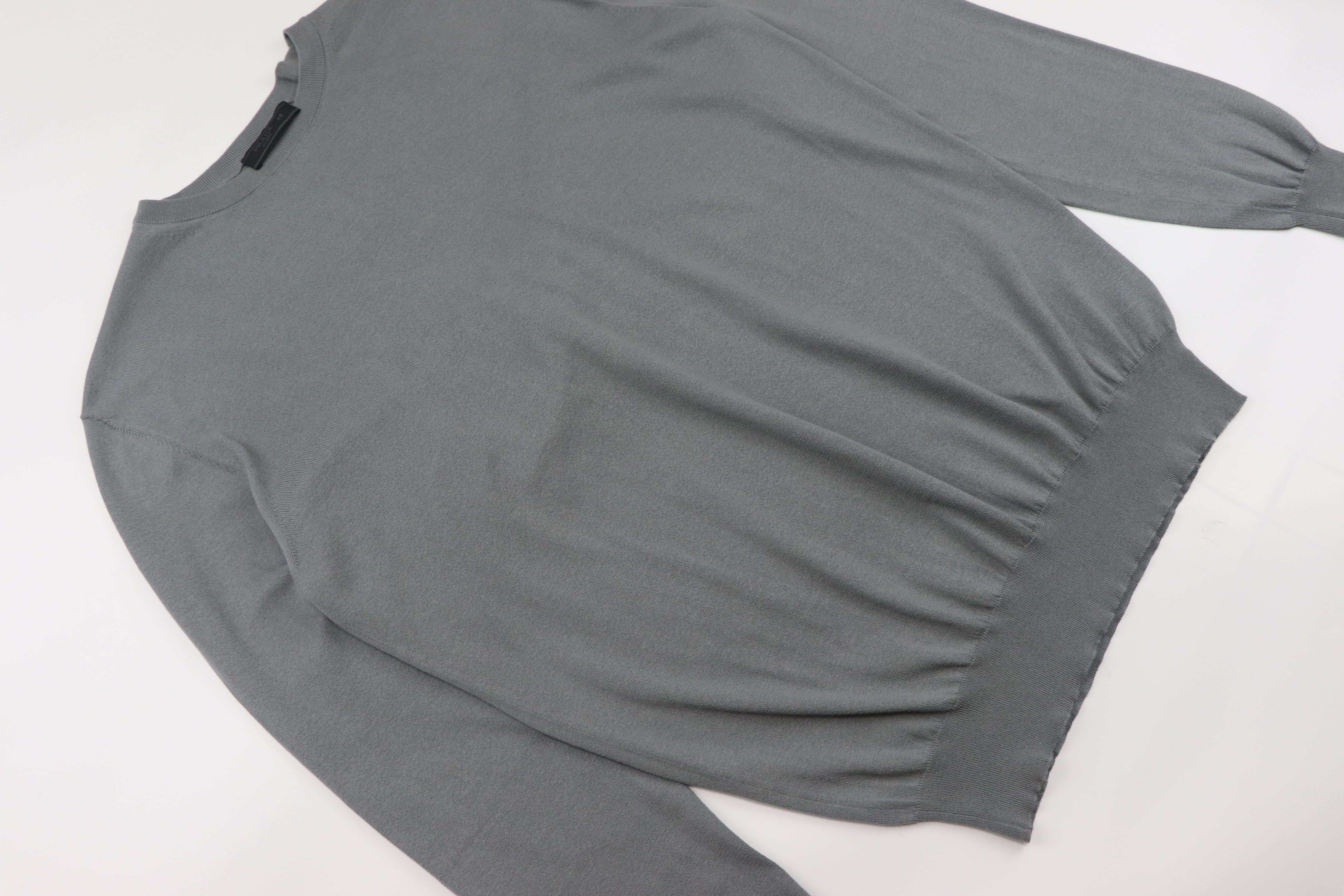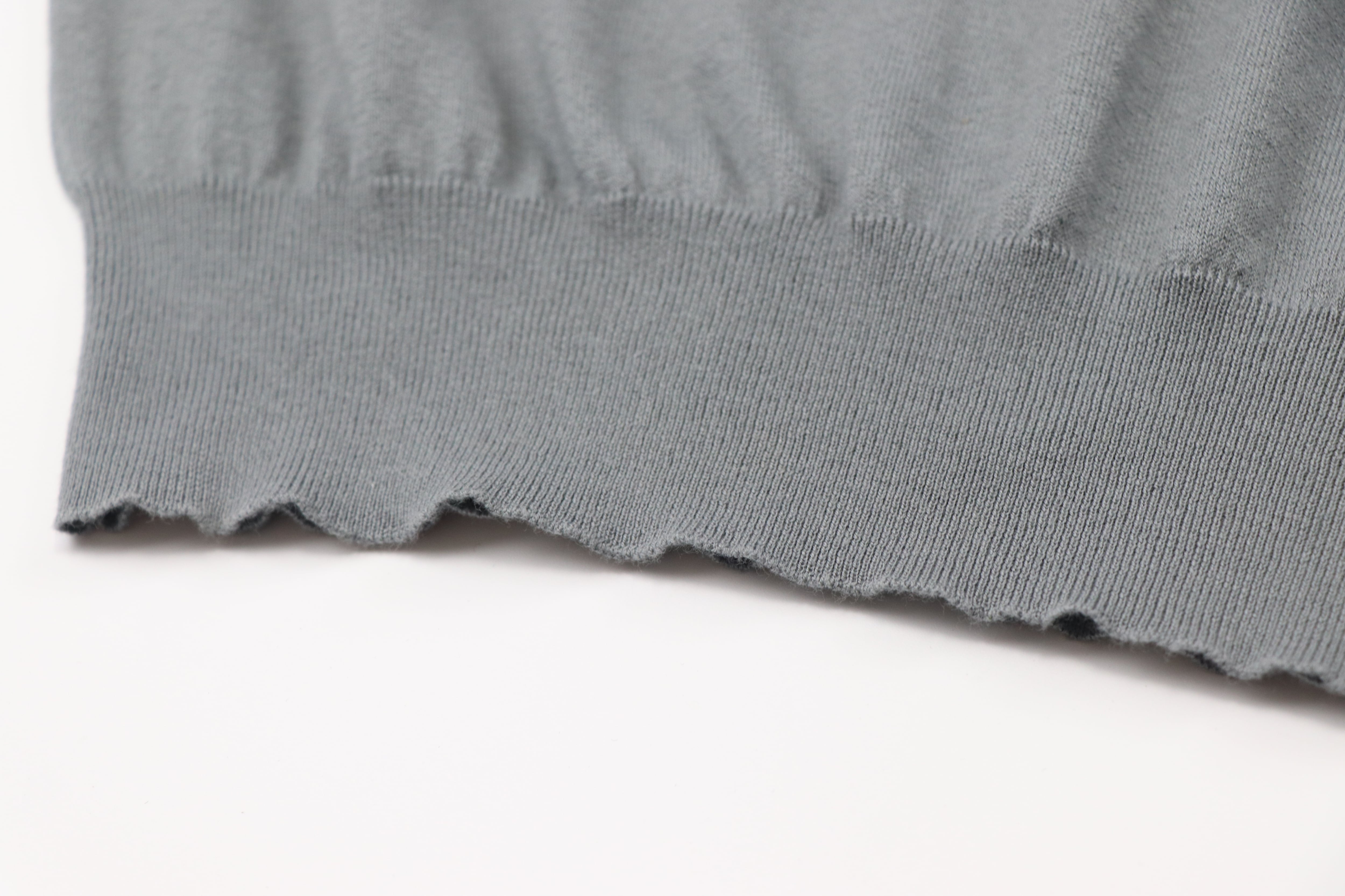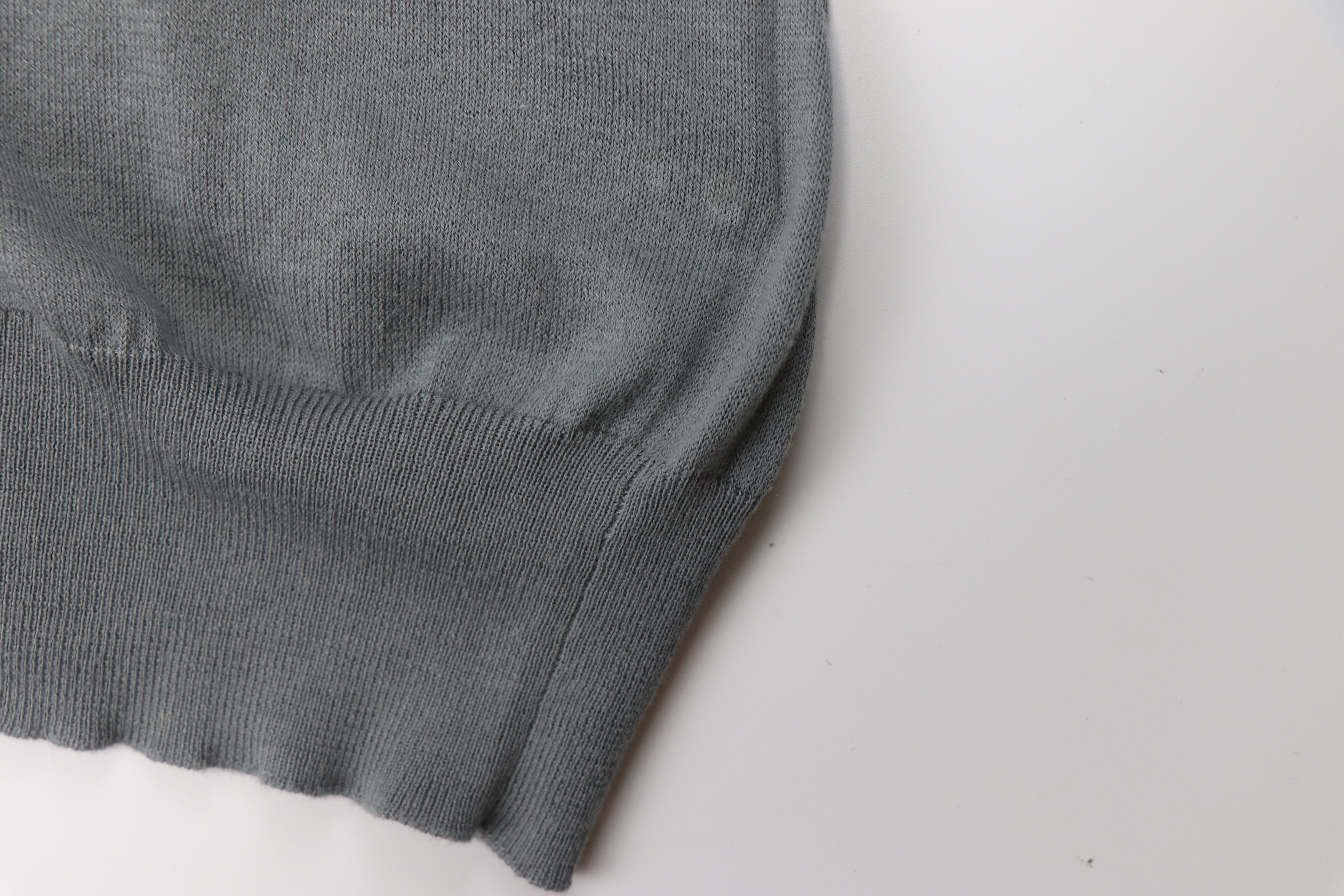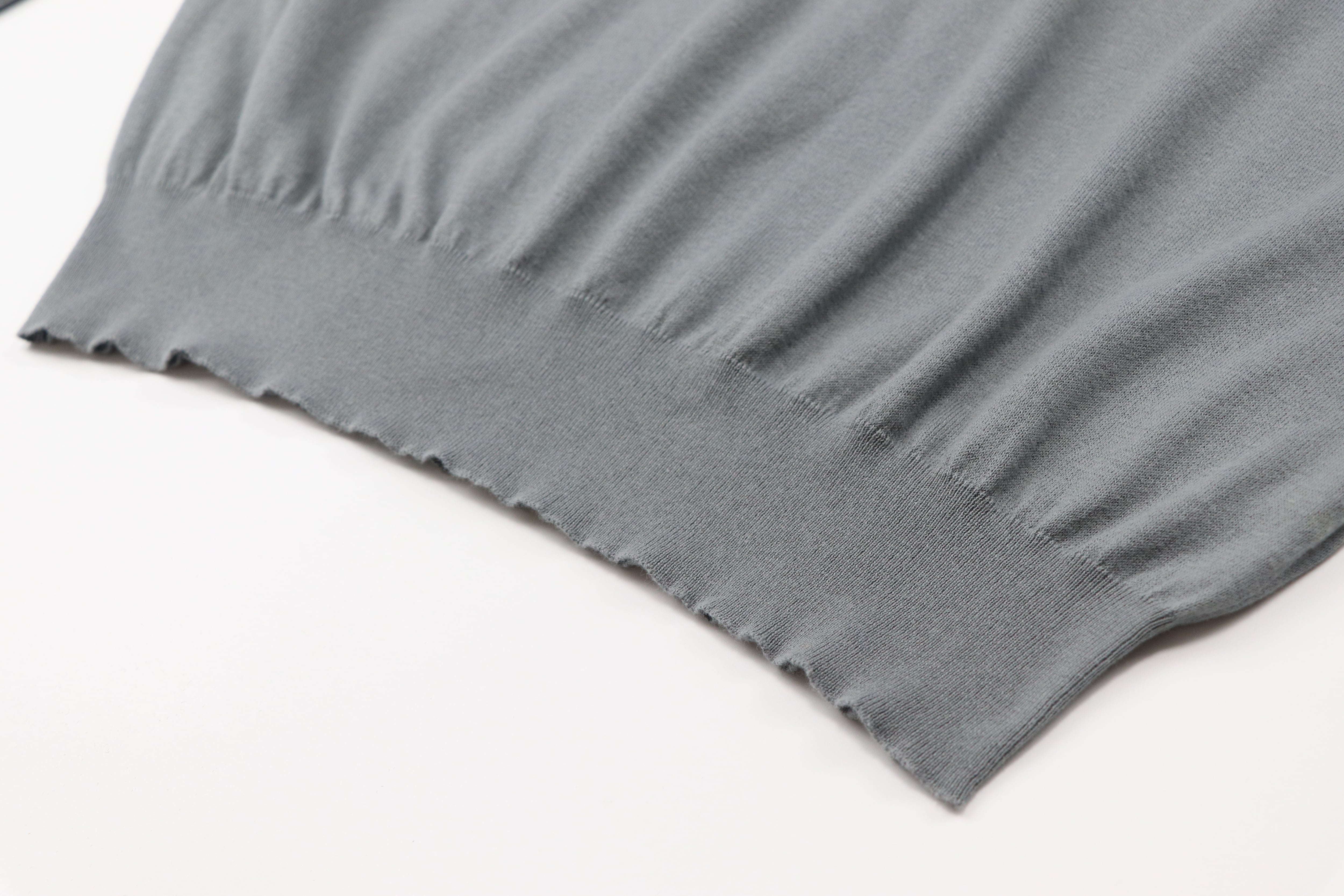 シンプルですが上品な雰囲気のコットンニット。お手入れもしやすく多くの時期で活躍できる便利なアイテムです。