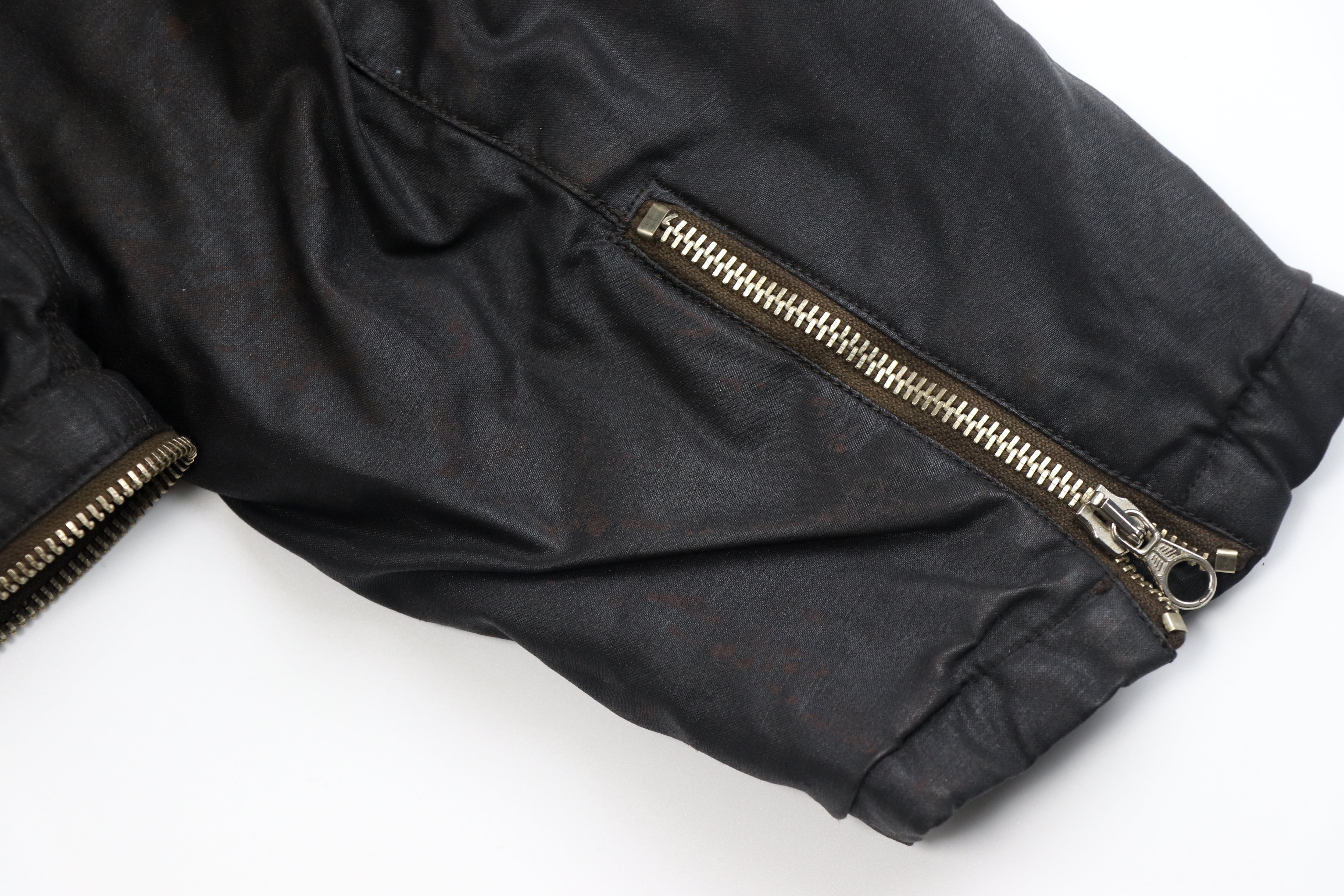 シワ感や色変化が見られますが、素材特性および年代背景を踏まえた本アイテムならではの風合いとしてご理解ください。また内側のタグが接着剤の劣化により剥がれかかっています。あくまで付属品としてご理解ください。開閉に問題はございませんがジップが硬い箇所がございます。品質表示タグはございません。