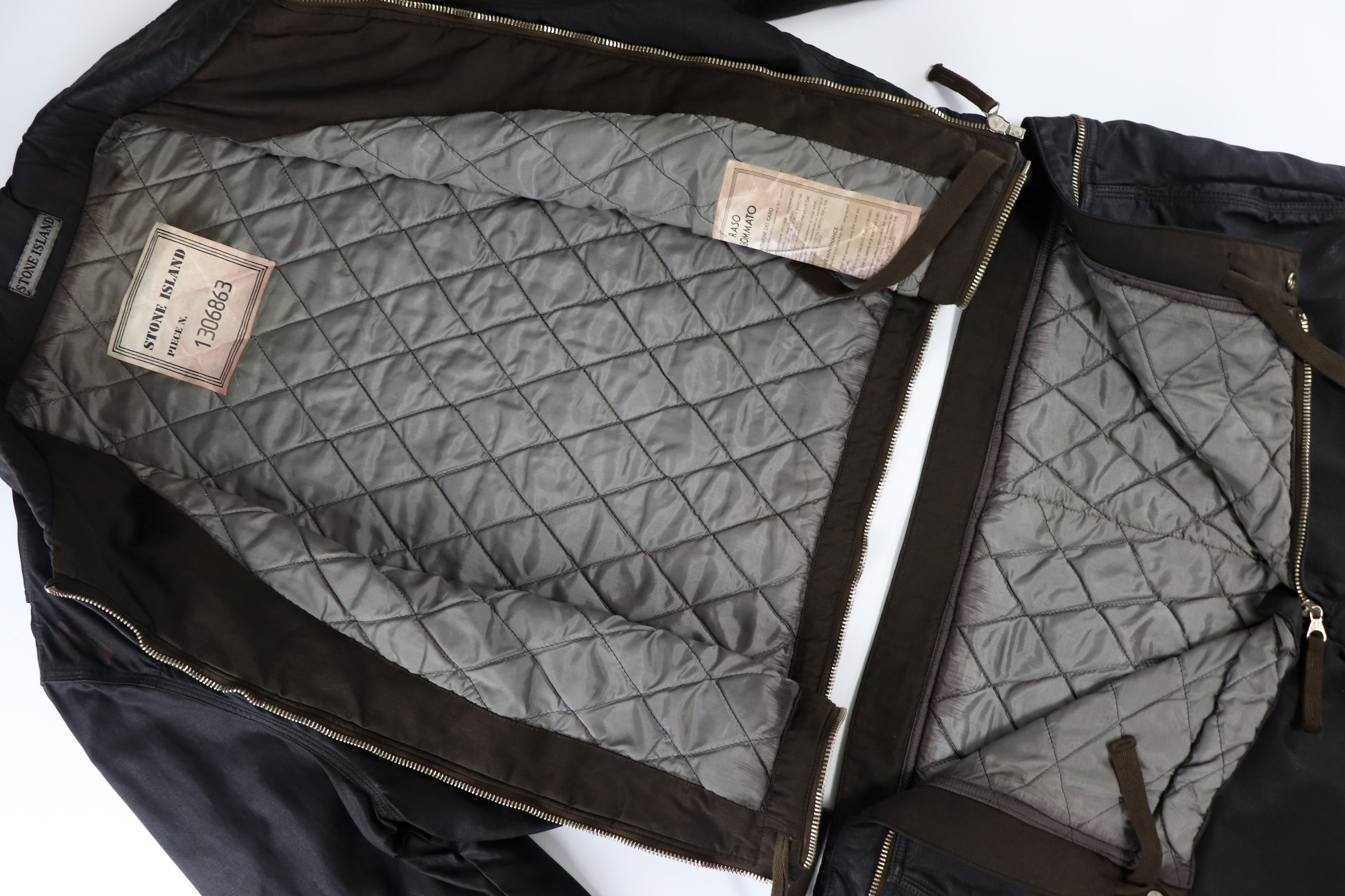 このラバーコーティングは、着用や経年によってシワ、色ムラ、質感の変化が生まれるのが特徴で、それらは劣化ではなく、STONE ISLANDが意図した素材のエイジングそのものと言える表情です。