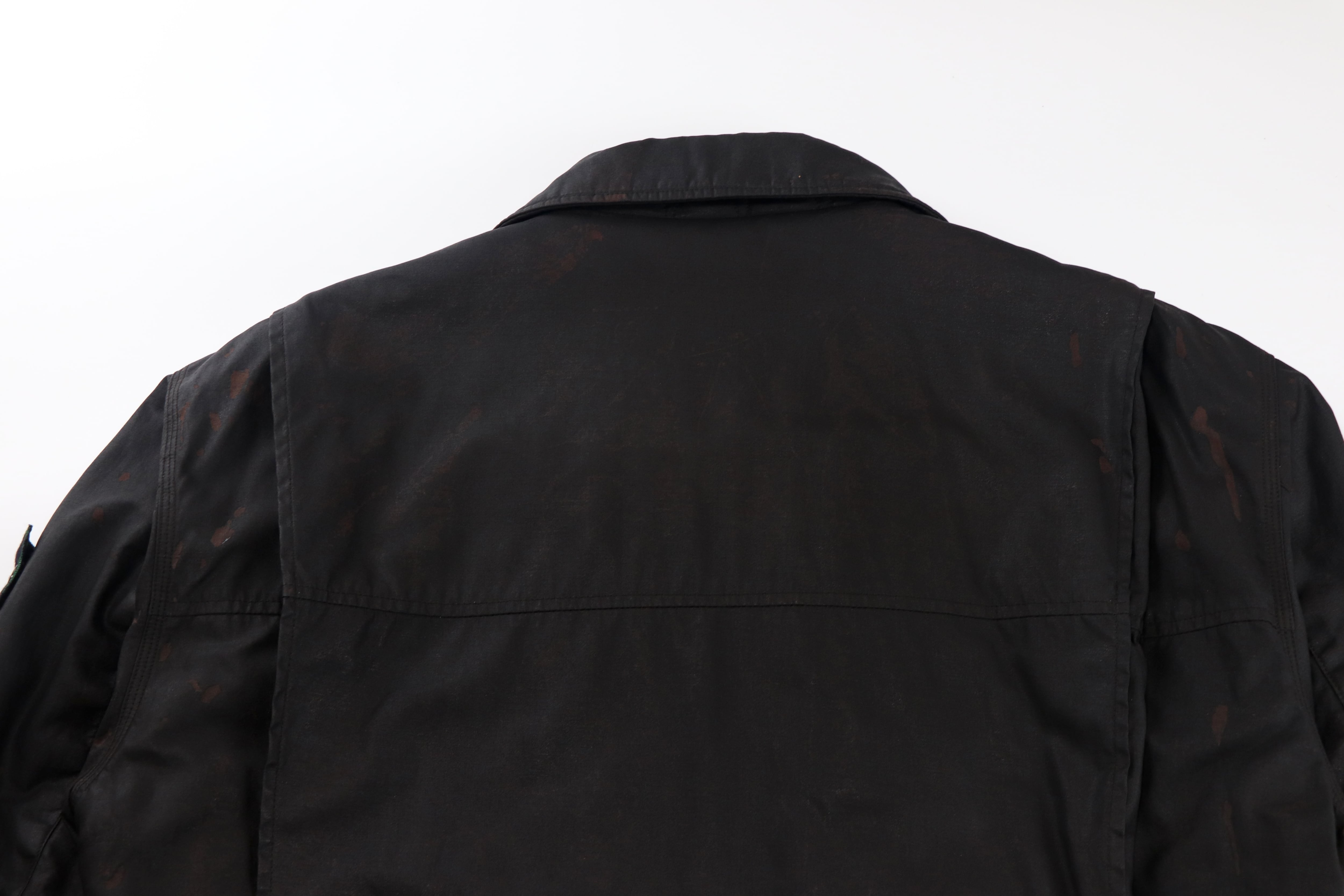 裾のストラップディテールや立体的なパターン設計など、ミリタリー・ワークウェアを再解釈した当時ならではのディテールも随所に感じられます。