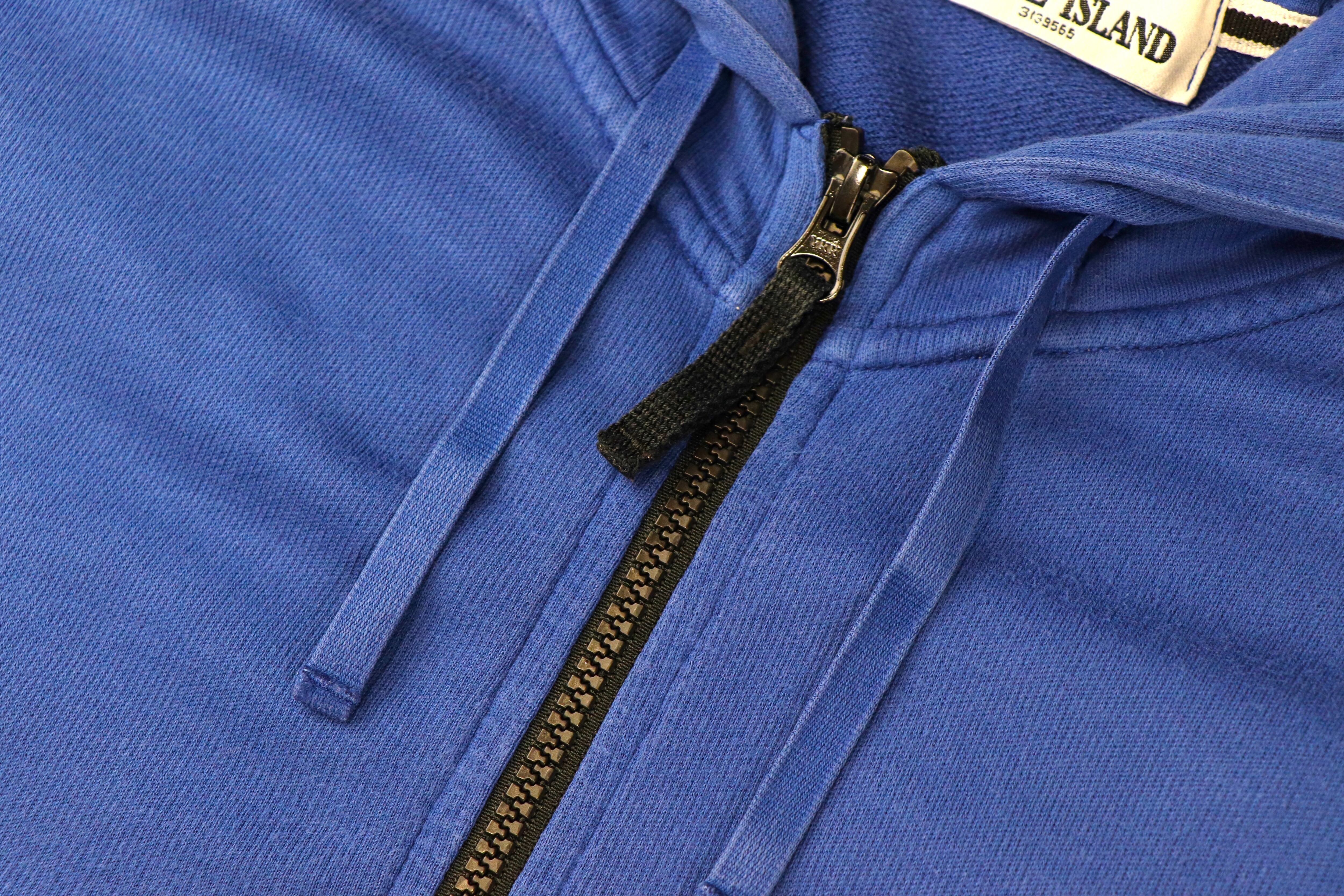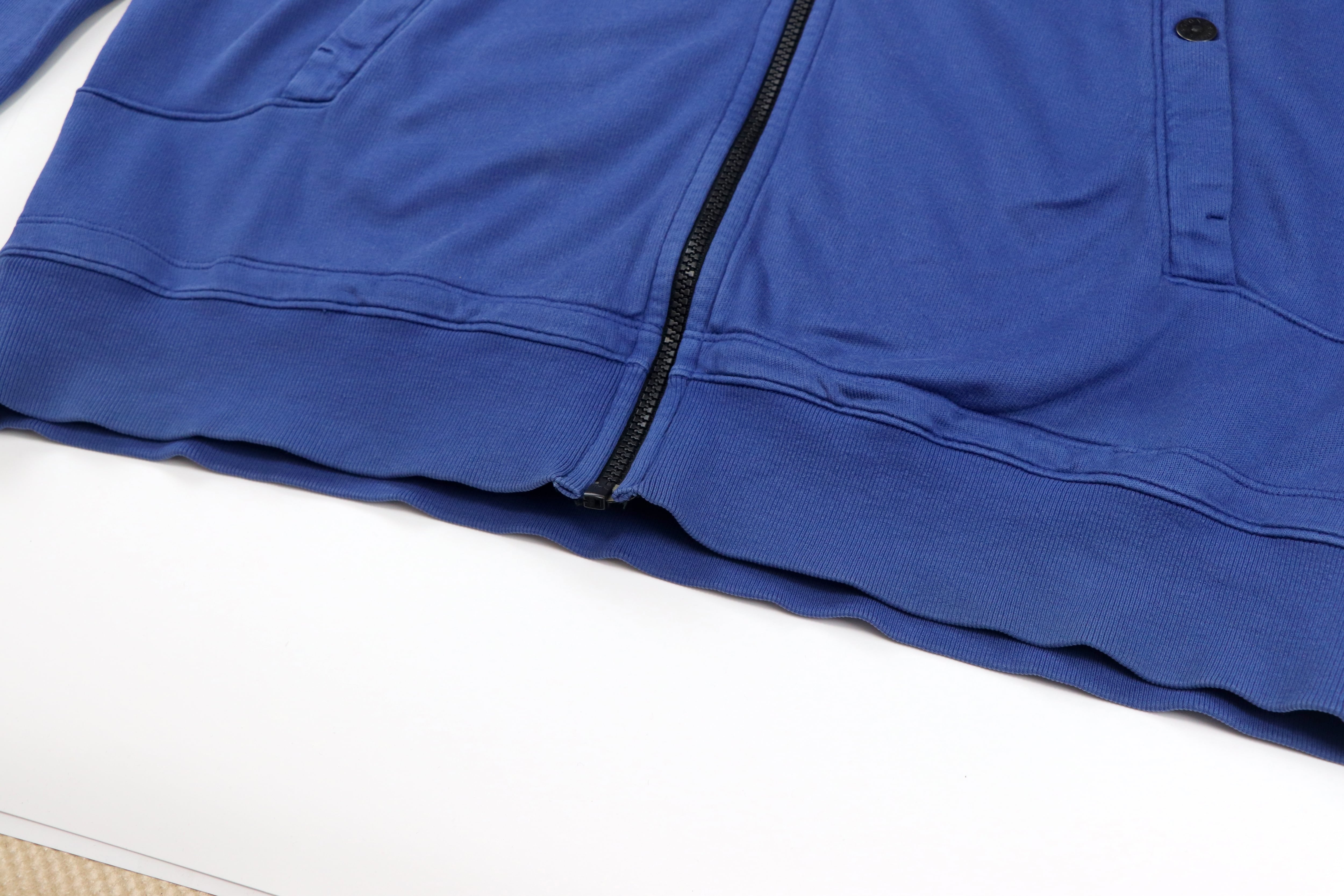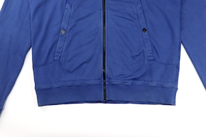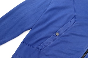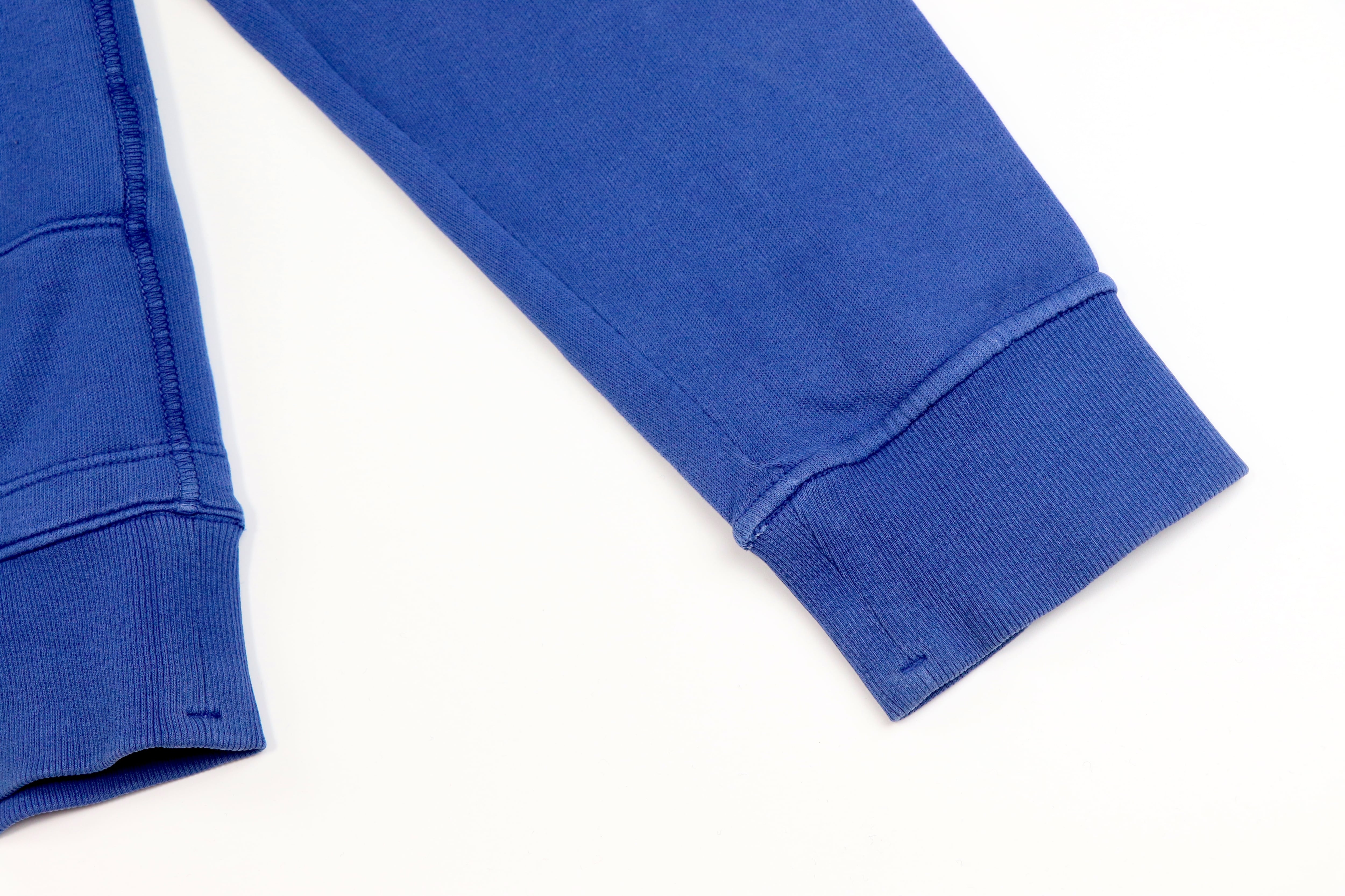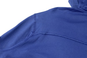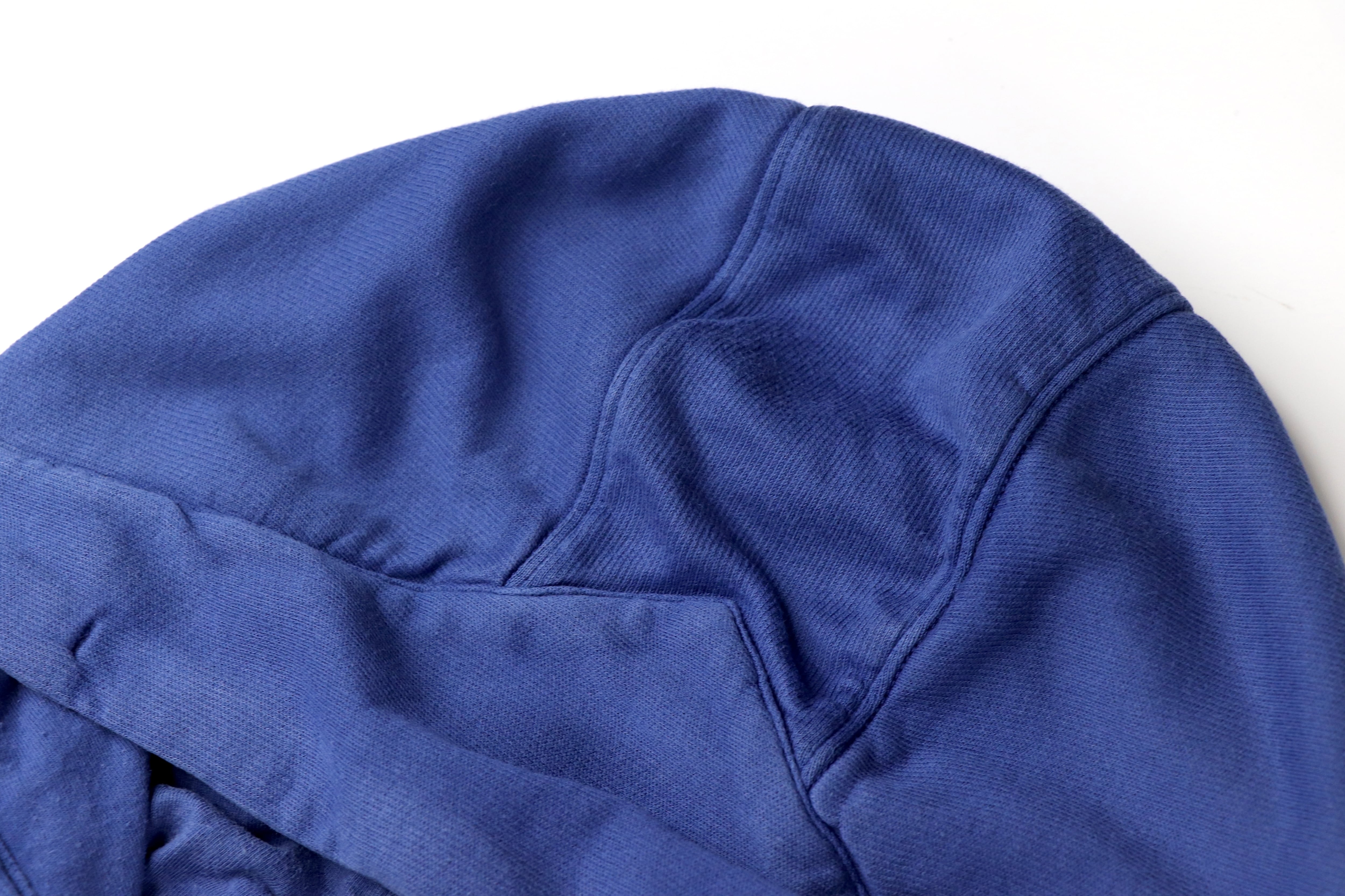 フェード感のあるブルーカラーが印象的なジップアップフーディ。長年着込んだかのような自然な色落ちは、ガーメントダイ特有の奥行きとムラ感が生み出す表情でこなれた雰囲気を楽しめる1着です。素材はコットン100%