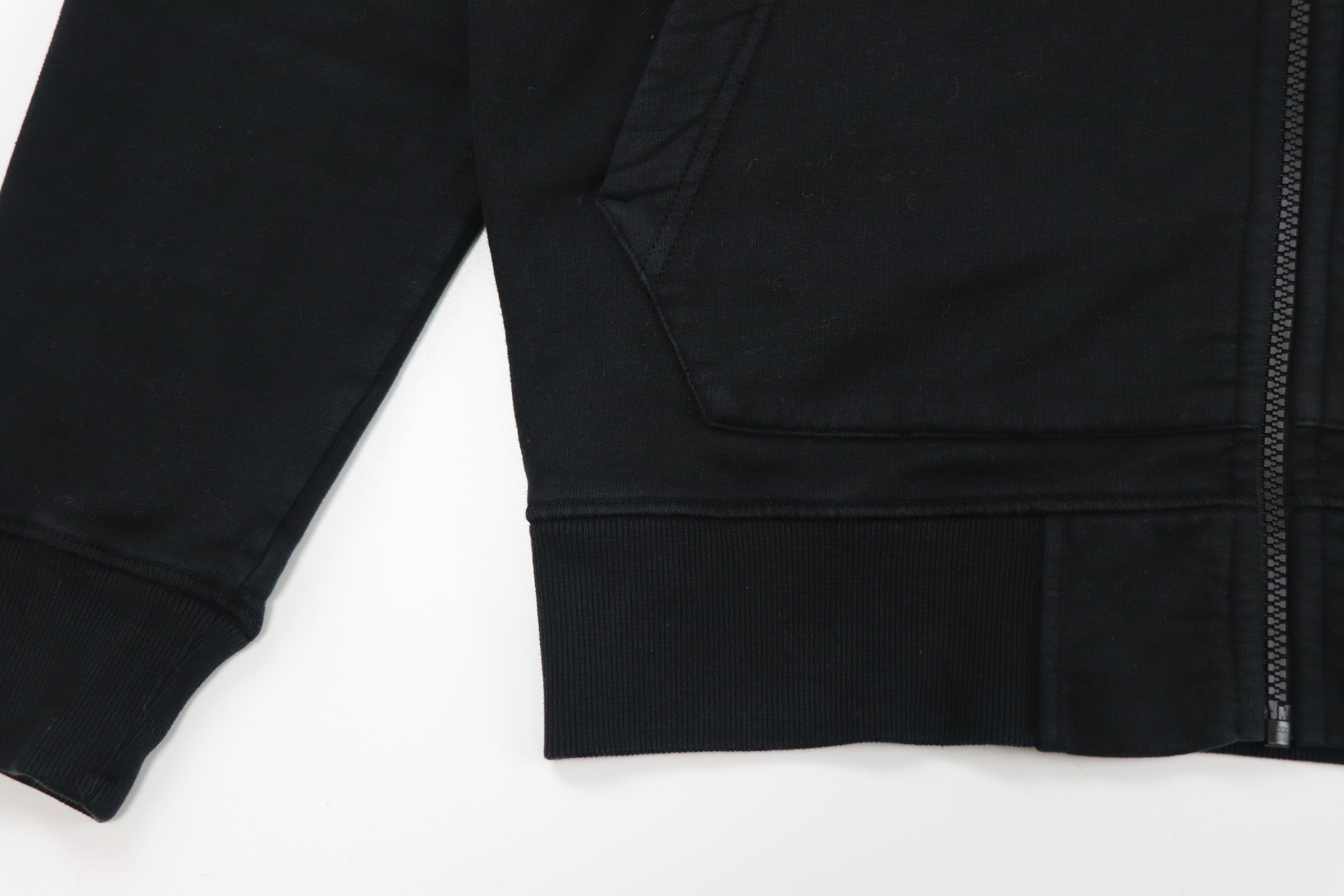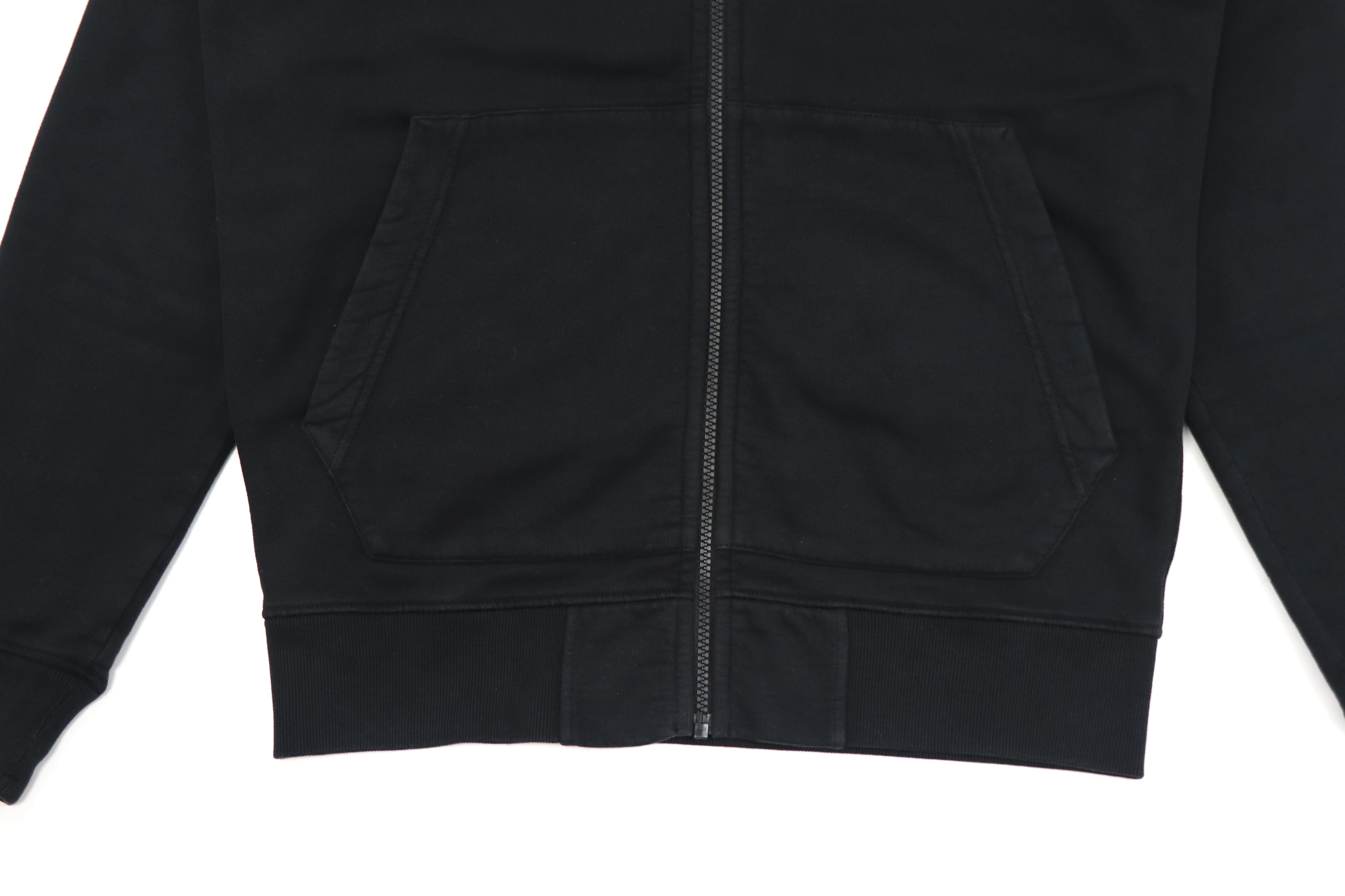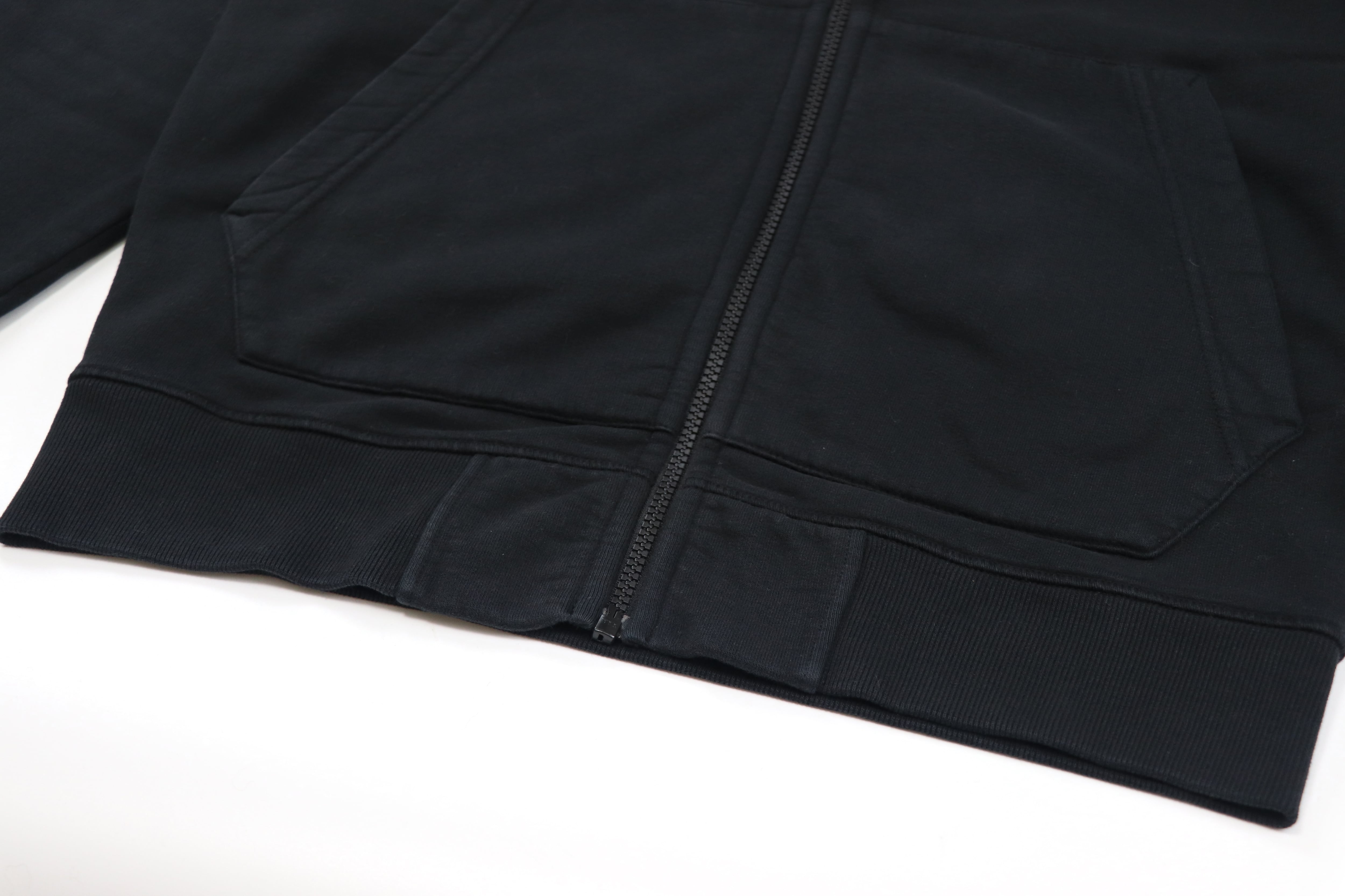 コットン100%のスウェット生地を使用した、ミニマルなジップアップモデル。