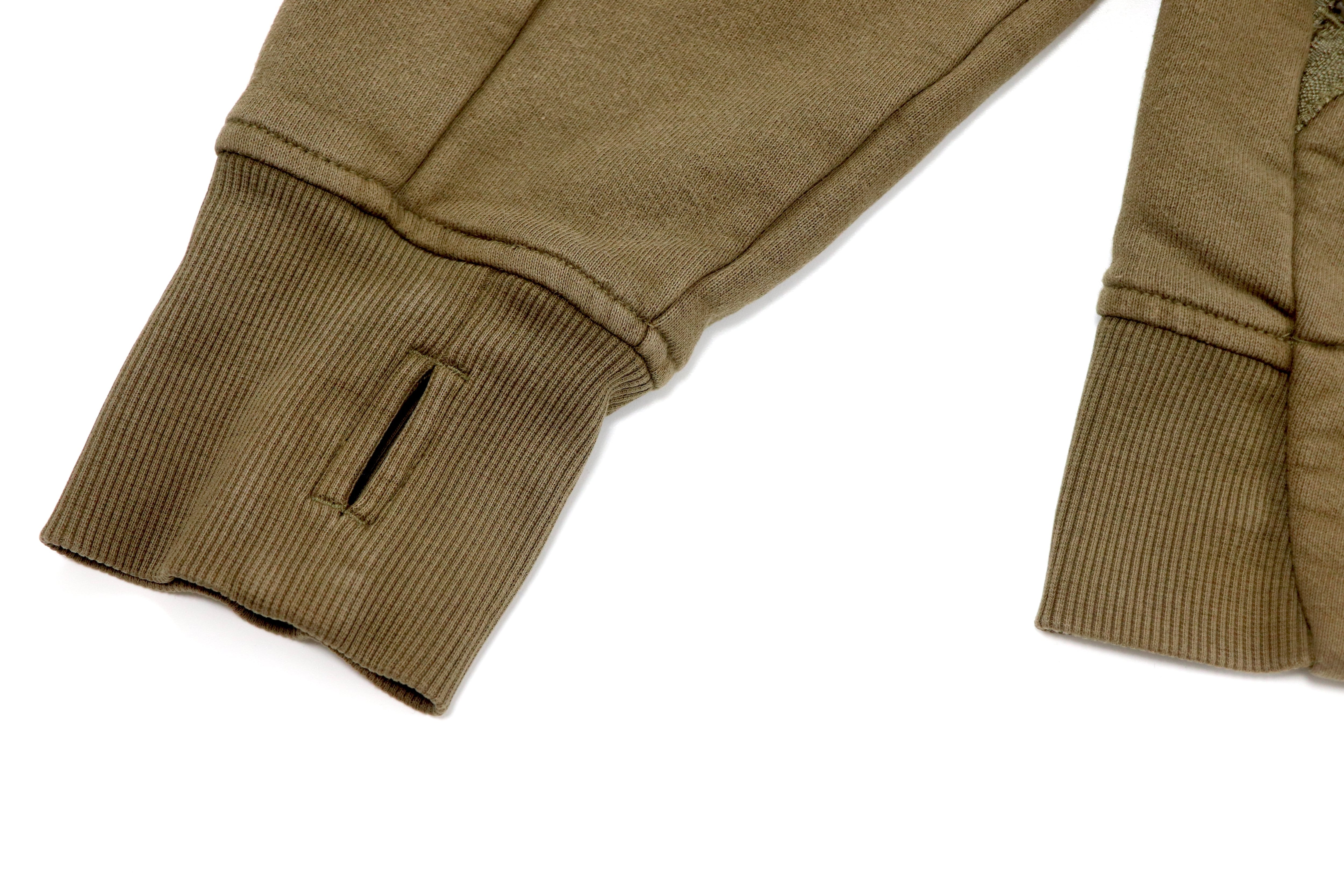 フルジップ仕様で着脱しやすく、アウターとしてもインナーとしても使える万能な1着で袖口にはサムホールを搭載。フィット感を高め、防寒性とデザイン性を兼ね備えたディテールです。