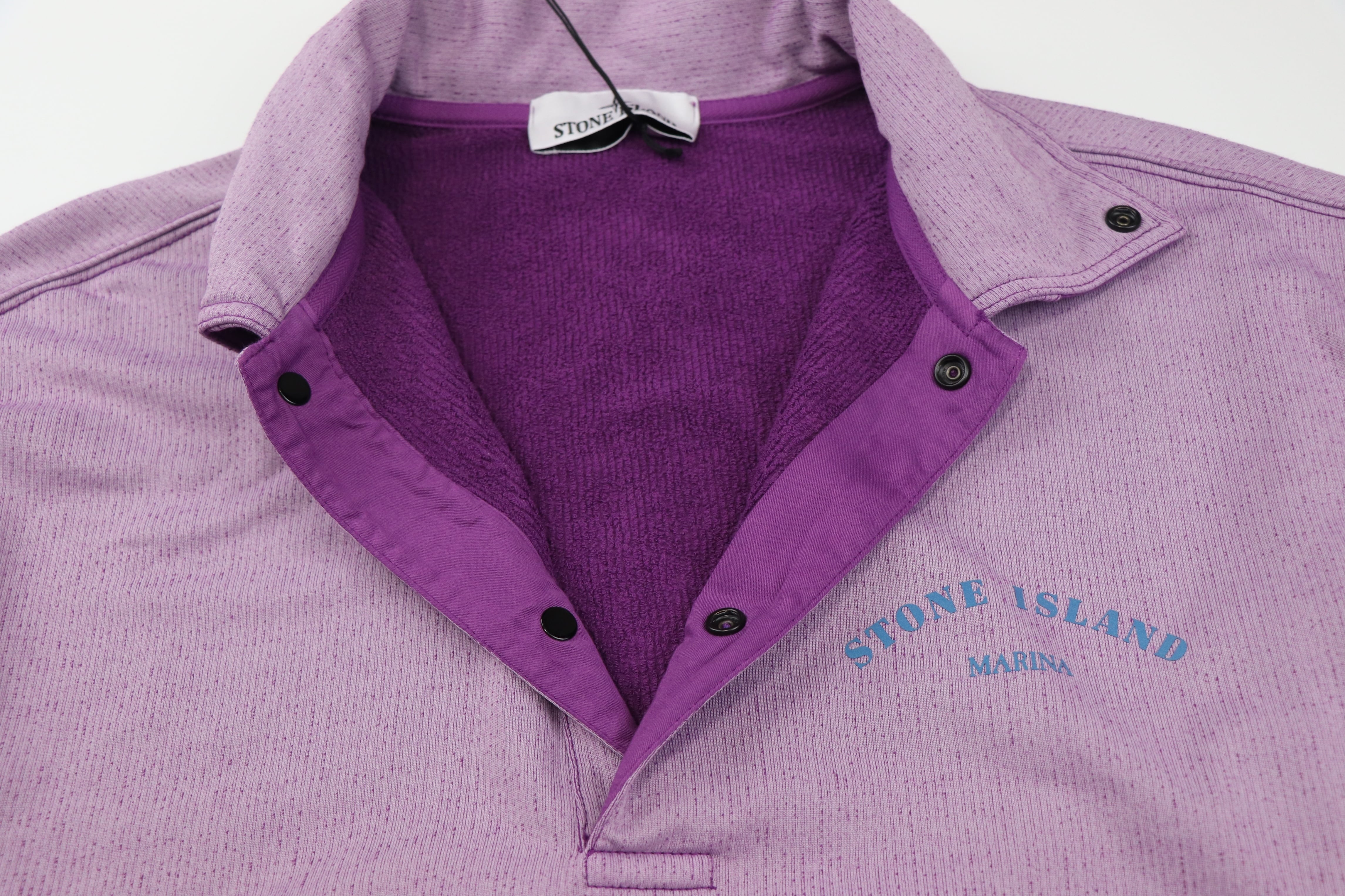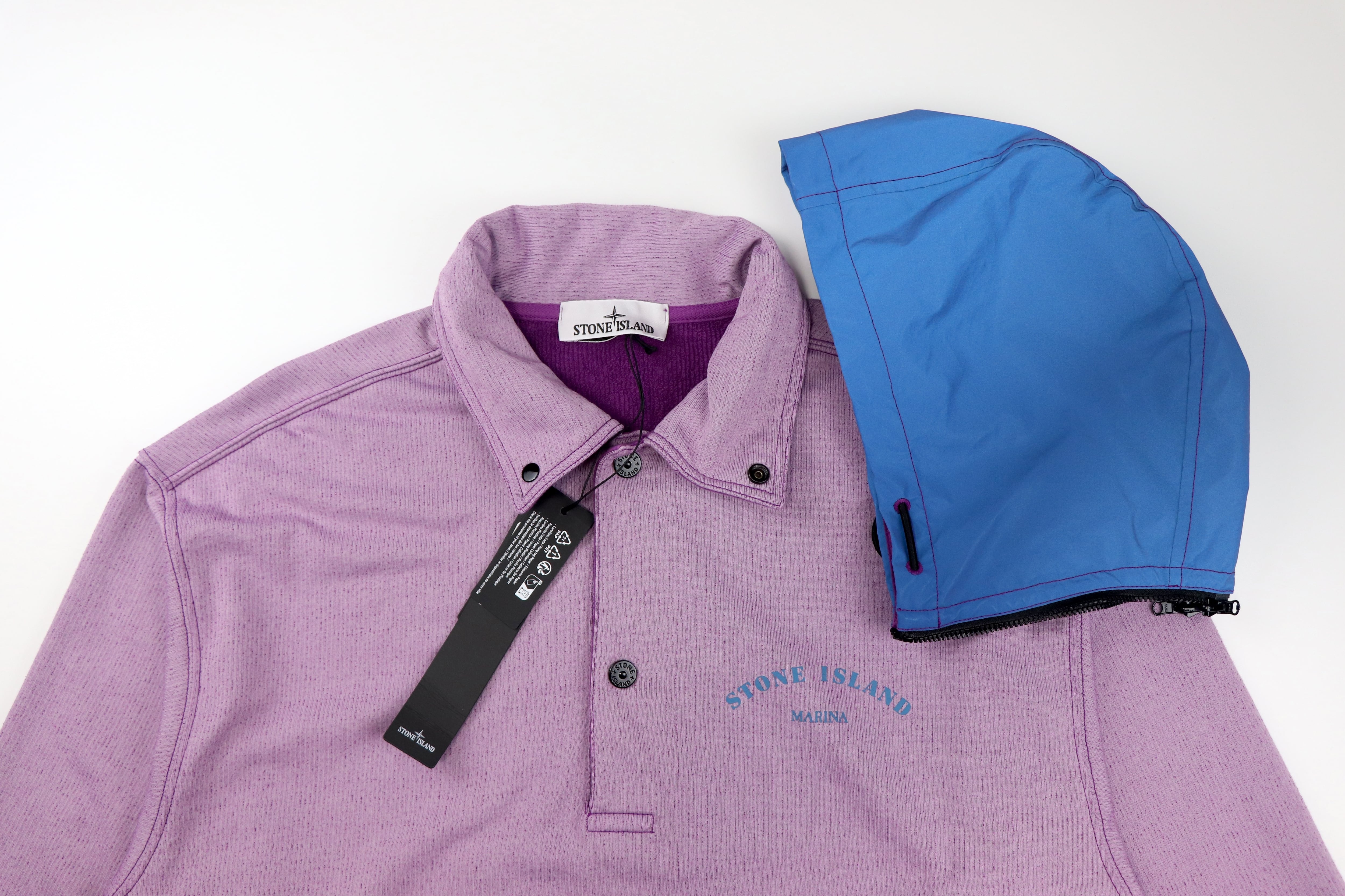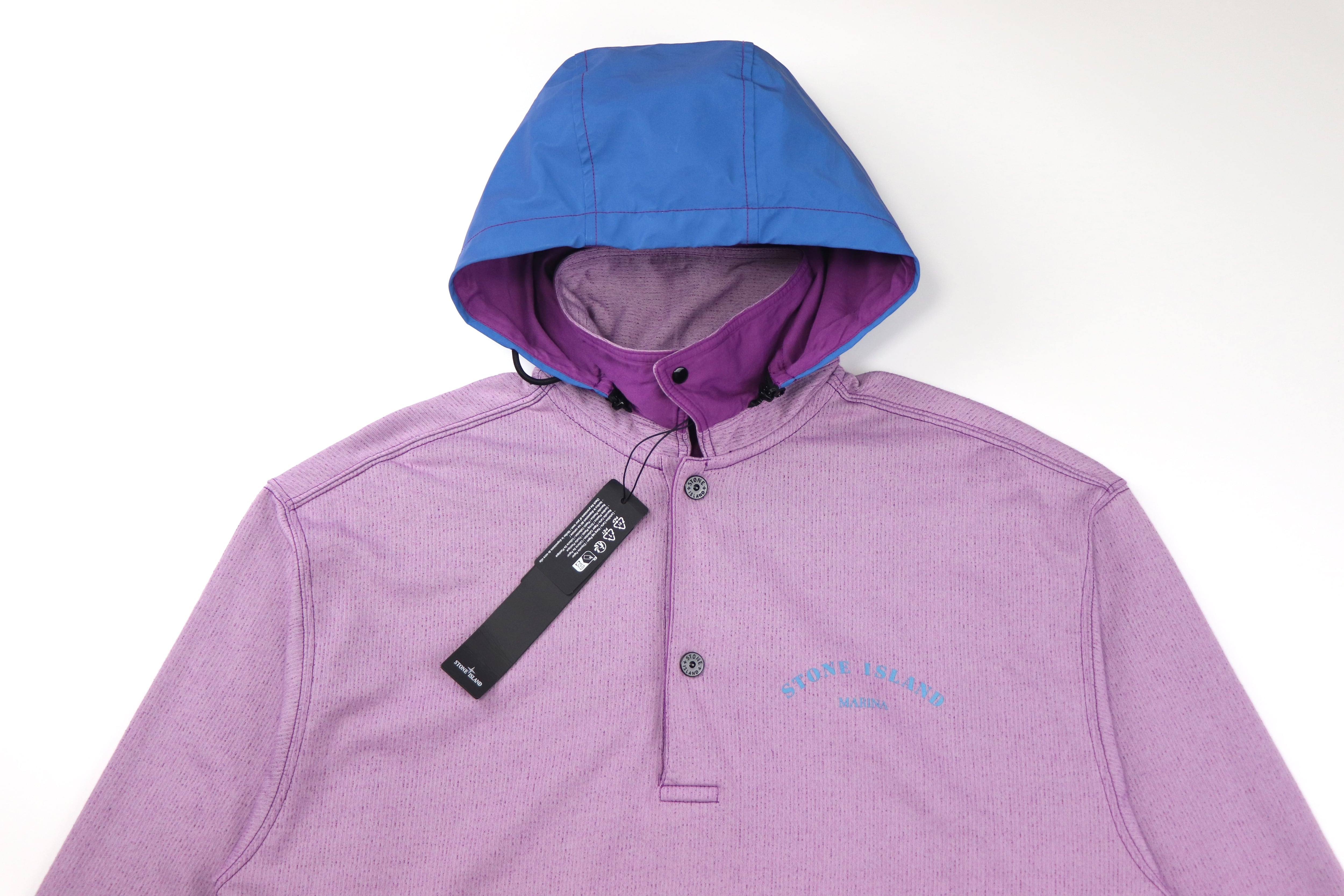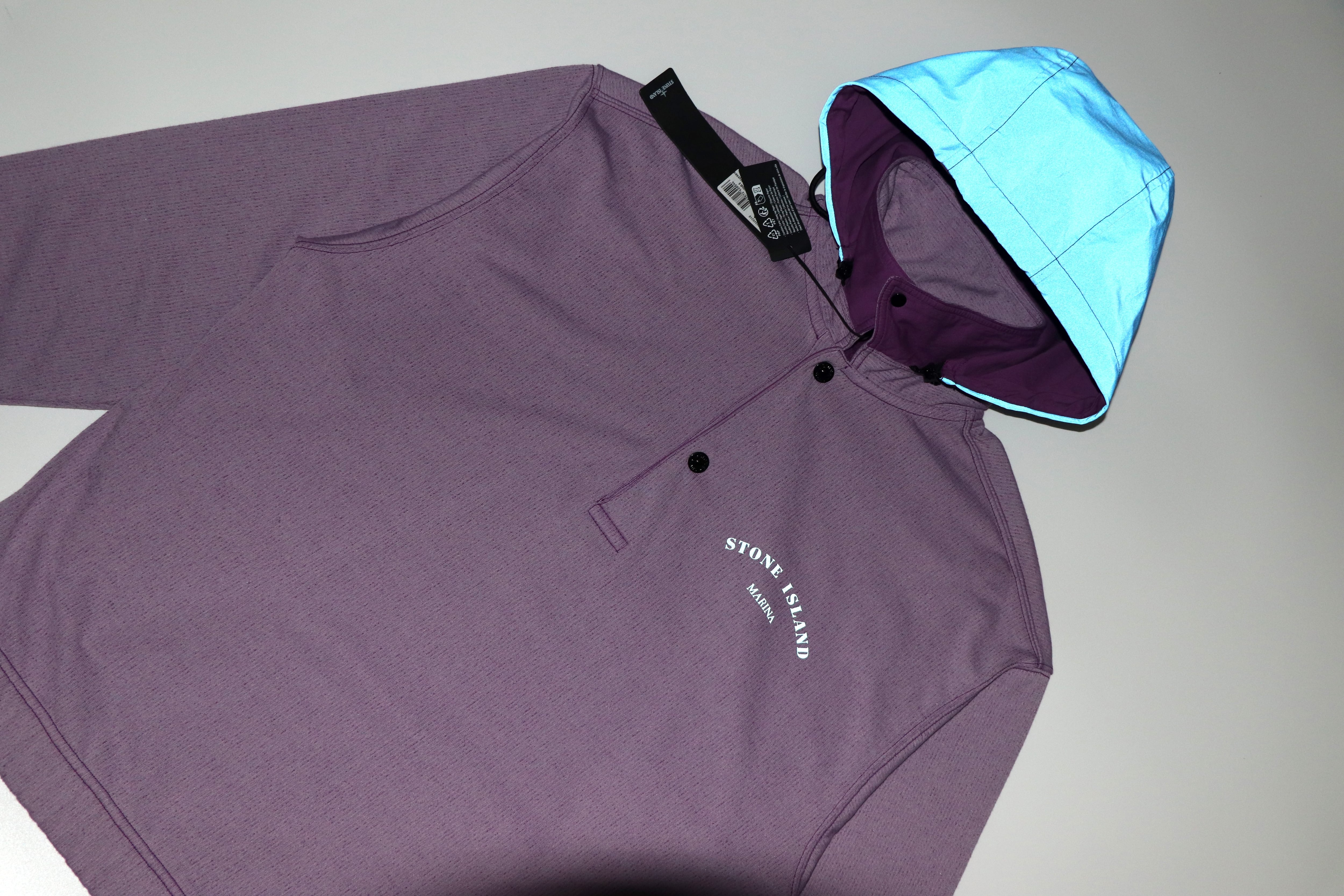 STONE ISLAND MARINAラインのフーデッドスウェット。落ち着いたパープルをベースにしたボディは、単色ではなくわずかな色のムラによって奥行きのある深みのある色合いに仕上げられており、シンプルながら存在感のある表情が魅力です。