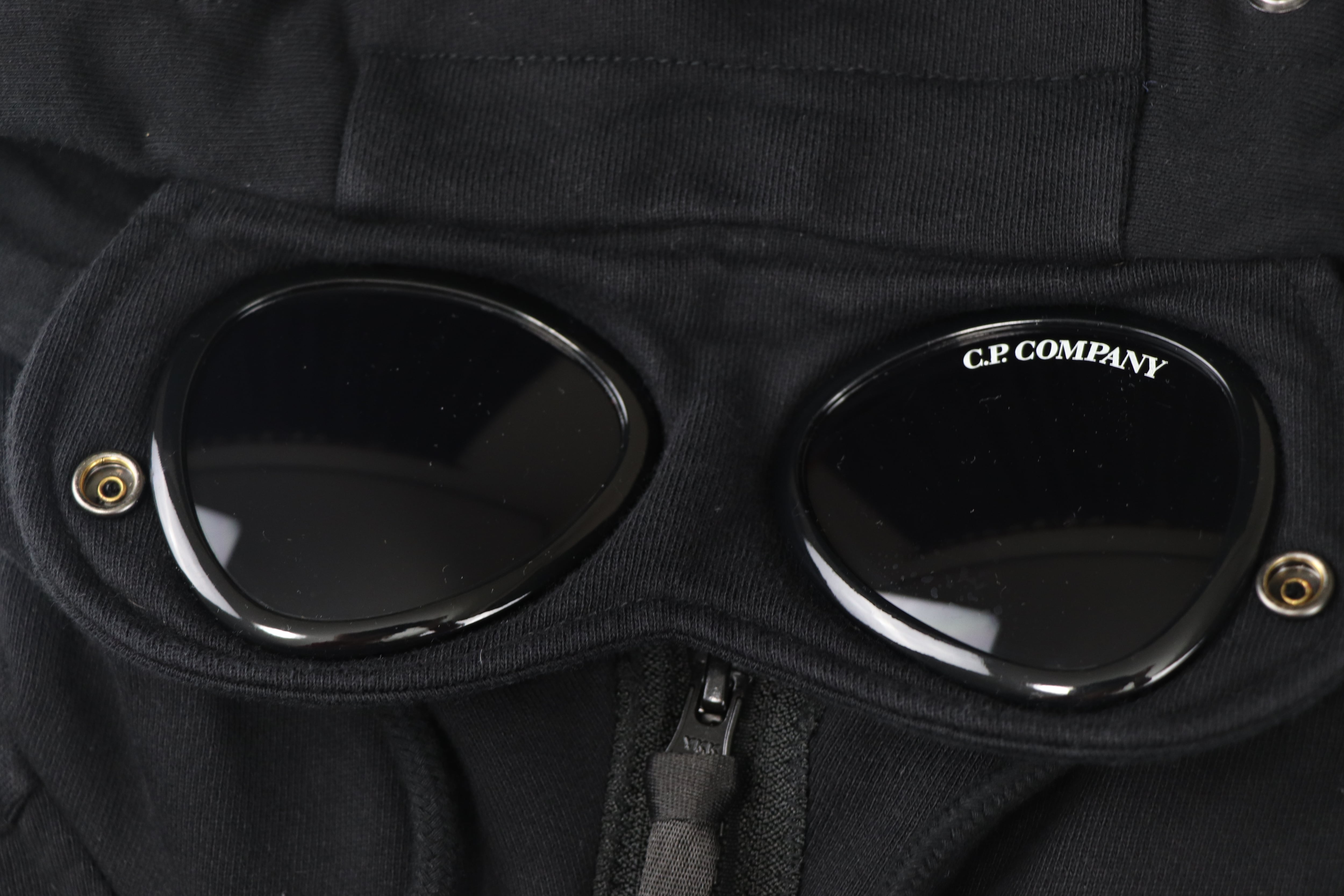 C.P. Companyを象徴するゴーグルレンズ付きフーディー。