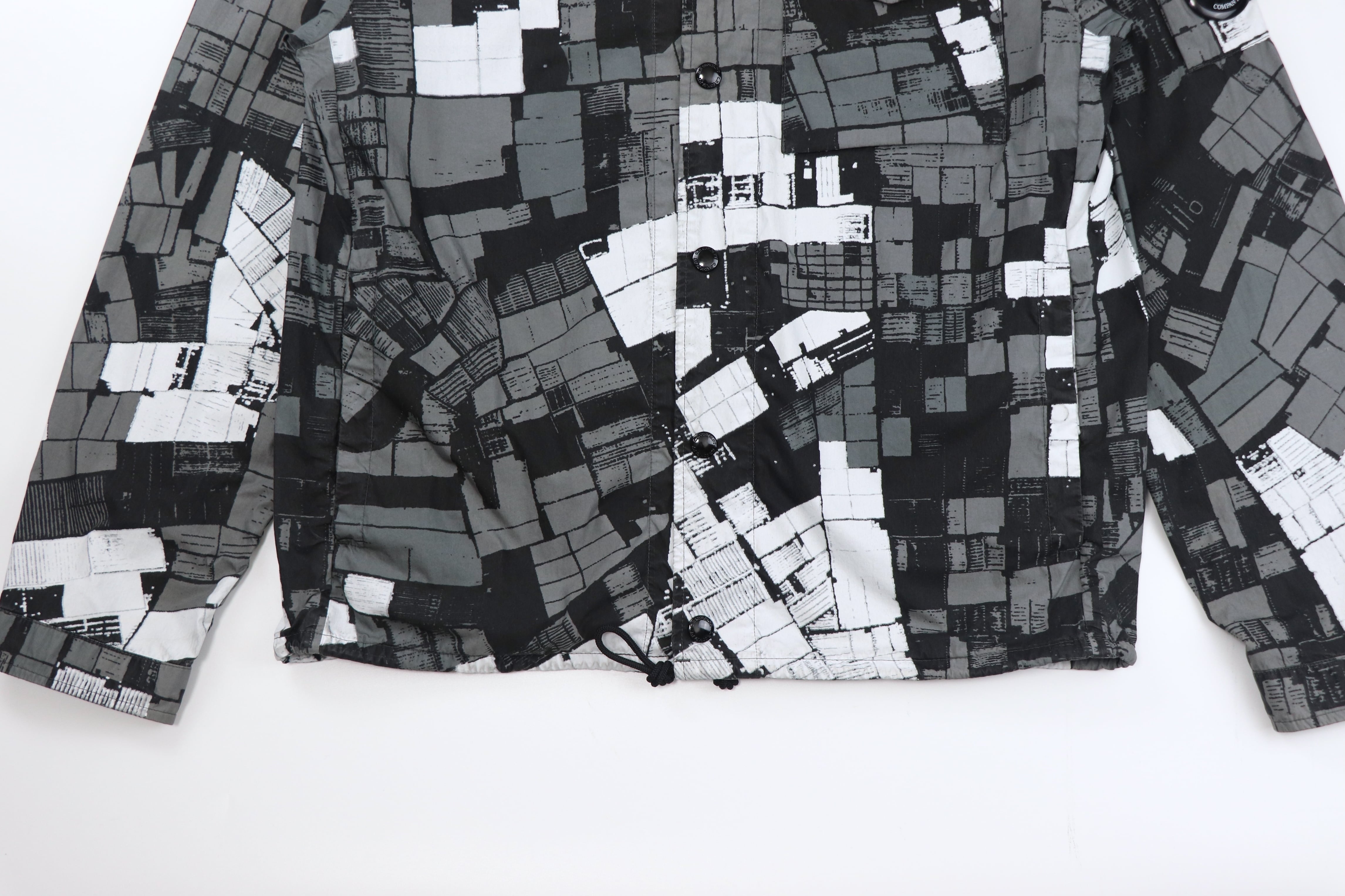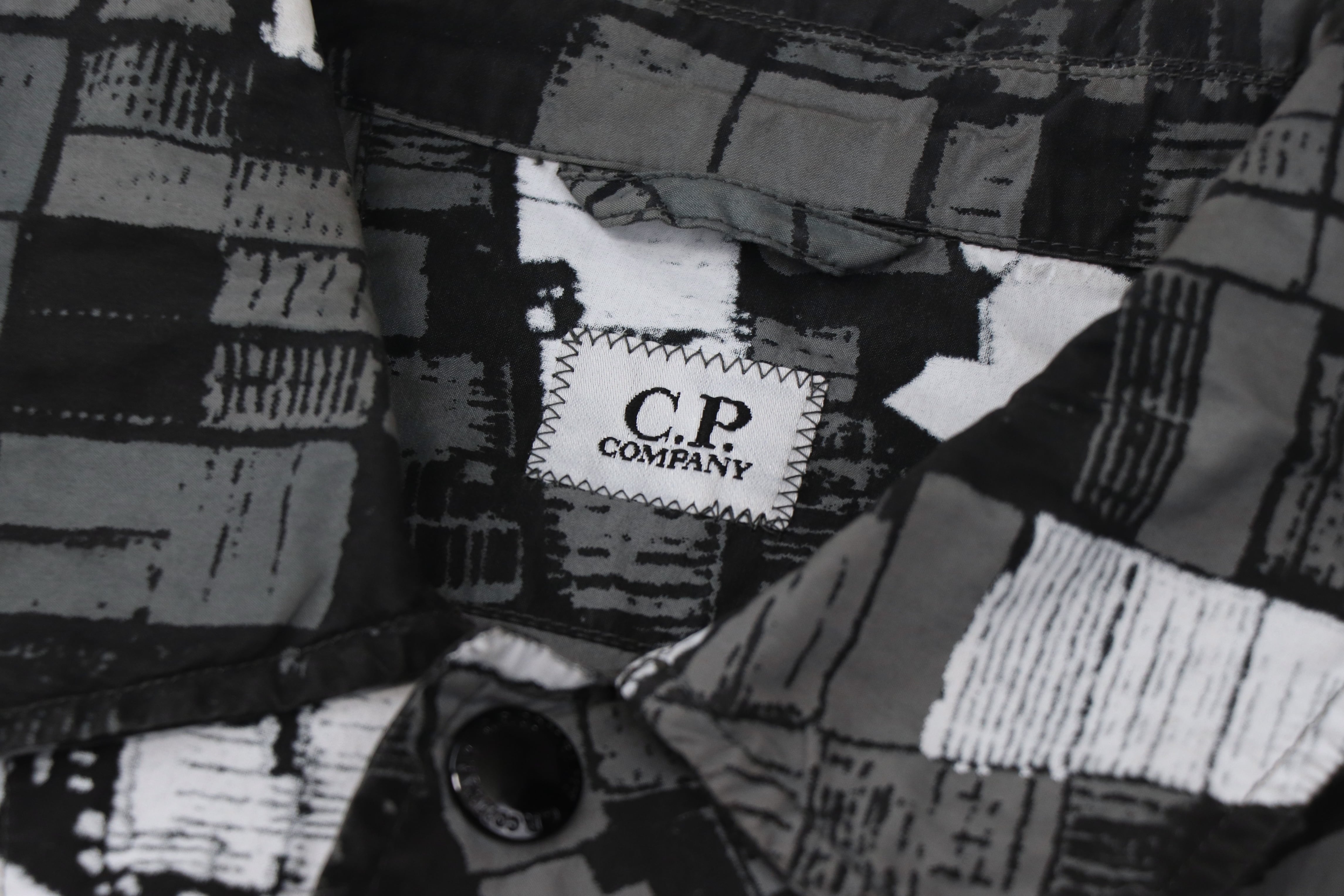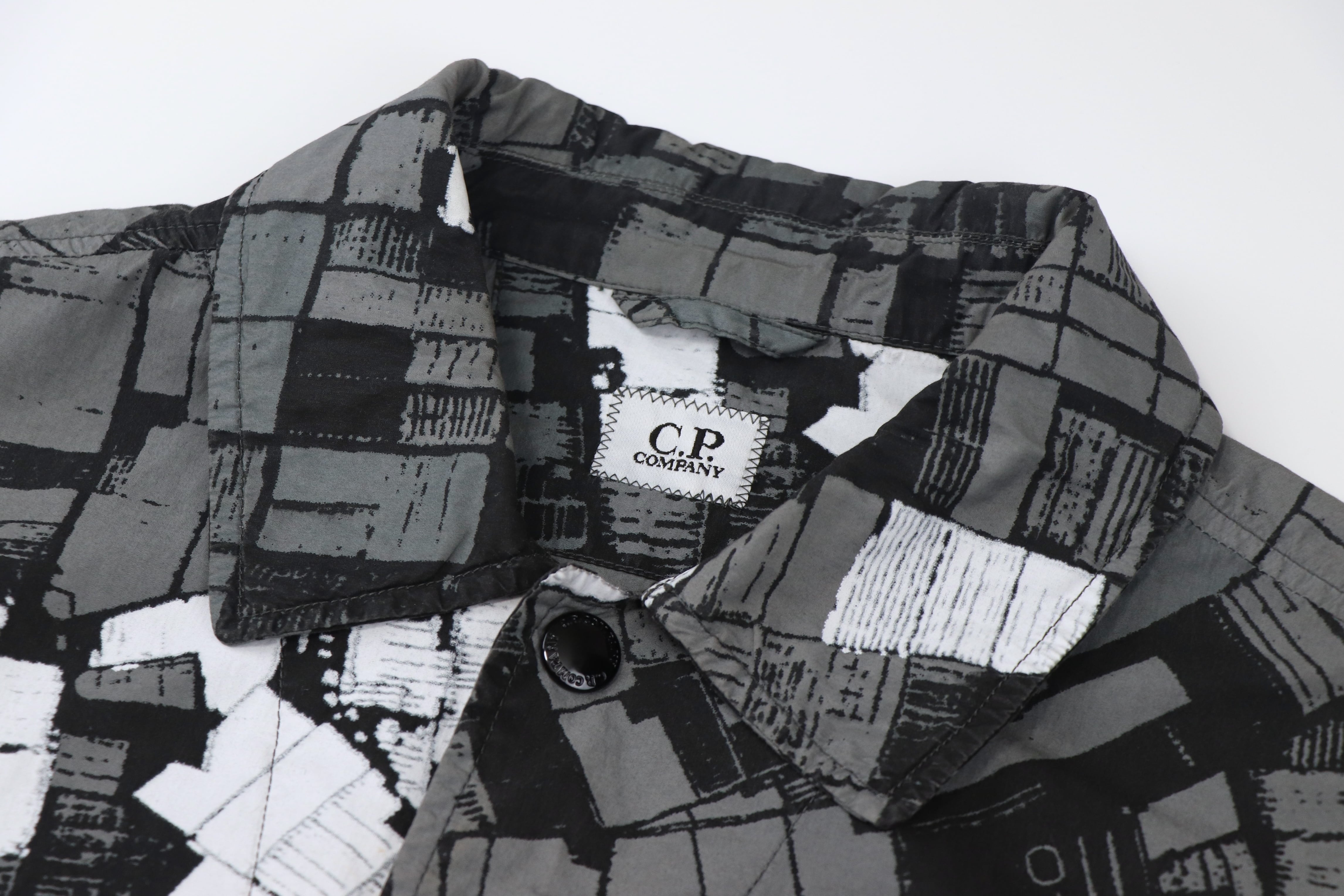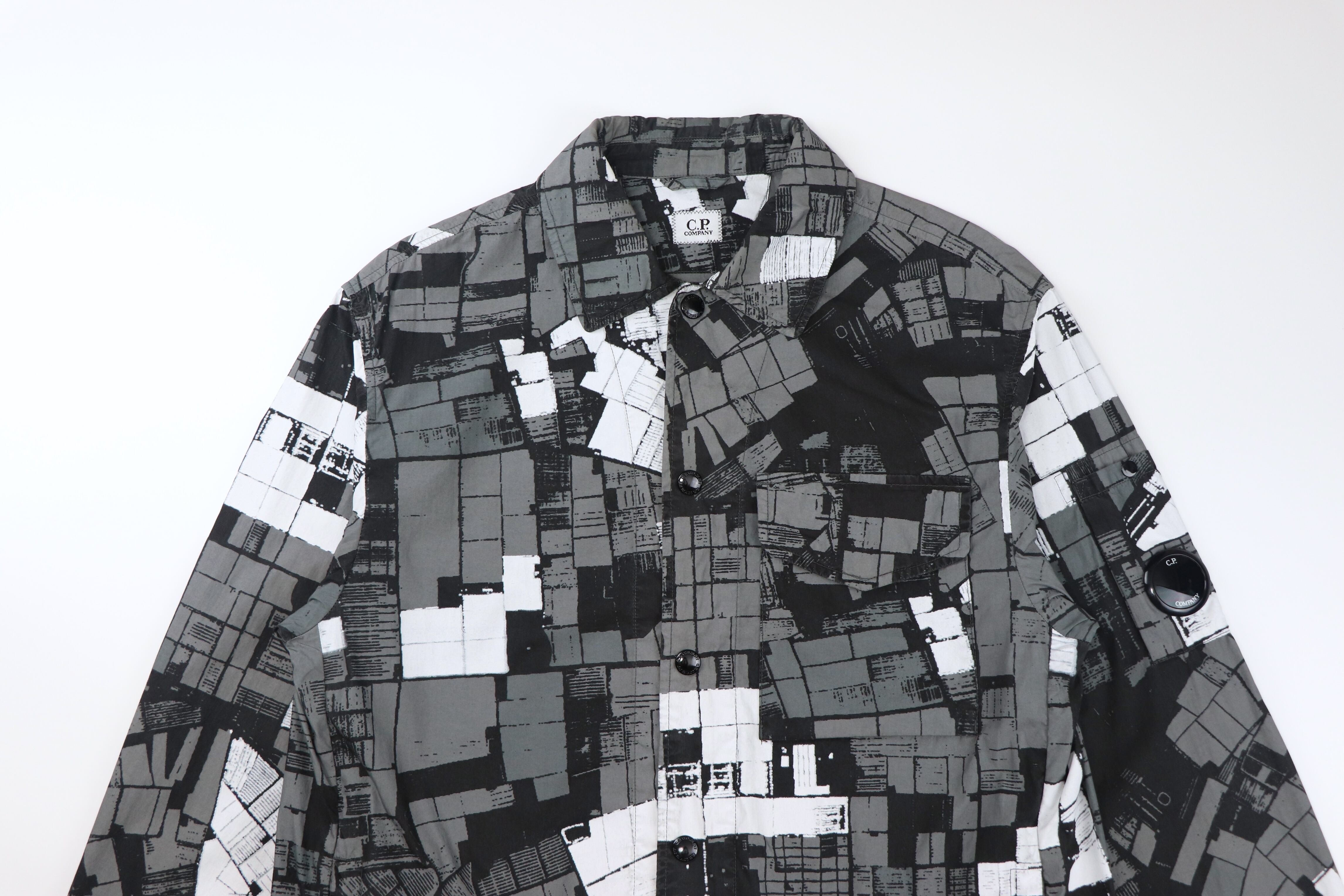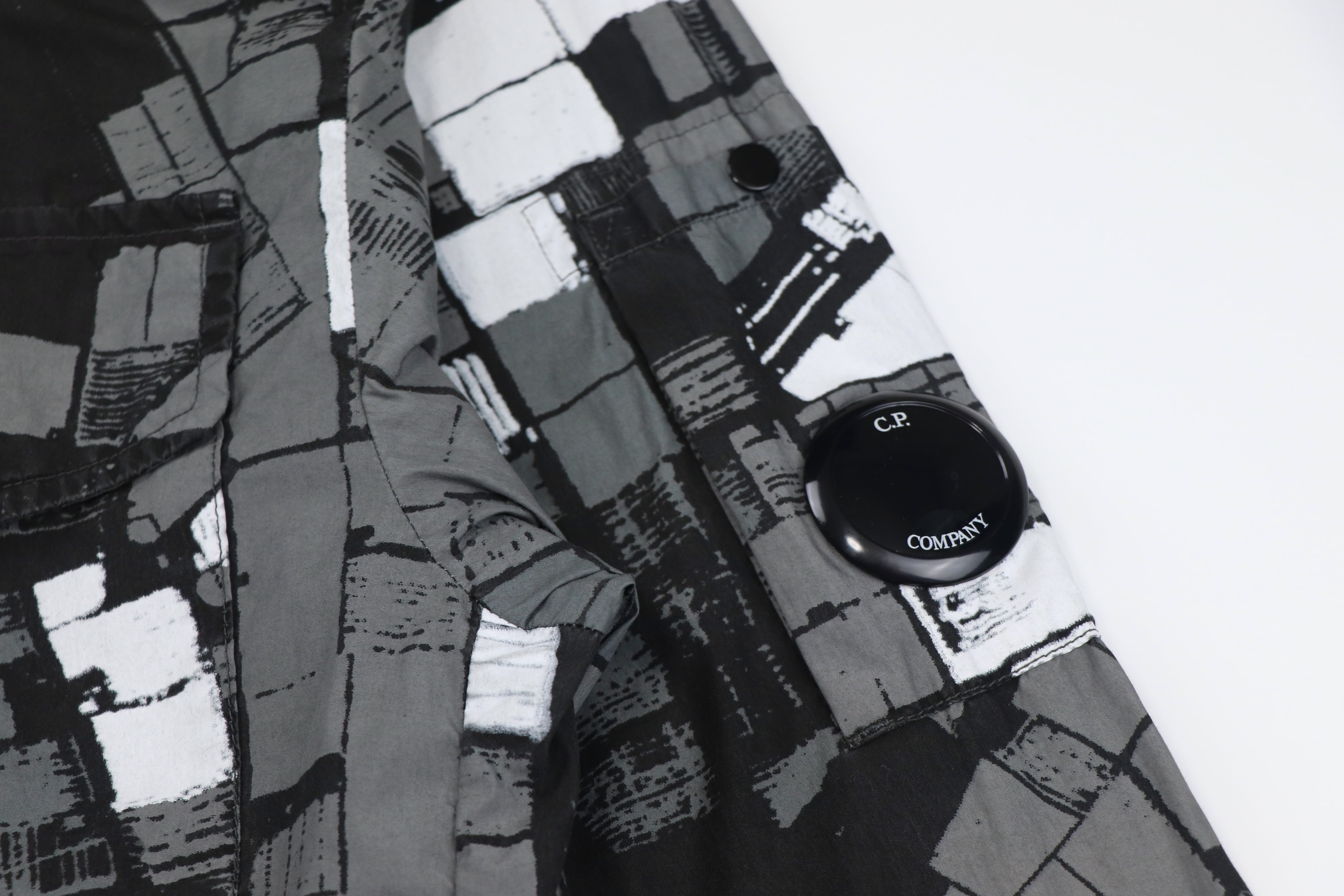 モノトーンで構成されたデジタルカモパターンが印象的なC.P. Companyのレンズシャツ。パッチワークのような幾何学的カモフラージュは、ミリタリー要素とモダンなグラフィックが融合した存在感のあるデザインです。