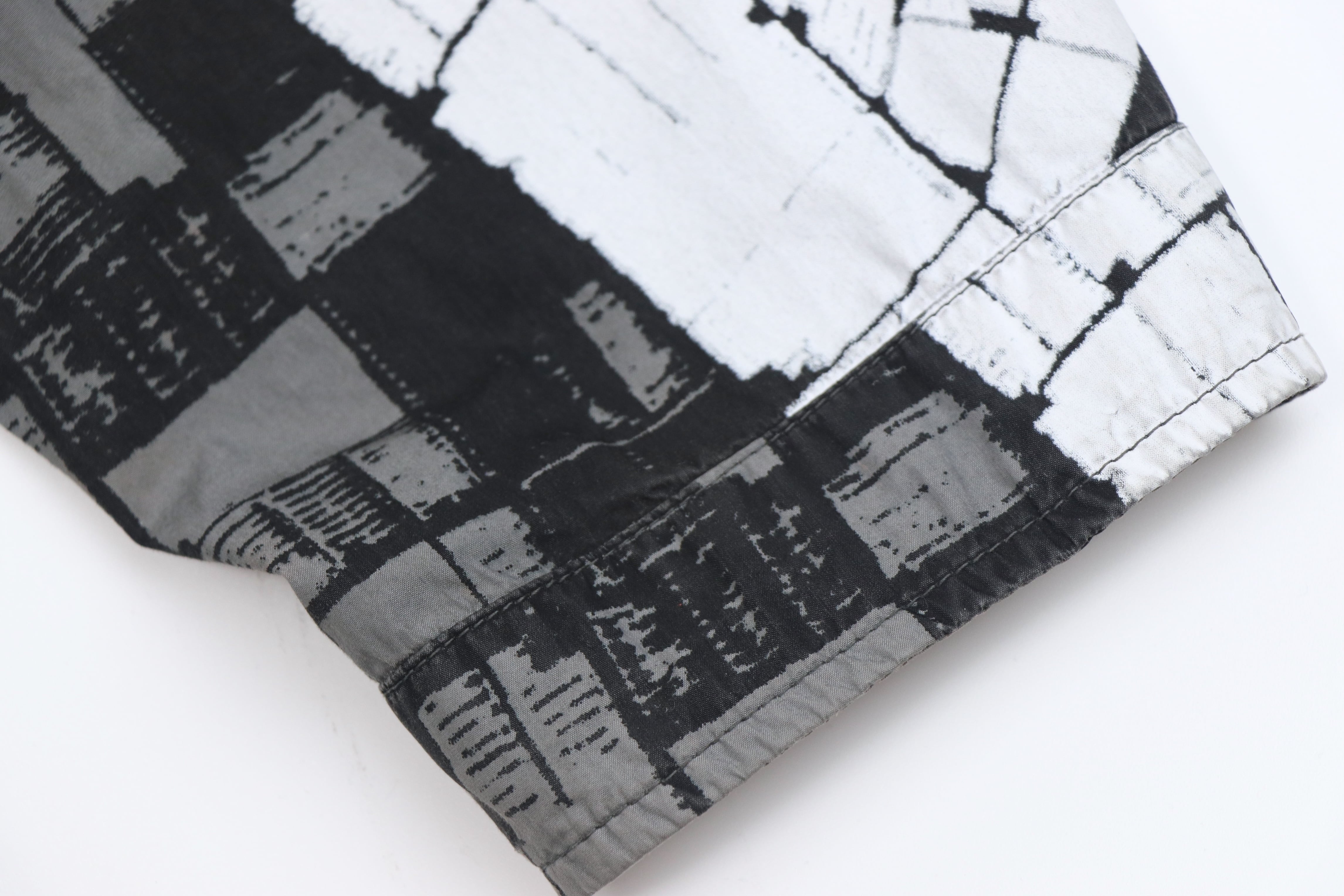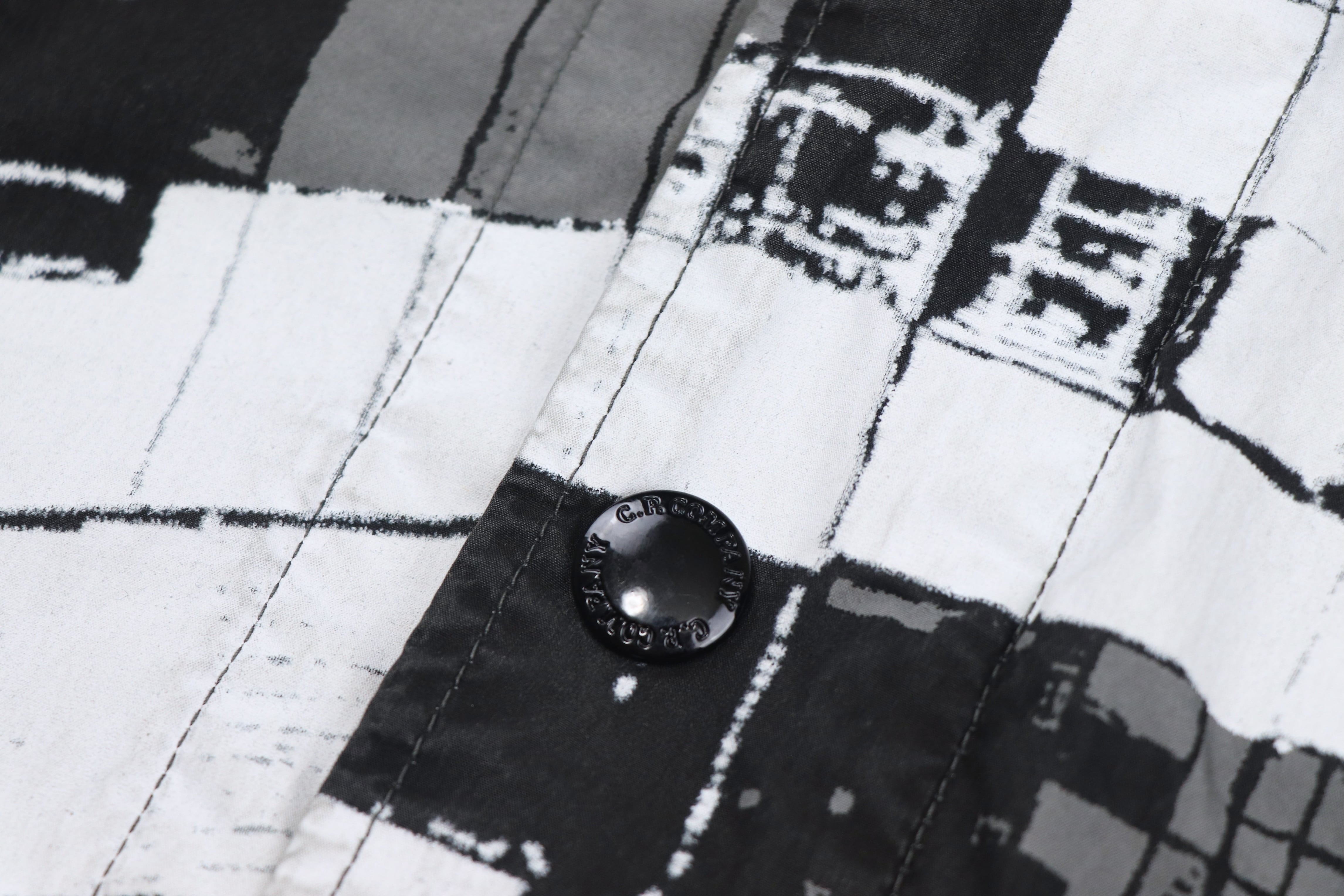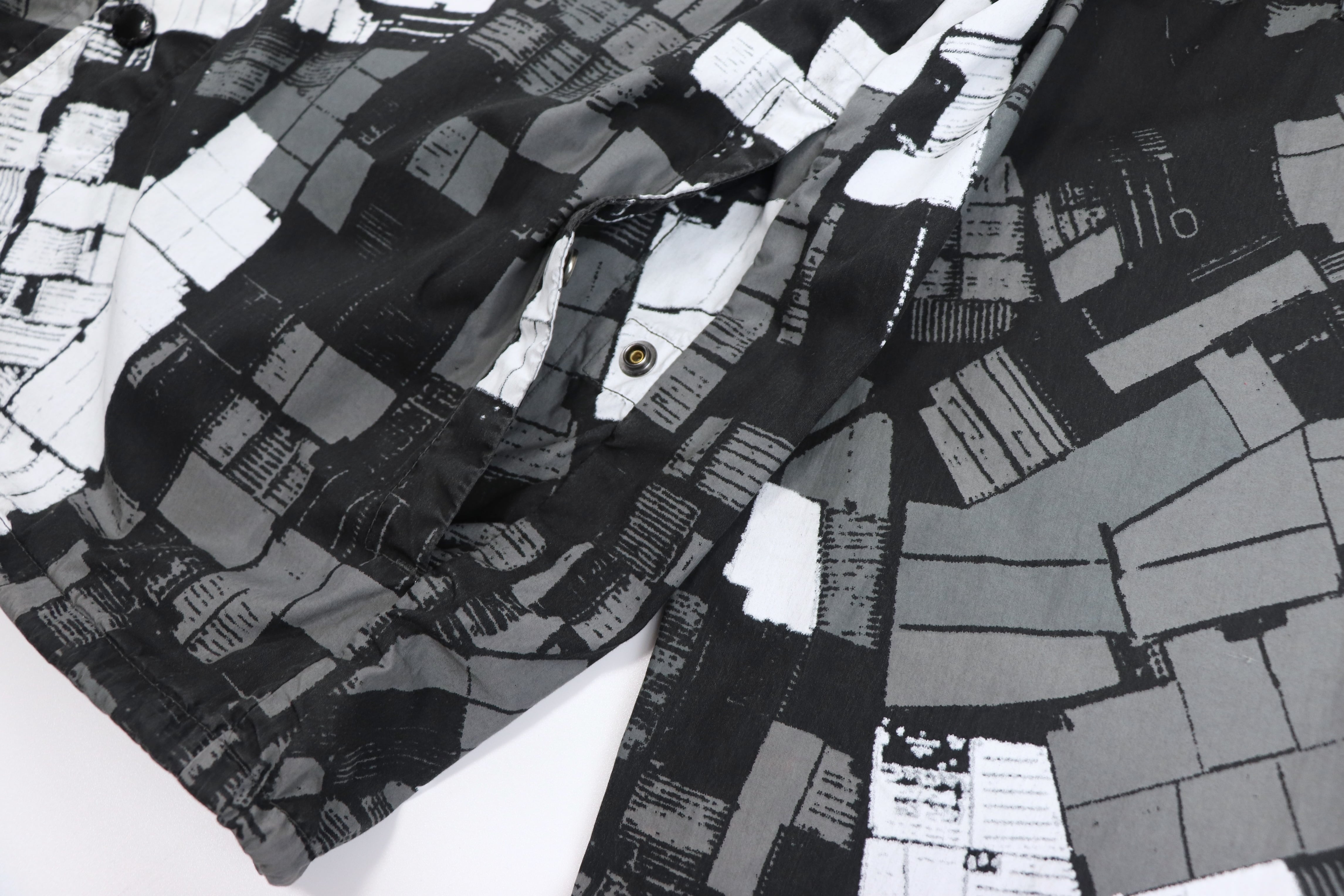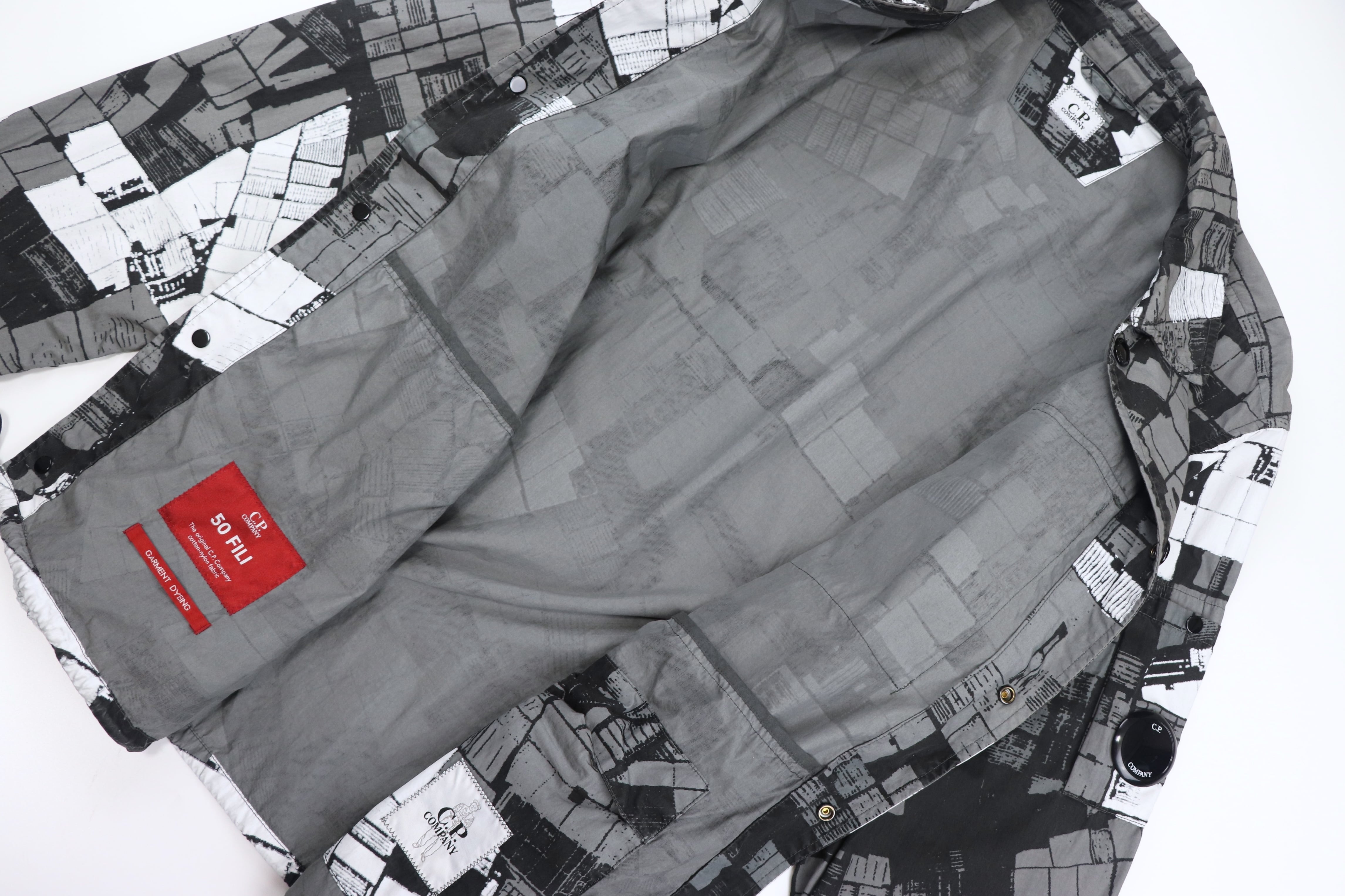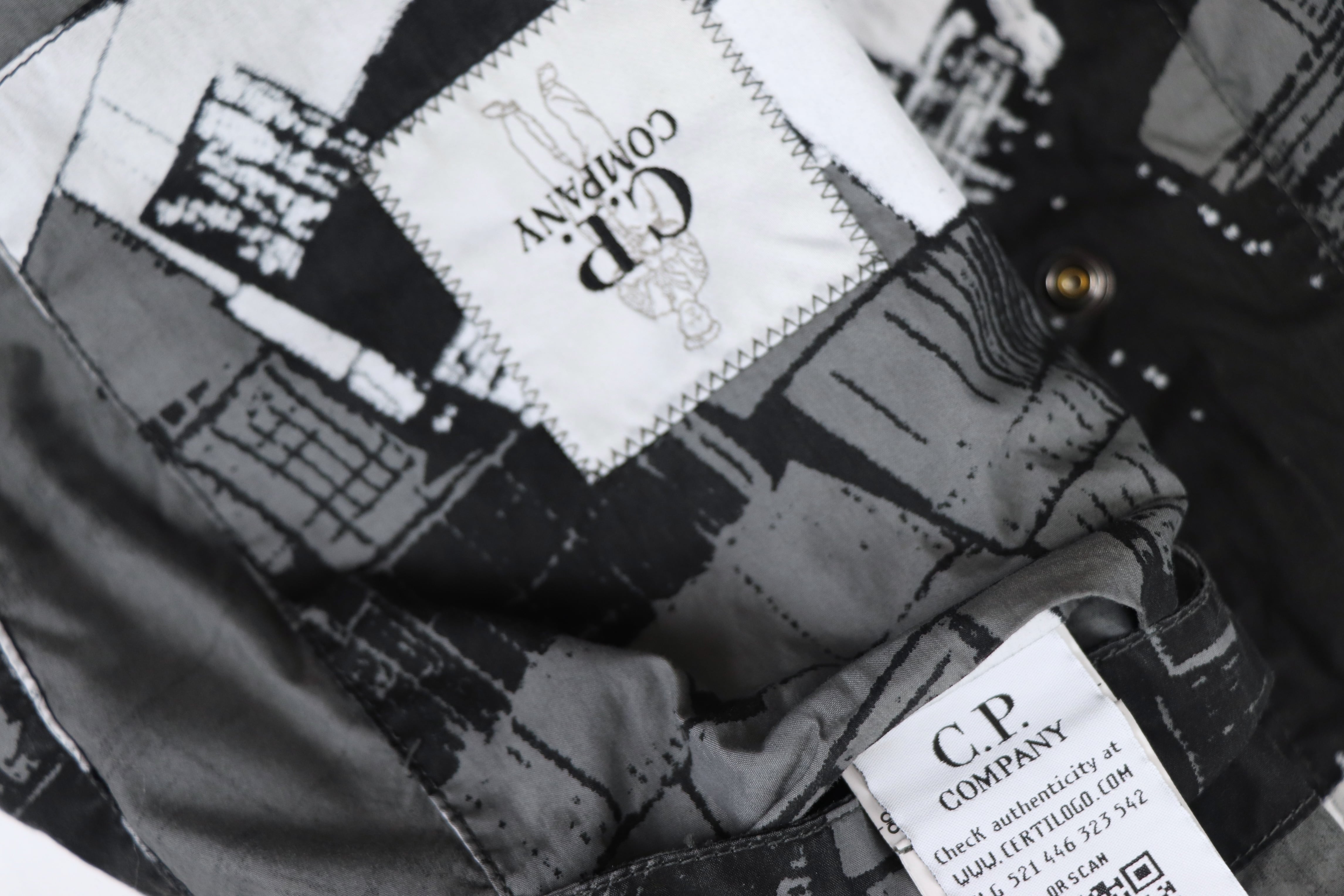 モノトーンで構成されたデジタルカモパターンが印象的なC.P. Companyのレンズシャツ。パッチワークのような幾何学的カモフラージュは、ミリタリー要素とモダンなグラフィックが融合した存在感のあるデザインです。
