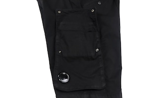 両サイドにはサイズの異なるテクニカルポケットを配置。用途に応じて使い分けができる実用的な設計で、立体的なカーゴポケットがデザインのアクセントにもなっています。右側ポケットにはCP Companyらしいレンズディテールも備えられています。