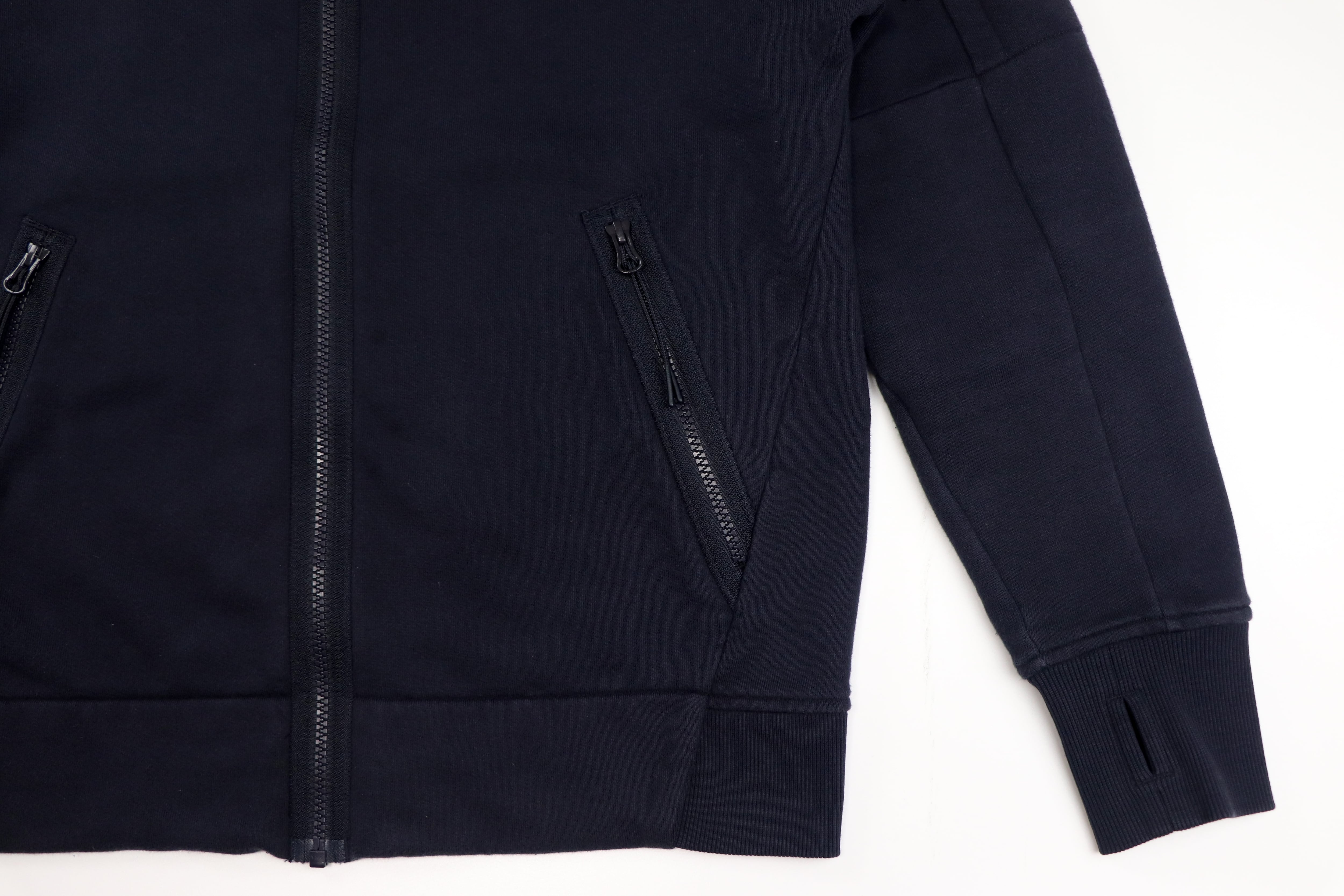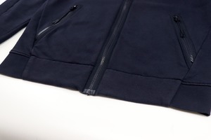 C.P. Companyらしい機能的なデザインとミニマルな雰囲気を兼ね備えたジップアップスウェット。