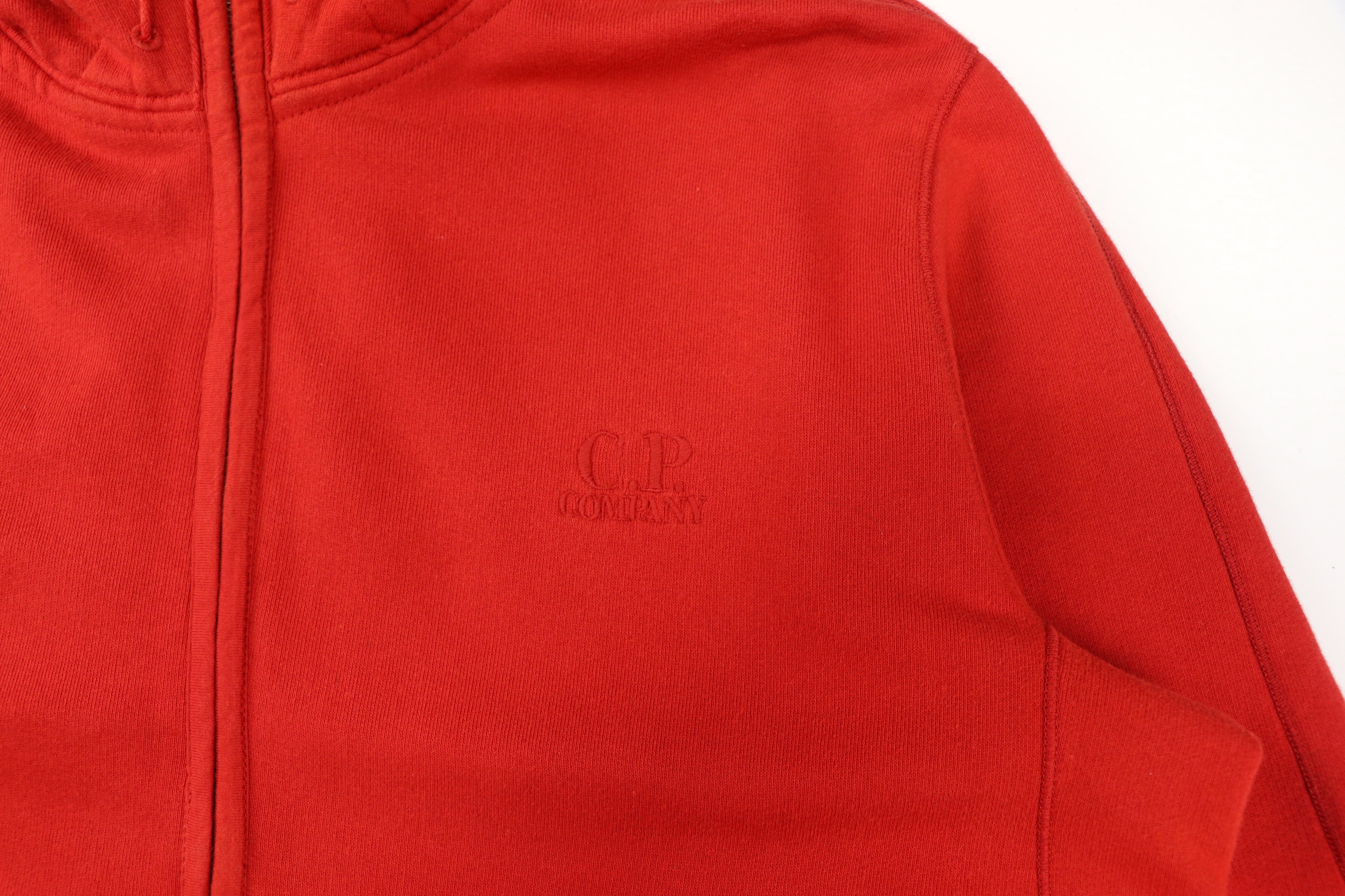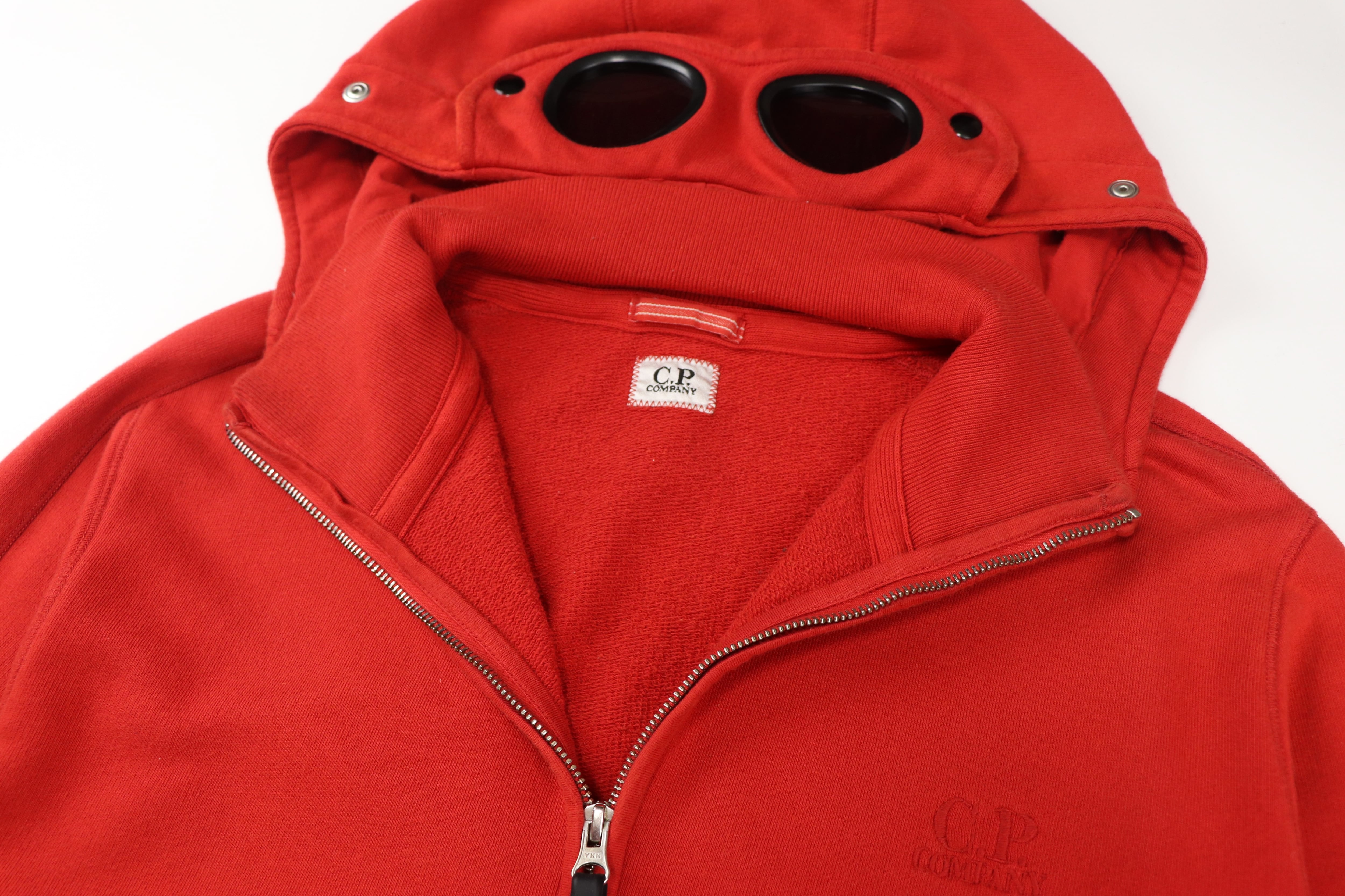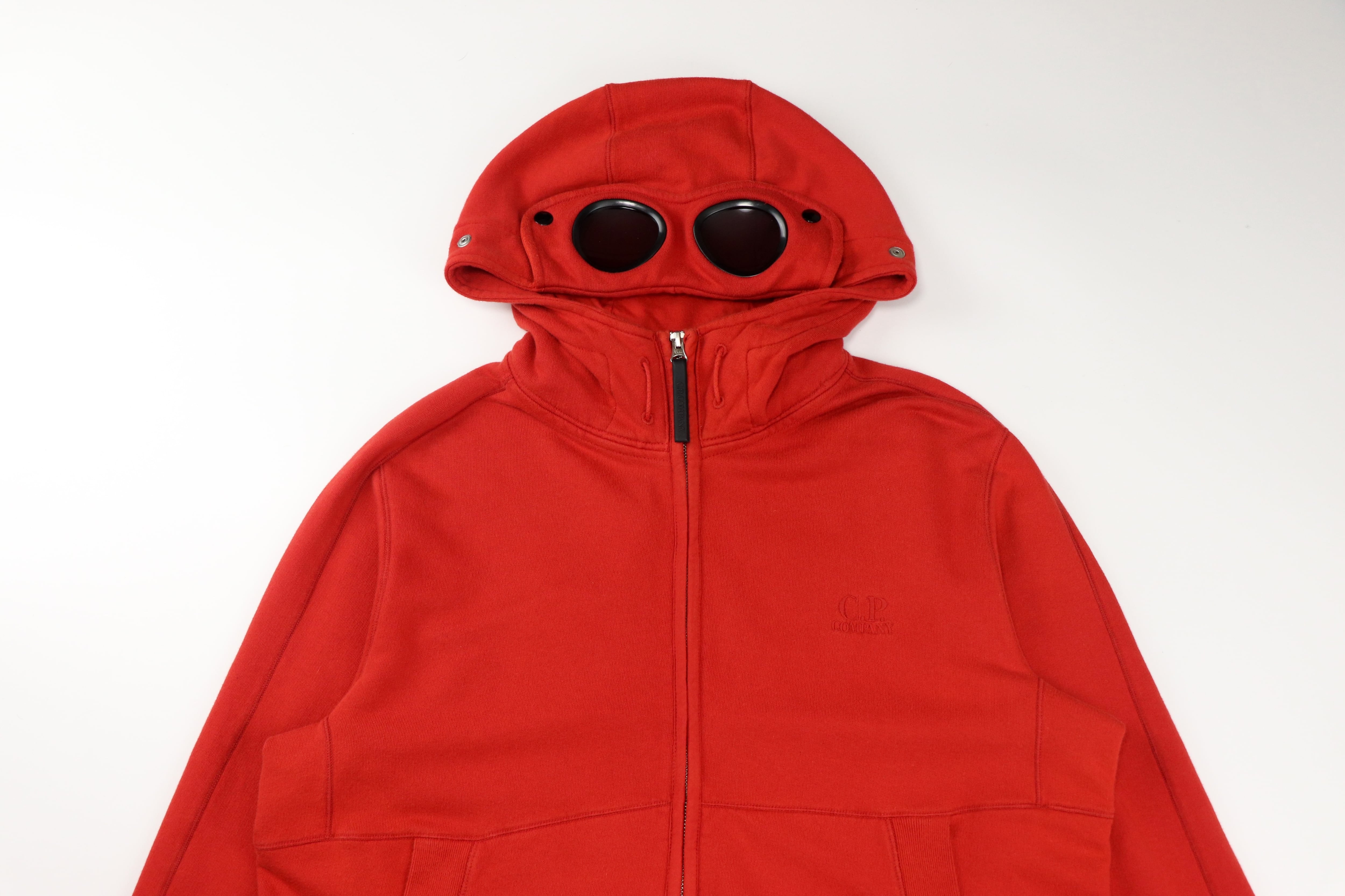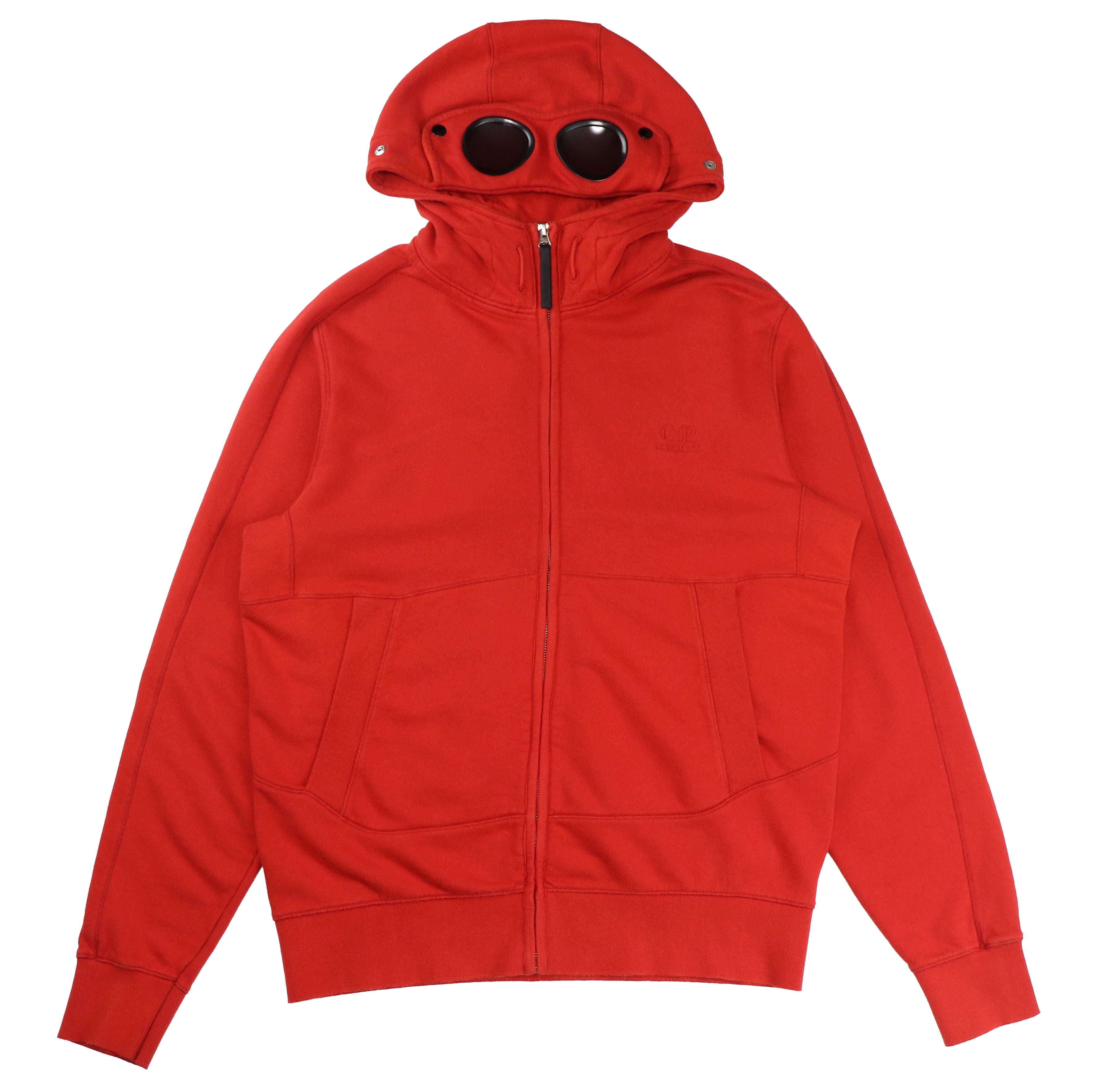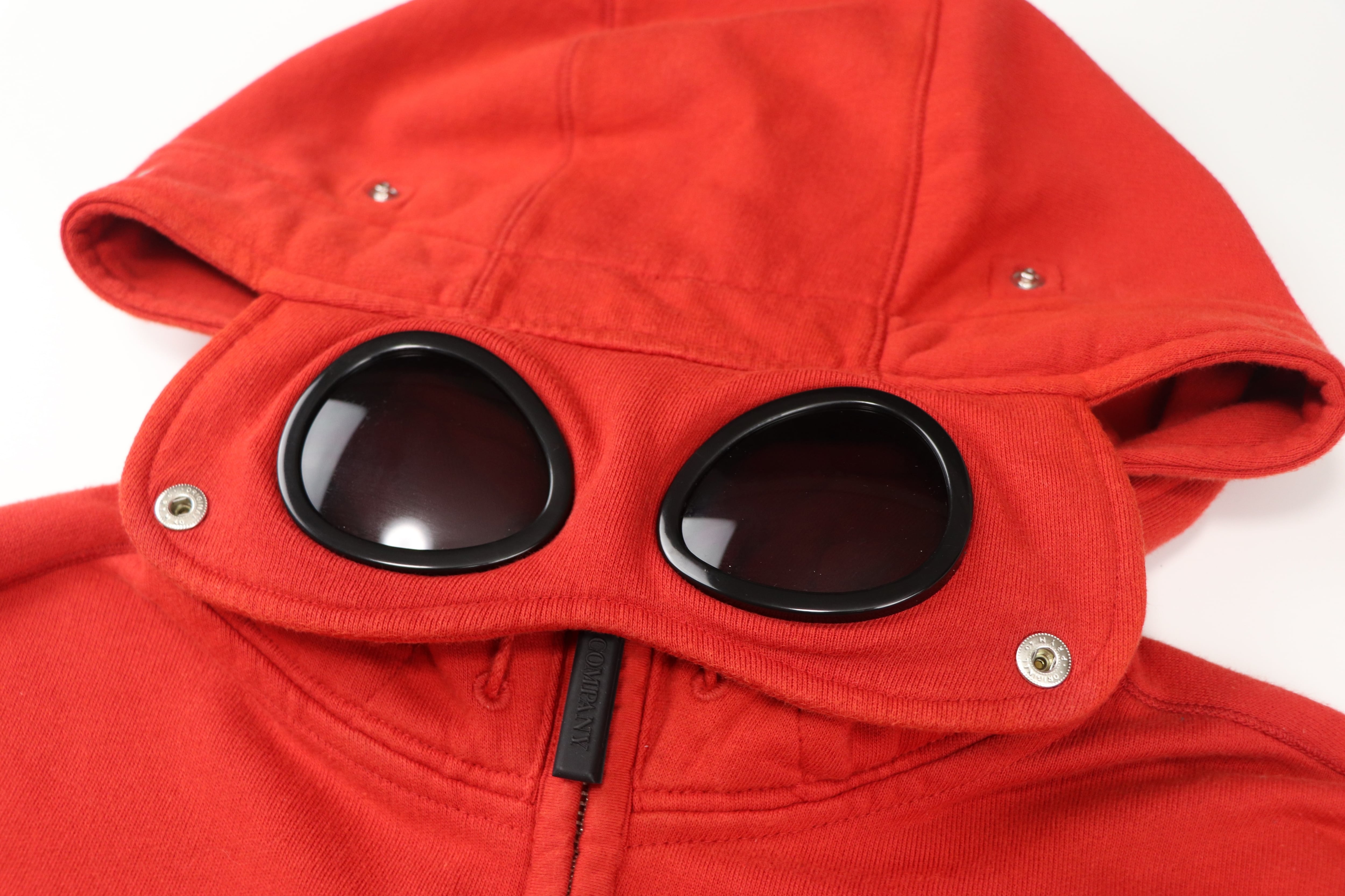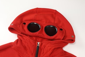 C.P. Companyを象徴するゴーグルフードを備えたジップアップフーディー。