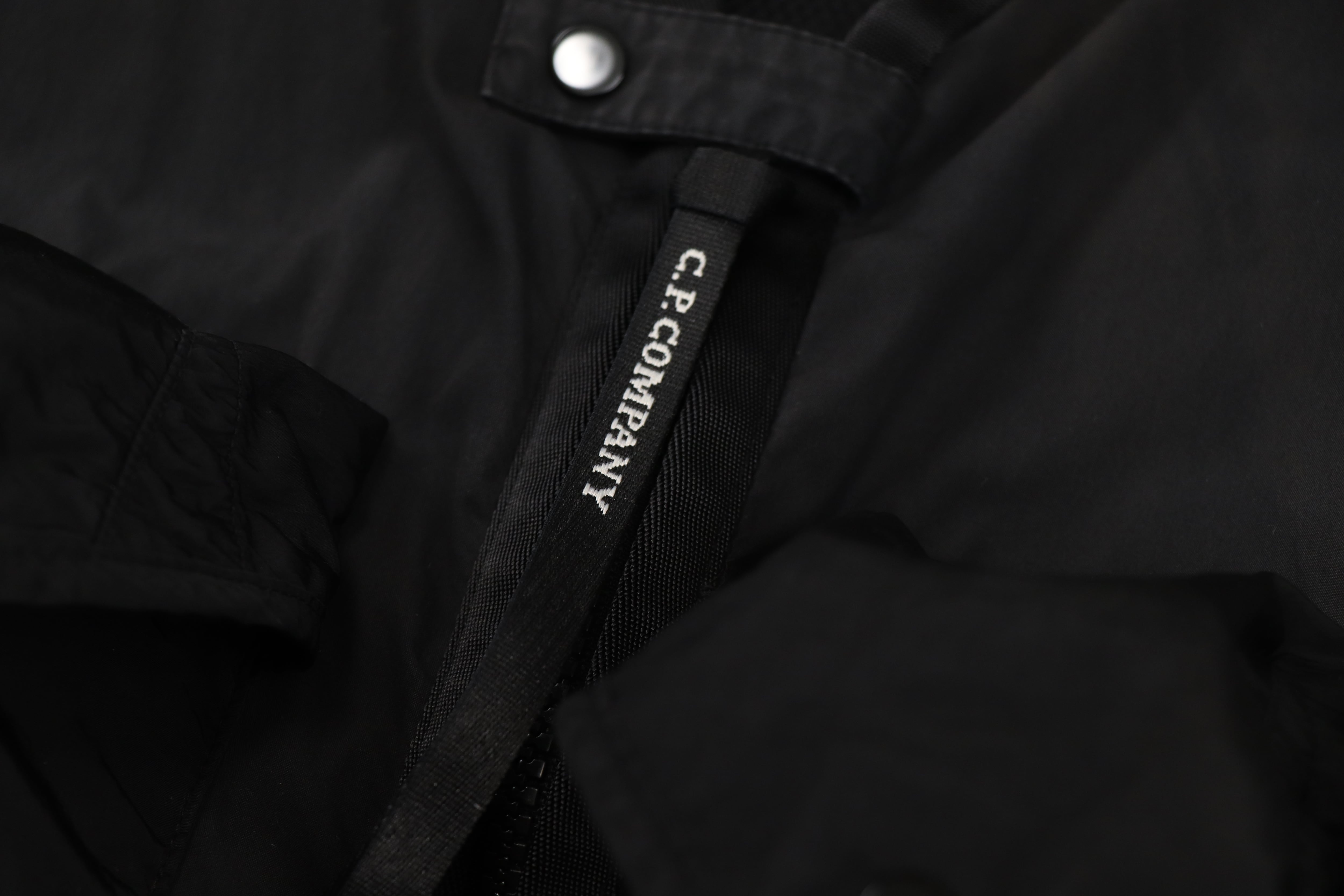 フロントはジップアップ仕様。胸元にはブランドらしいレンズディテールが配され、C.P. Companyを象徴するディテールもしっかりと備えています。