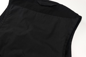 背面にはアジャスタブルベルトが設けられており、シルエットを絞ってフィット感を調整することも可能。軽量で扱いやすく、カットソーやシャツ、ジャケットの上からレイヤードすることで幅広いスタイリングに対応します。