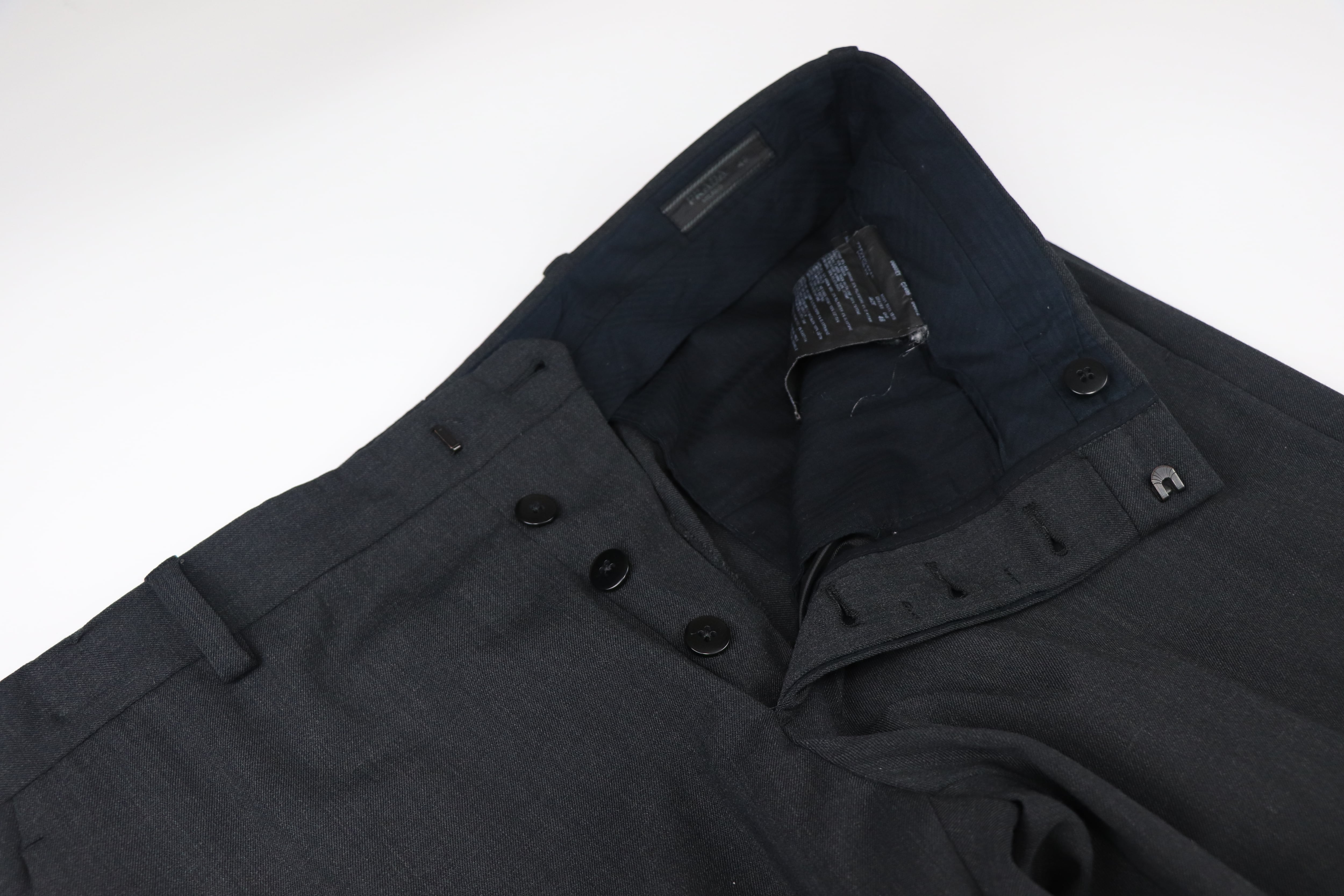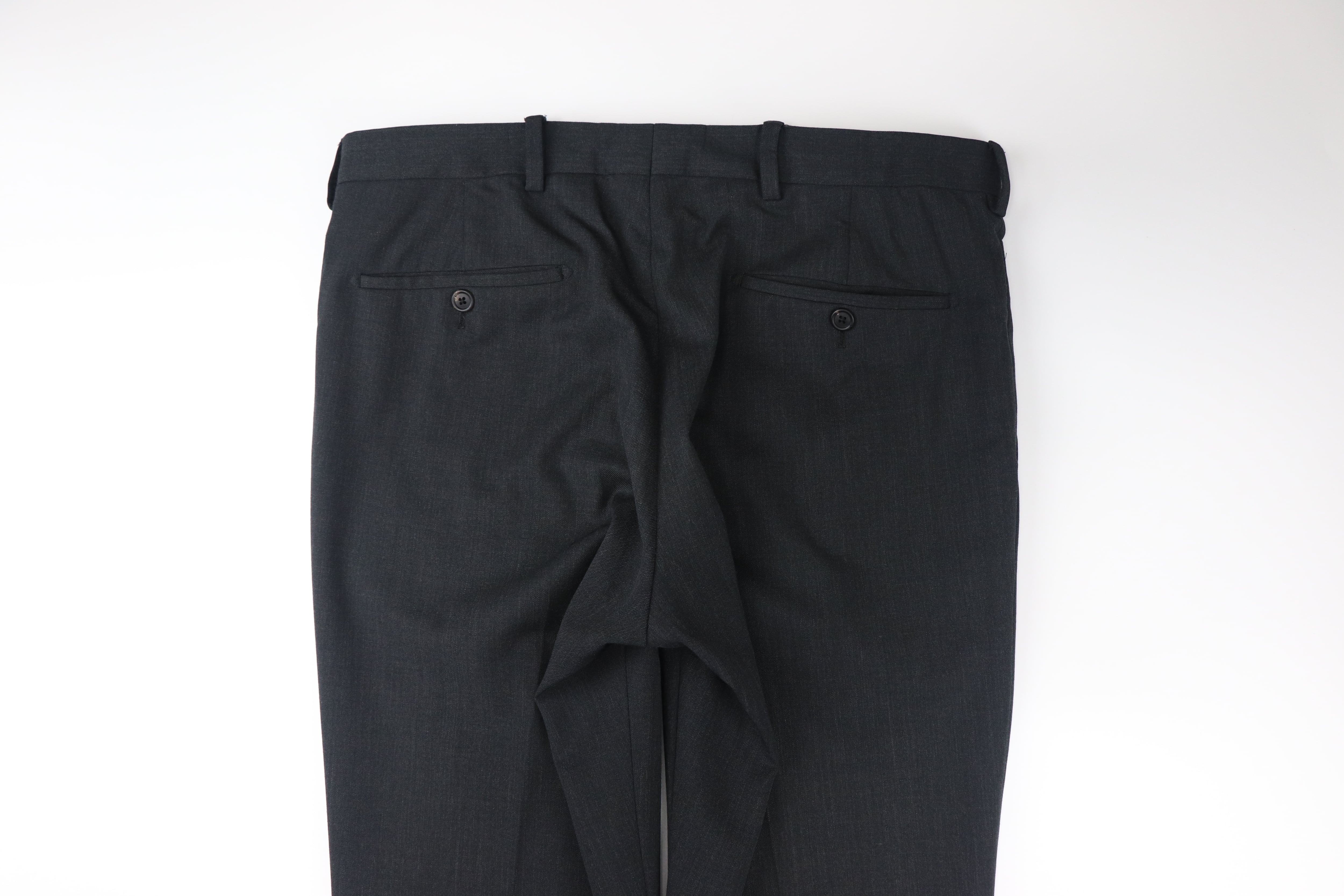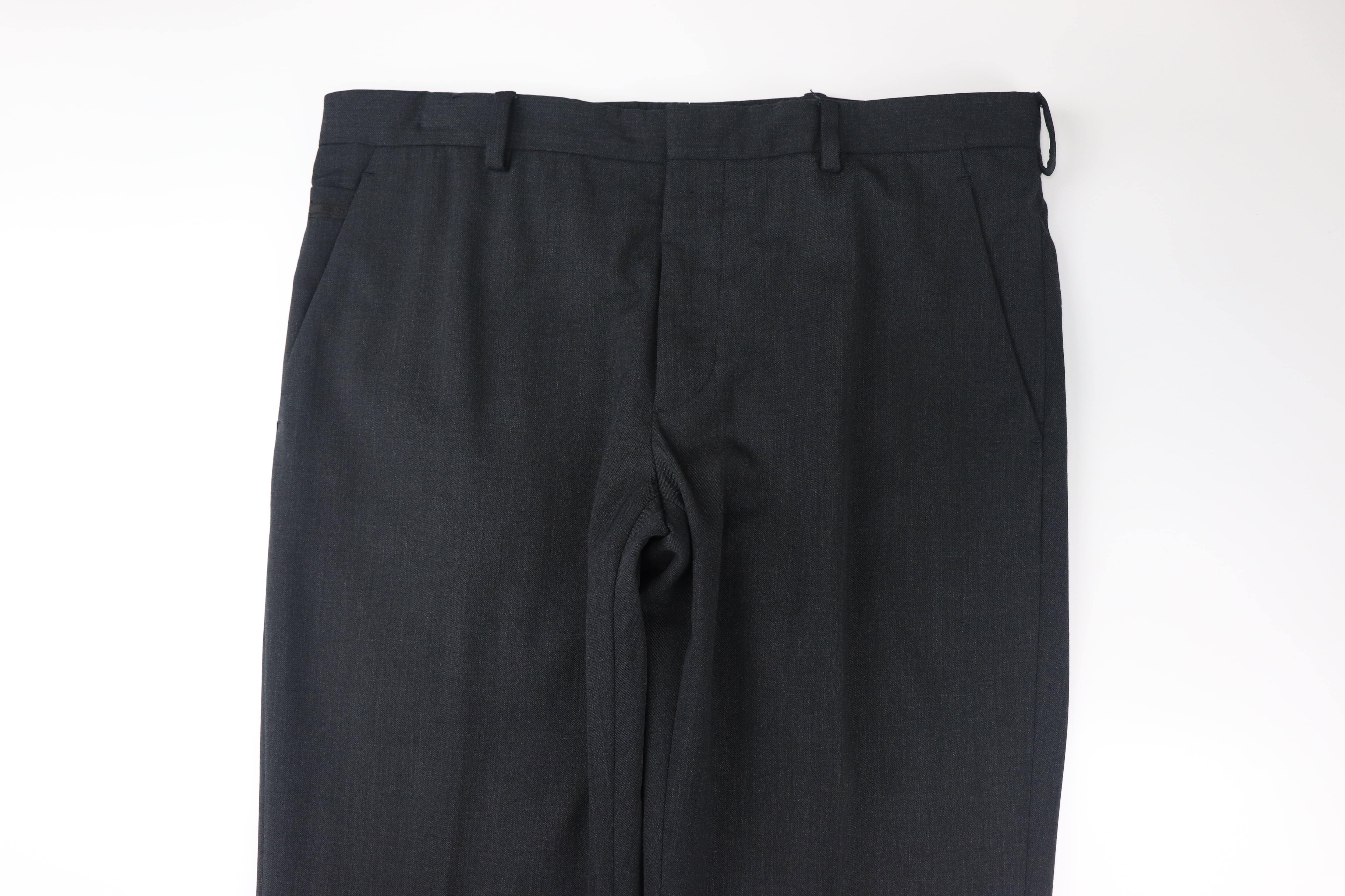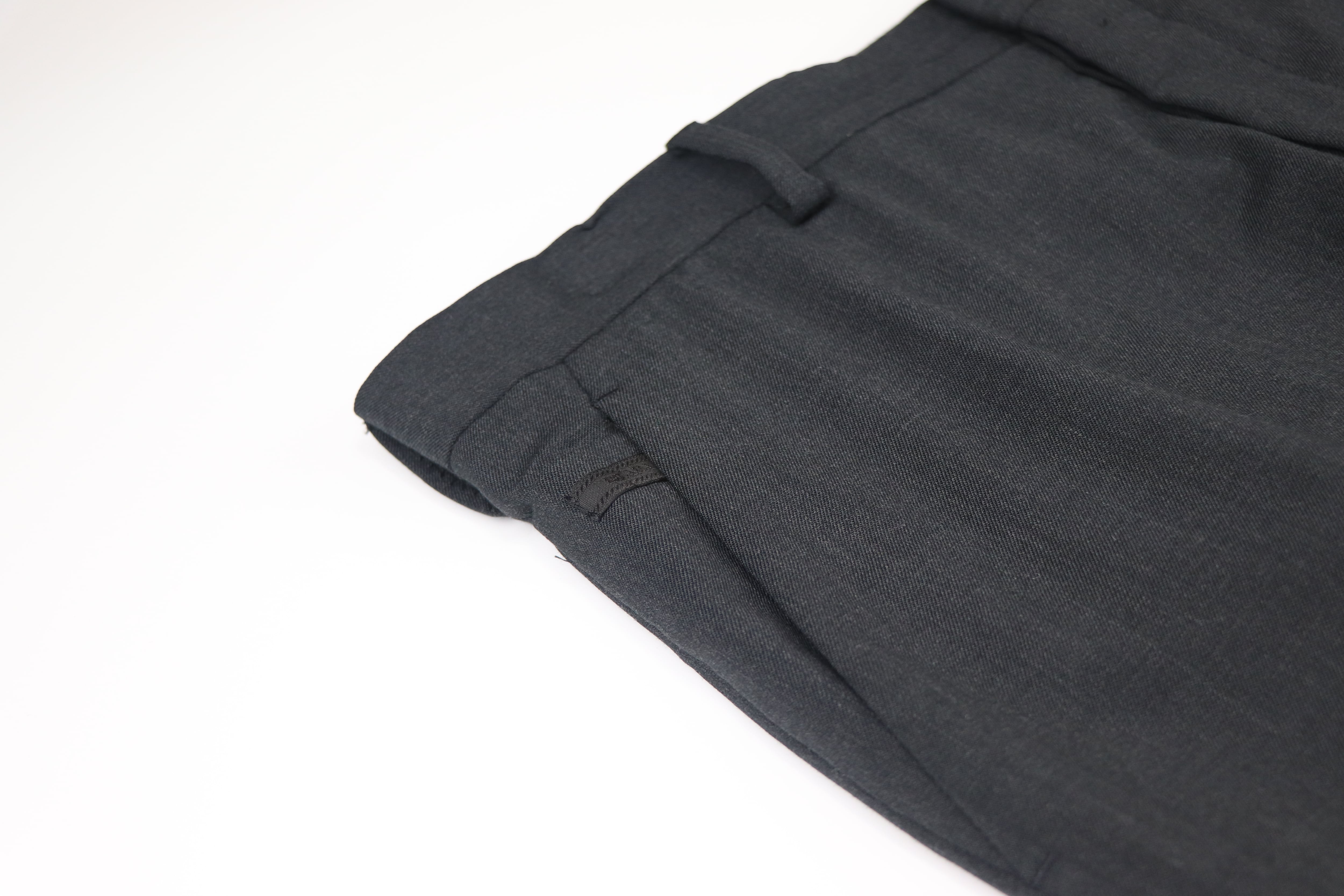 落ち着きのあるグレーが特徴のスラックスパンツ。