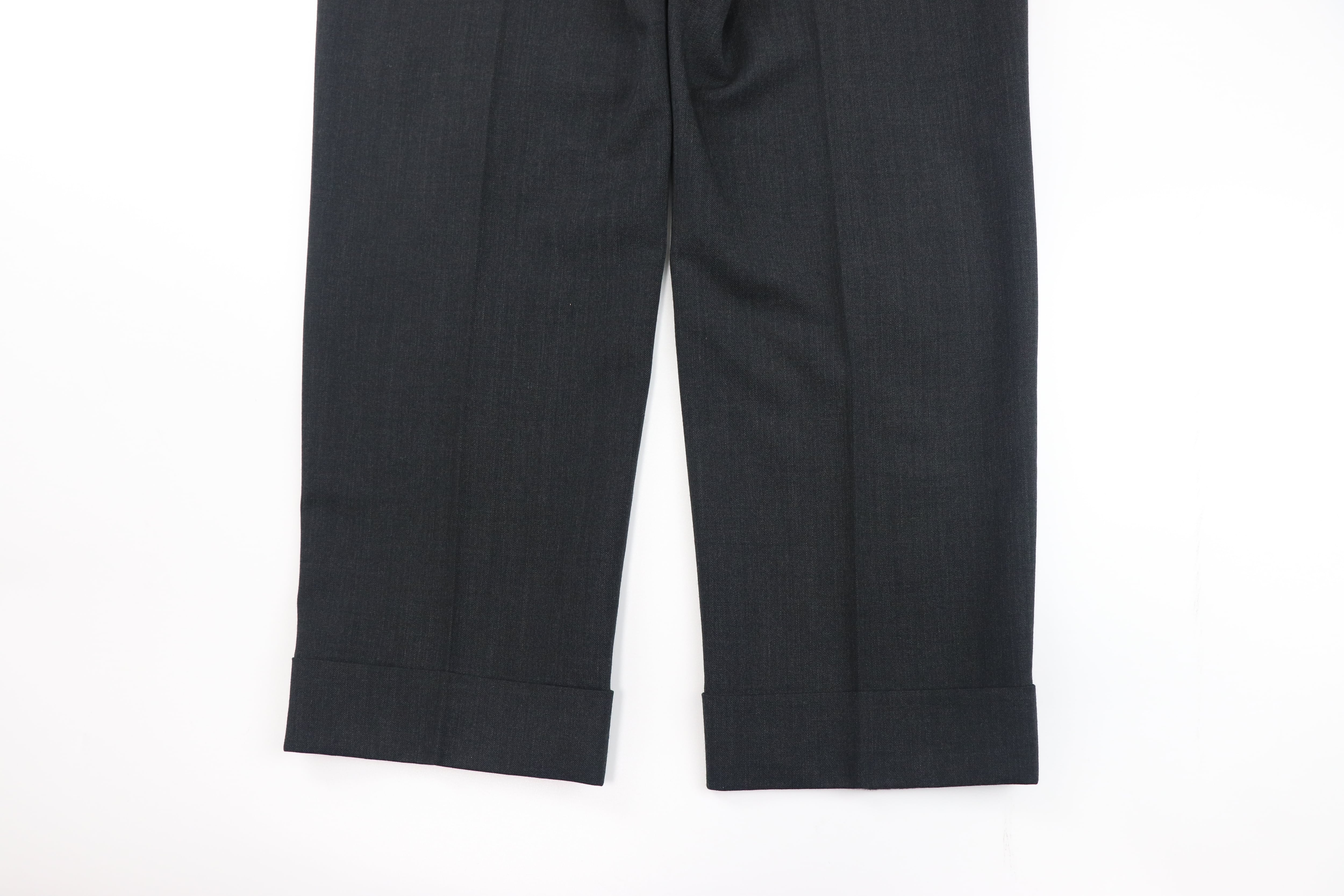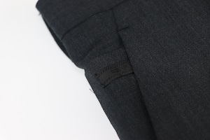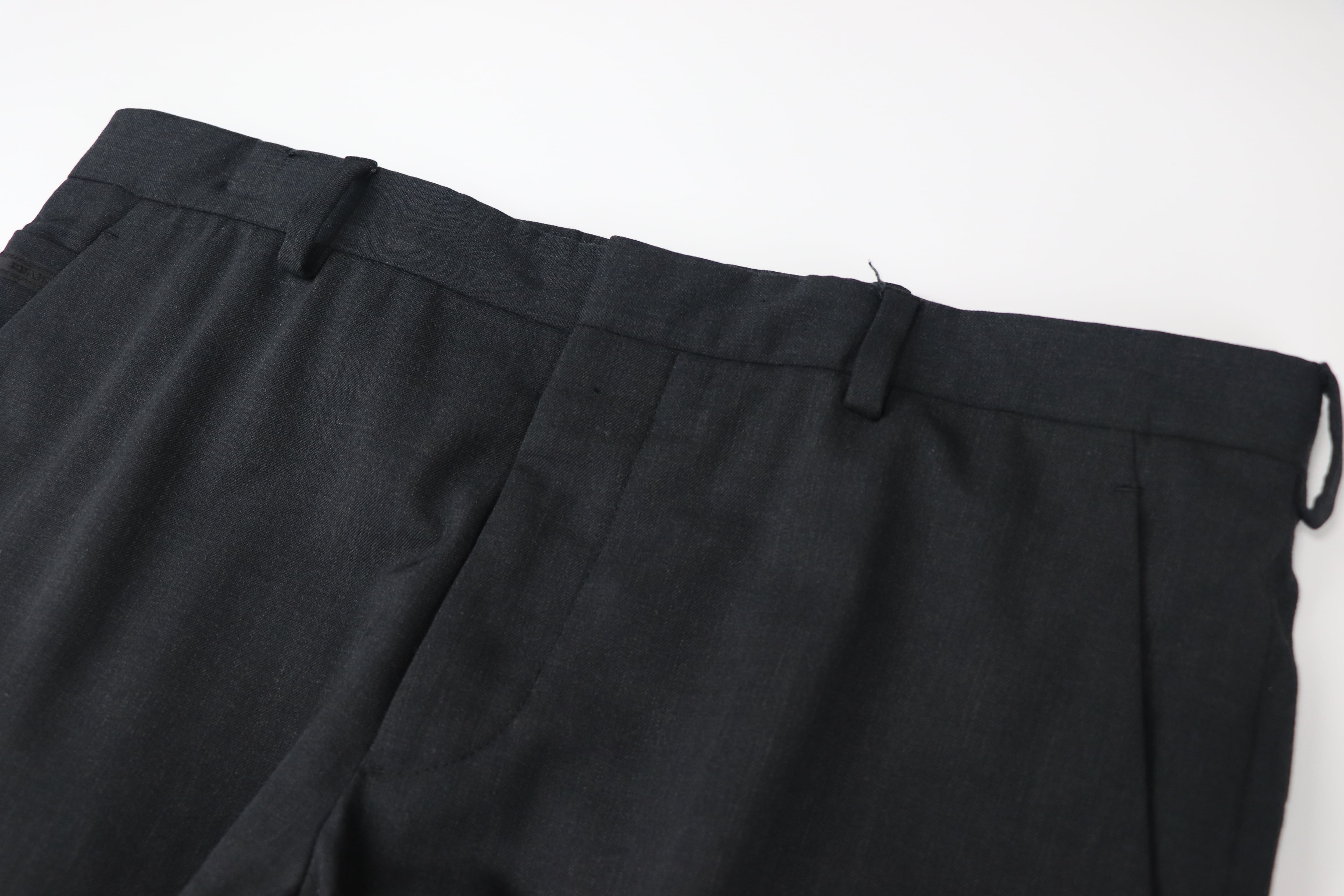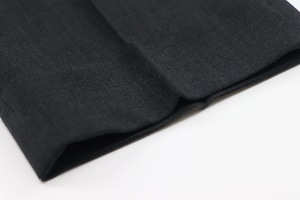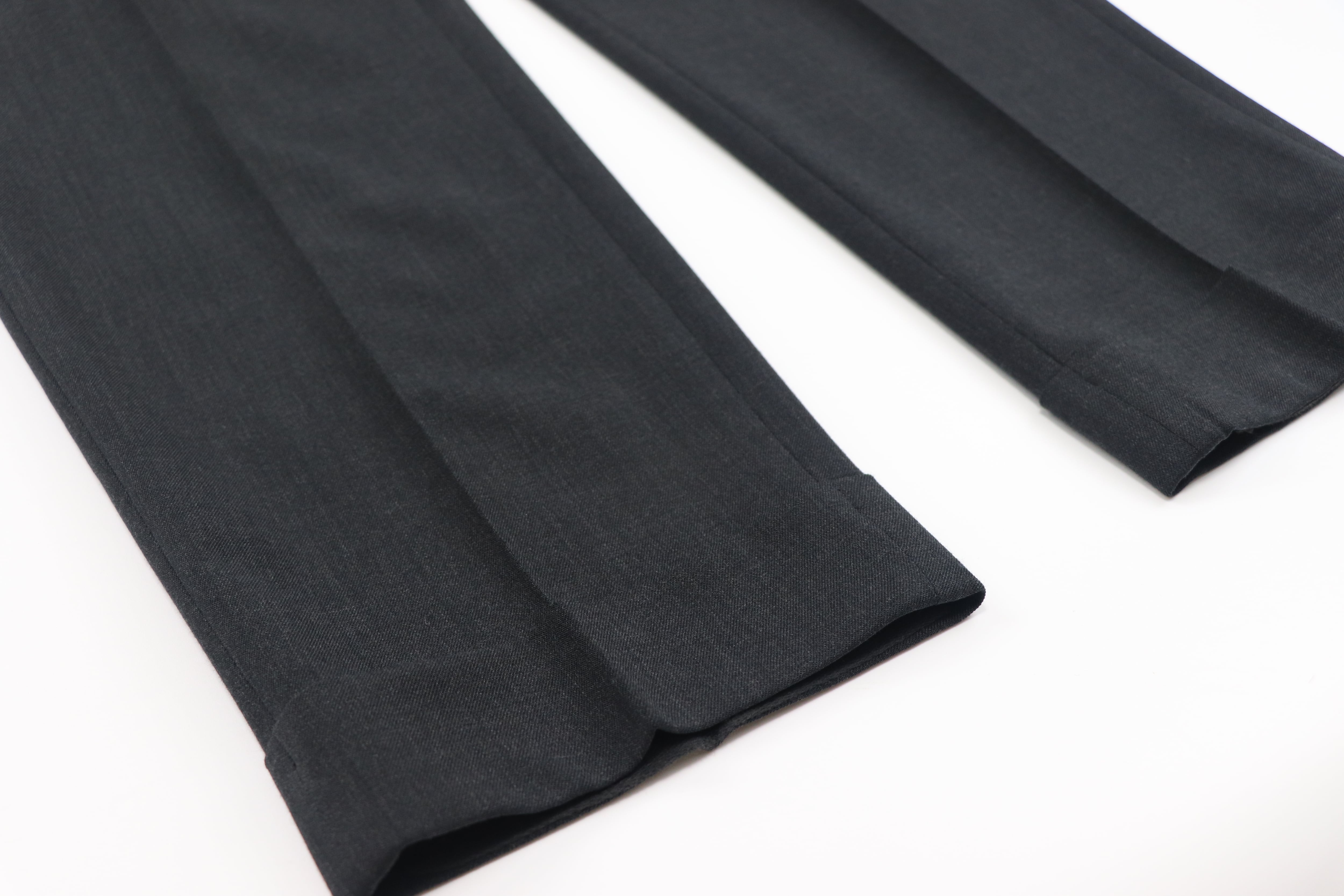 シルエットはすっきりとしたストレート寄りで、裾はダブル仕立て。