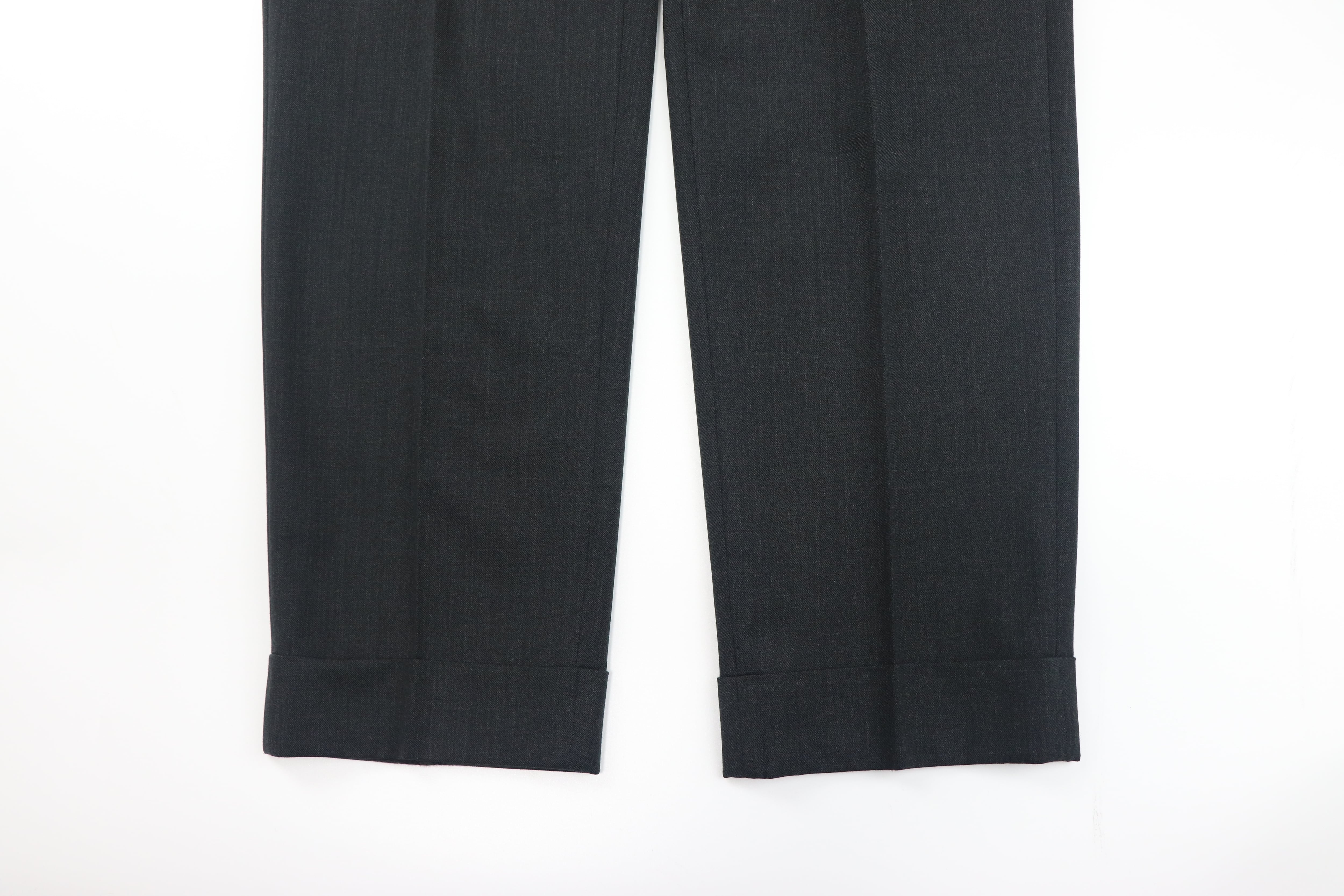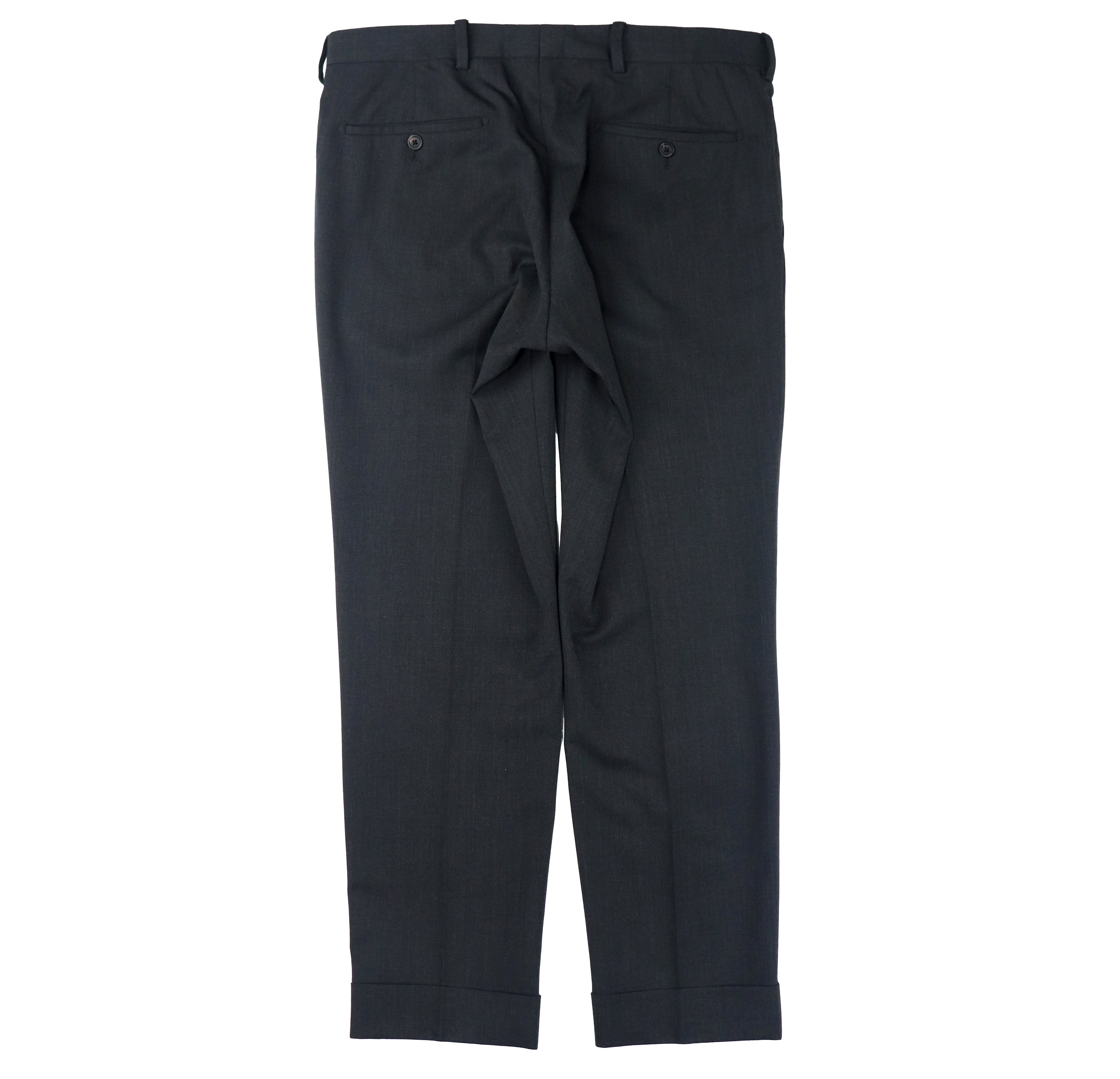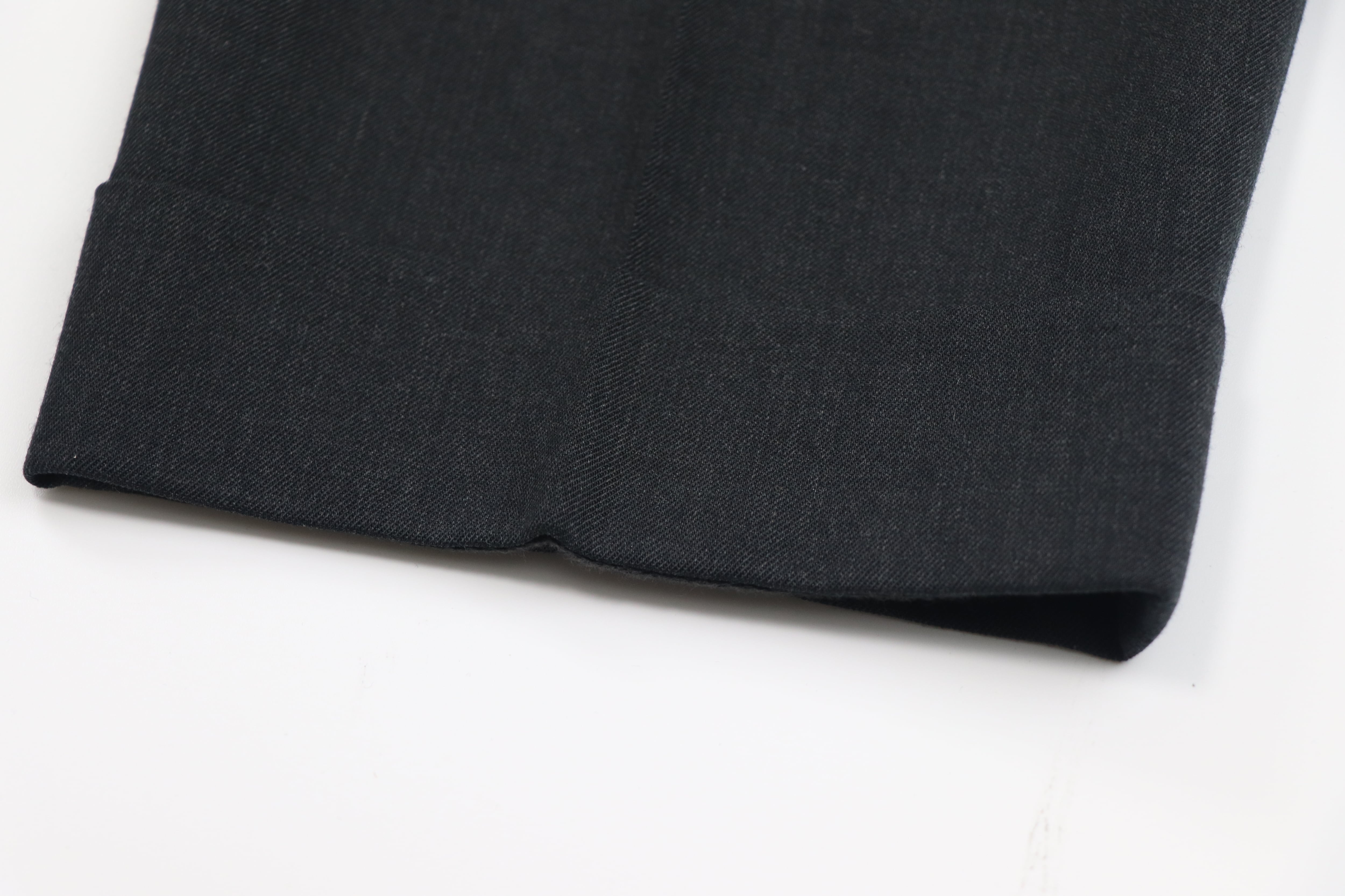 シルエットはすっきりとしたストレート寄りで、裾はダブル仕立て。