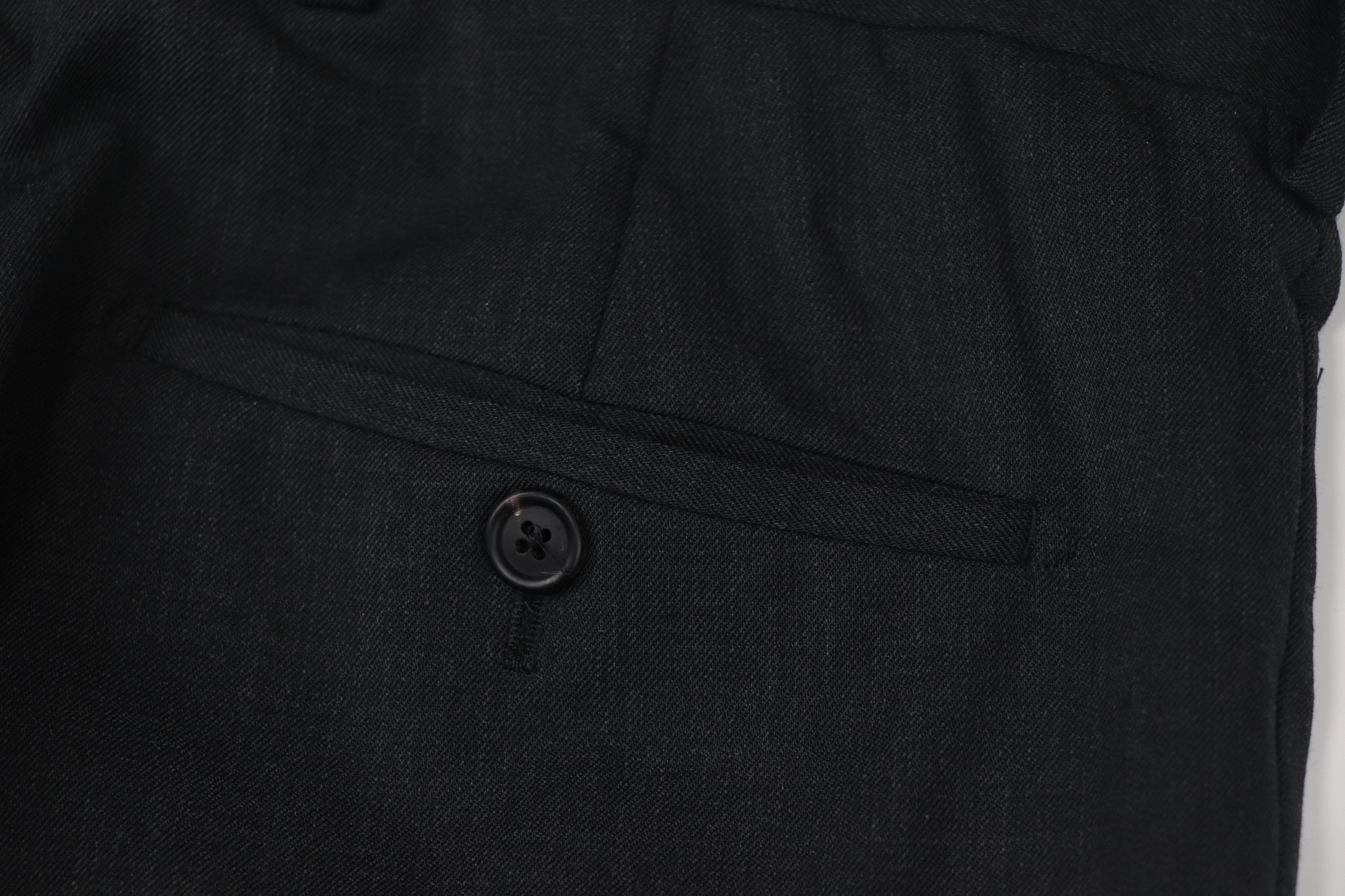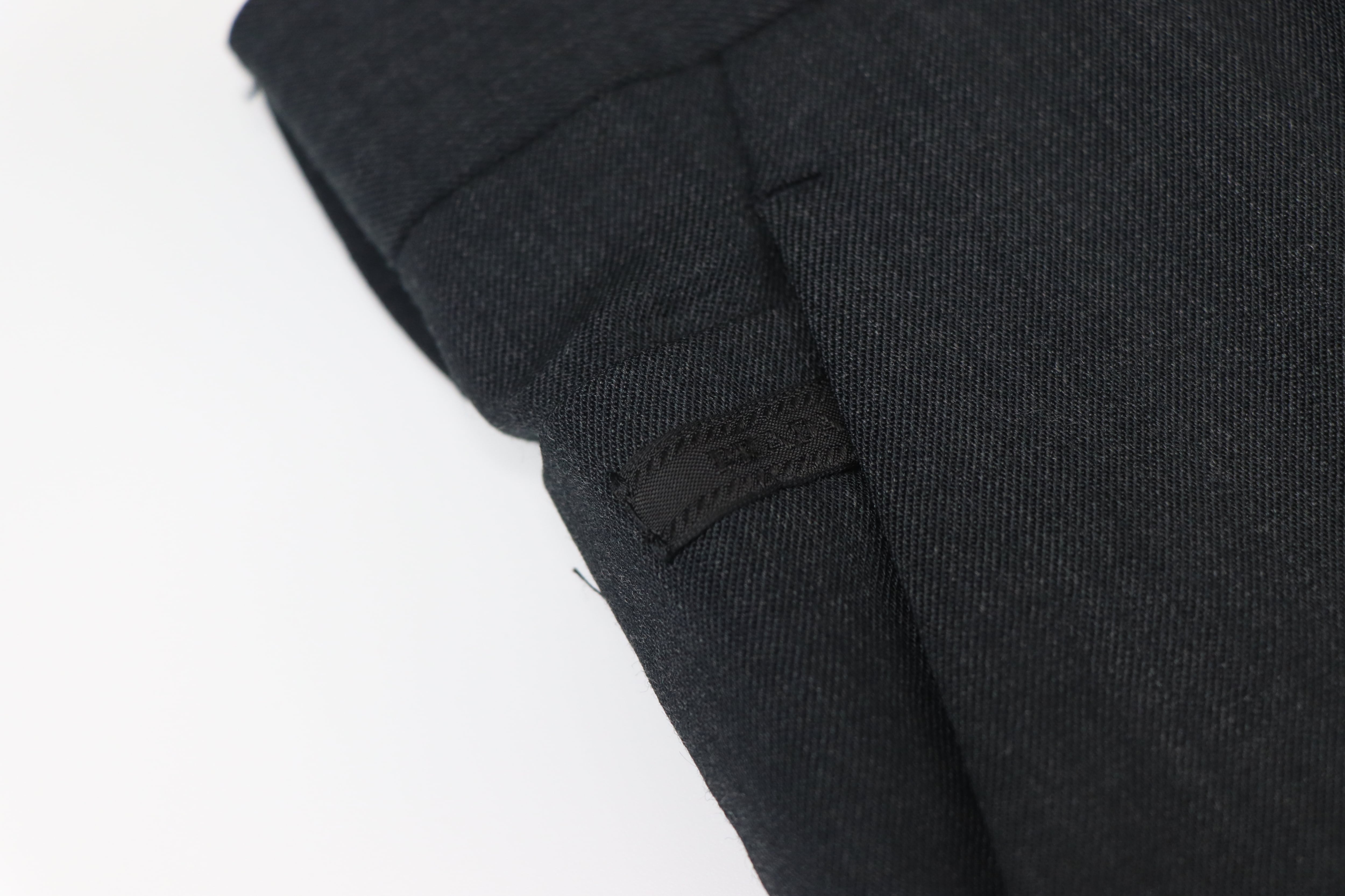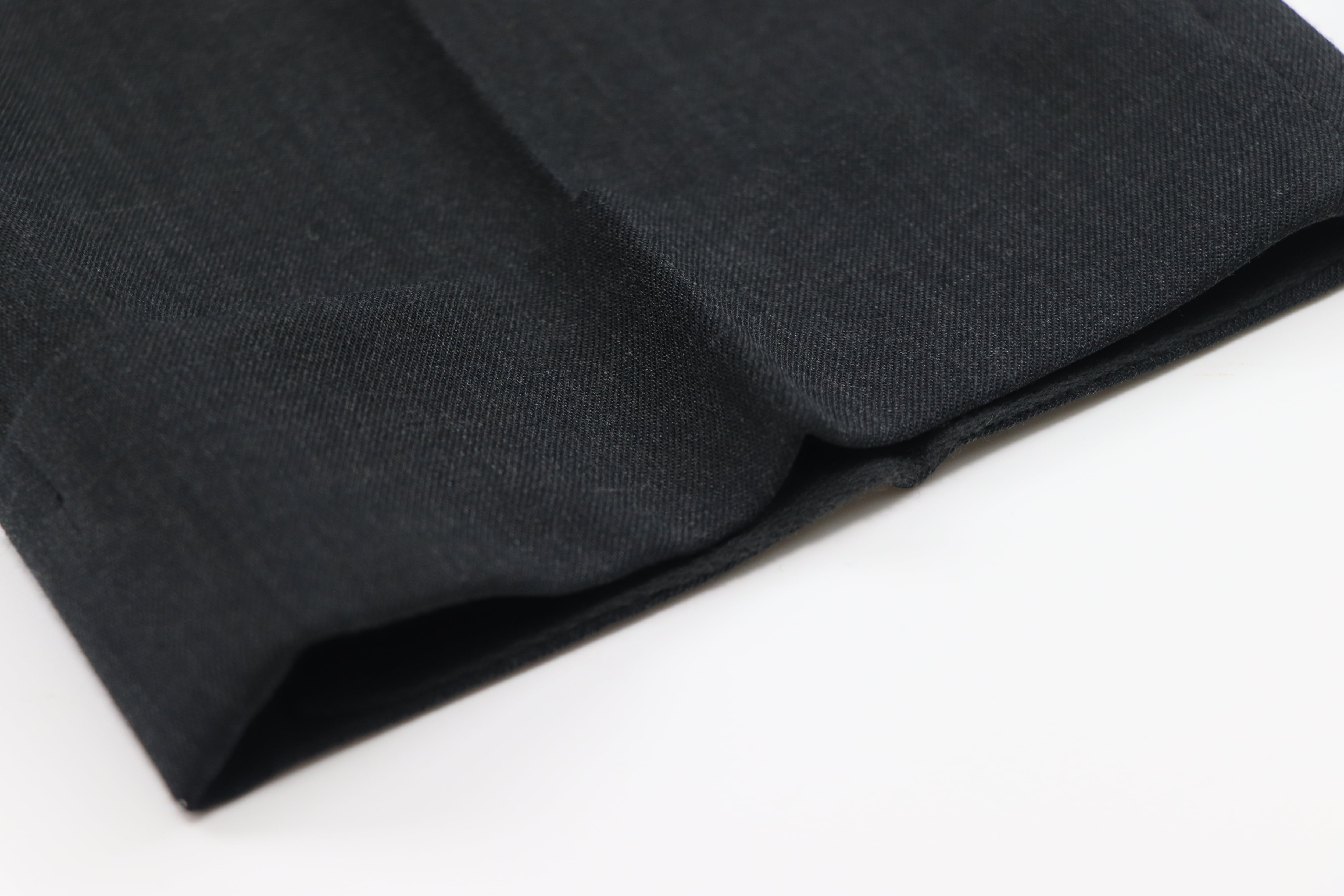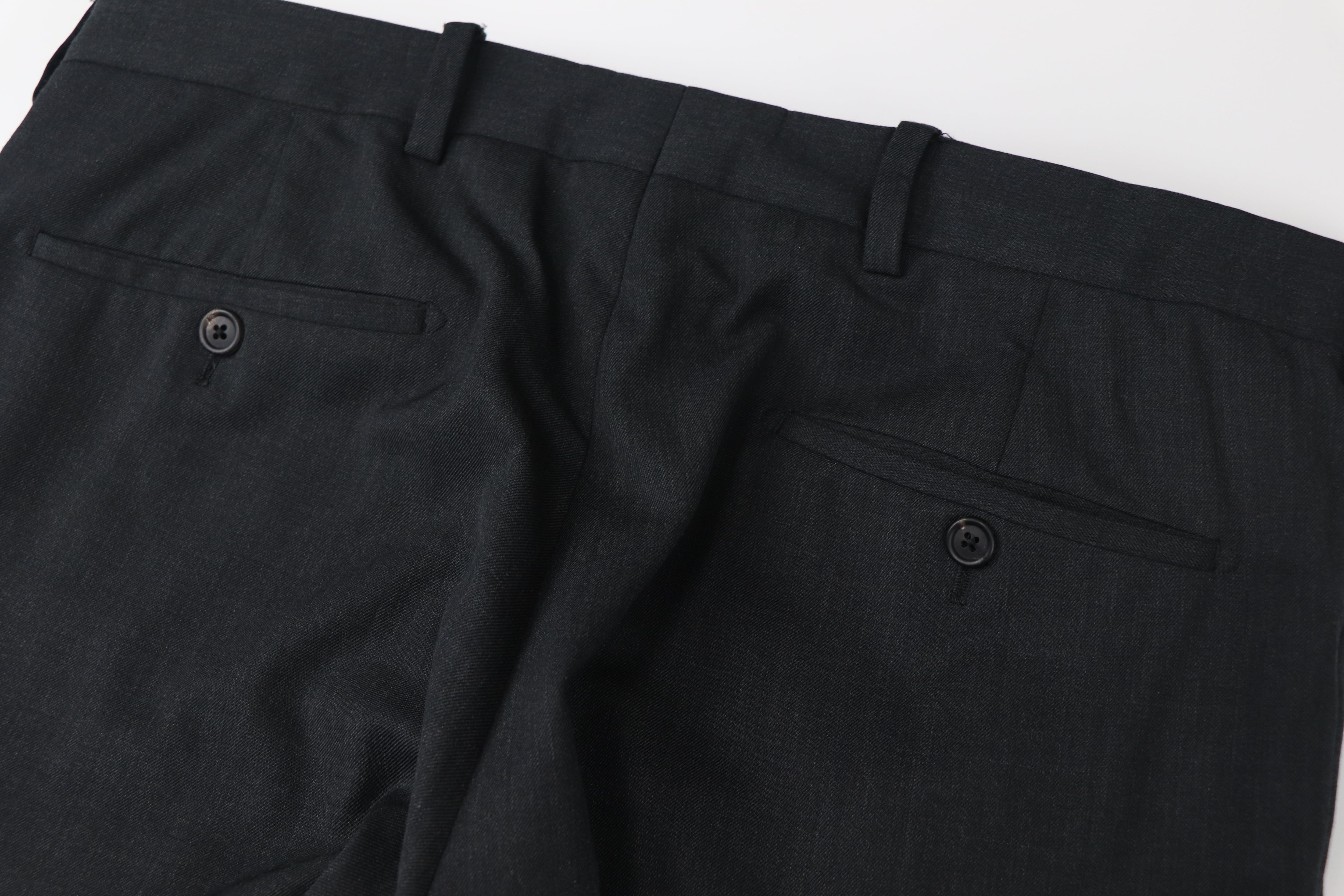 ウールをベースにポリエステルとエラスタンを混紡した生地は、程よい厚みとしなやかさを兼ね備え、通年で着用しやすいバランスの良い仕上がり。