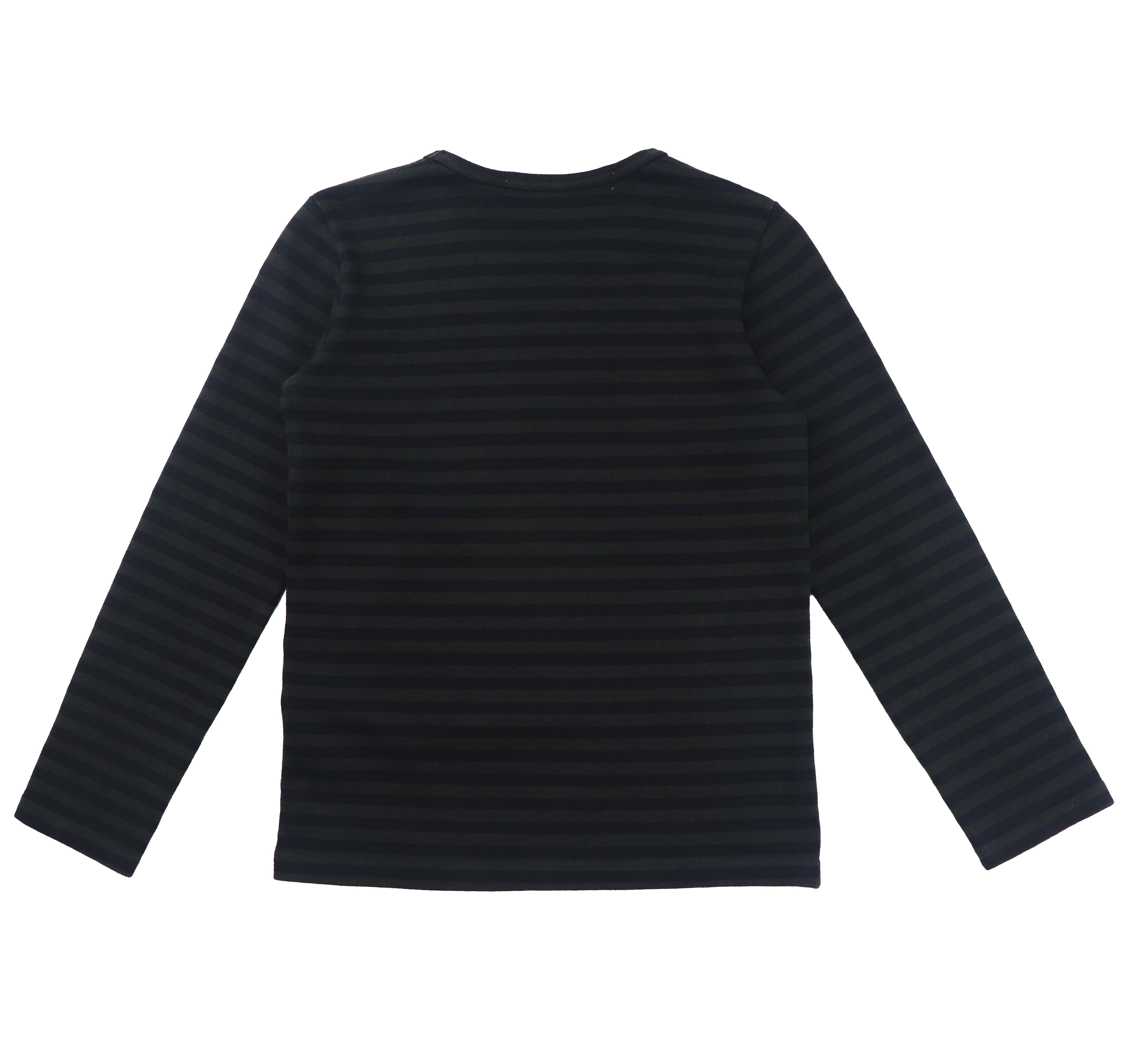 ダークトーンで構成されたボーダーが印象的なロングスリーブTシャツ。
