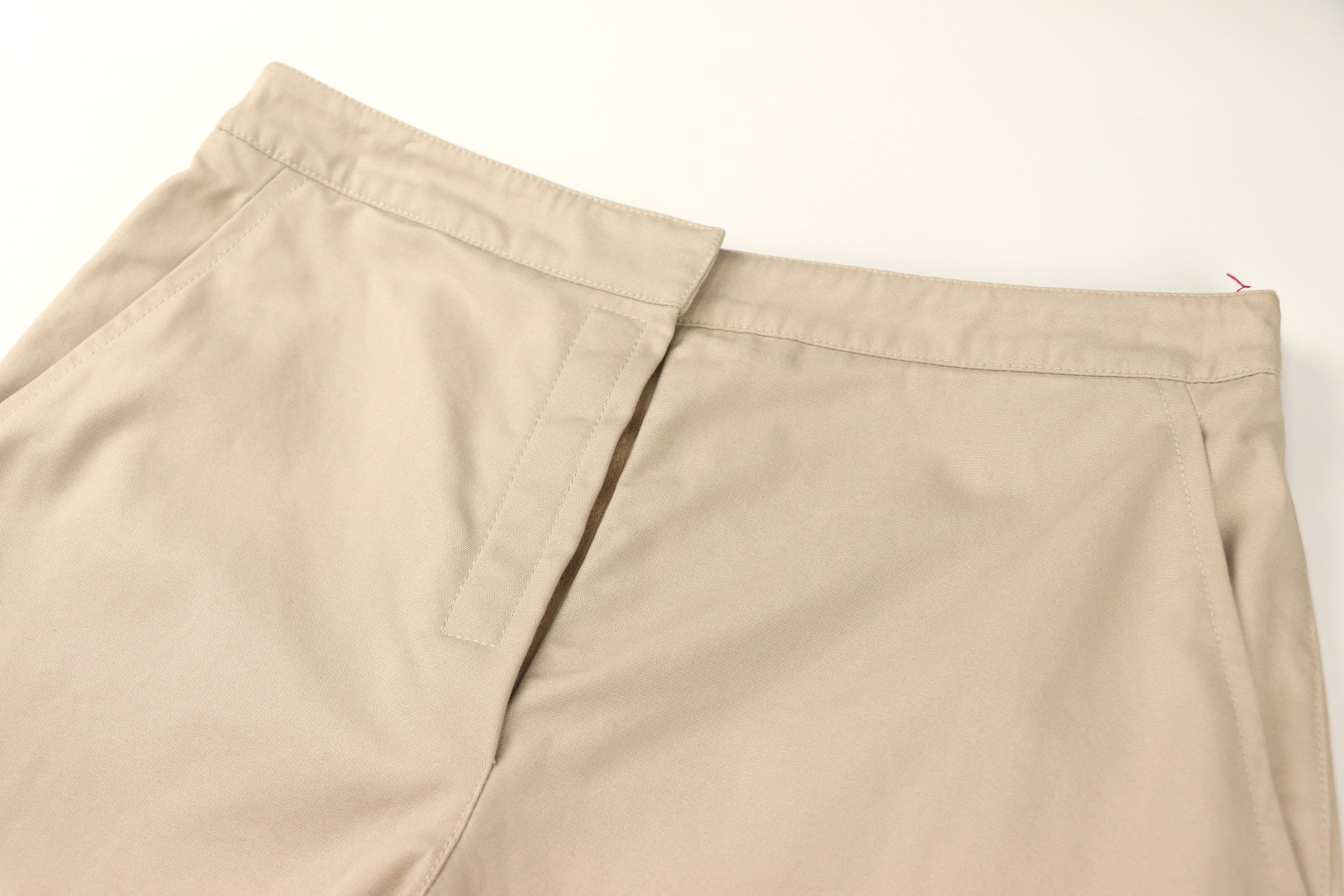 程よい厚みを持つコットン生地を使用し、軽さと安心感のあるバランスに仕上げられた一本。ハリを残しつつも硬すぎない質感で、日常的に扱いやすいファブリックです。