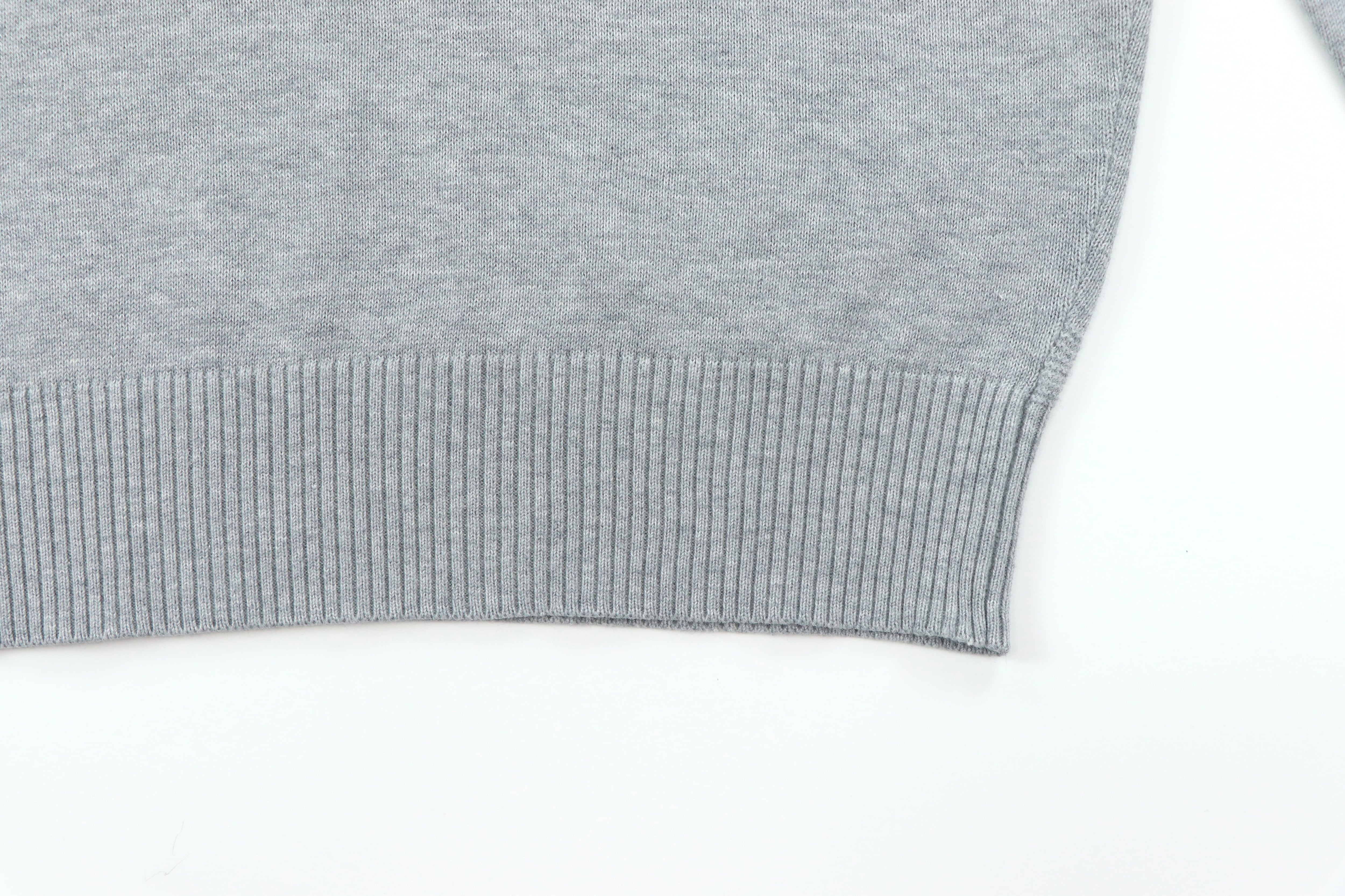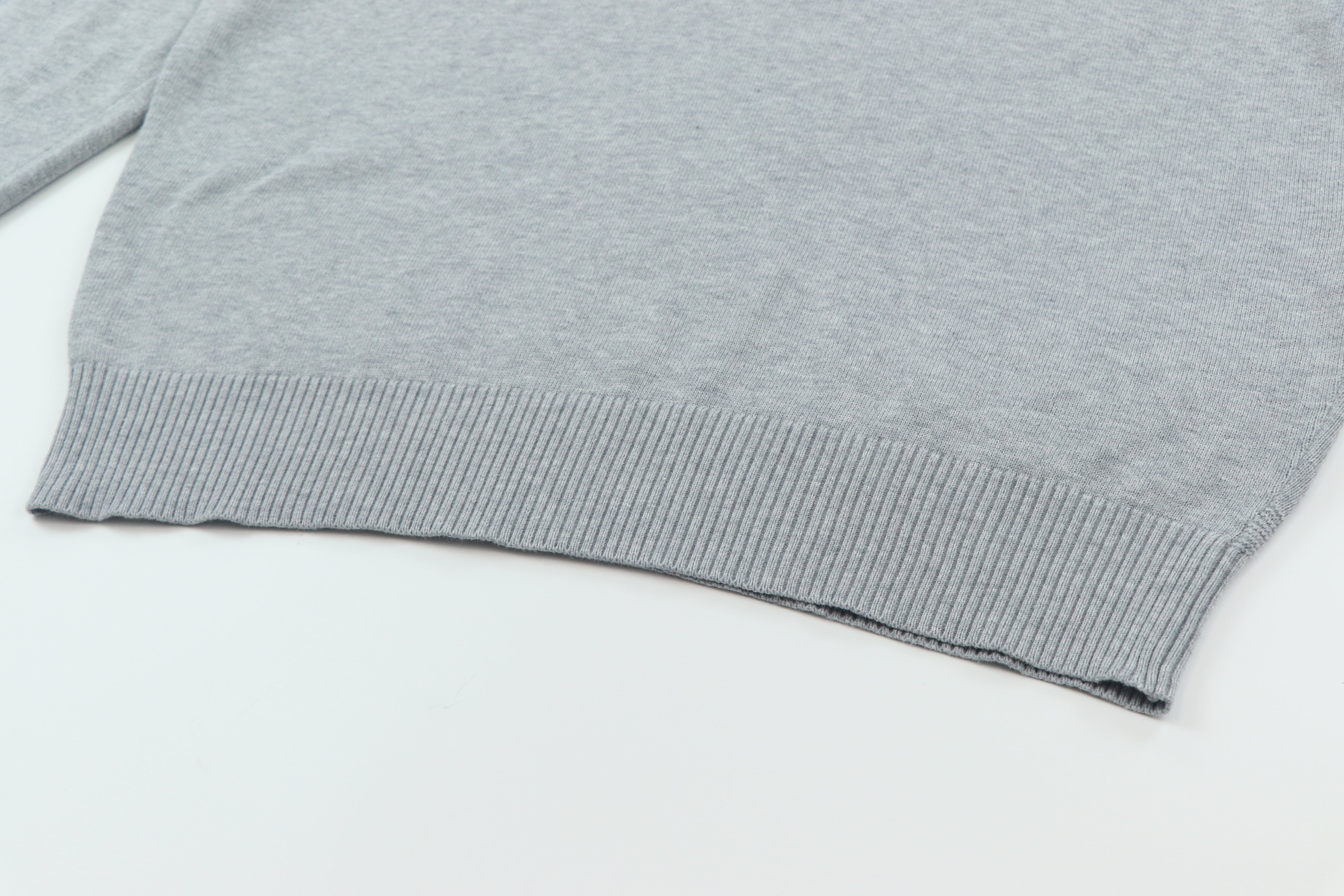 Vネックはやや浅めの設計で、主張が強すぎず自然に馴染む仕上がり。インナーを選ばず、スタイリングに取り入れやすいのもポイントです。