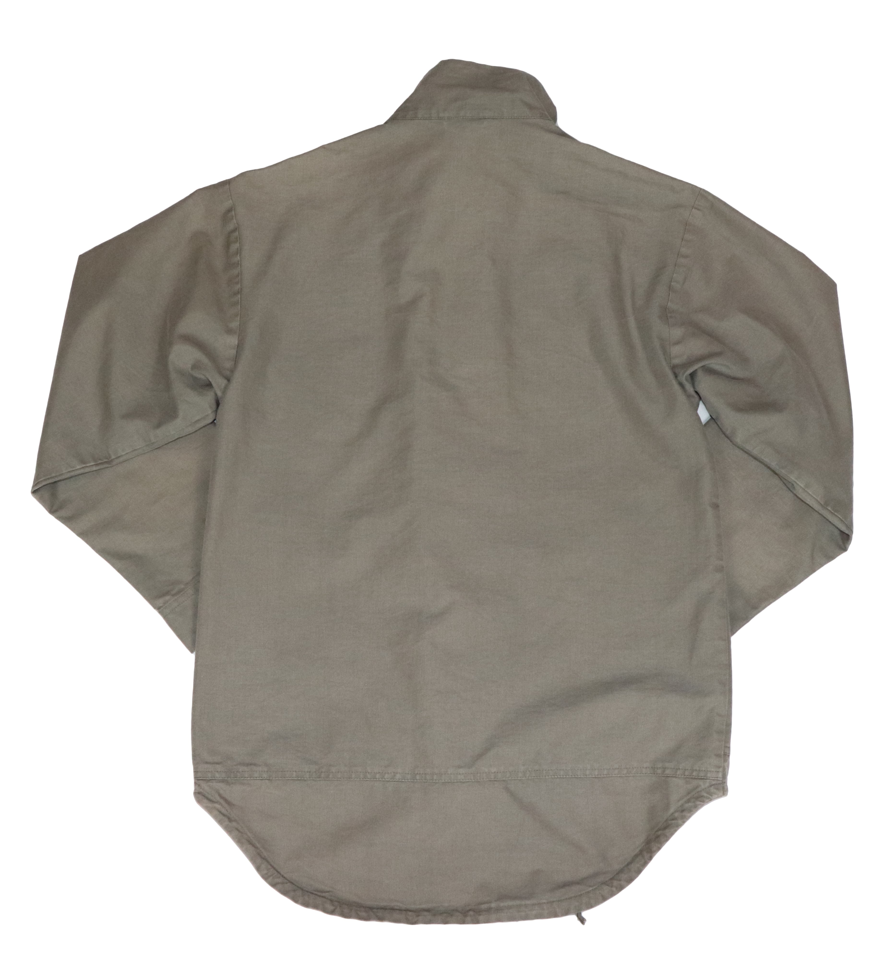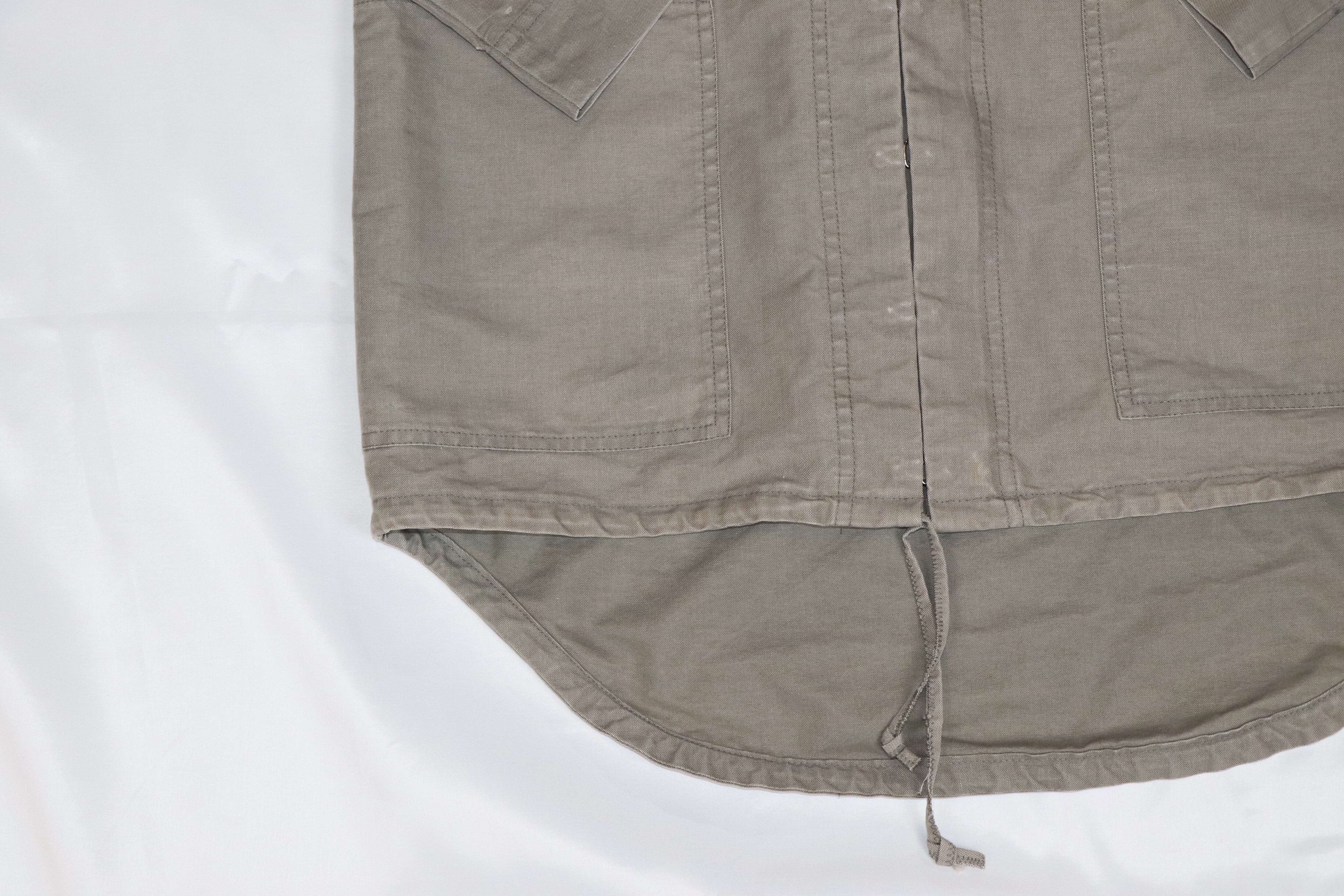 ジップとフックを使って様々な着方ができます。裾にあるドローコードもナイスです。また、コットンとナイロンの混合なのでとても上品な風合いです。