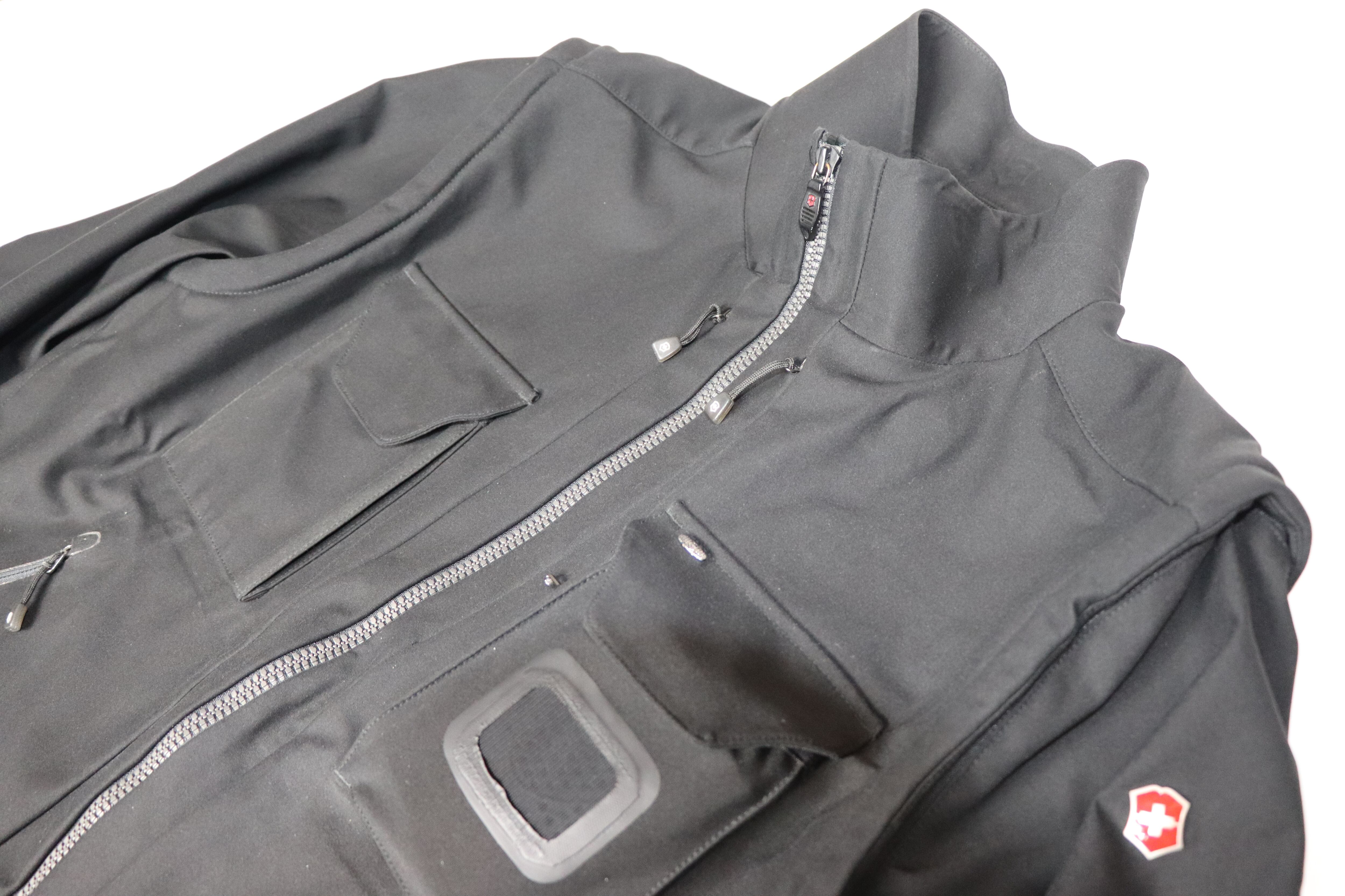 2008年にVictorinoxから提案された空気清浄機付きジャケットなります。近代化が激しく進んでいた当時、環境汚染により都市部では澄んだ空気は得られなかったそう。そこで開発されたのがこちらのジャケットです。左胸ポケットに空気清浄機があり、浄化された空気をジャケットの漏斗襟に移します。100%ポリエステル3層ソフトシェル生地で作られており、15,000mmの「防水性」が含まれています。環境配慮が注目されている現代でも完全で、クリーンな空気を味わうのはことは皆が望んでいることだと思います。そんな方にぴったりなこちらの一着。生地や細部にまでこだわりが感じられ面白半分で作ったものでは無いと思える一着です。袖もジップで着脱可能で色々な着方を楽しめると思います。単三電池4本使用。通電確認済