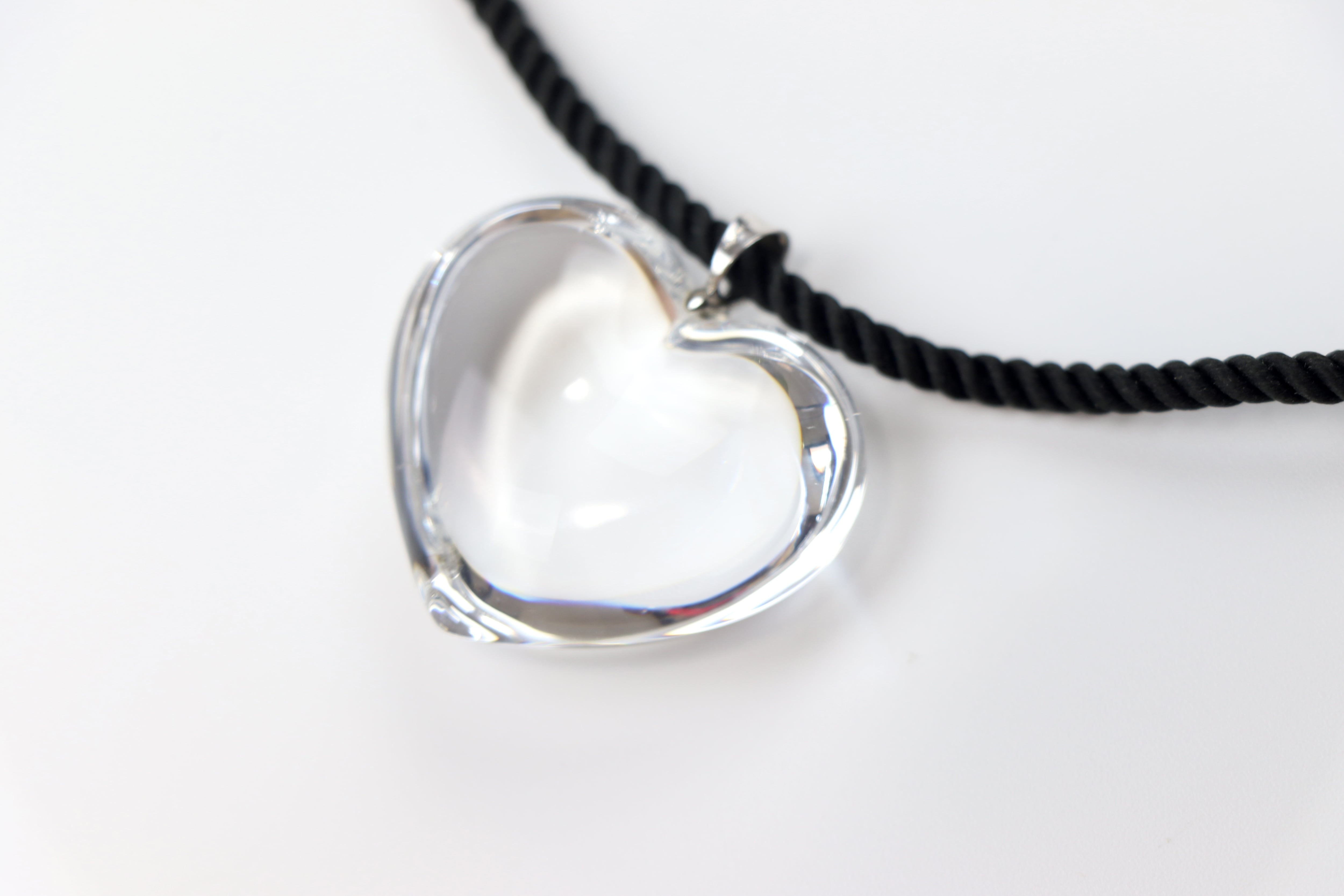 この手のハートネックレスはよく見かけますが、樹脂製だったりとすこし安っぽい印象を受けます。しかし、さすがバカラ。しっかりとガラス製で高級感がございます。状態も良く、写真では見えませんが刻印もございます。